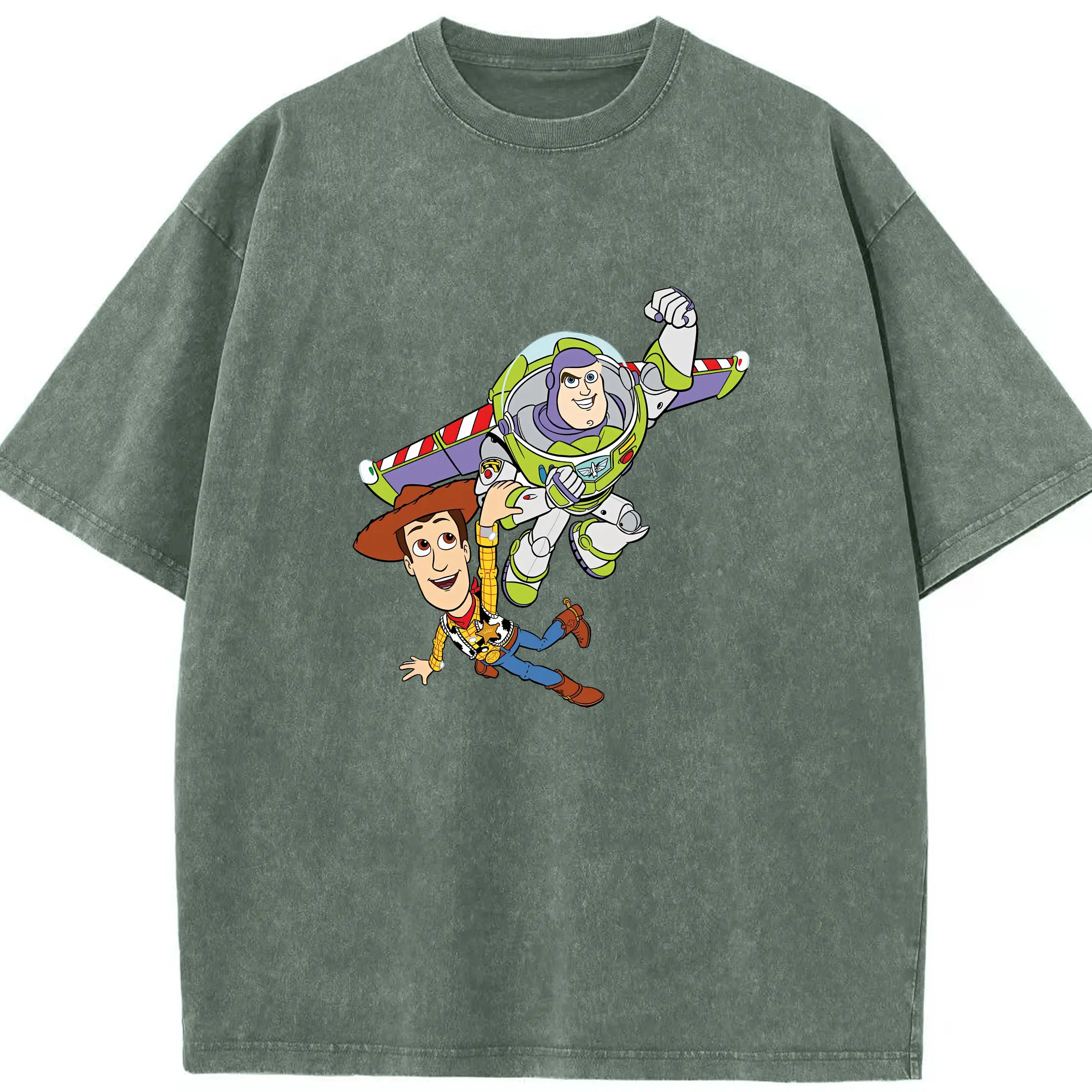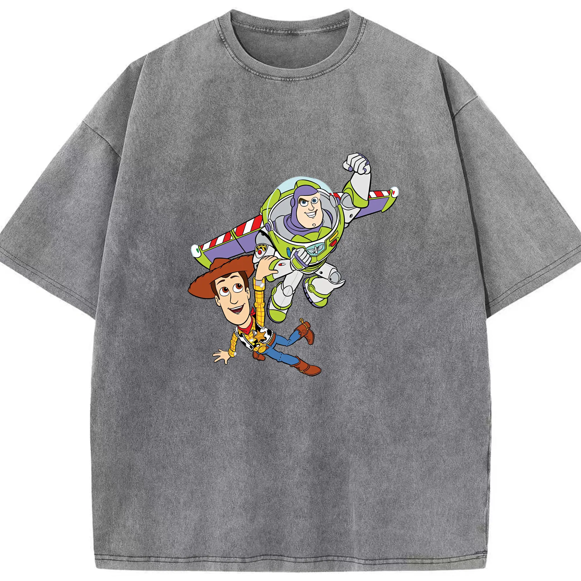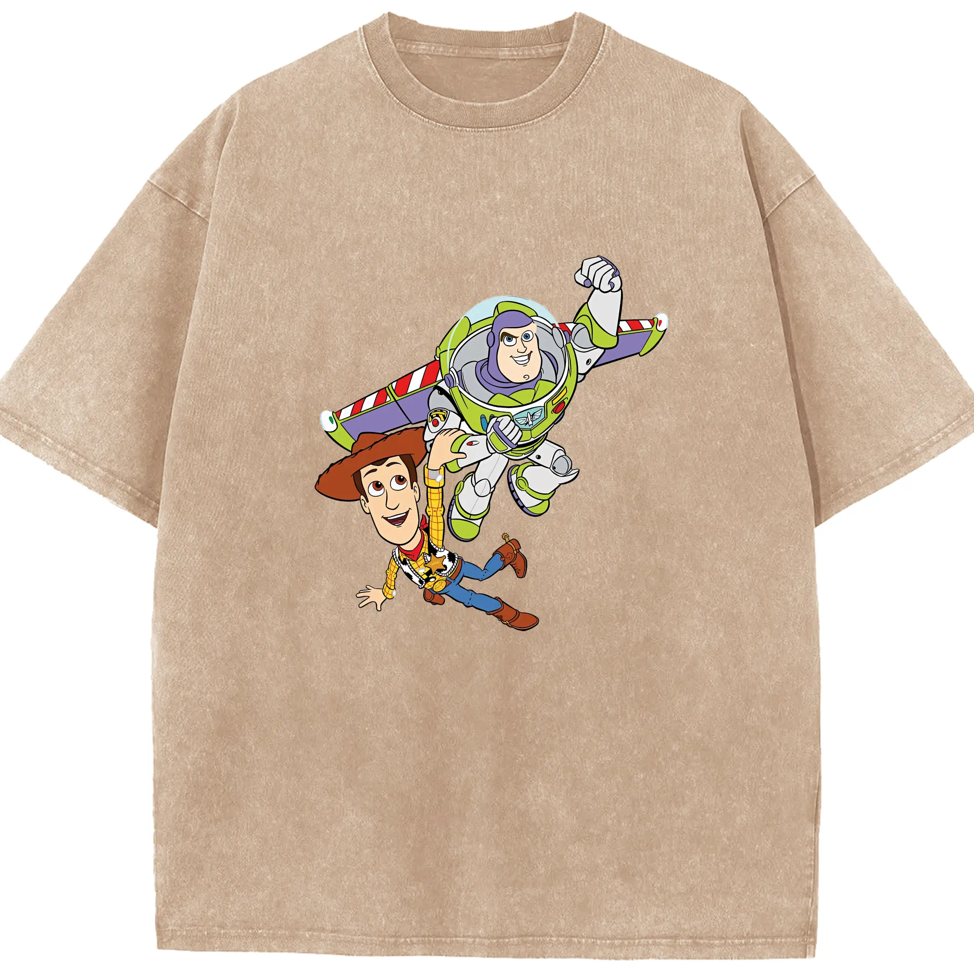 トイ・ストーリー グッズ バズ・ライトイヤー - 綿100% ヴィンテージ風 半袖Tシャツ ・ 背面プリント ・ 柔らか肌触り ・ 通気性 快適 ・ スポーツ カジュアル 外出用