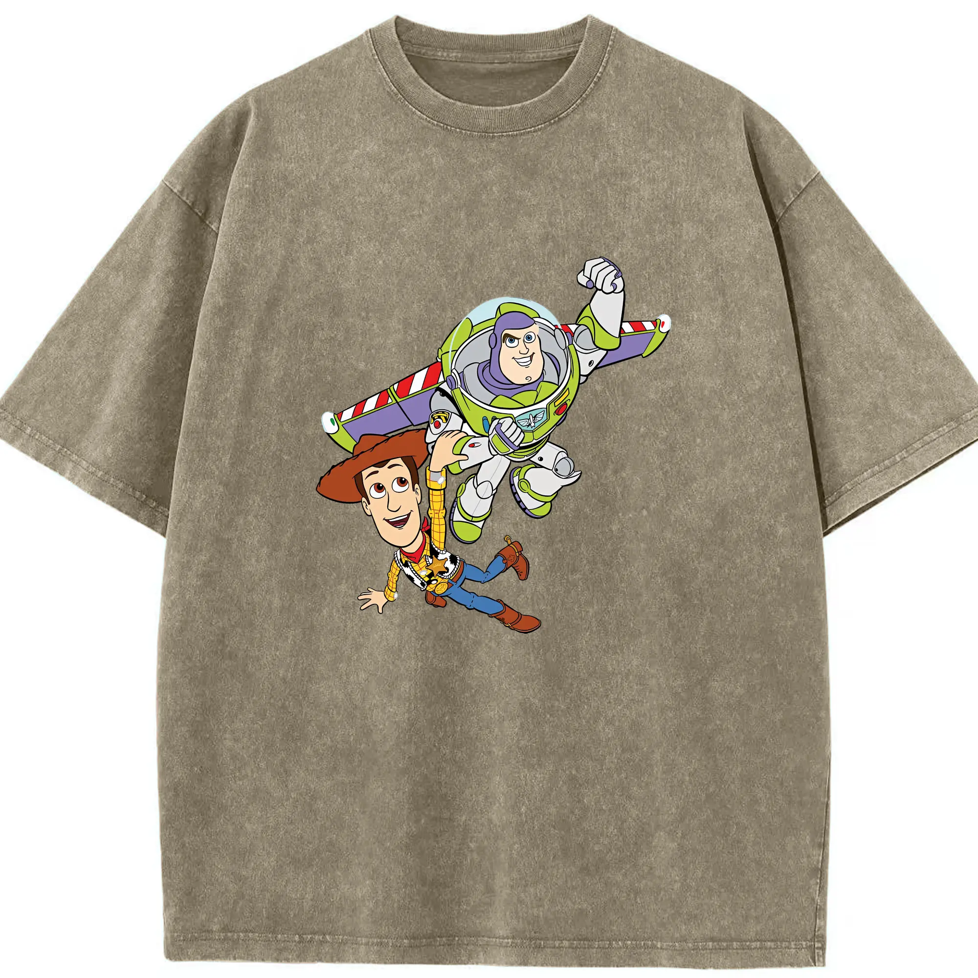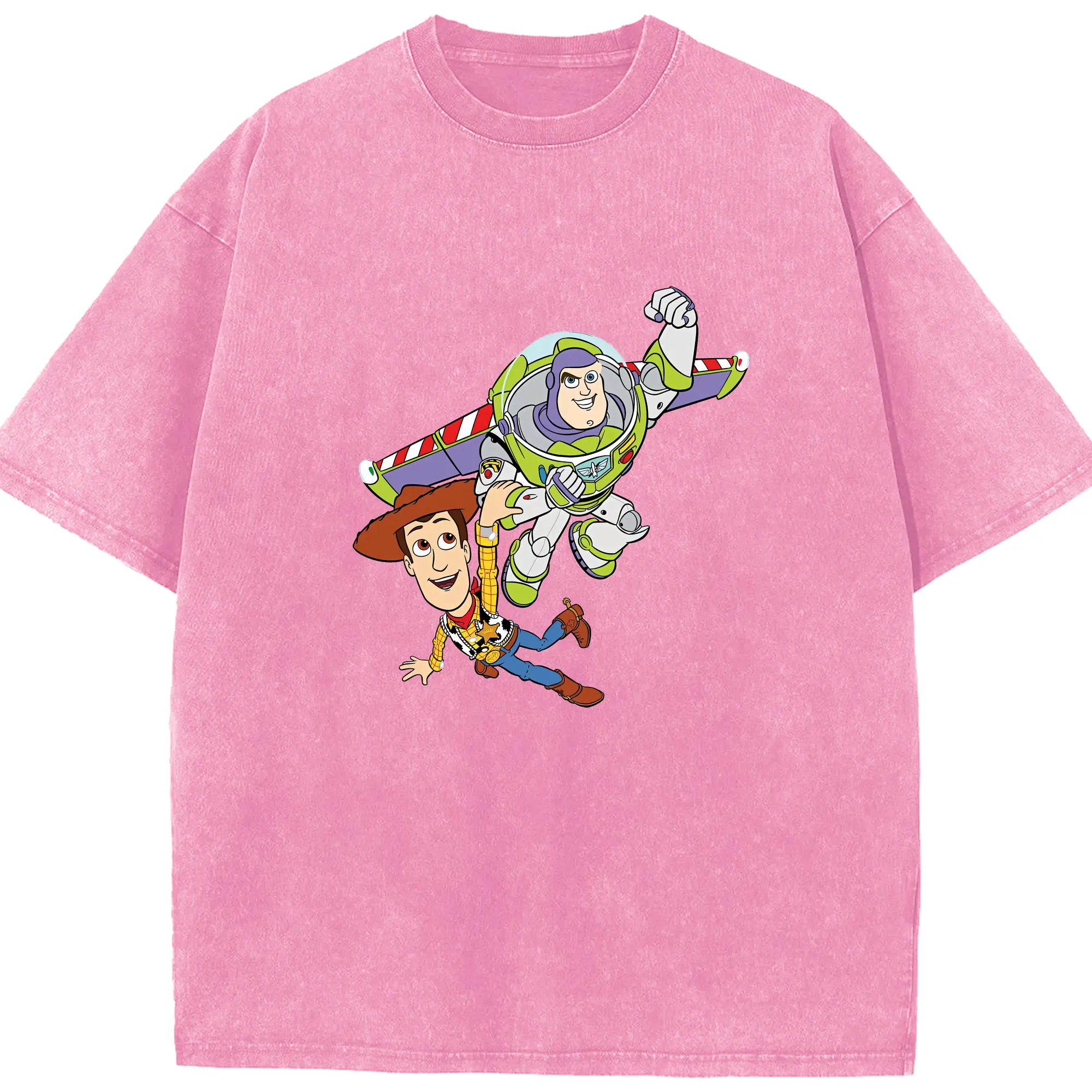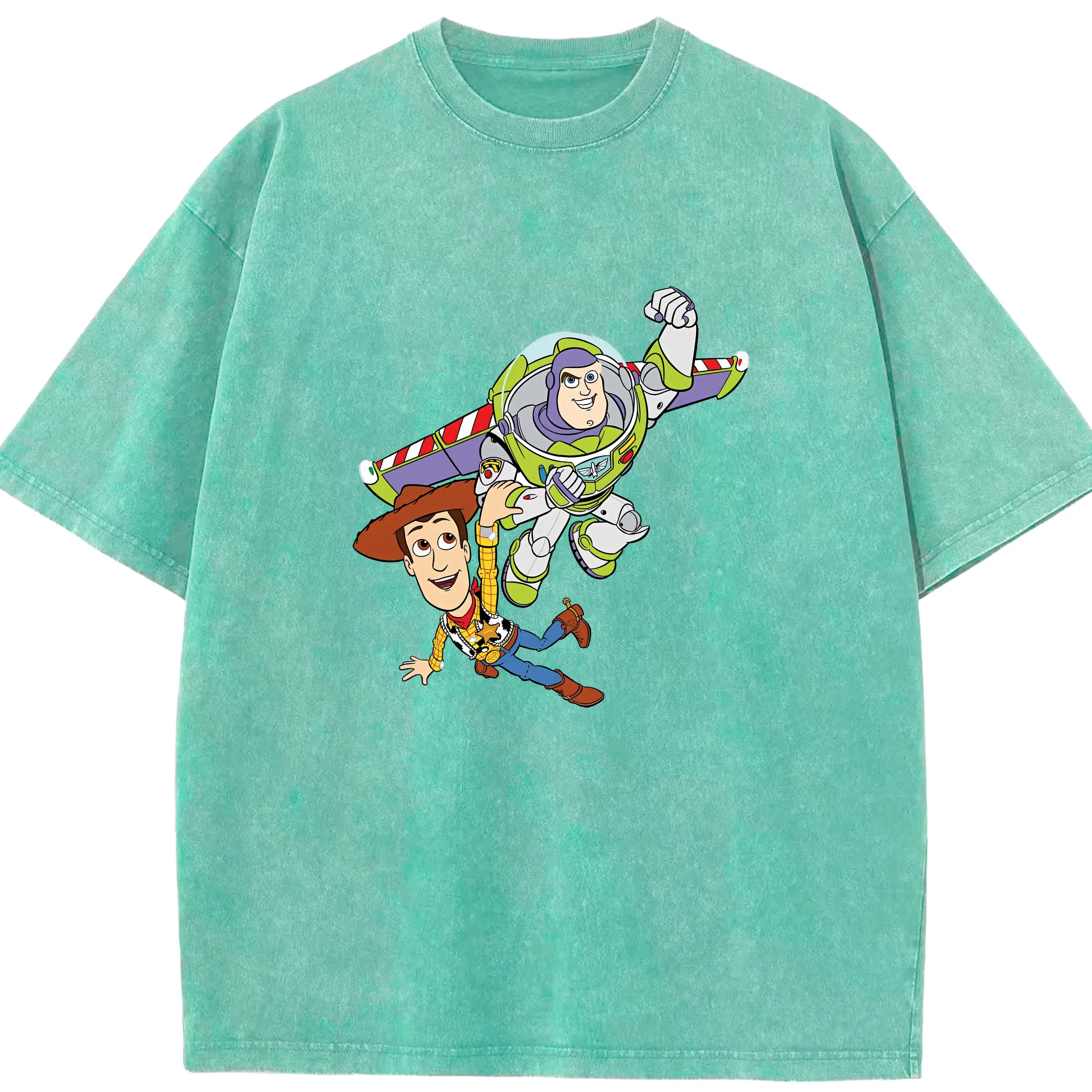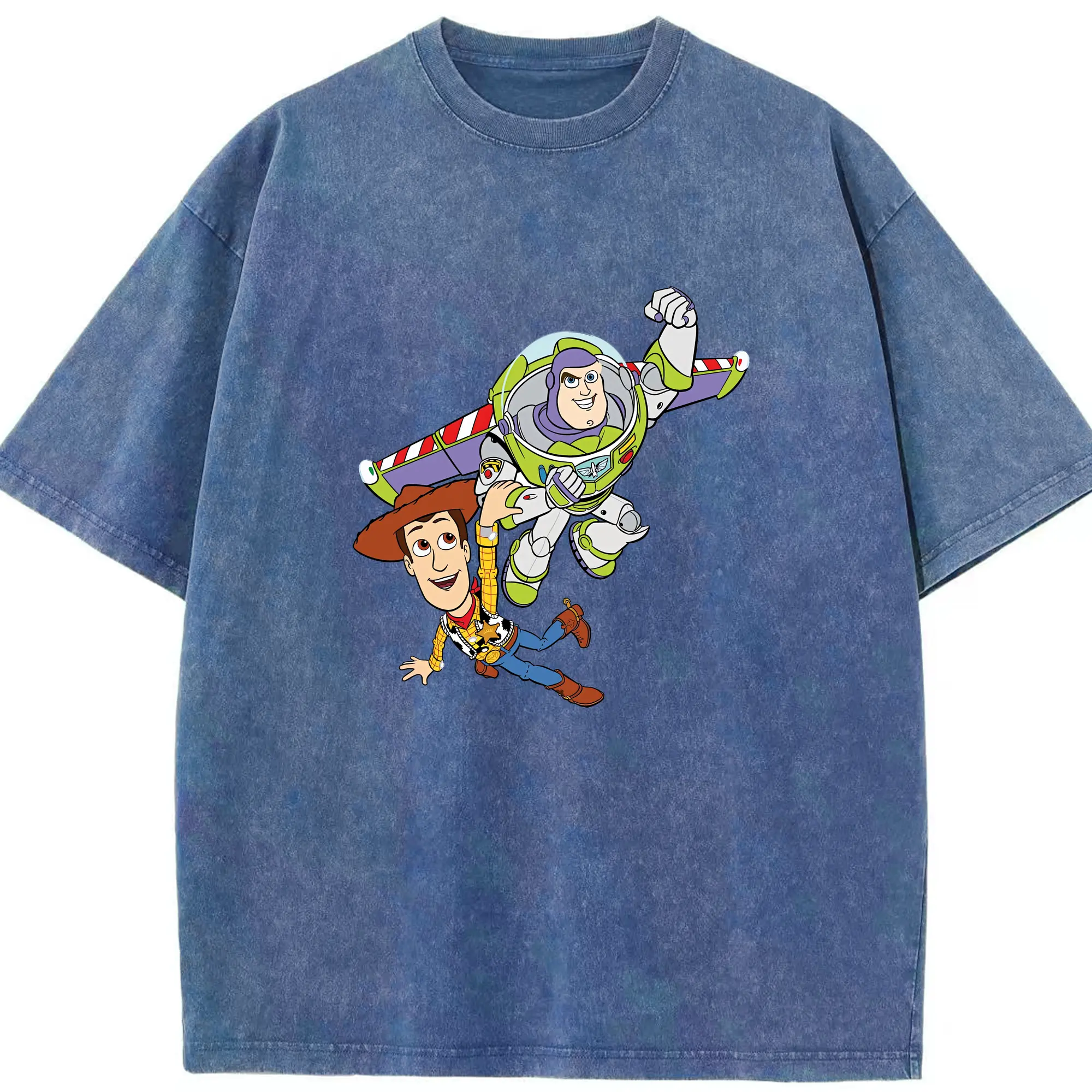 トイ・ストーリー グッズ バズ・ライトイヤー - 綿100% ヴィンテージ風 半袖Tシャツ ・ 背面プリント ・ 柔らか肌触り ・ 通気性 快適 ・ スポーツ カジュアル 外出用