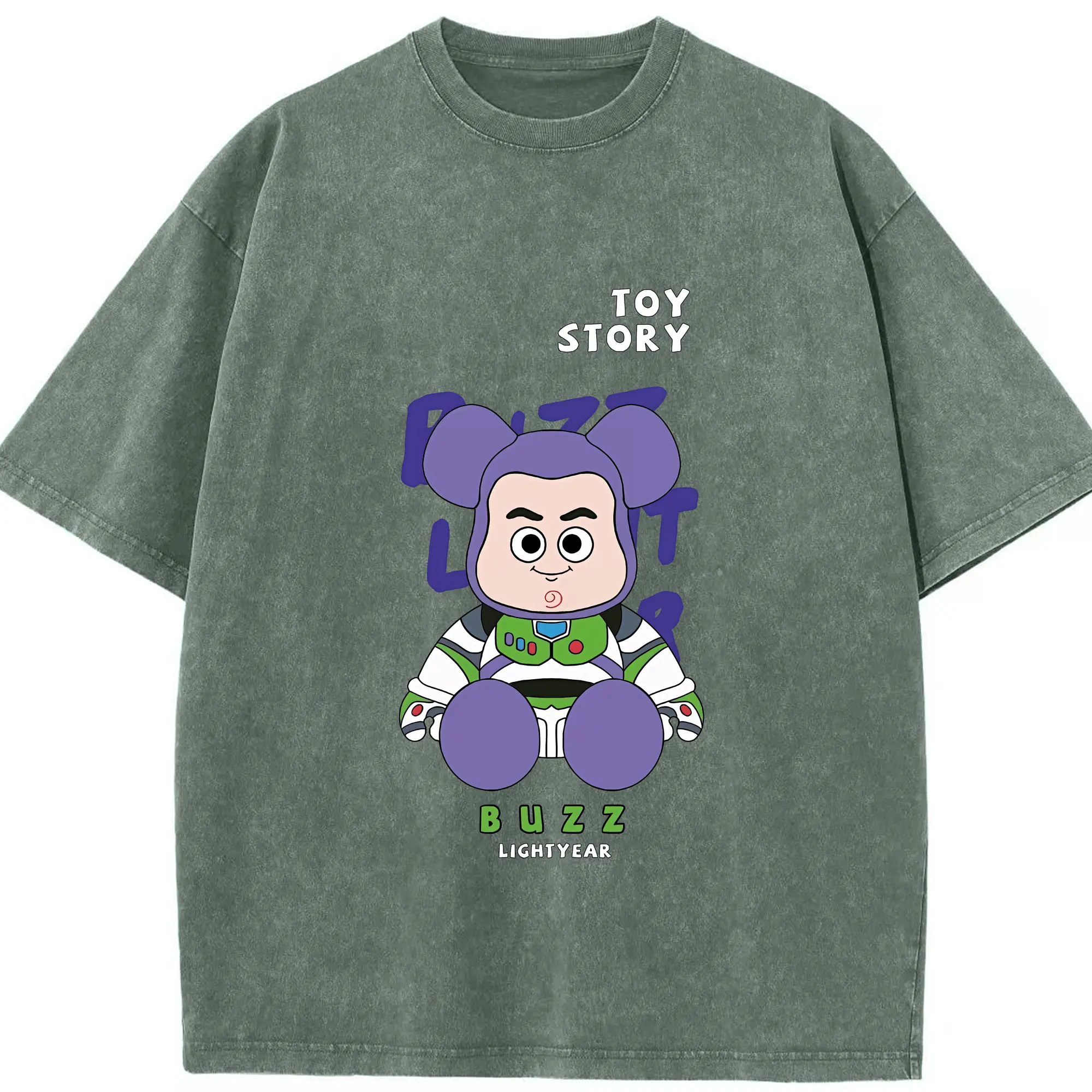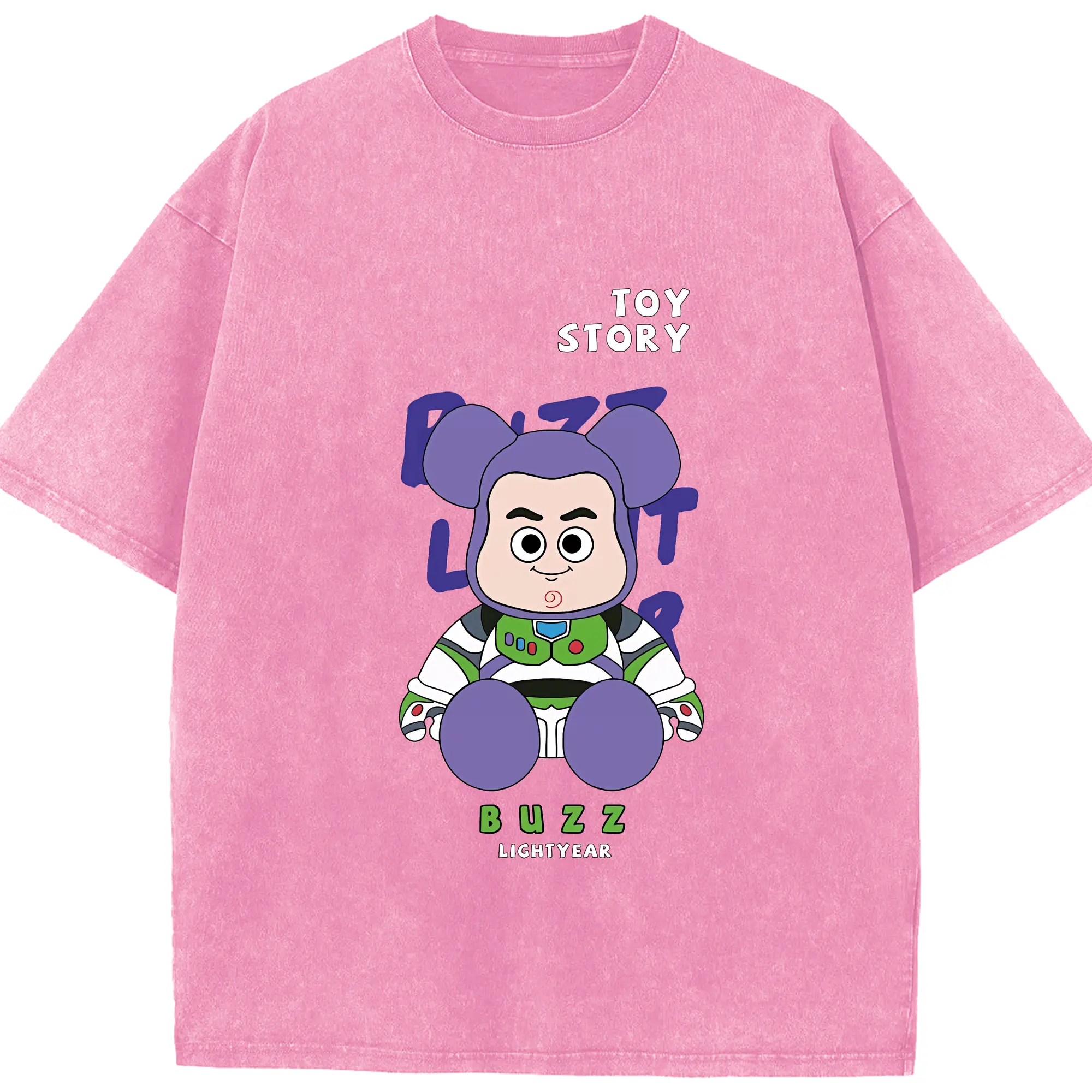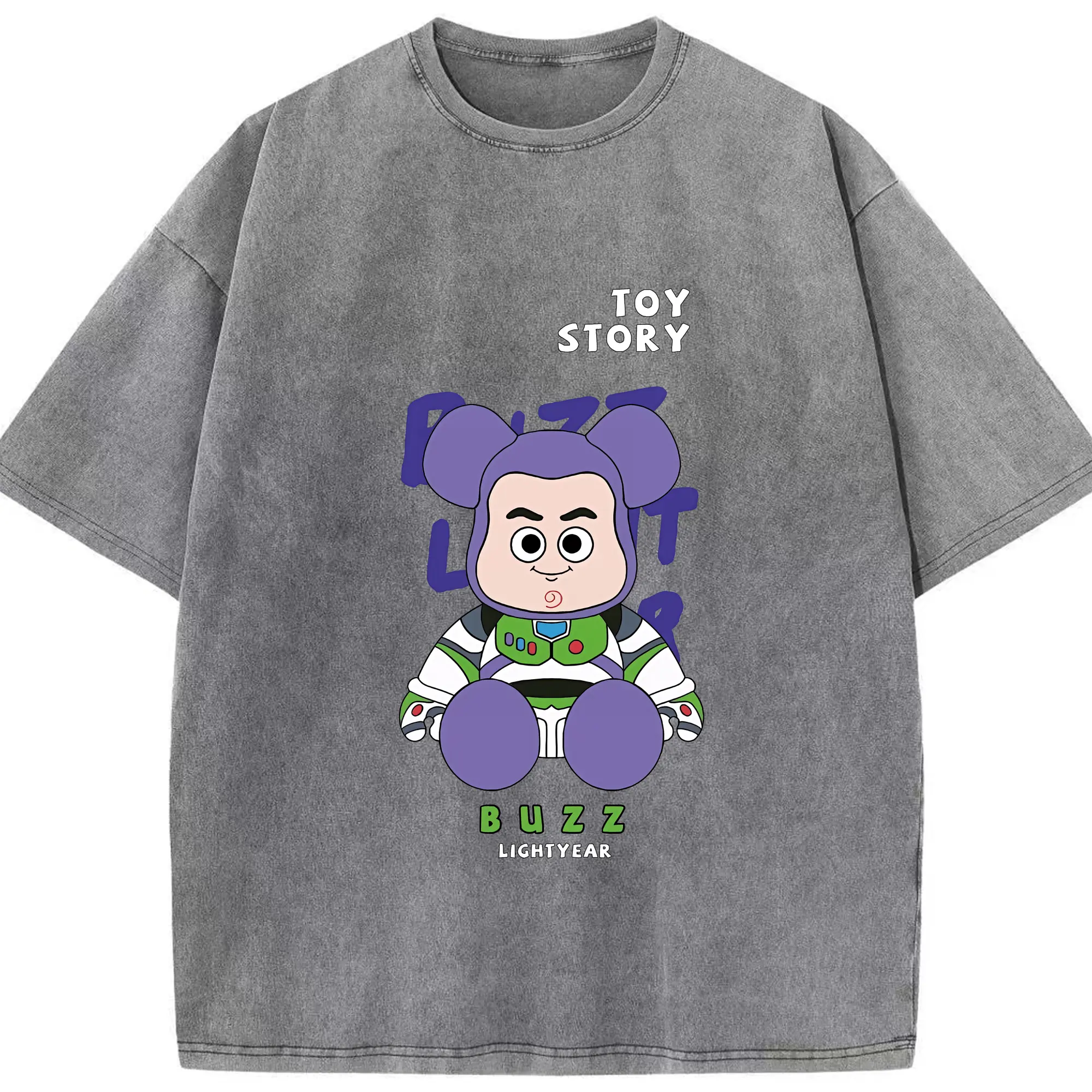 トイ・ストーリー グッズ バズ・ライトイヤー - 綿100% ヴィンテージ風 半袖Tシャツ ・ 背面プリント ・ 柔らか肌触り ・ 通気性 快適 ・ スポーツ カジュアル 外出用