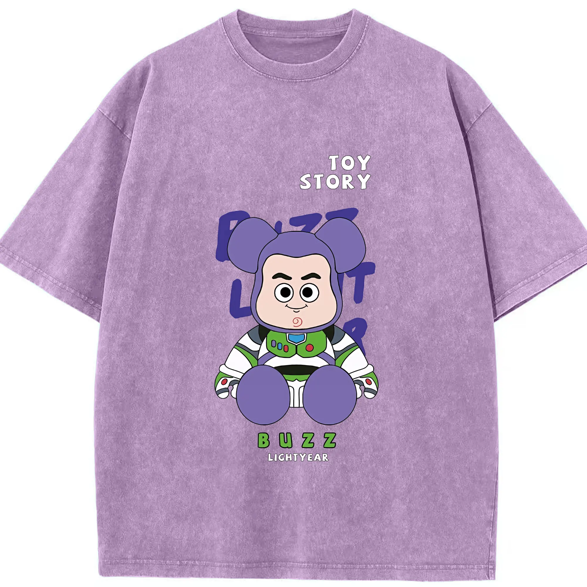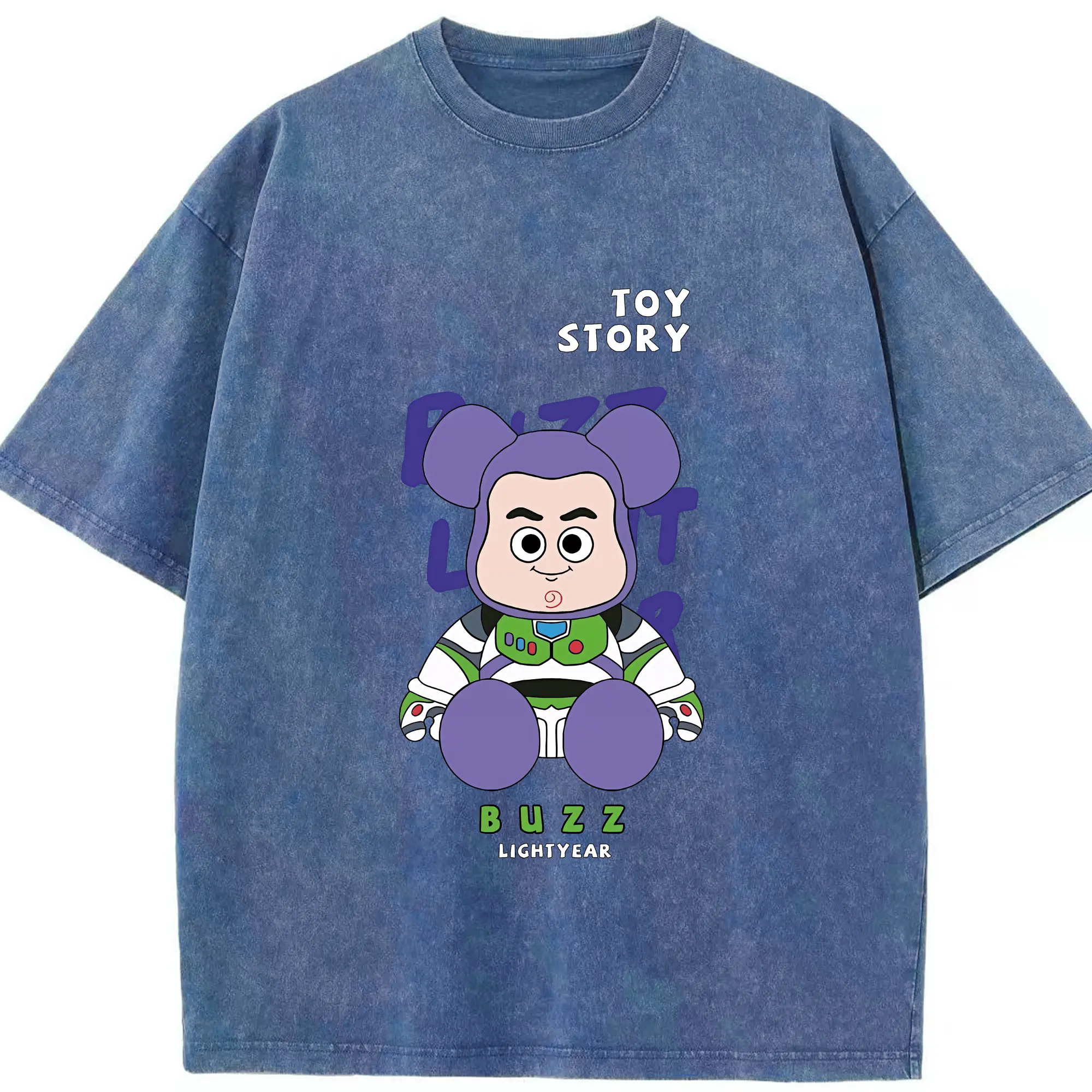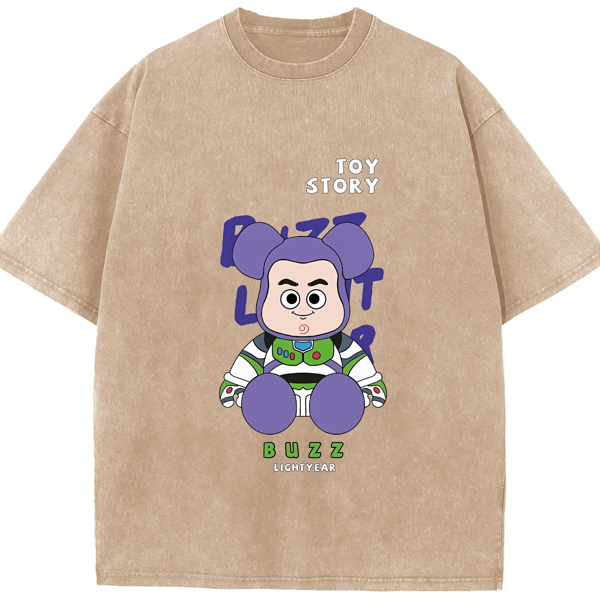 トイ・ストーリー グッズ バズ・ライトイヤー - 綿100% ヴィンテージ風 半袖Tシャツ ・ 背面プリント ・ 柔らか肌触り ・ 通気性 快適 ・ スポーツ カジュアル 外出用