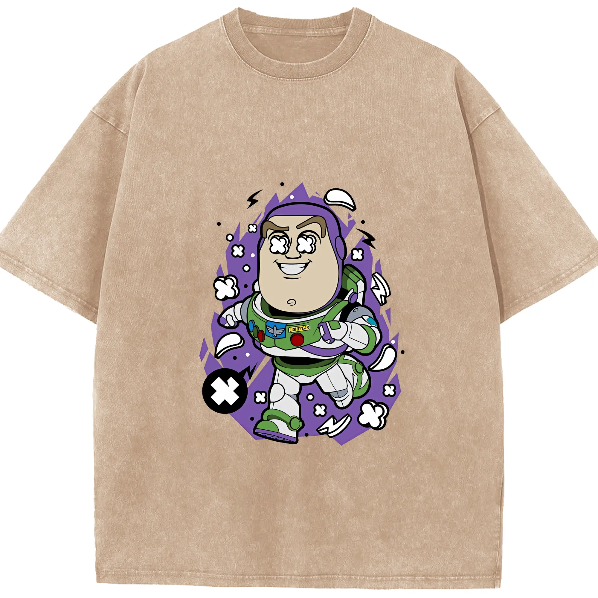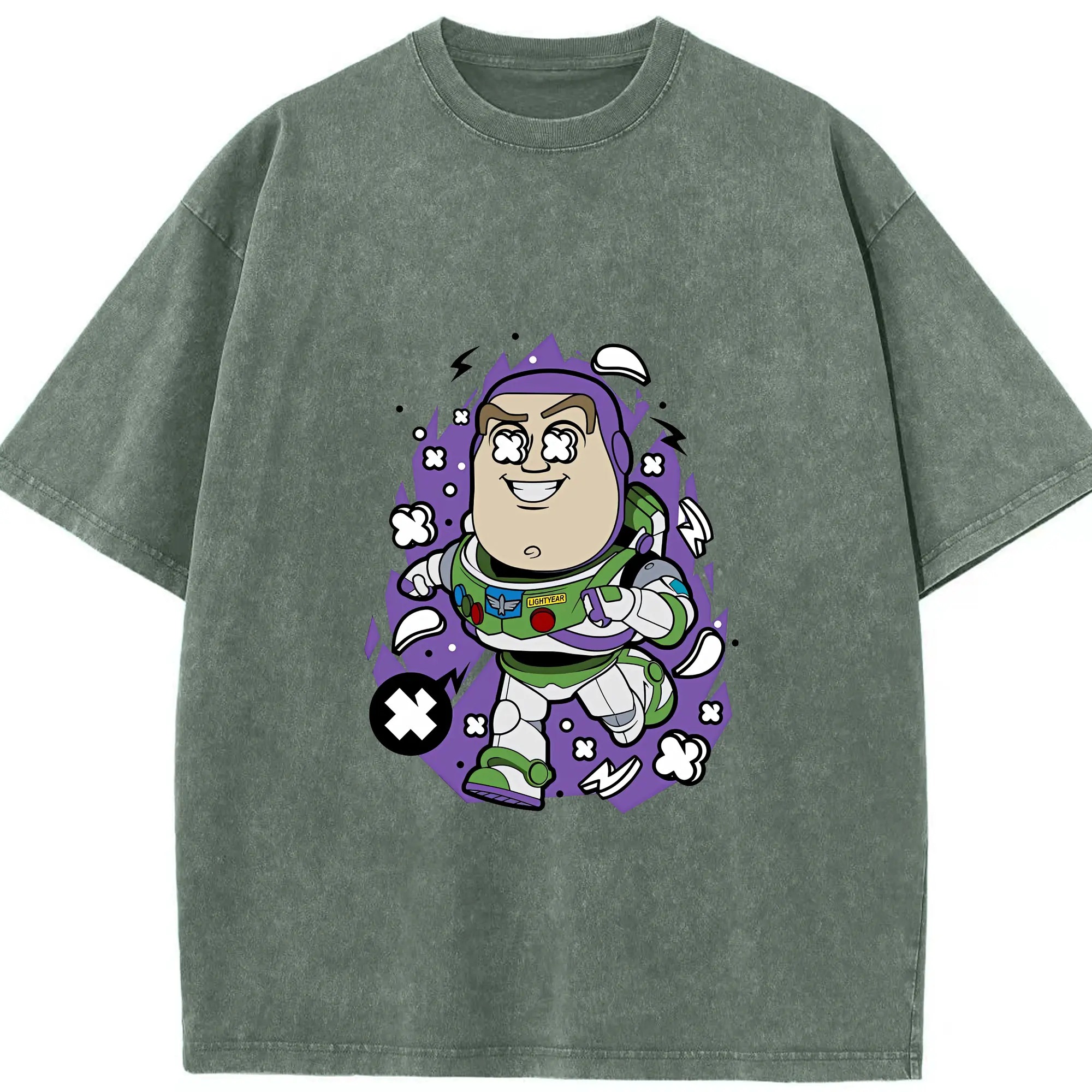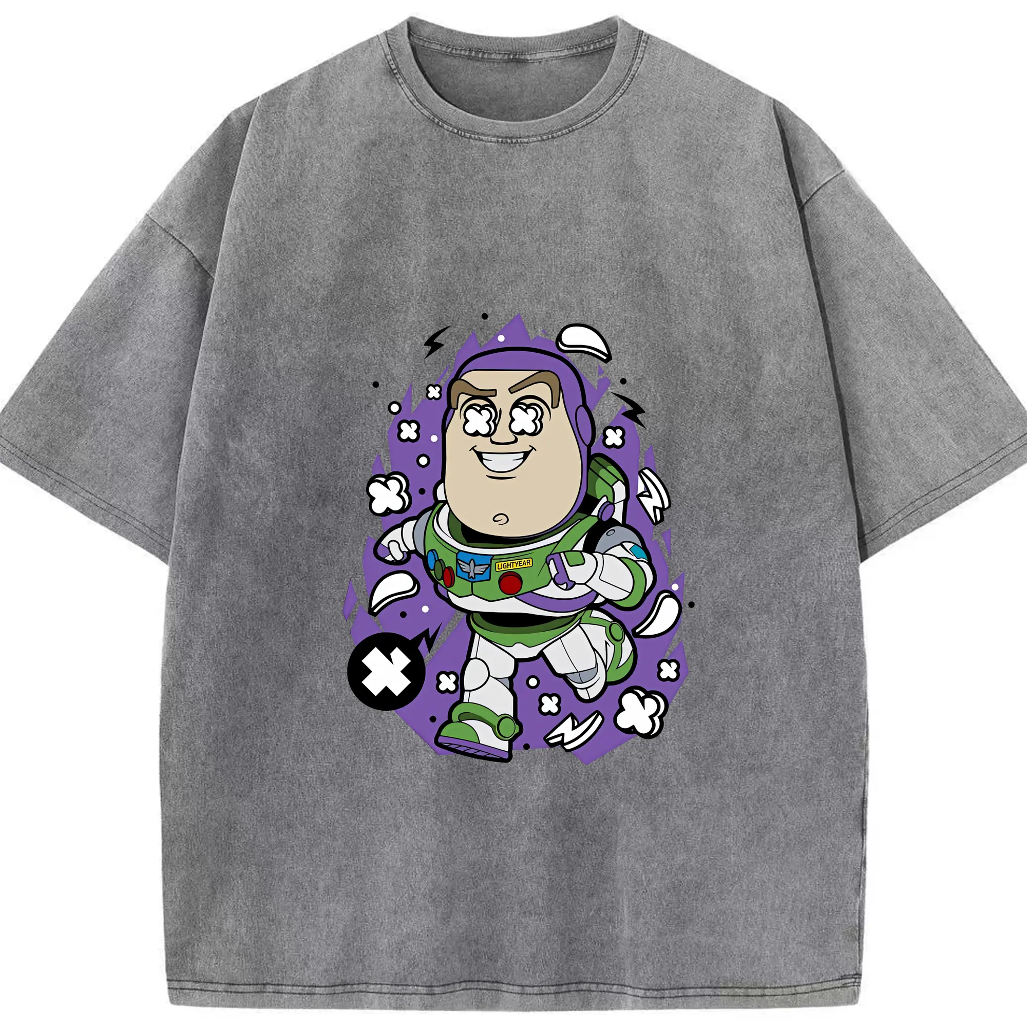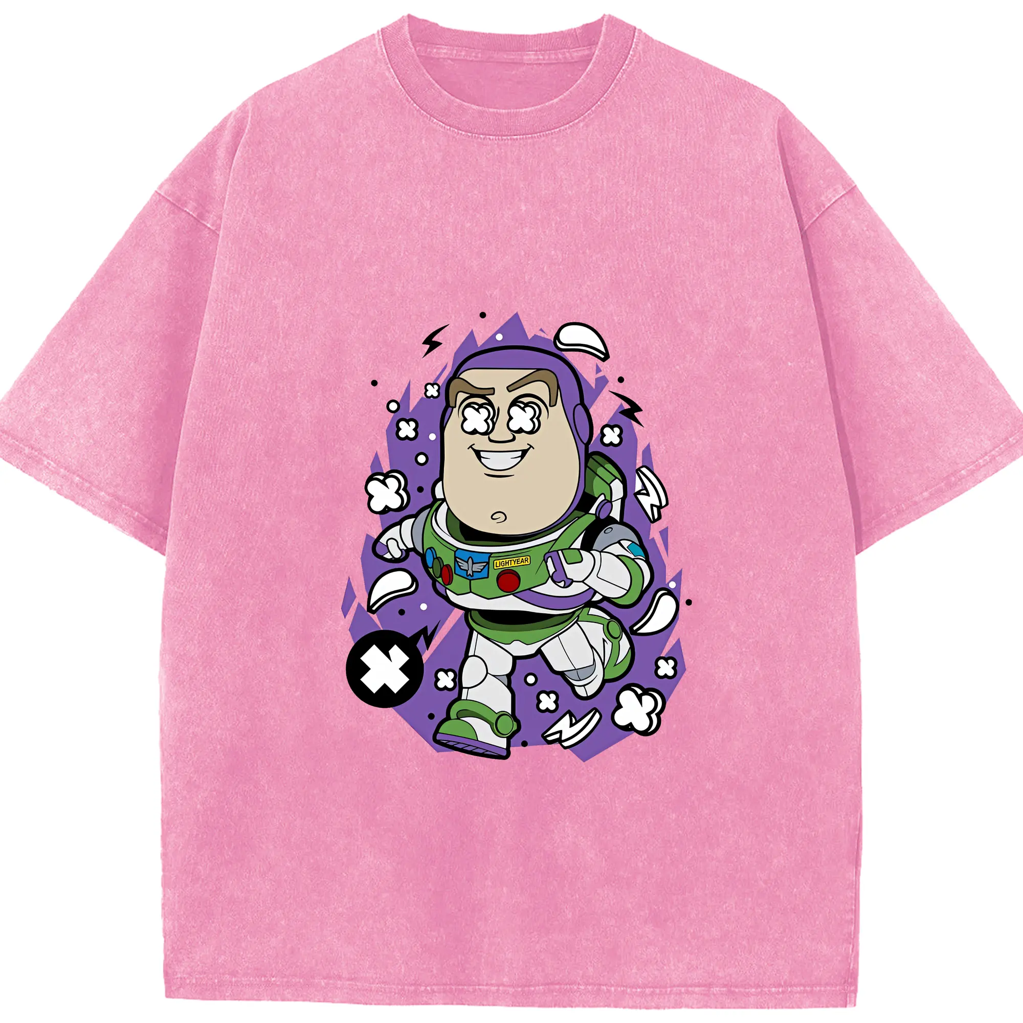 トイ・ストーリー グッズ バズ・ライトイヤー - 綿100% ヴィンテージ風 半袖Tシャツ ・ 背面プリント ・ 柔らか肌触り ・ 通気性 快適 ・ スポーツ カジュアル 外出用