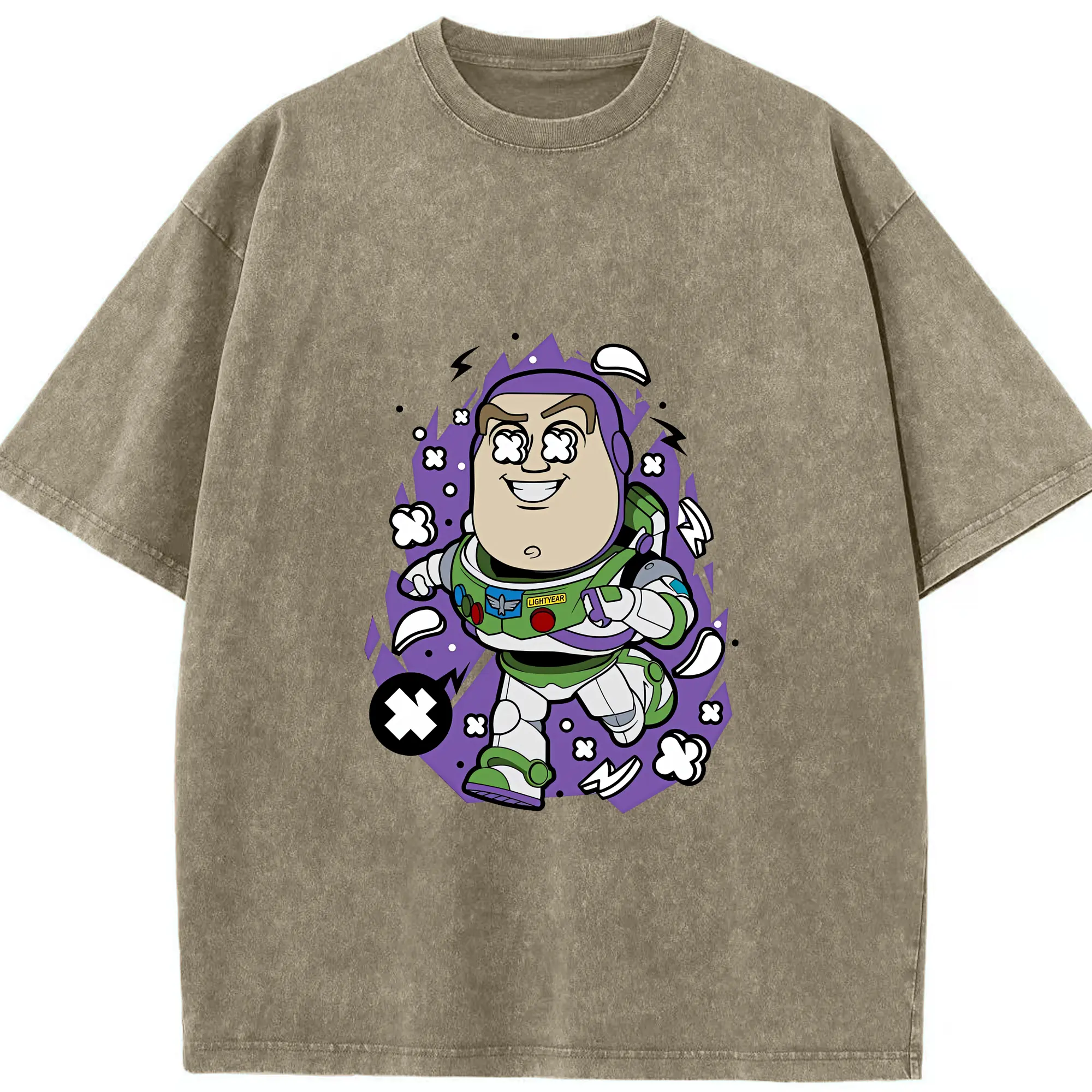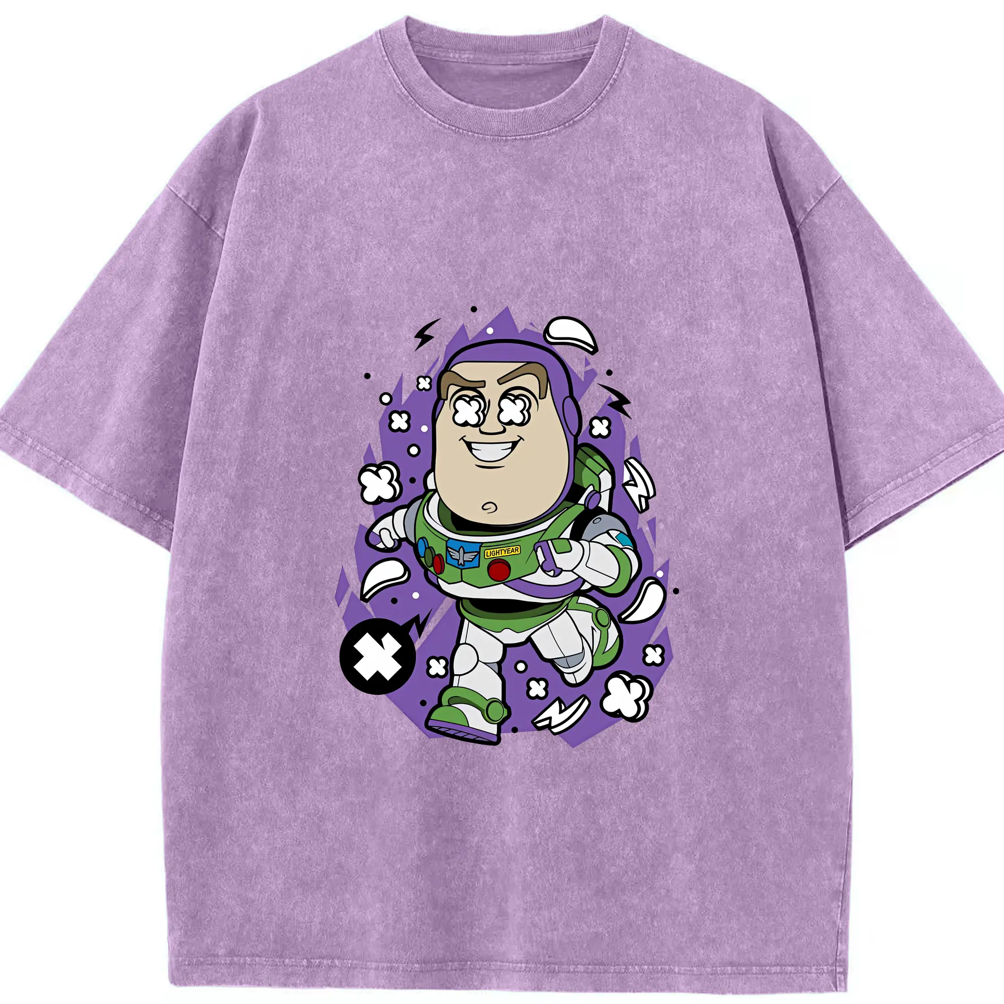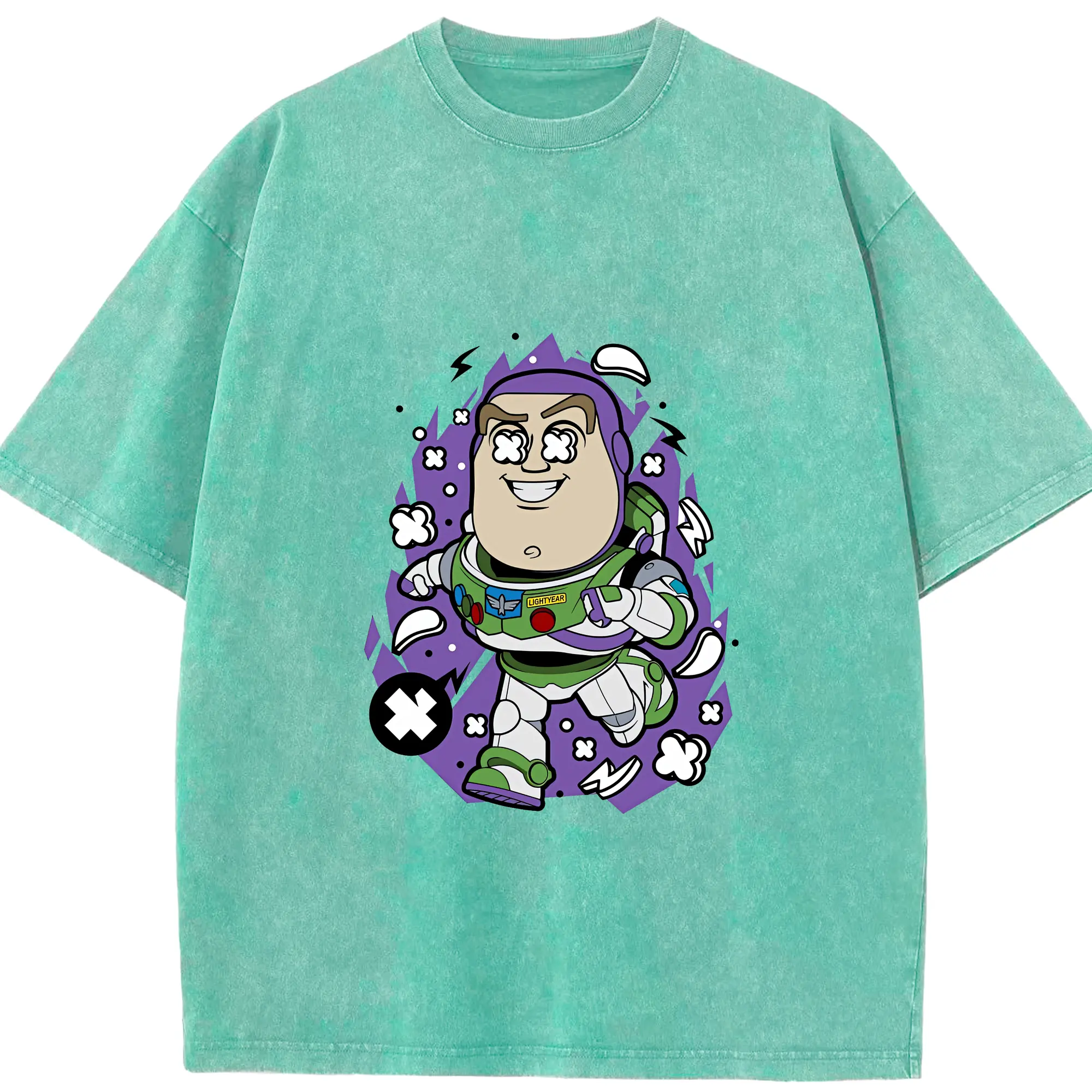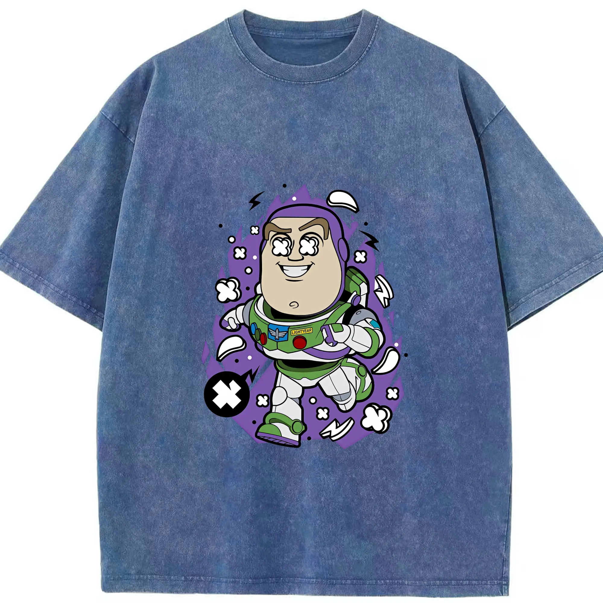 トイ・ストーリー グッズ バズ・ライトイヤー - 綿100% ヴィンテージ風 半袖Tシャツ ・ フロントプリント ・ 柔らか肌触り ・ 通気性 快適 ・ スポーツ カジュアル 外出用
