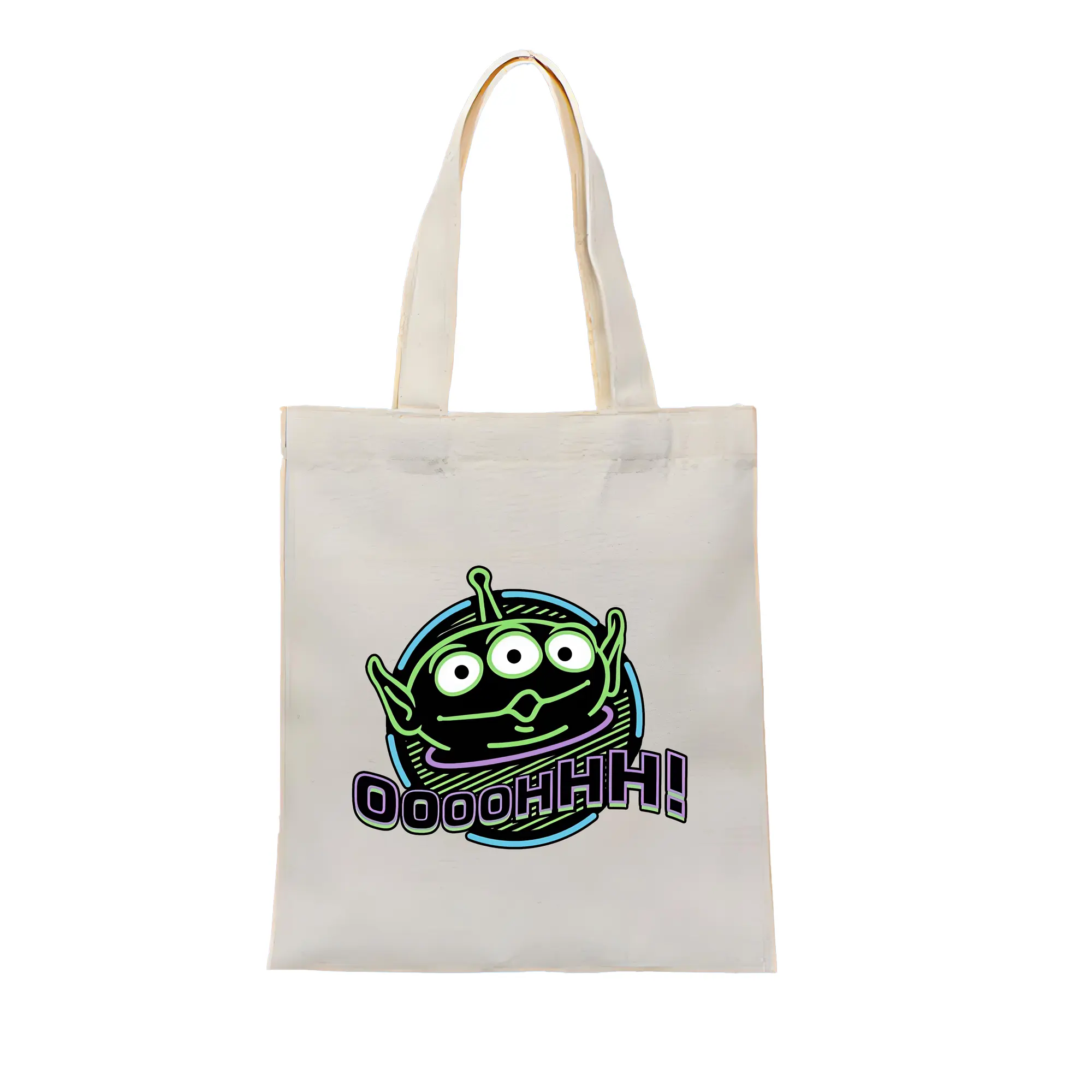 トイ・ストーリー グッズ リトル・グリーン・メン - 縦型キャンバス手提げバッグ(トートバッグ) ・ キャンバス素材 ・ ショッピング用 ・ 軽量 丈夫 お手入れ簡単