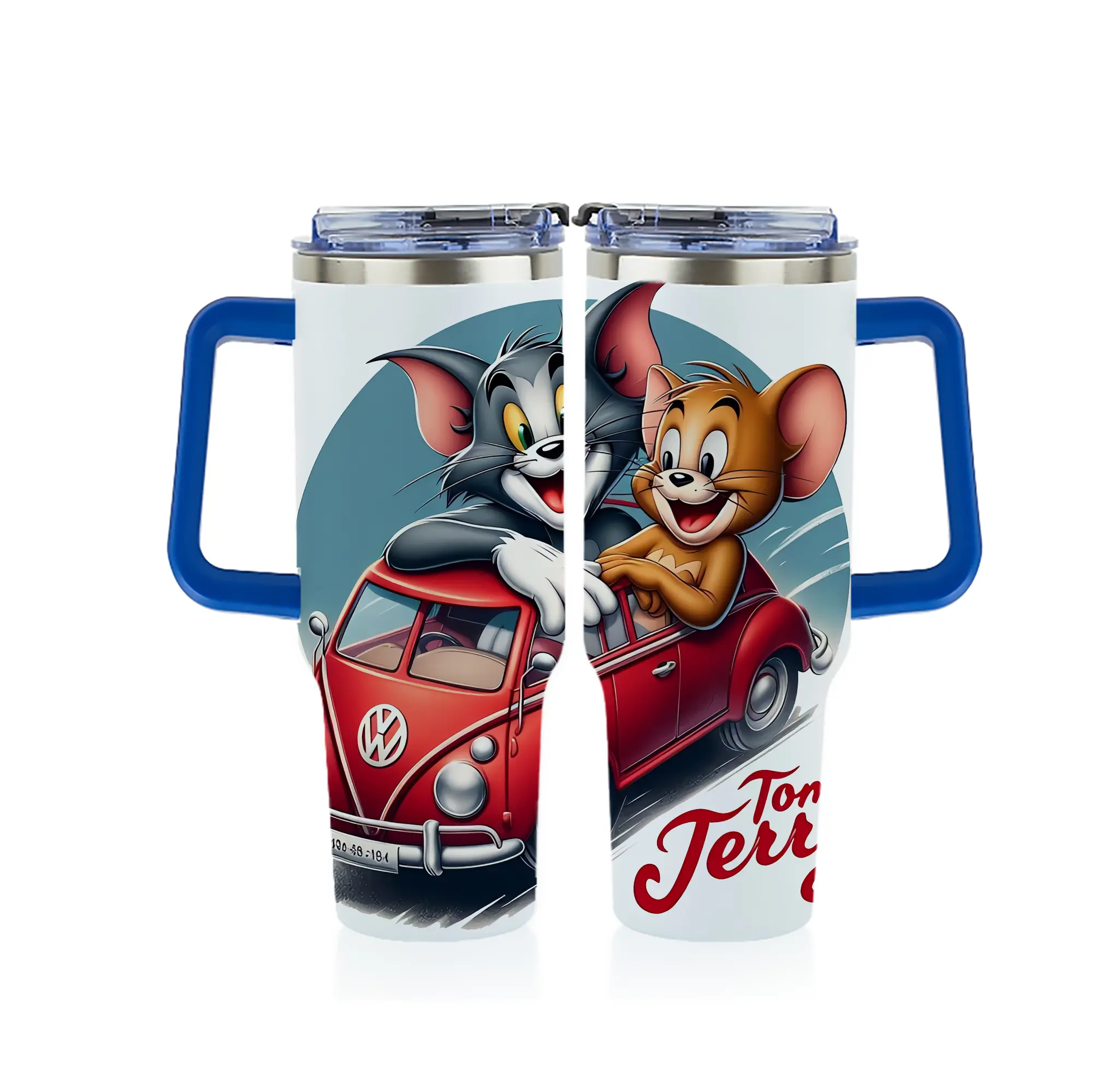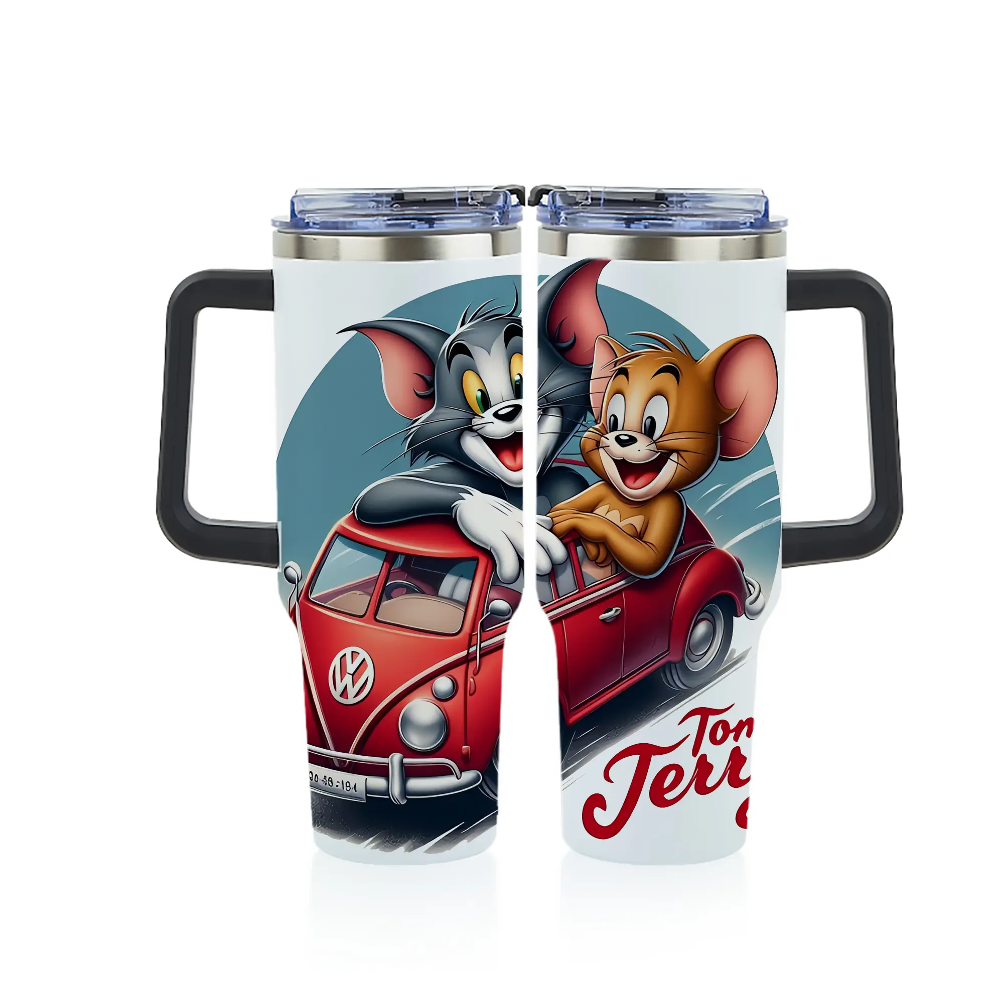 トムとジェリー グッズ トム - 1200mL フルプリント車用タンブラー ・ 304ステンレス 内側 ・ 201ステンレス 外側 ・ 保温 保冷 ・ 通勤 ドライブ アウトドア用