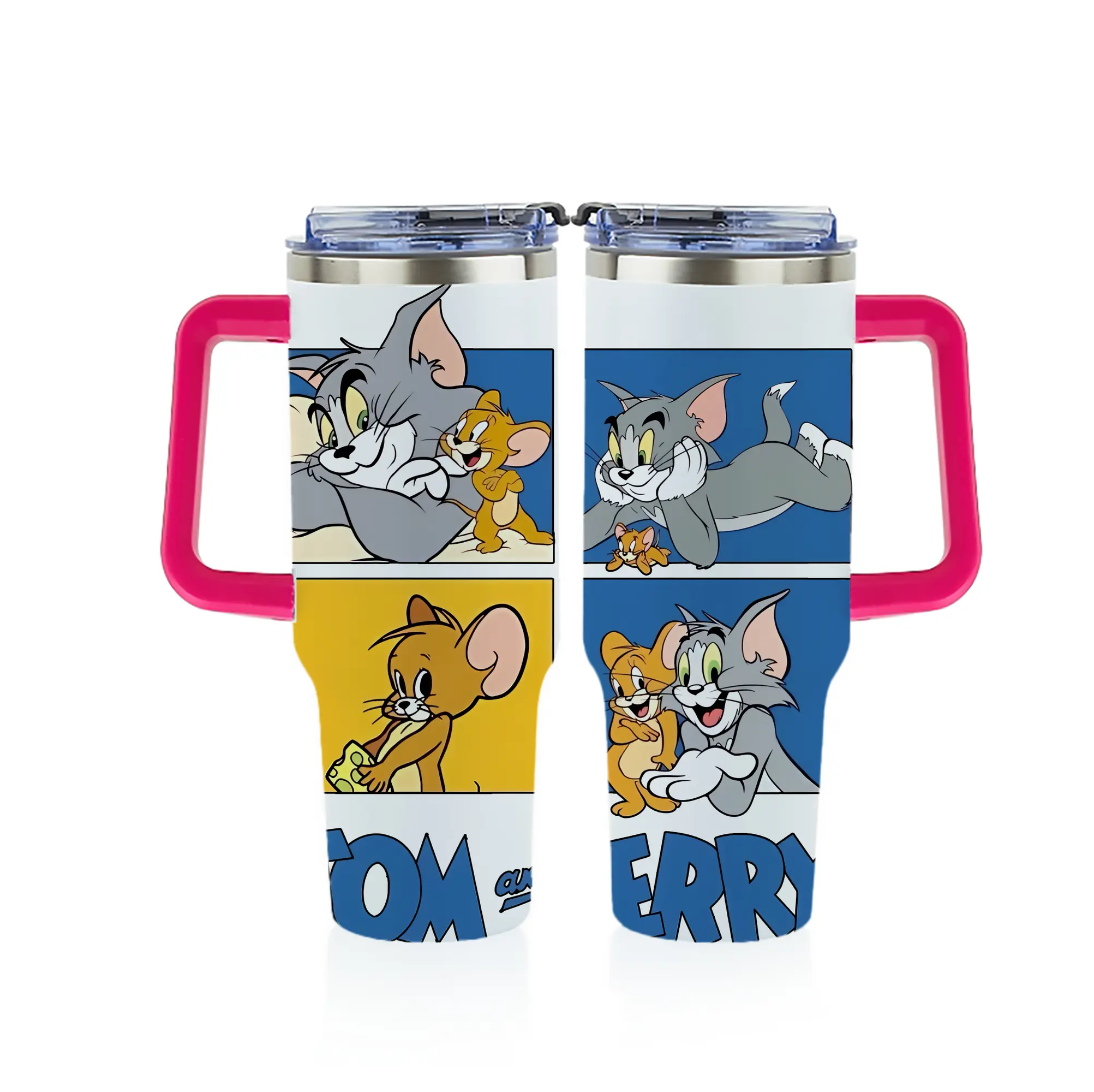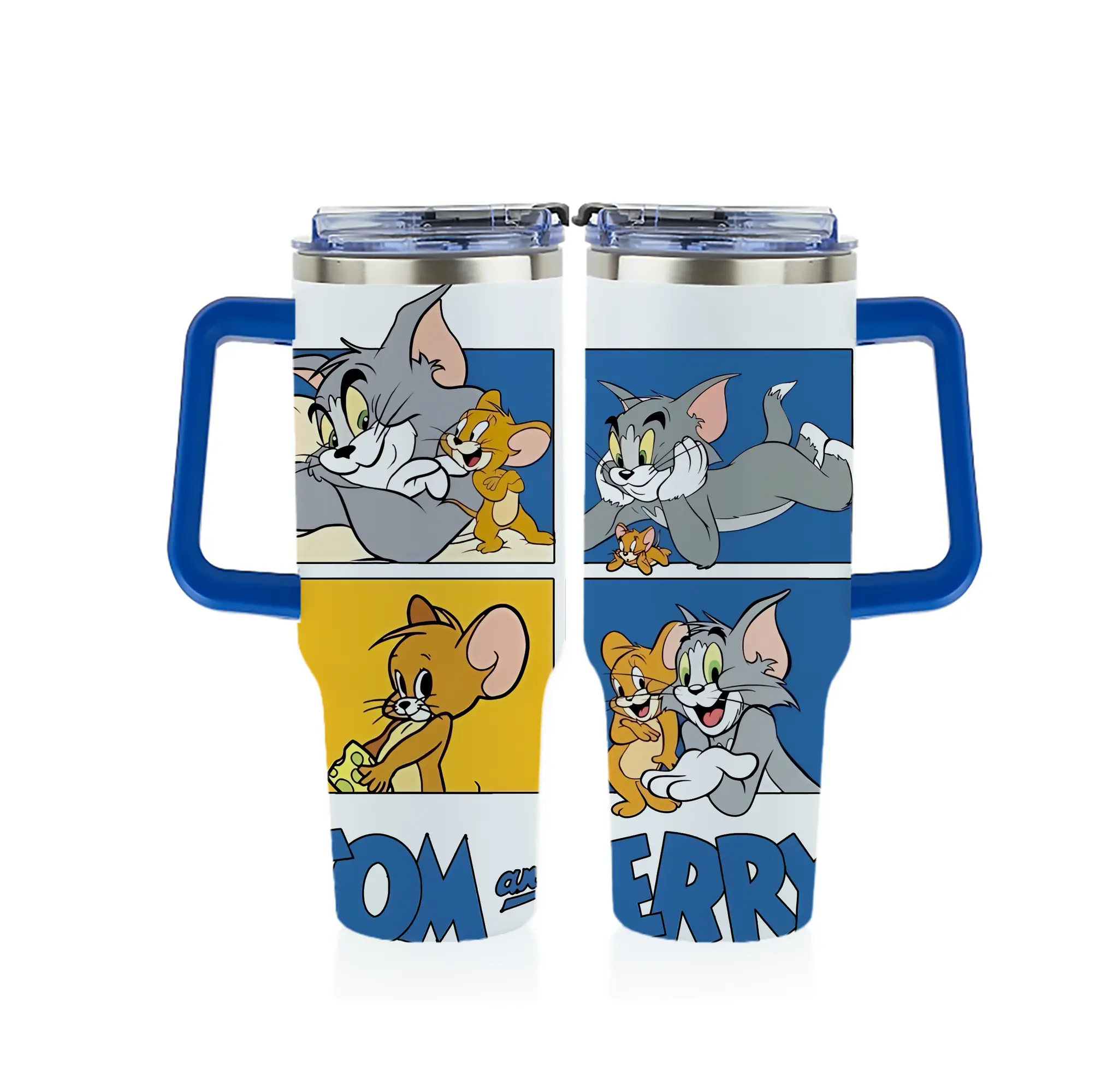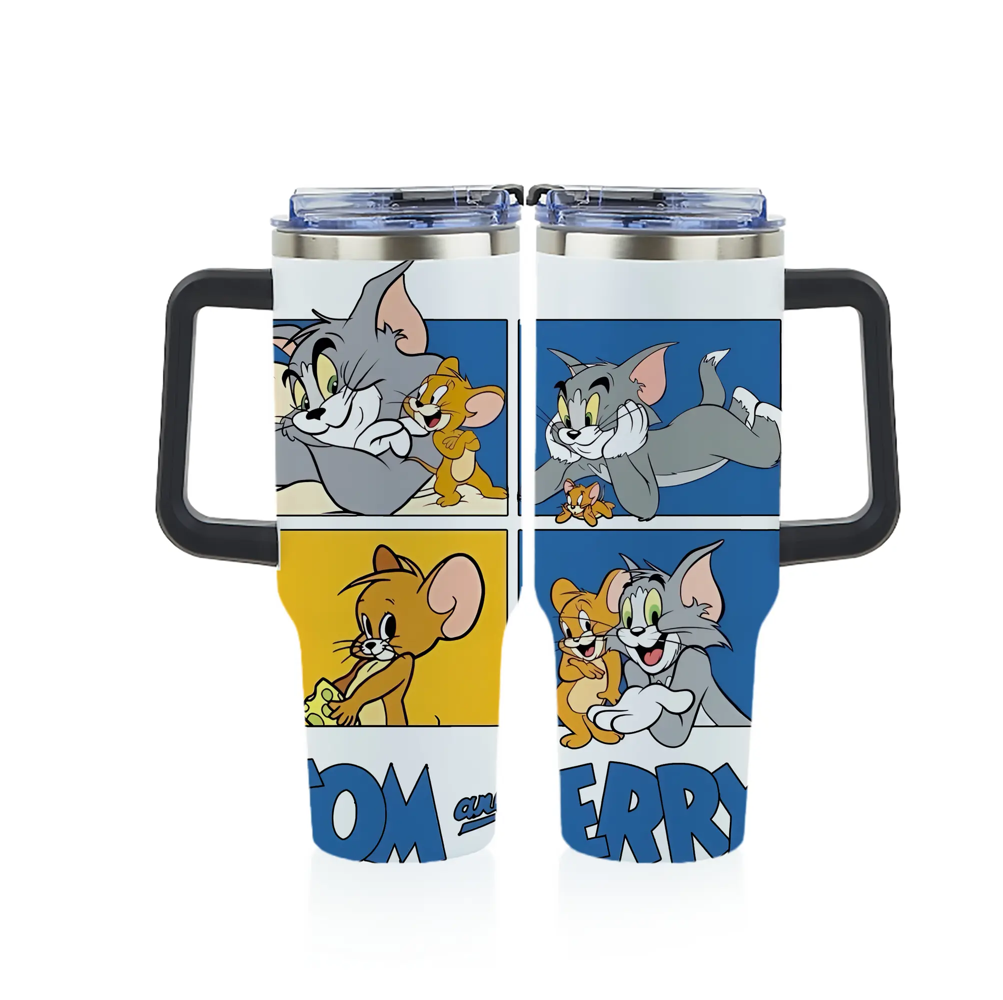 トムとジェリー グッズ トム - 1200mL フルプリント車用タンブラー ・ 304ステンレス 内側 ・ 201ステンレス 外側 ・ 保温 保冷 ・ 通勤 ドライブ アウトドア用