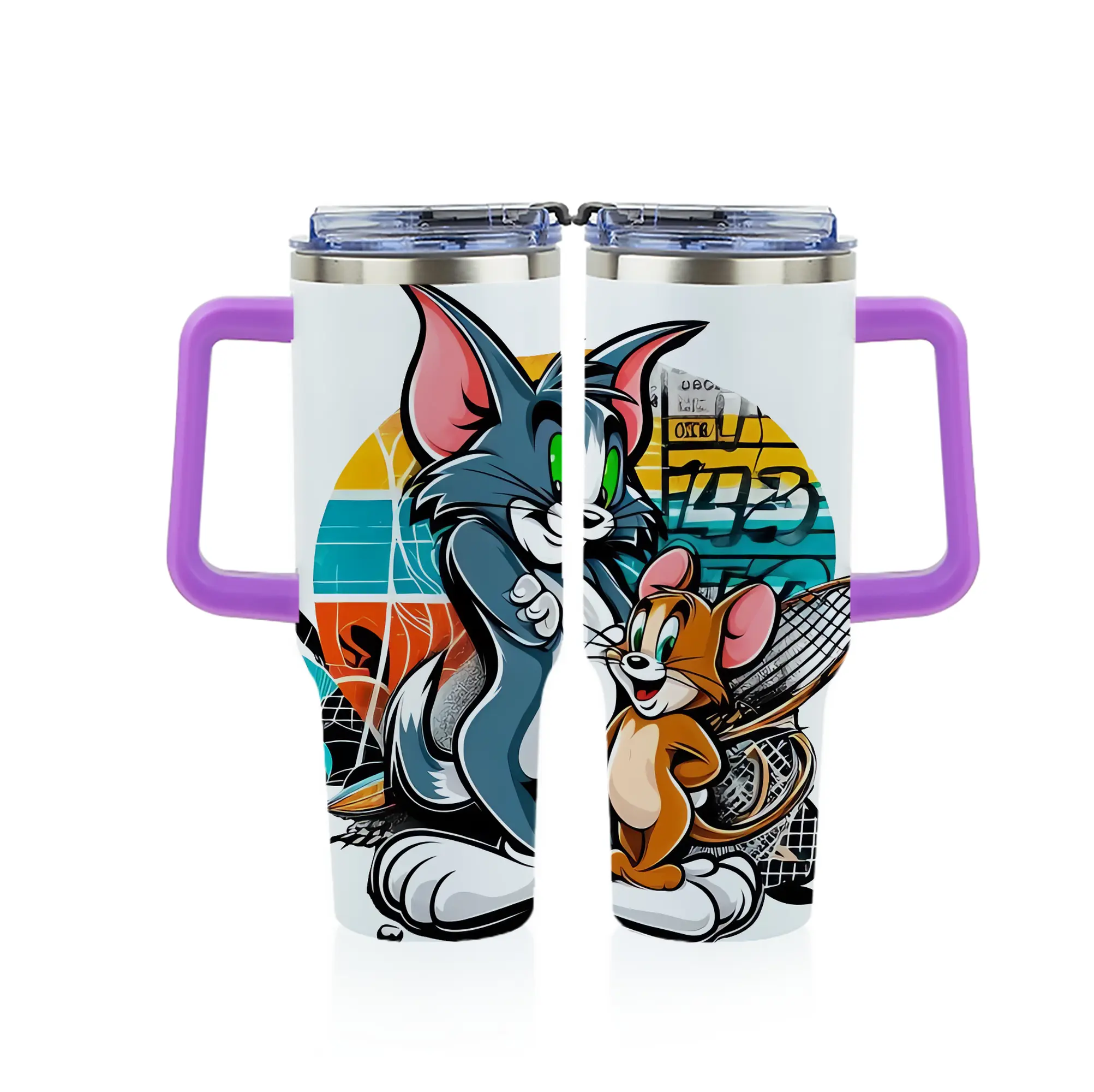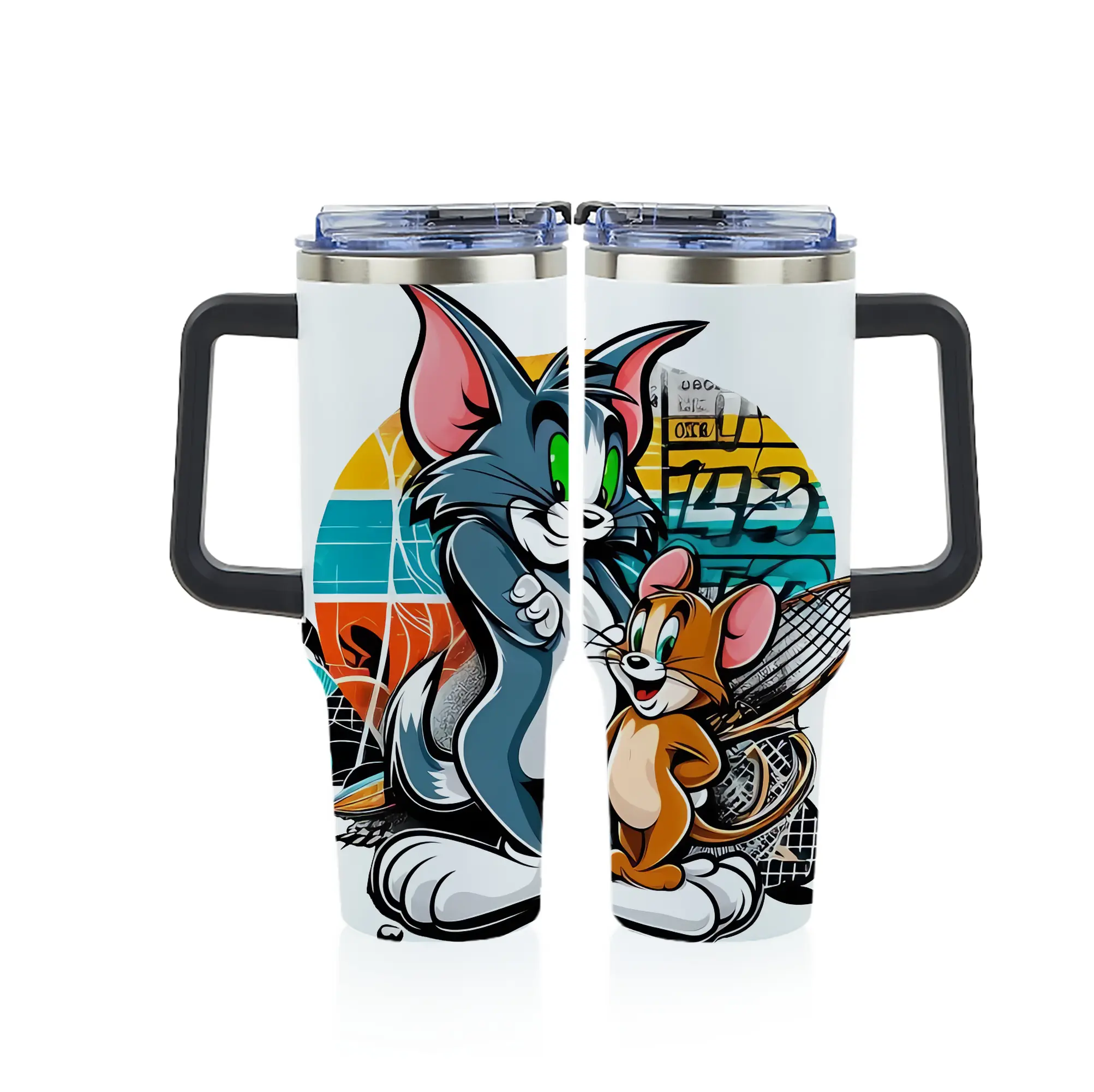 トムとジェリー グッズ トム - 1200mL フルプリント車用タンブラー ・ 304ステンレス 内側 ・ 201ステンレス 外側 ・ 保温 保冷 ・ 通勤 ドライブ アウトドア用