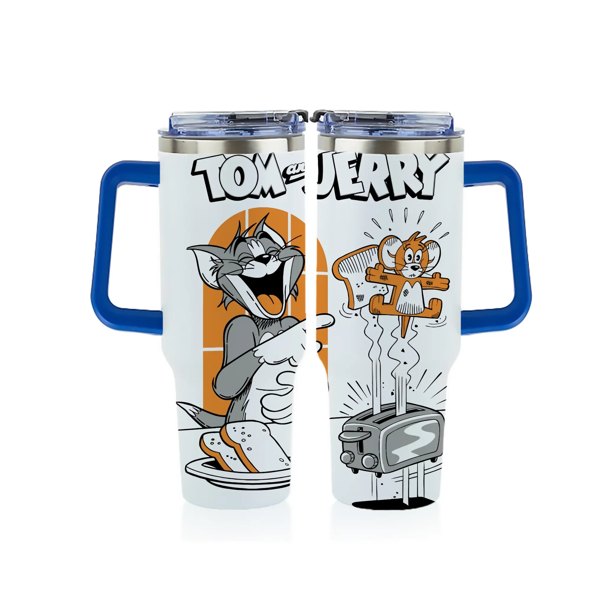 トムとジェリー グッズ トム - 1200mL フルプリント車用タンブラー ・ 304ステンレス 内側 ・ 201ステンレス 外側 ・ 保温 保冷 ・ 通勤 ドライブ アウトドア用