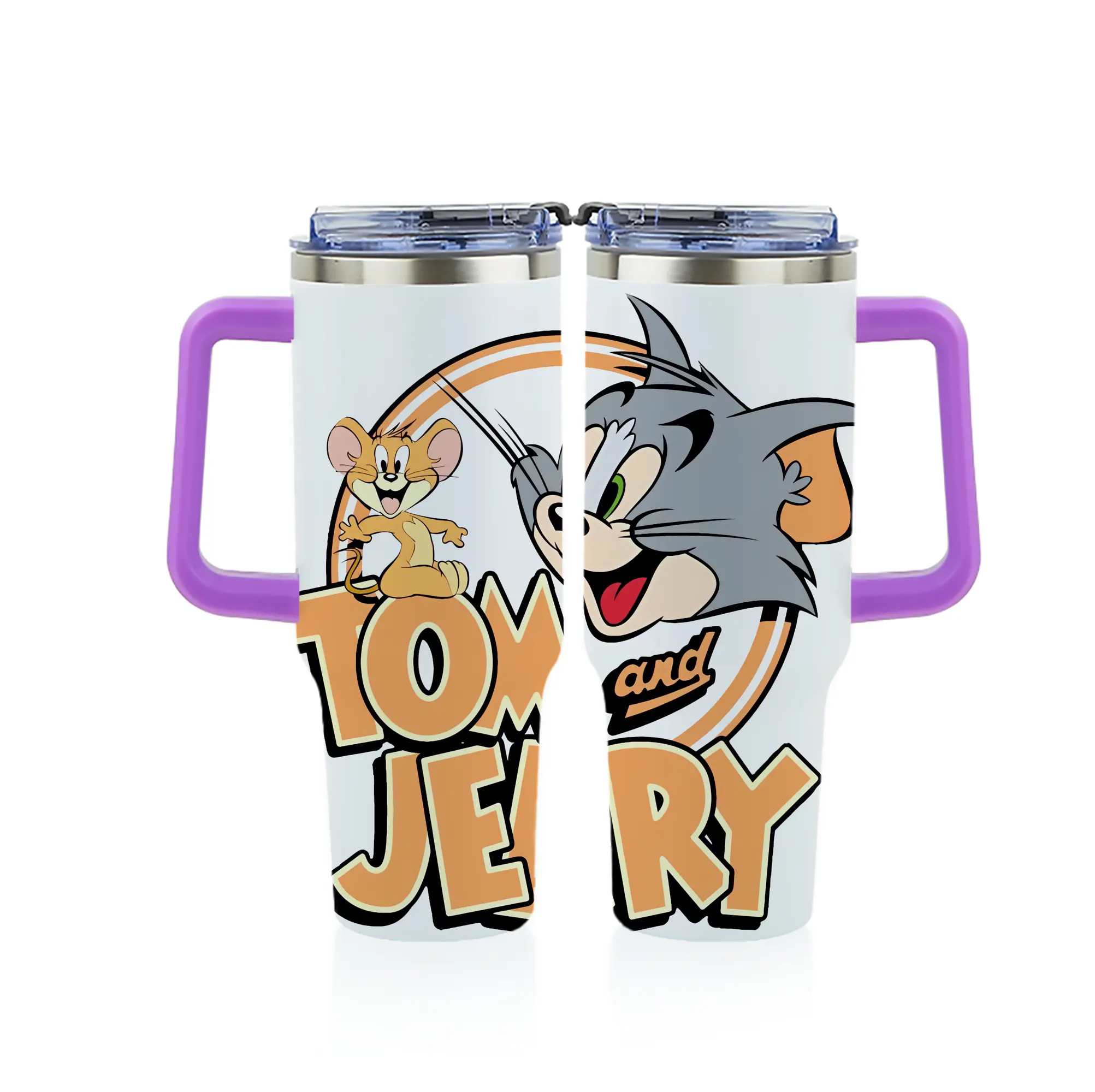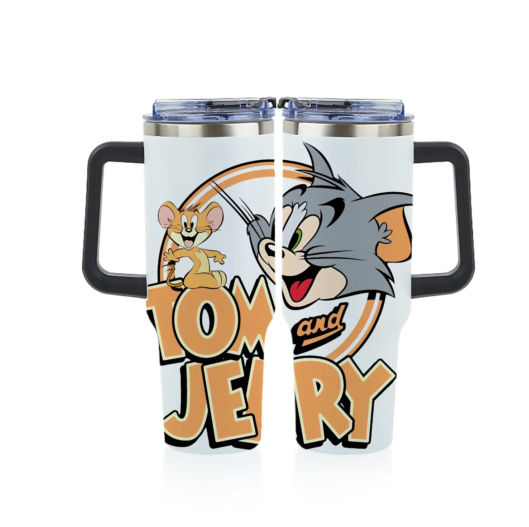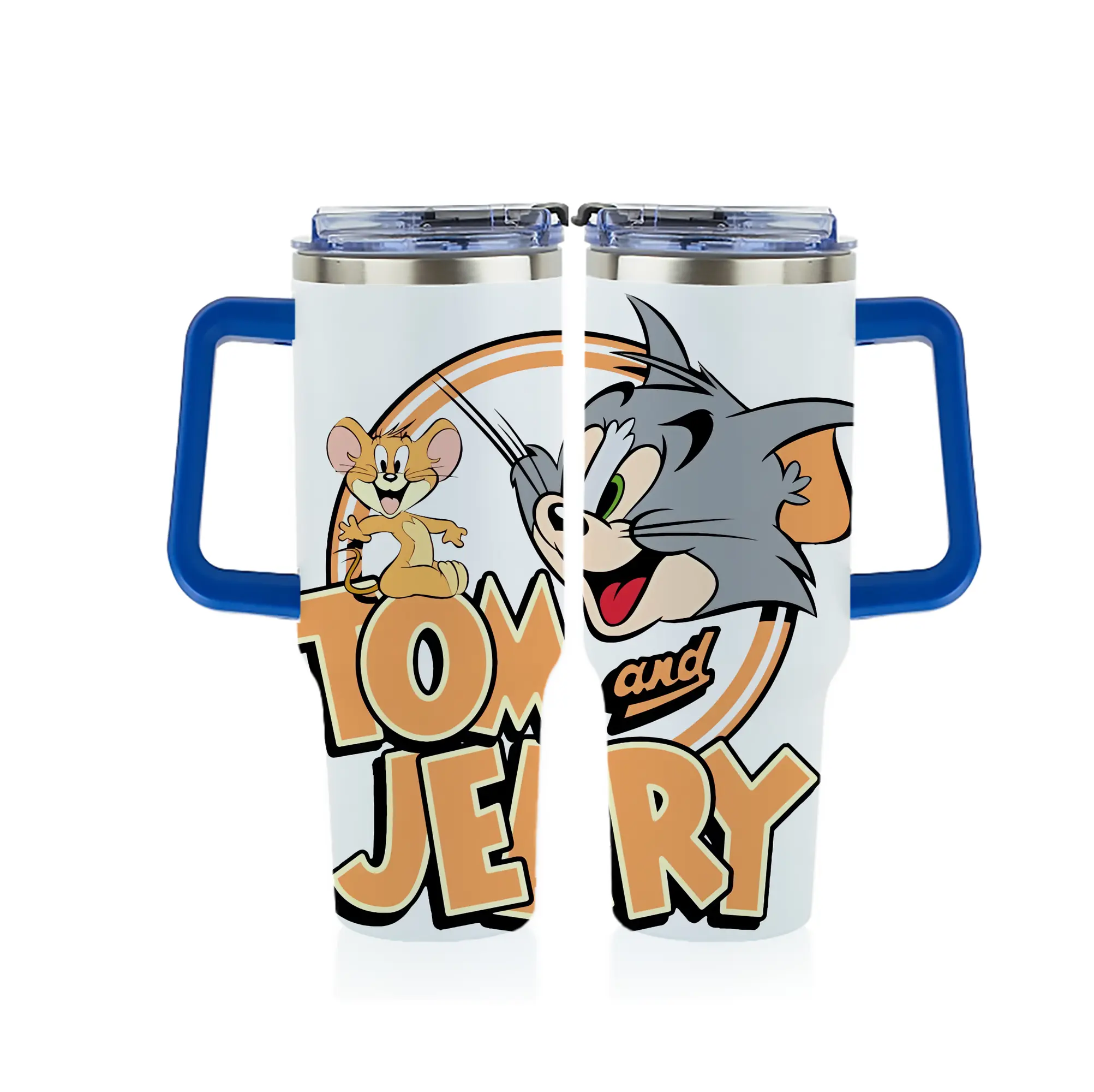 トムとジェリー グッズ トム - 1200mL フルプリント車用タンブラー ・ 304ステンレス 内側 ・ 201ステンレス 外側 ・ 保温 保冷 ・ 通勤 ドライブ アウトドア用