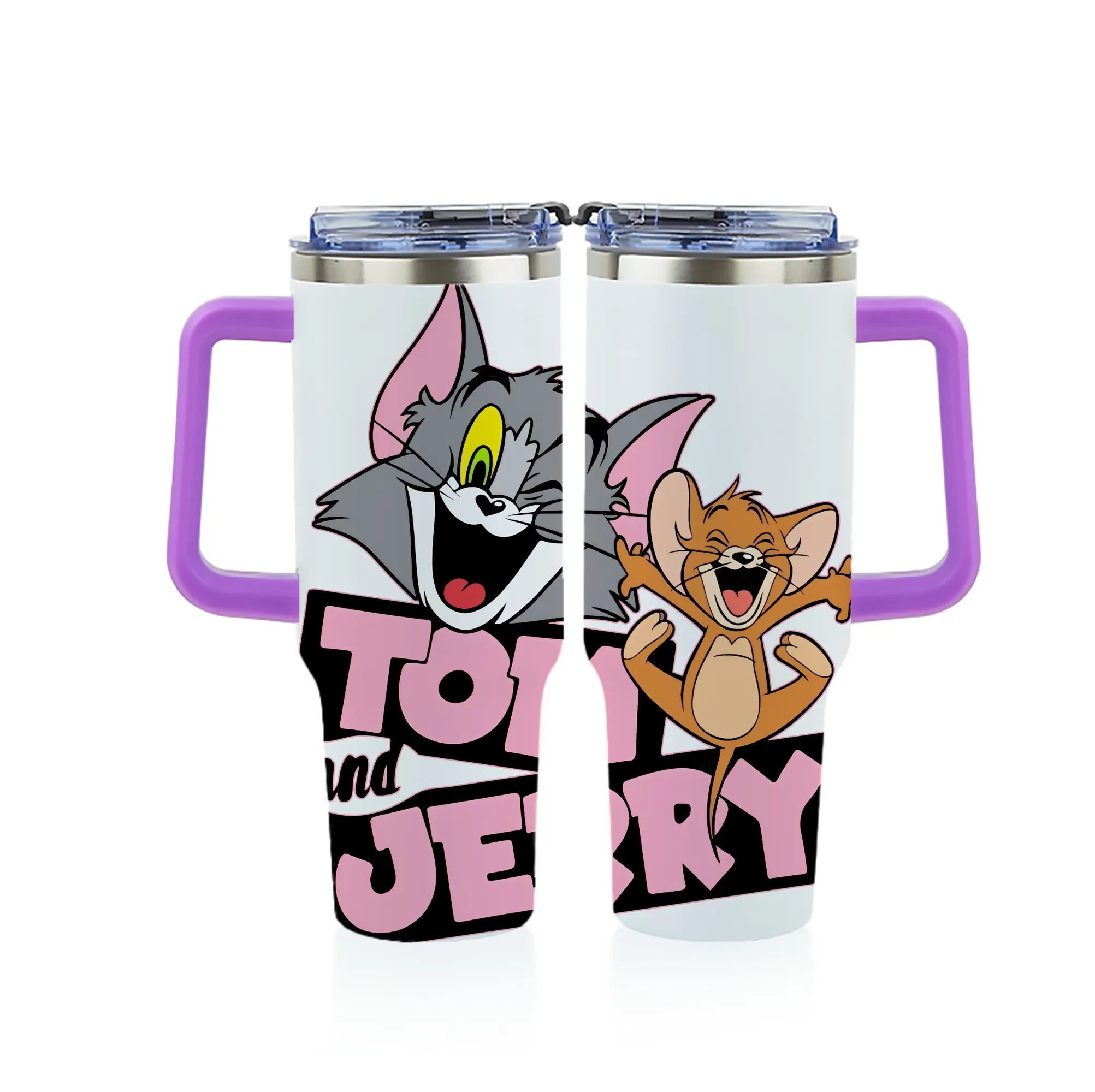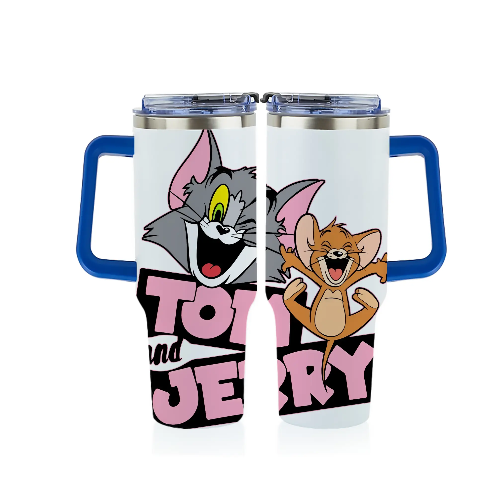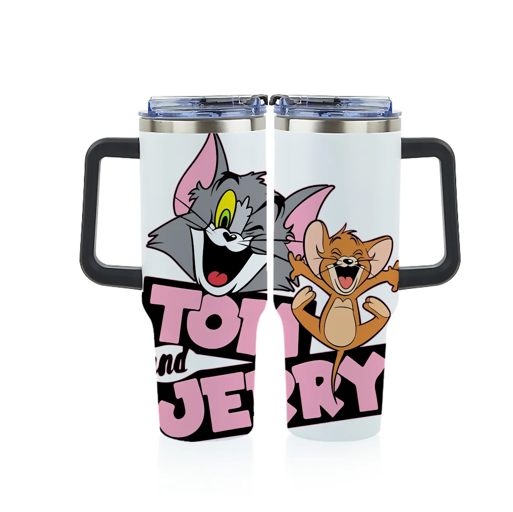 トムとジェリー グッズ トム - 1200mL フルプリント車用タンブラー ・ 304ステンレス 内側 ・ 201ステンレス 外側 ・ 保温 保冷 ・ 通勤 ドライブ アウトドア用