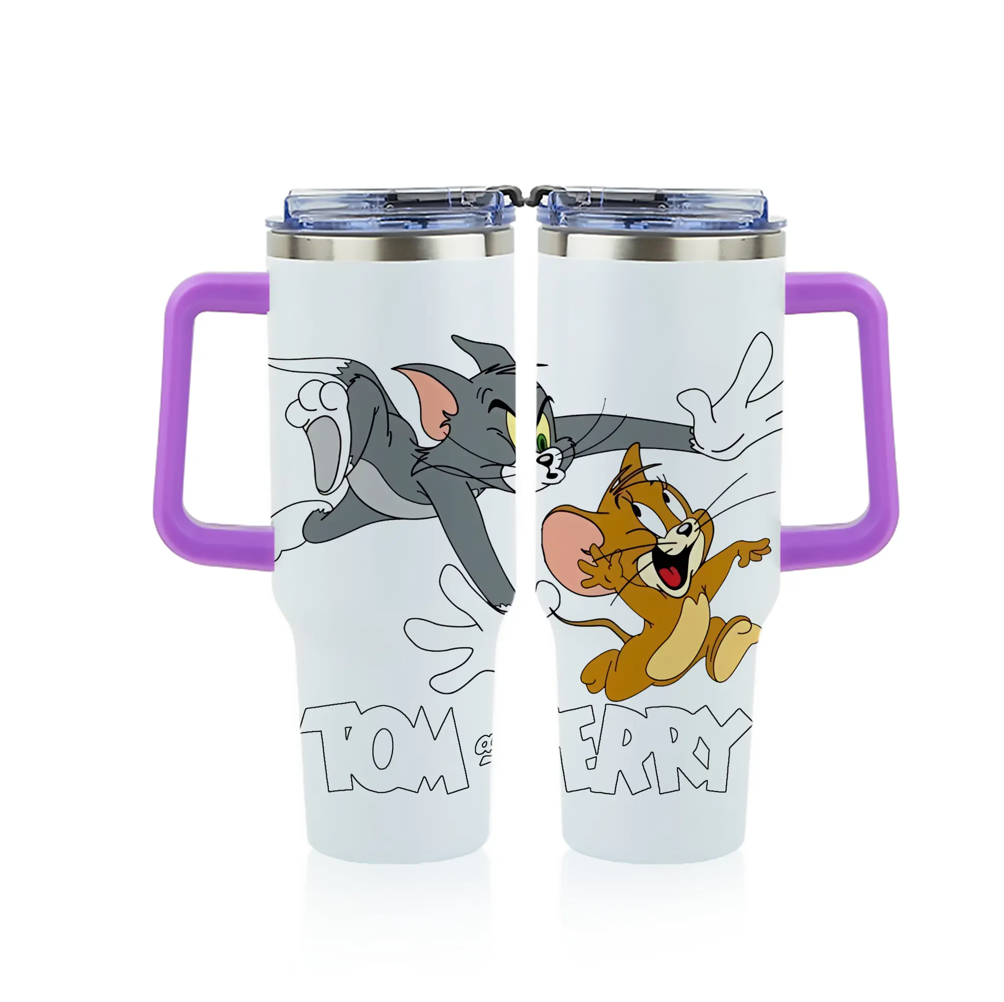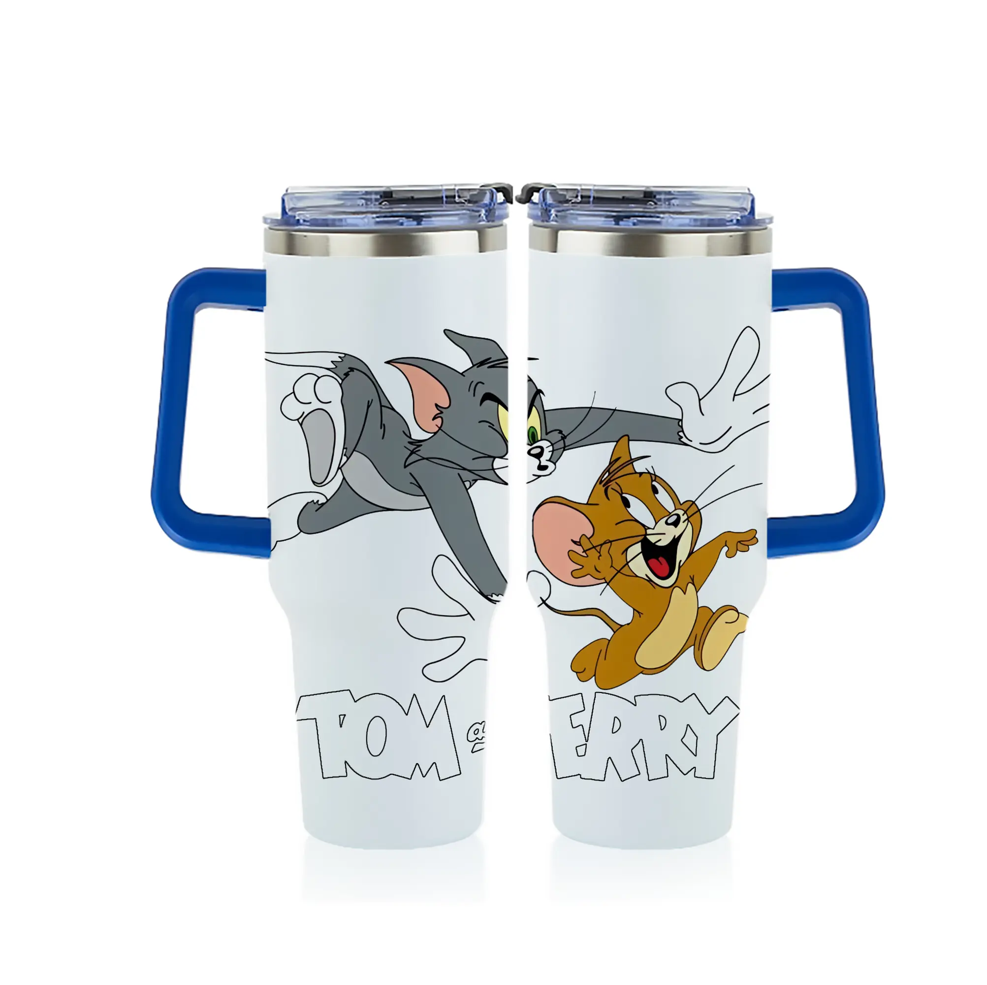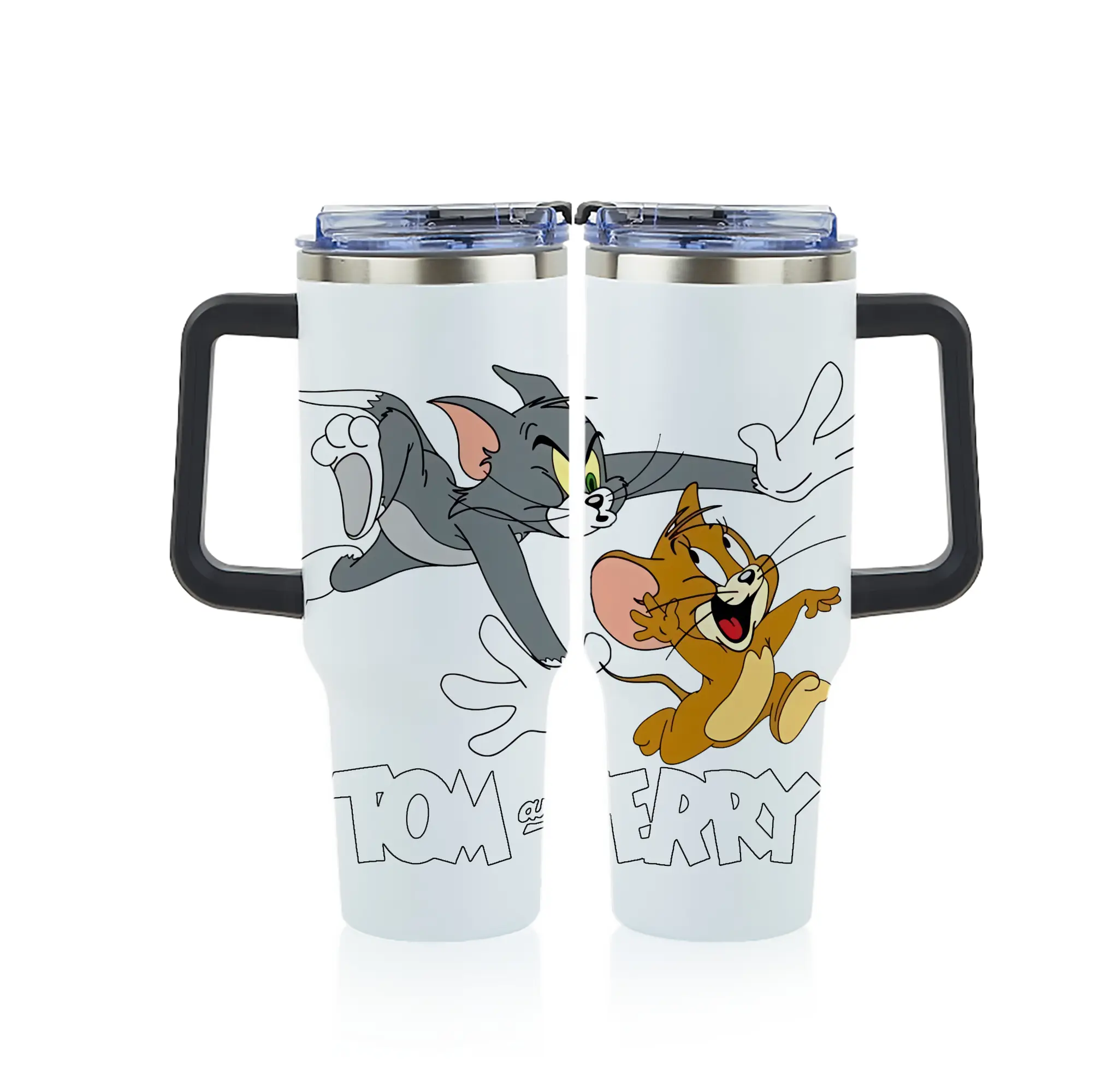 トムとジェリー グッズ トム - 1200mL フルプリント車用タンブラー ・ 304ステンレス 内側 ・ 201ステンレス 外側 ・ 保温 保冷 ・ 通勤 ドライブ アウトドア用