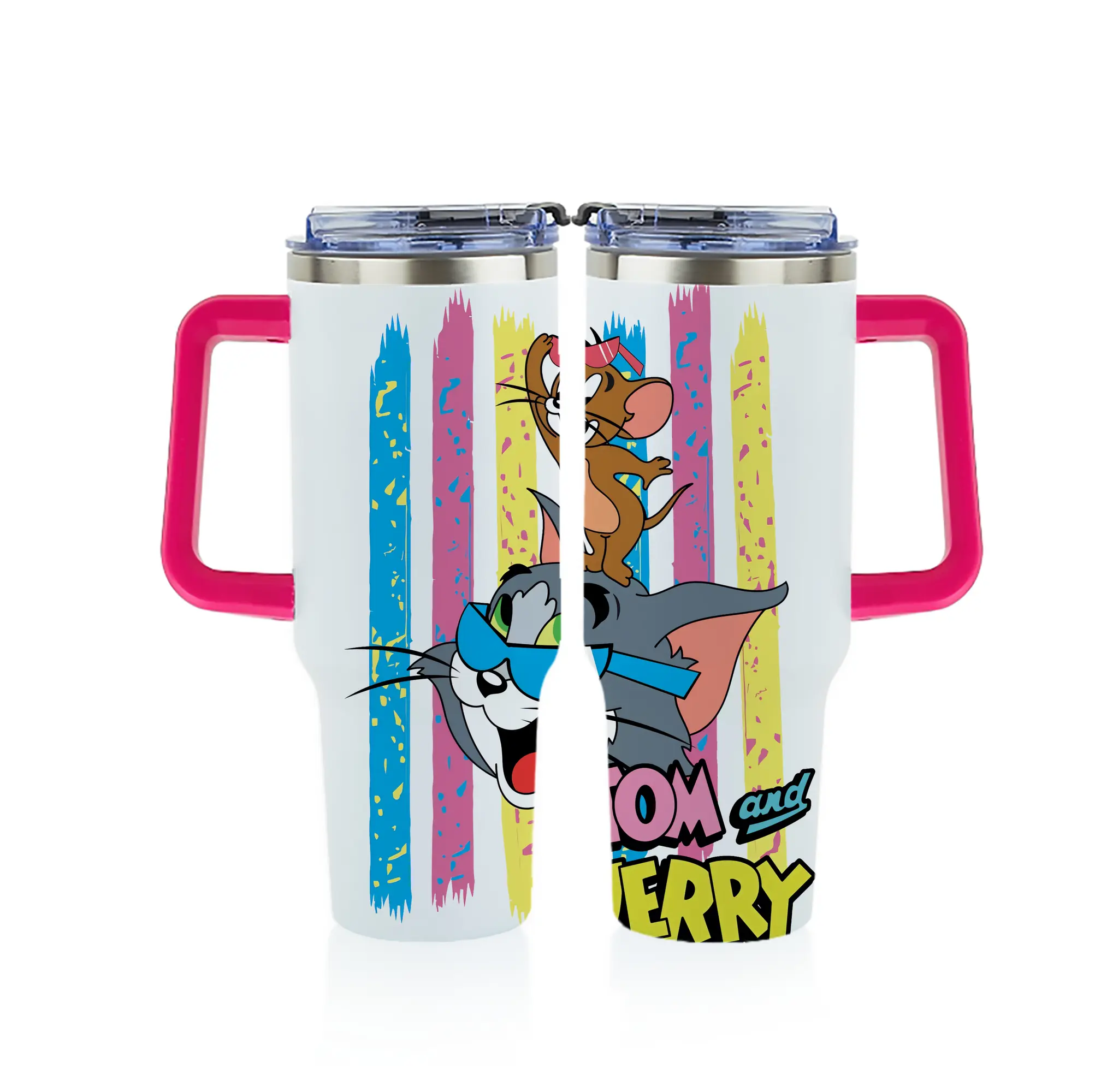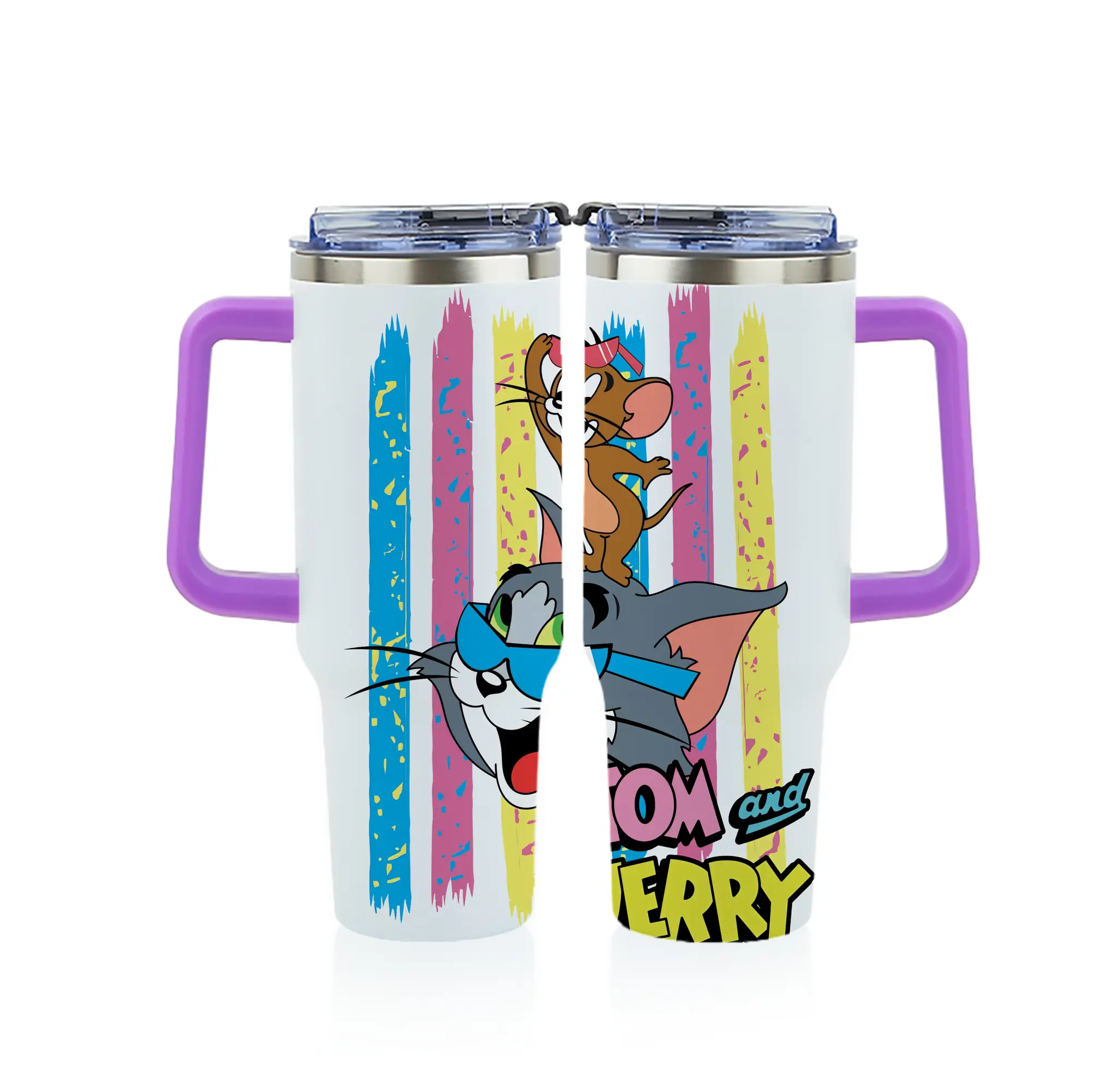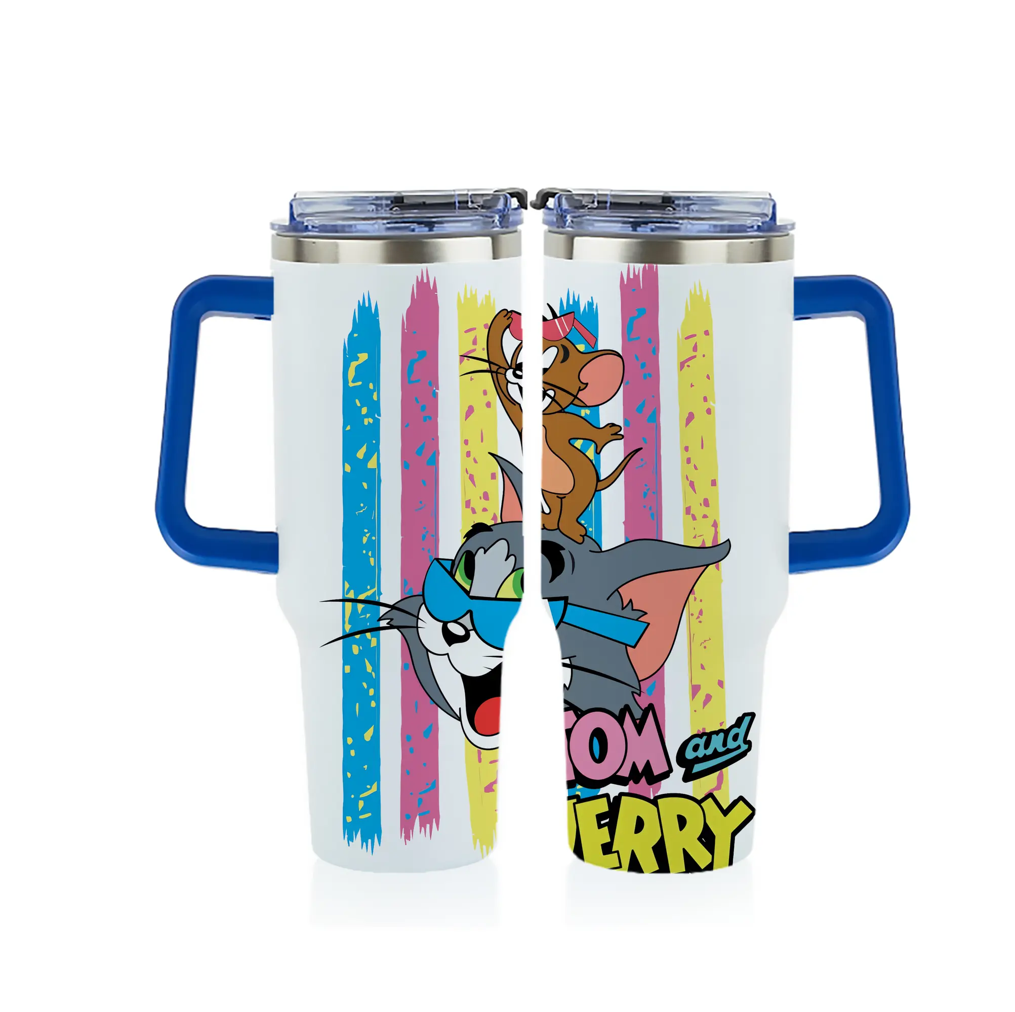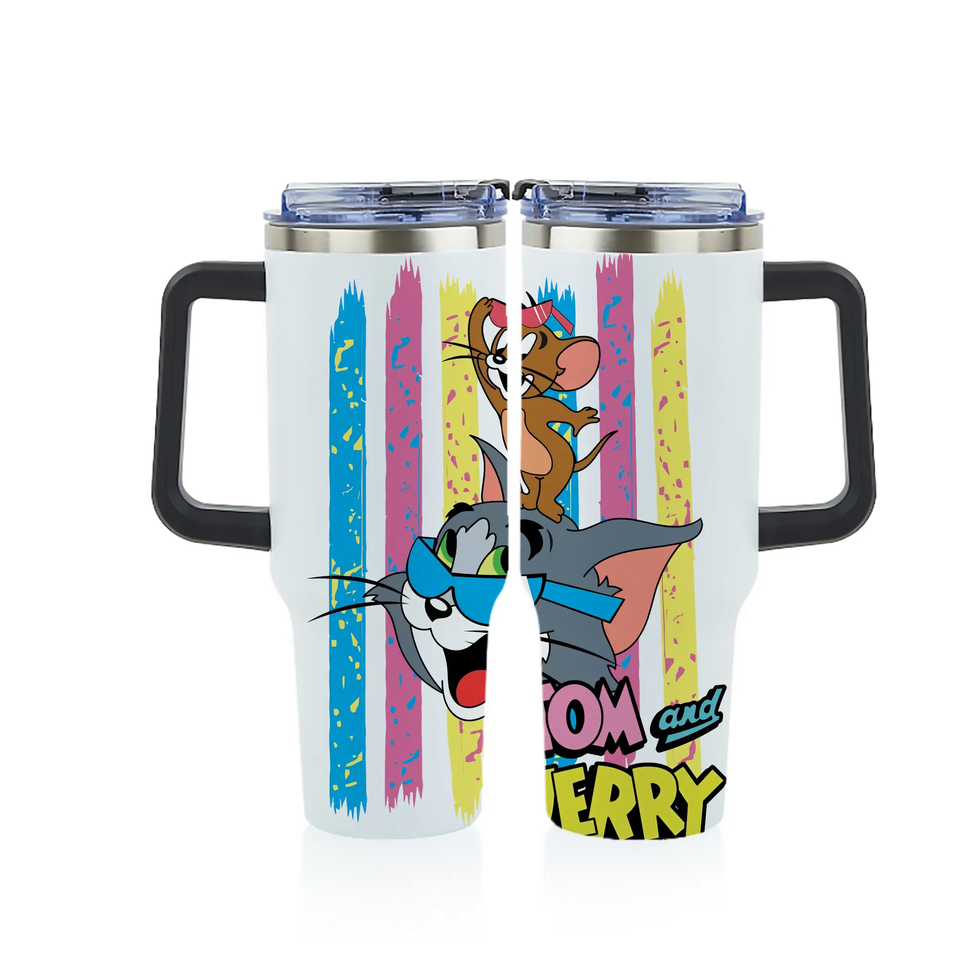 トムとジェリー グッズ トム - 1200mL フルプリント車用タンブラー ・ 304ステンレス 内側 ・ 201ステンレス 外側 ・ 保温 保冷 ・ 通勤 ドライブ アウトドア用