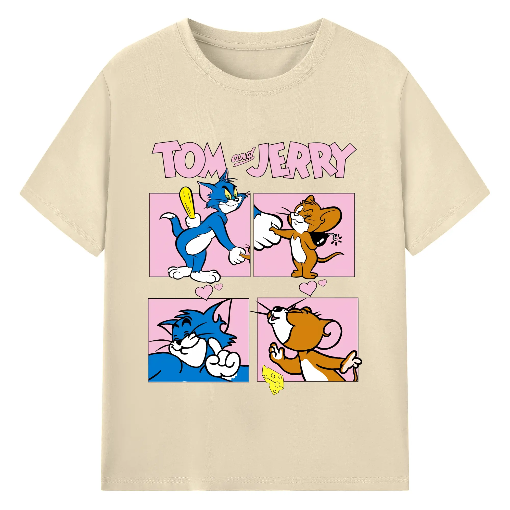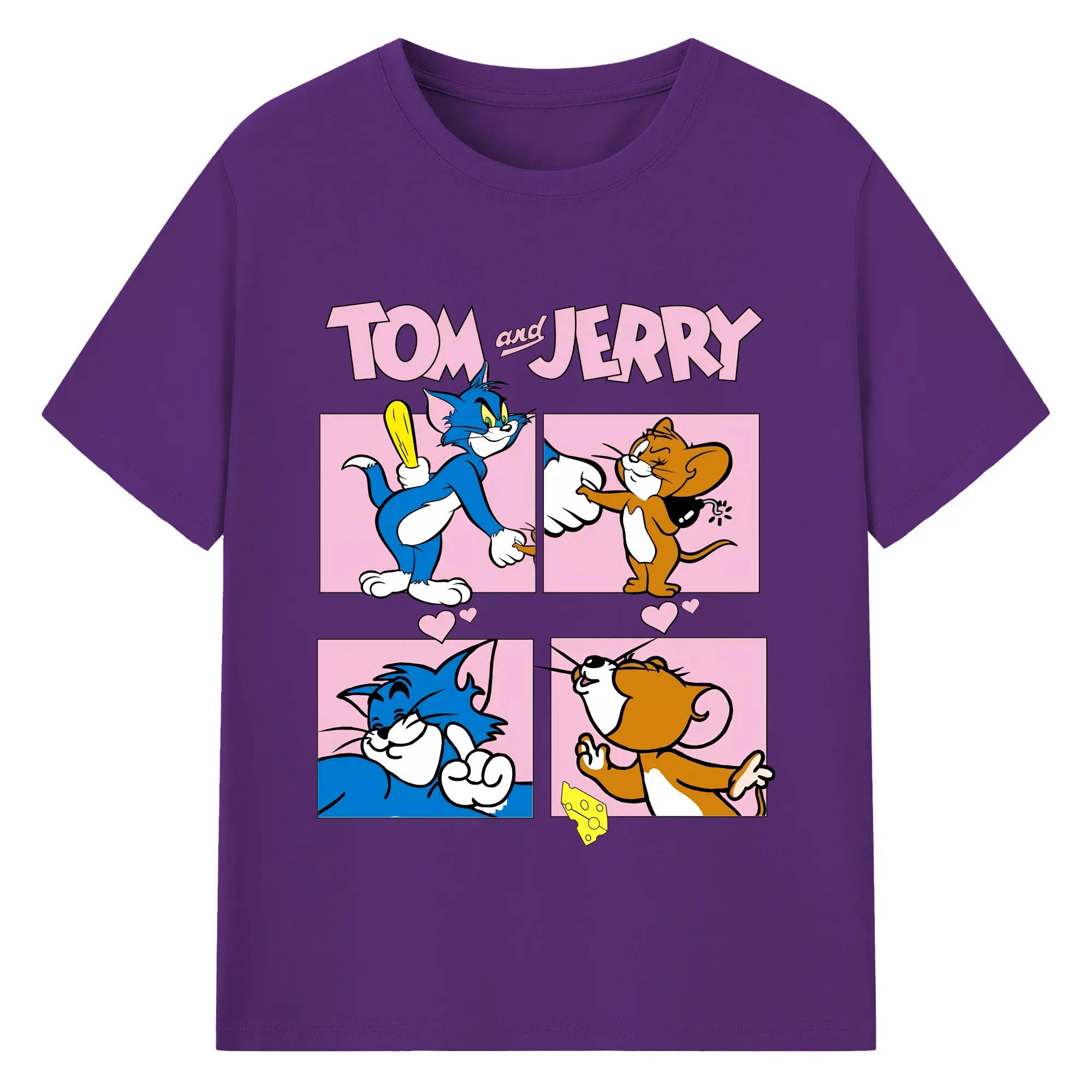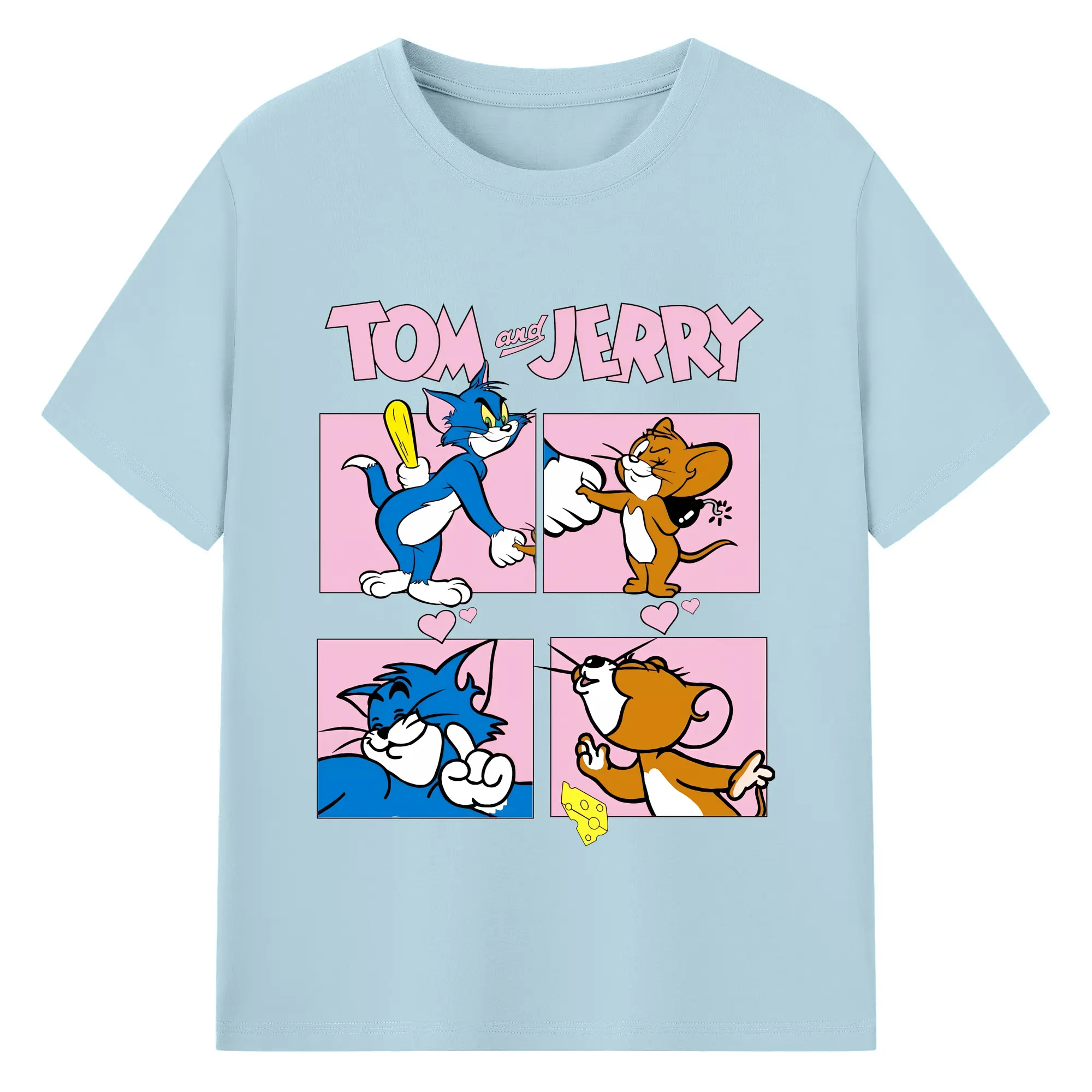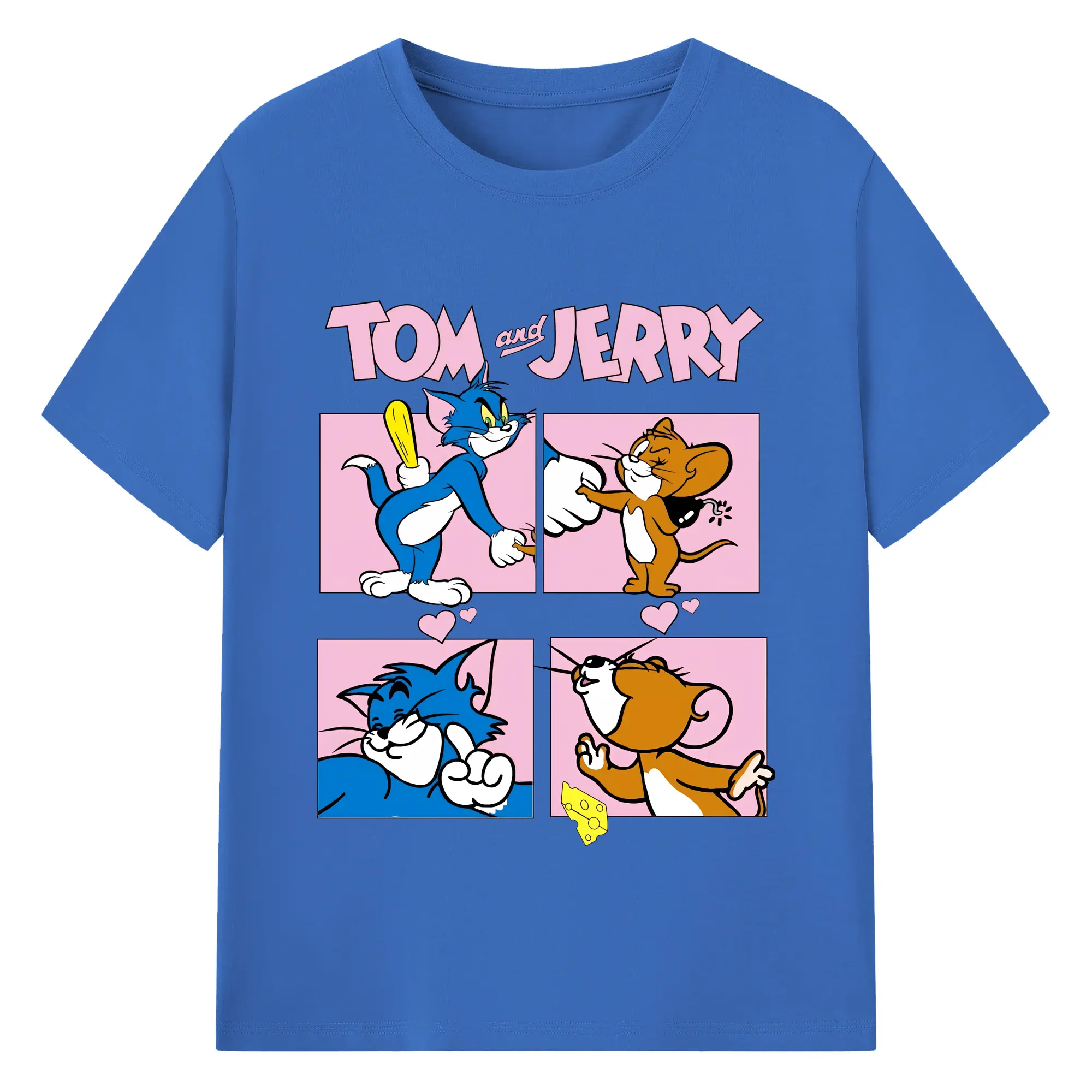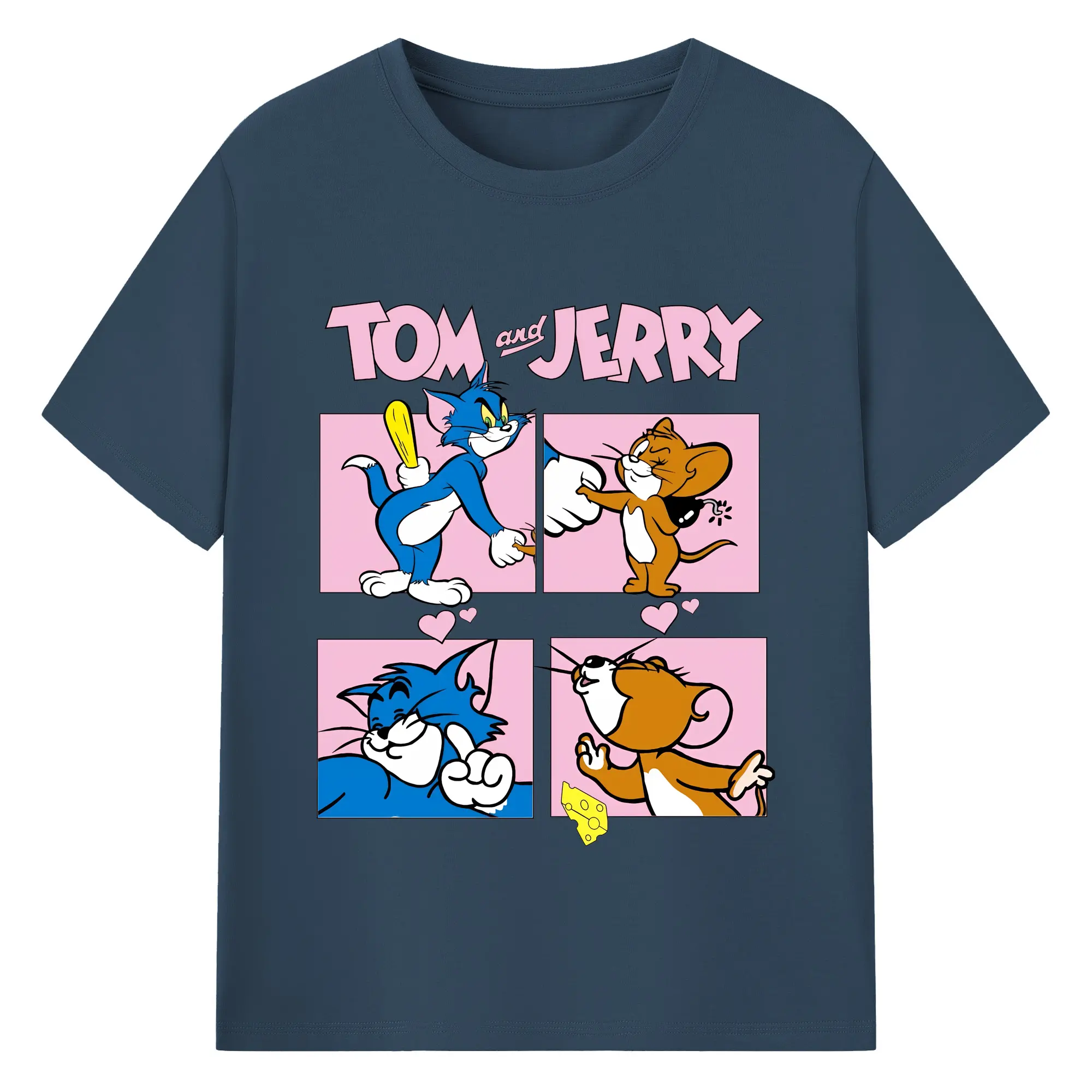 トムとジェリー グッズ トム - 綿100% 半袖Tシャツ ・ バックプリント ・ 快適 通気性 ・ 日常使い 散歩 スポーツ用