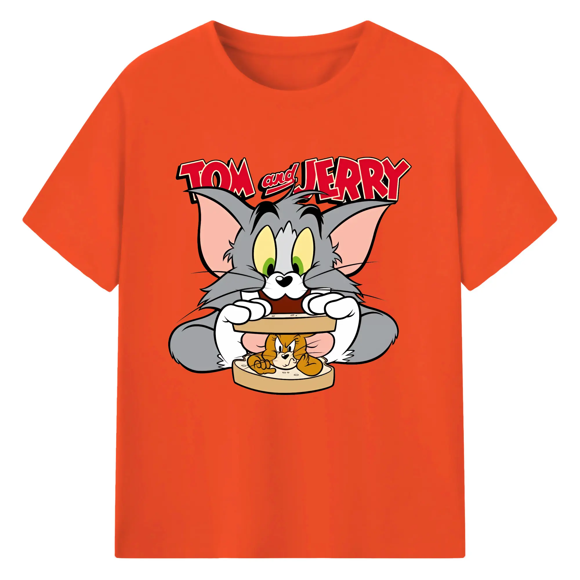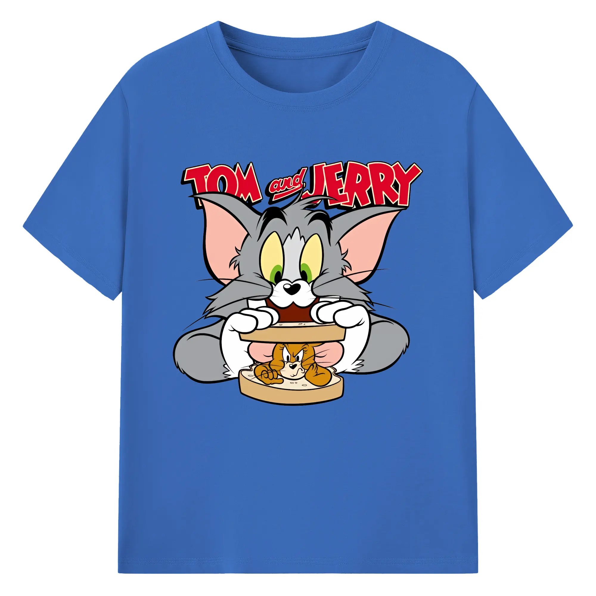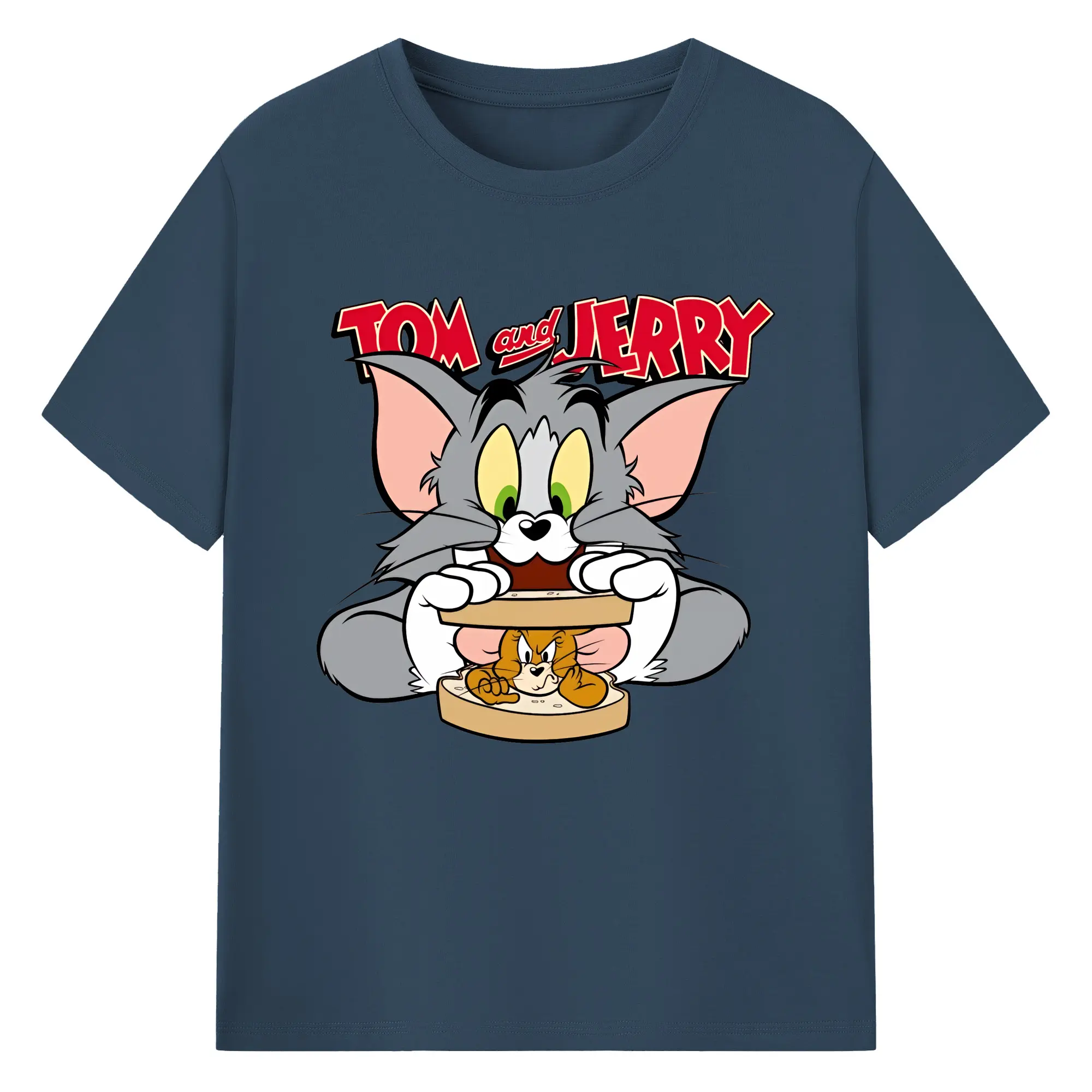 トムとジェリー グッズ トム - 綿100% 半袖Tシャツ ・ バックプリント ・ 快適 通気性 ・ 日常使い 散歩 スポーツ用