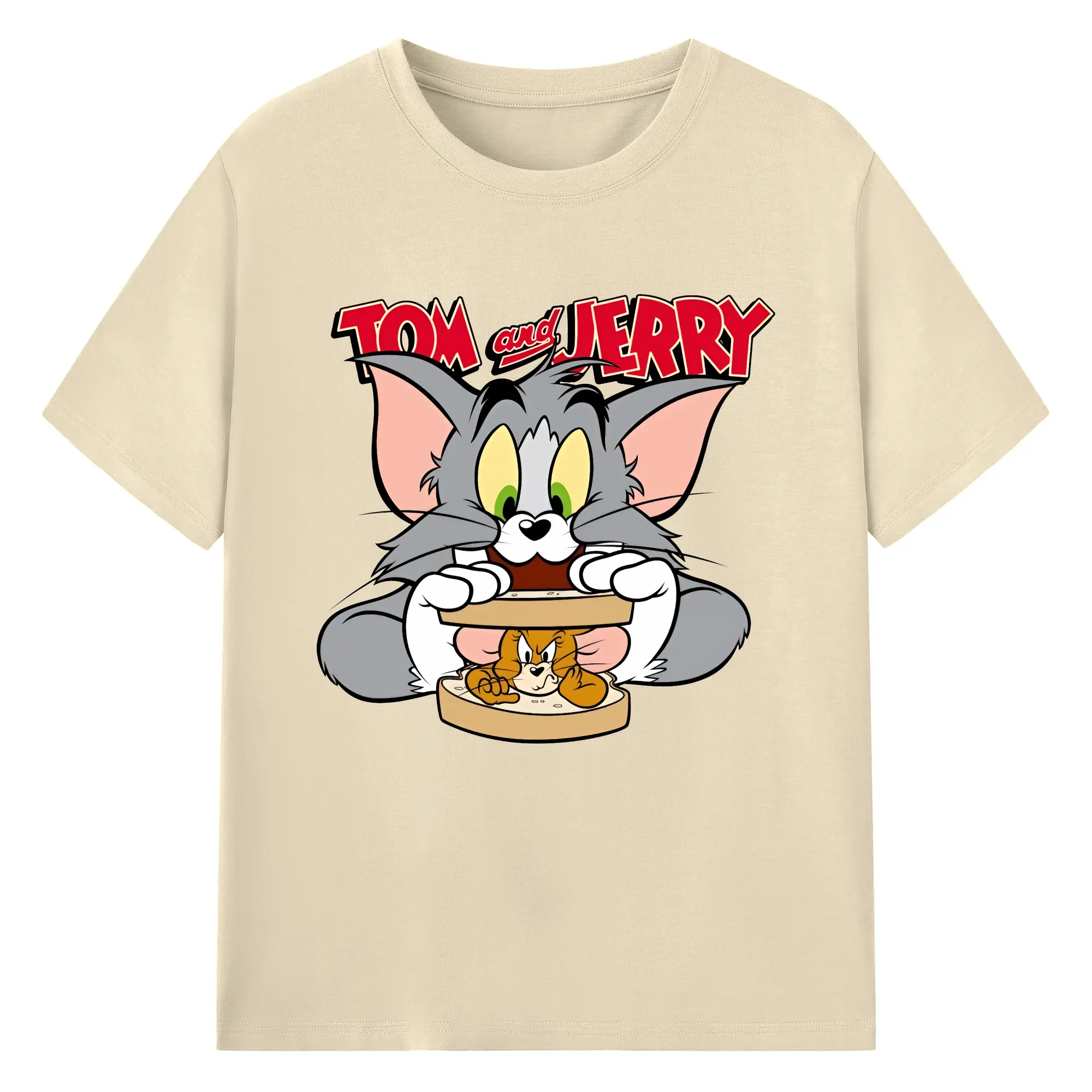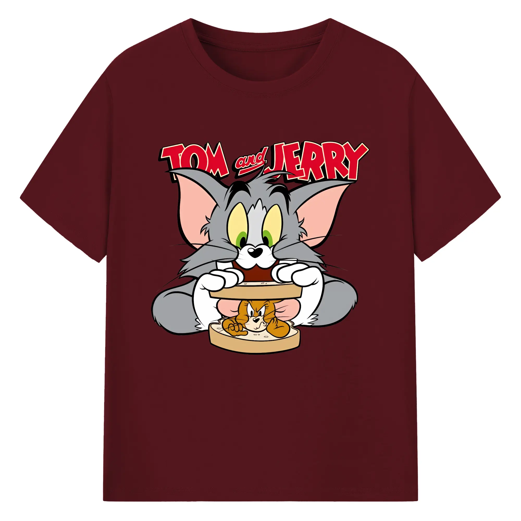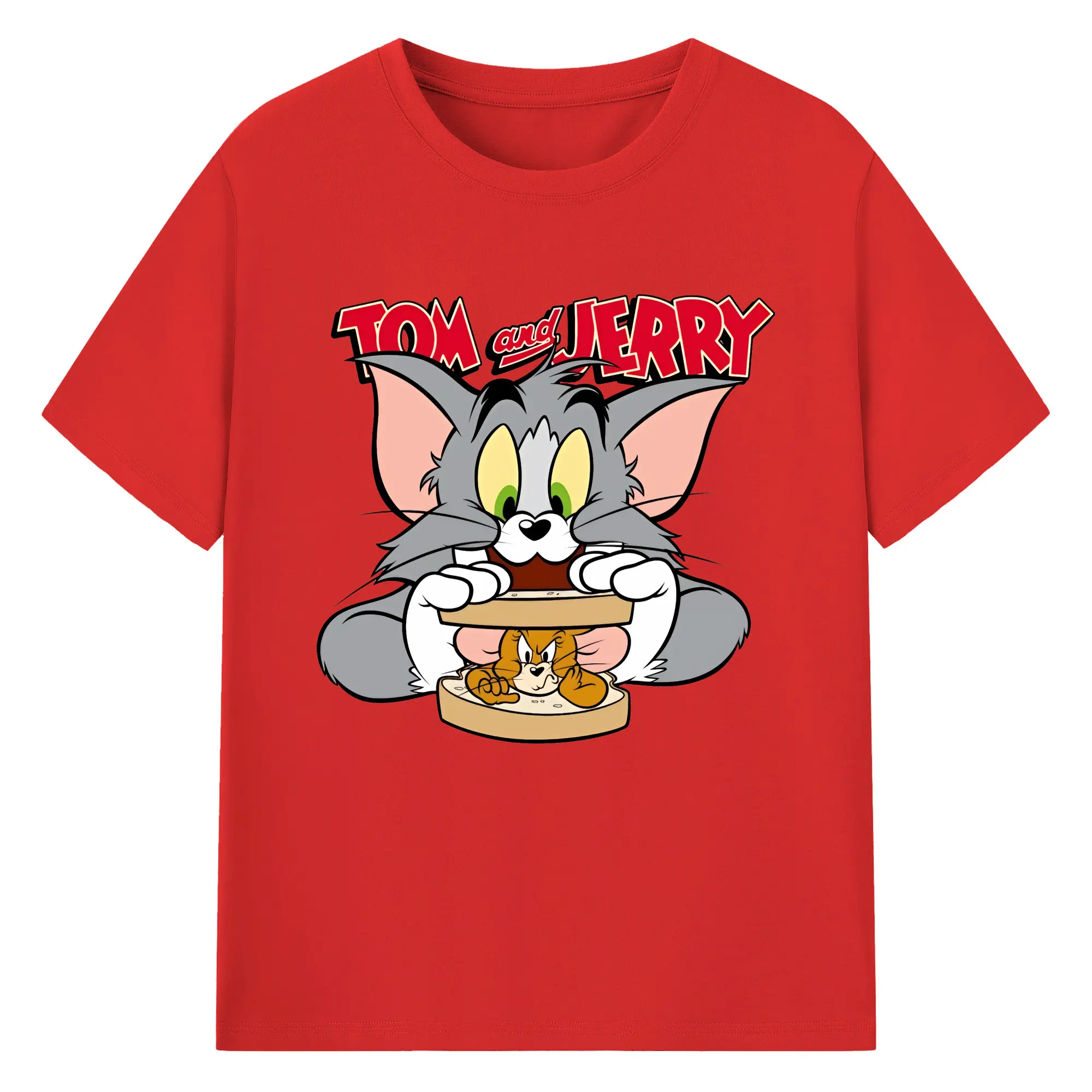 トムとジェリー グッズ トム - 綿100% 半袖Tシャツ ・ バックプリント ・ 快適 通気性 ・ 日常使い 散歩 スポーツ用