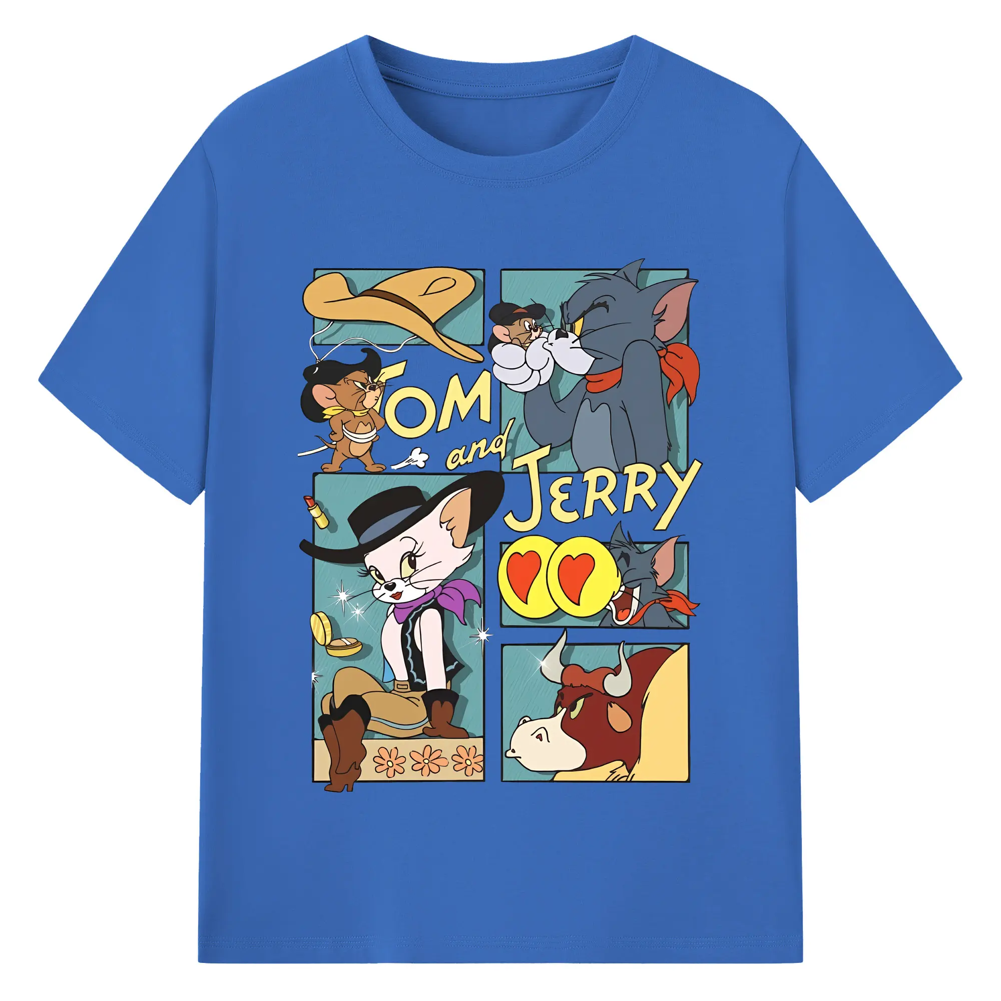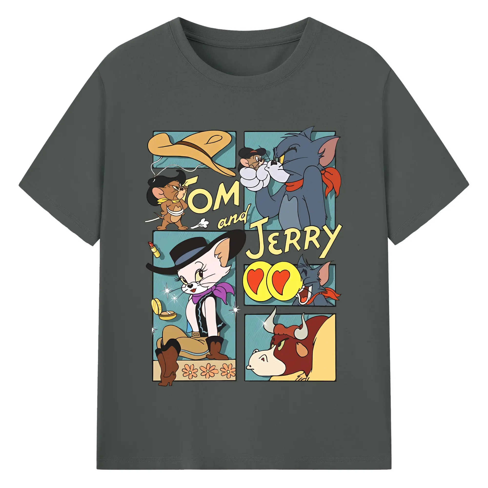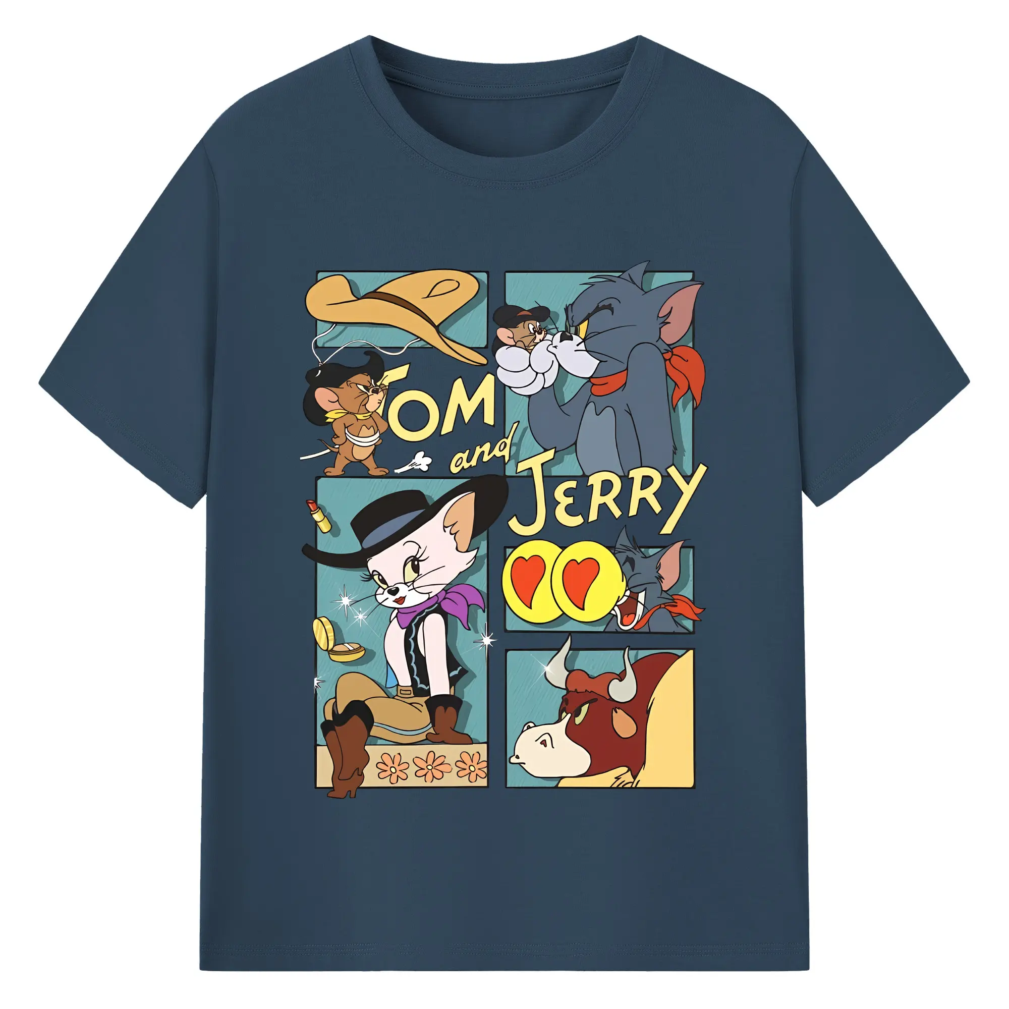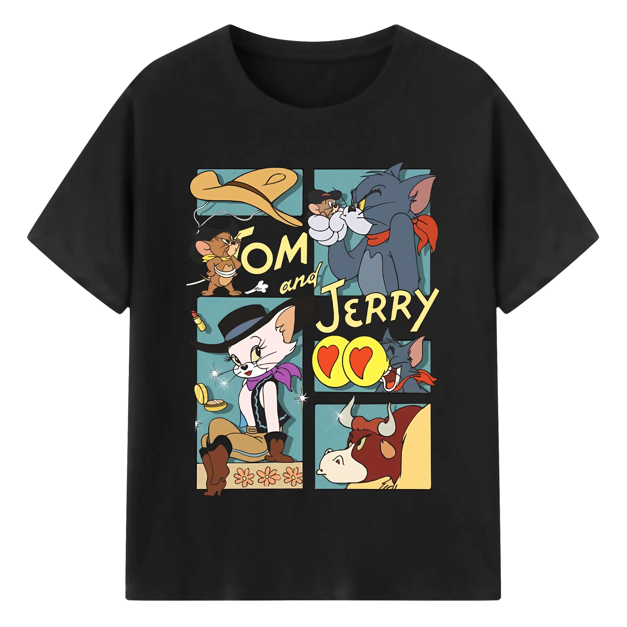 トムとジェリー グッズ トム - 綿100% ヴィンテージ風 半袖Tシャツ ・ フロントプリント ・ 柔らか肌触り ・ 通気性 快適 ・ スポーツ カジュアル 外出用