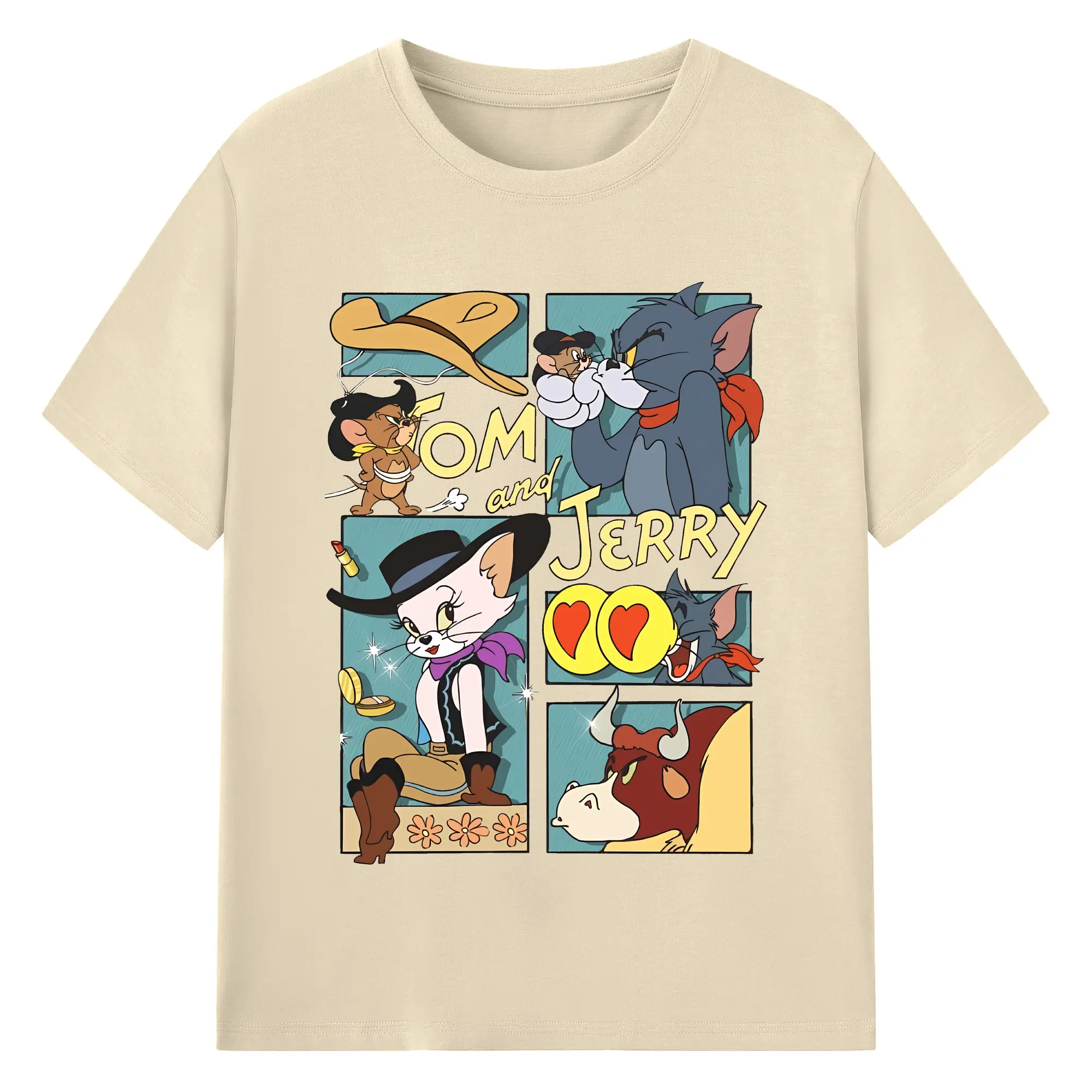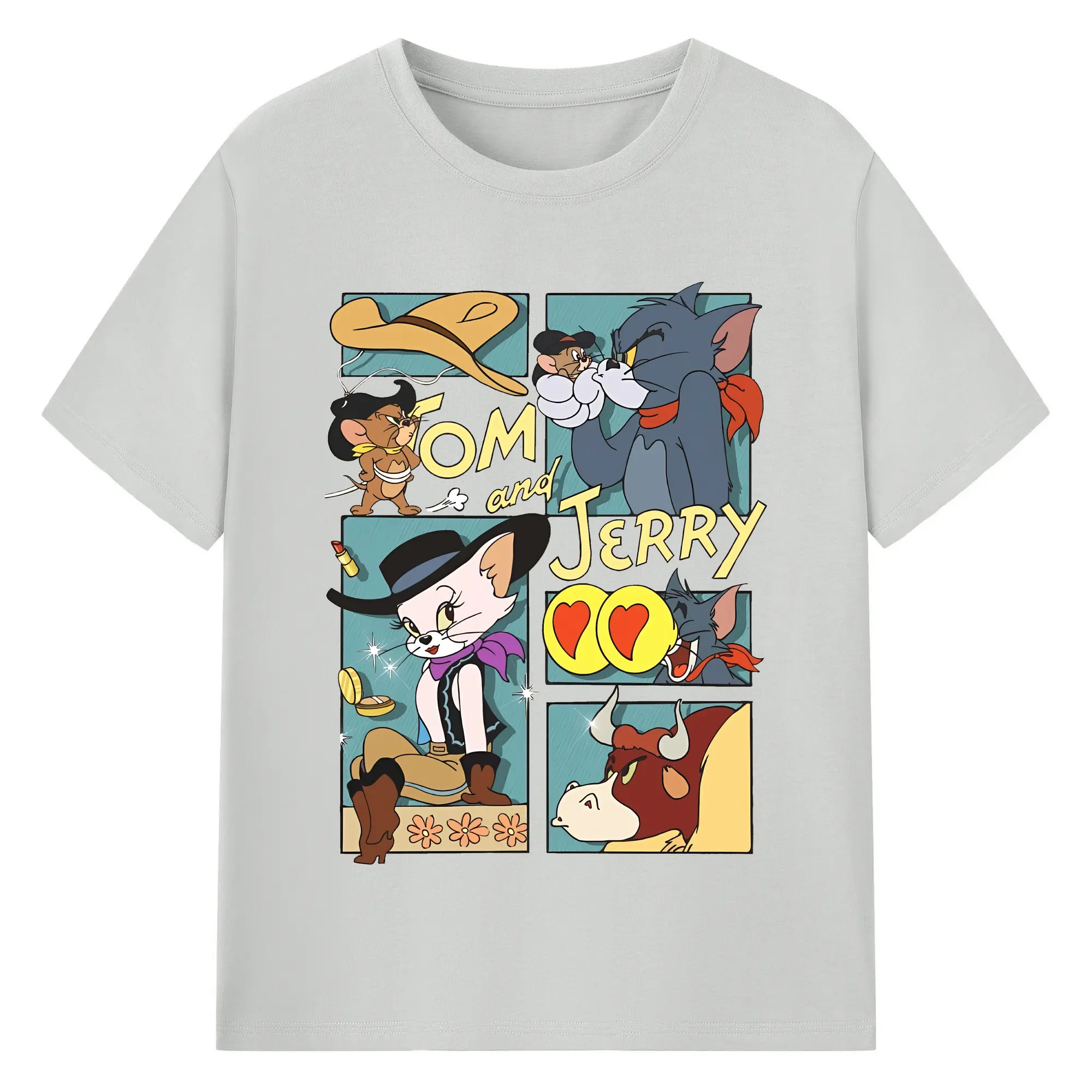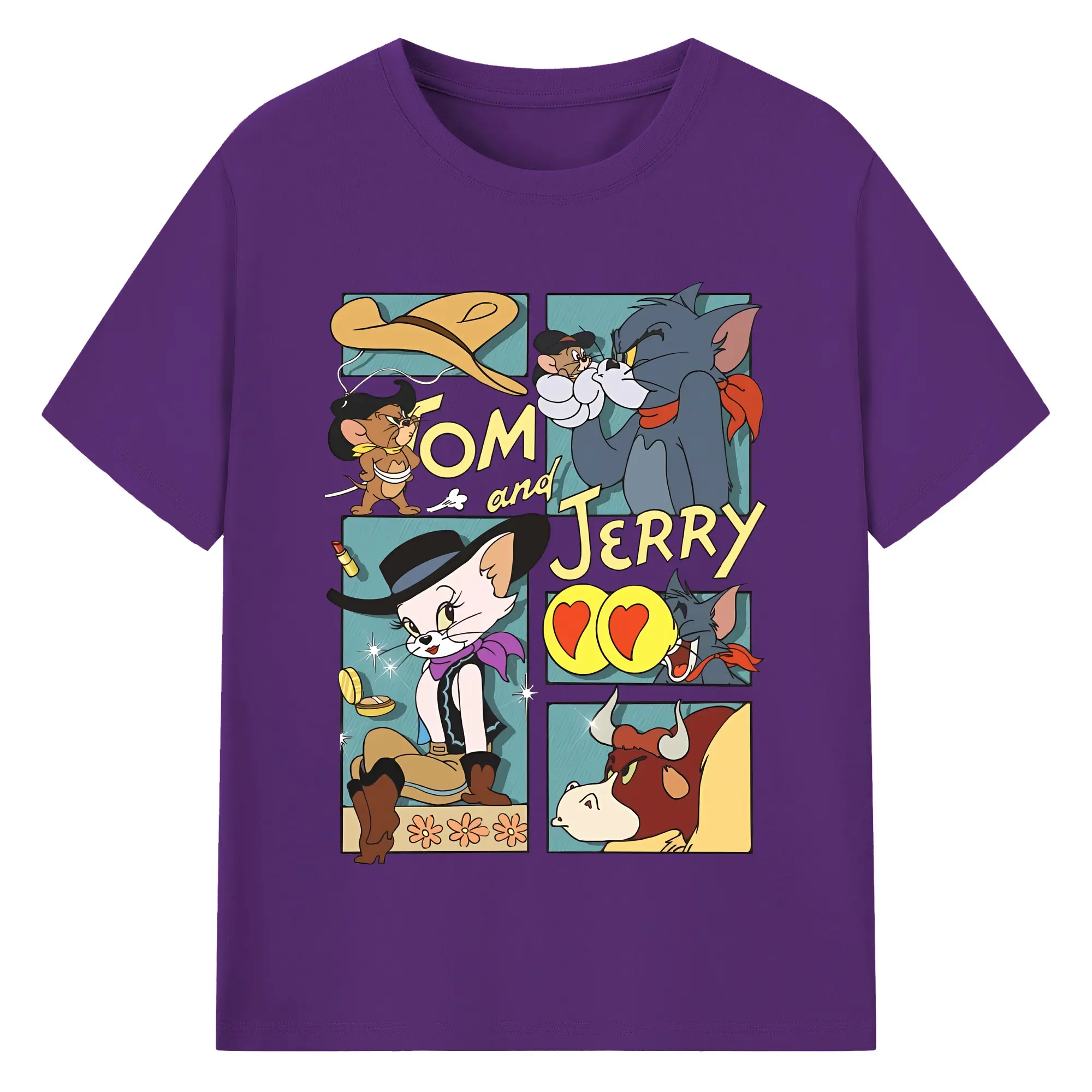 トムとジェリー グッズ トム - 綿100% ヴィンテージ風 半袖Tシャツ ・ フロントプリント ・ 柔らか肌触り ・ 通気性 快適 ・ スポーツ カジュアル 外出用