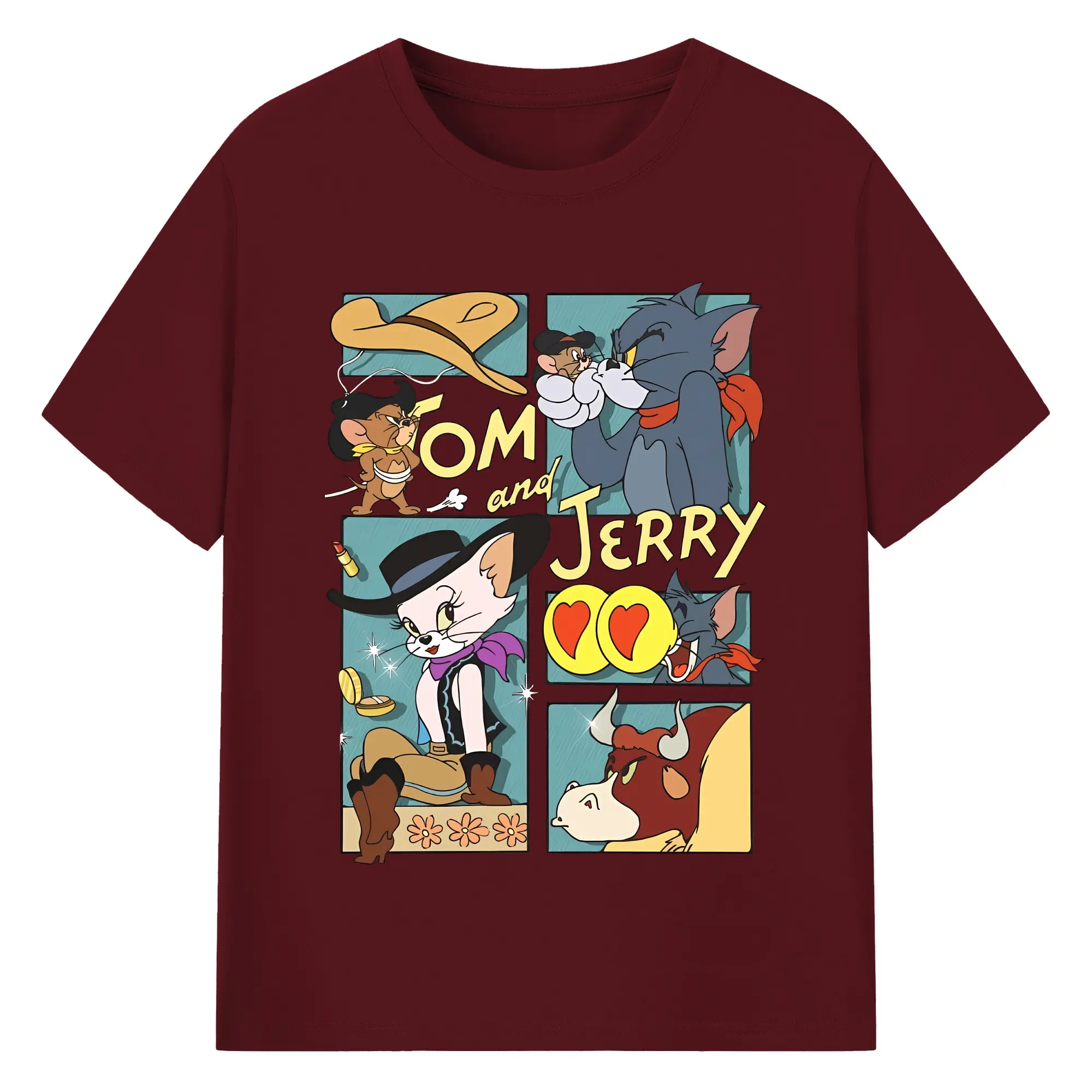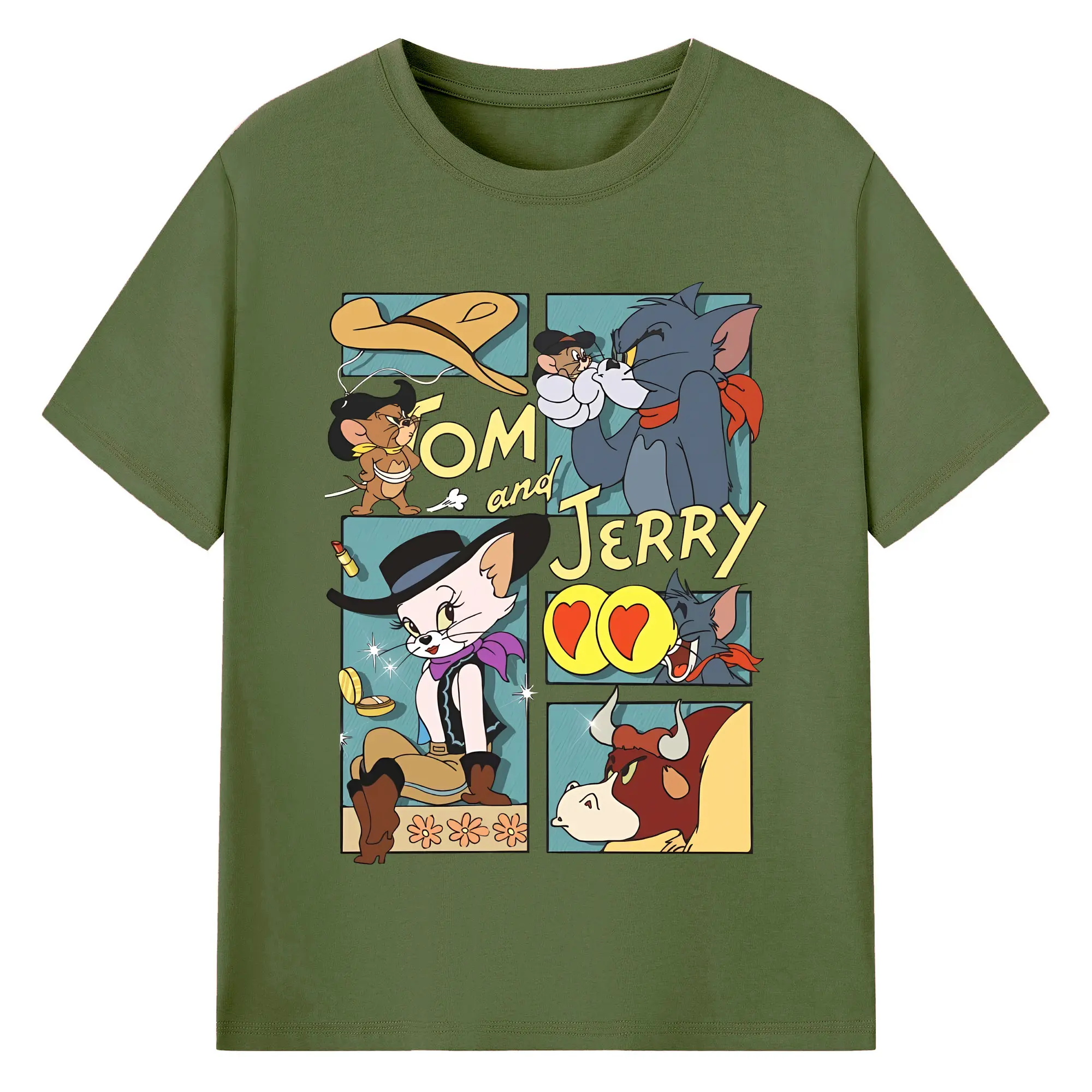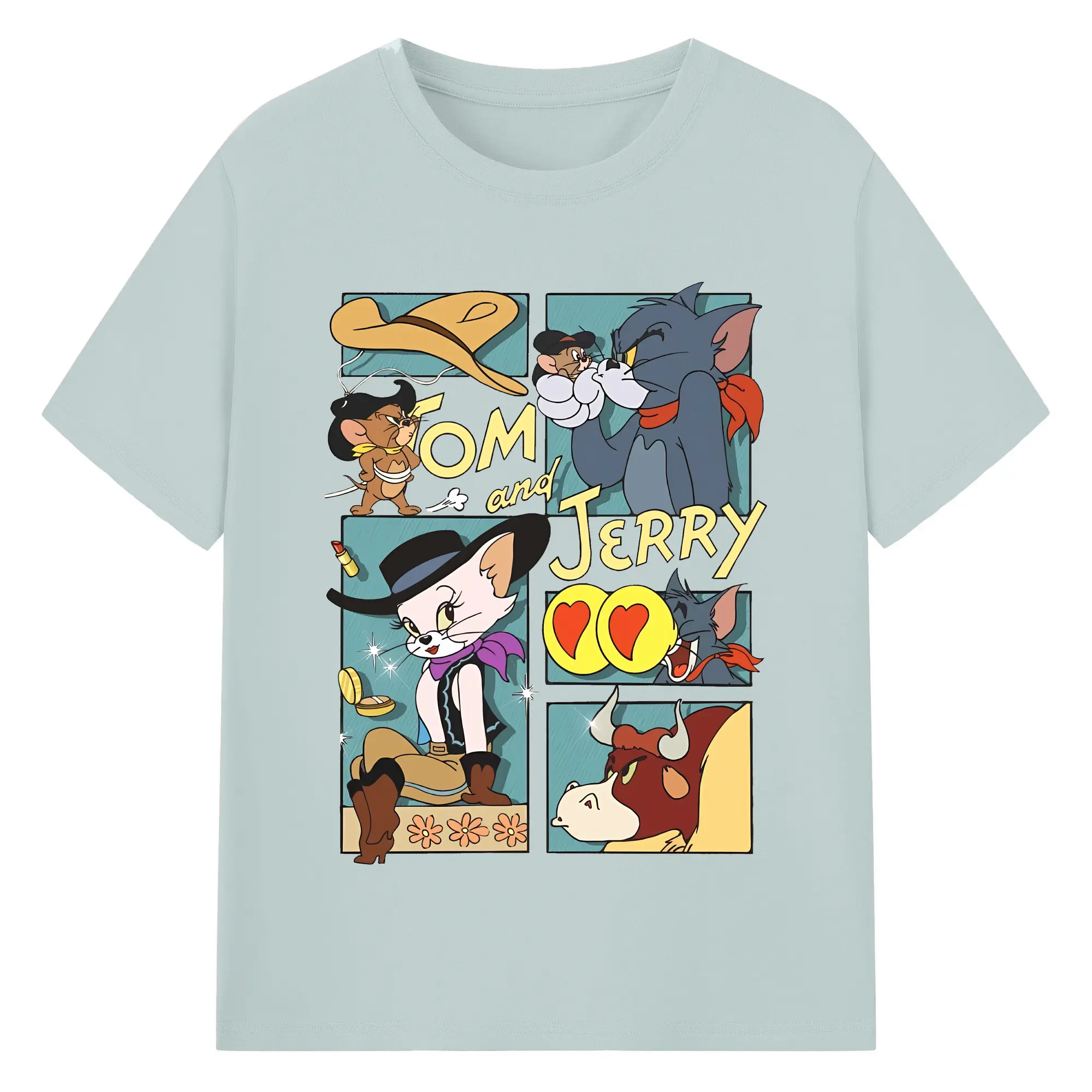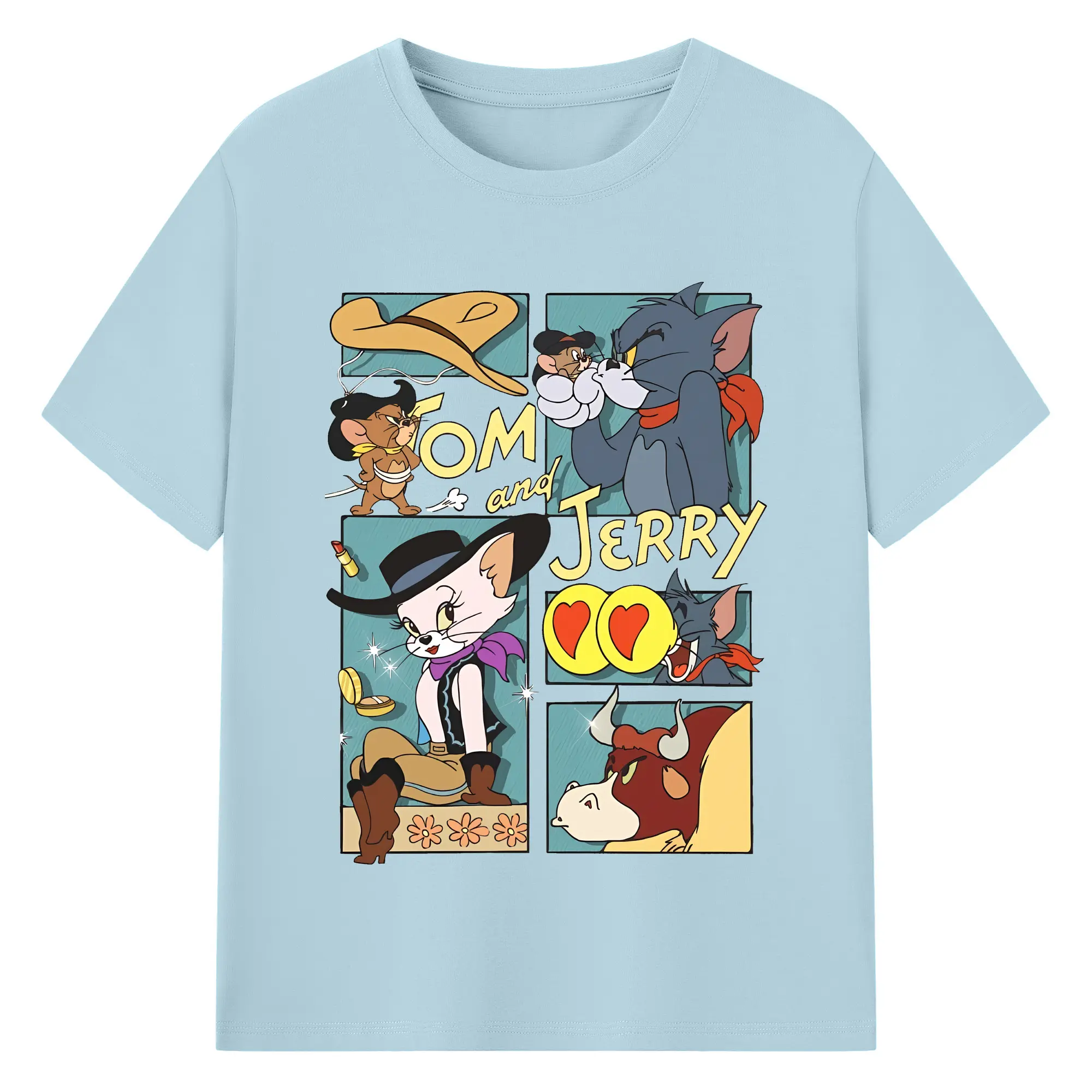 トムとジェリー グッズ トム - 綿100% ヴィンテージ風 半袖Tシャツ ・ フロントプリント ・ 柔らか肌触り ・ 通気性 快適 ・ スポーツ カジュアル 外出用