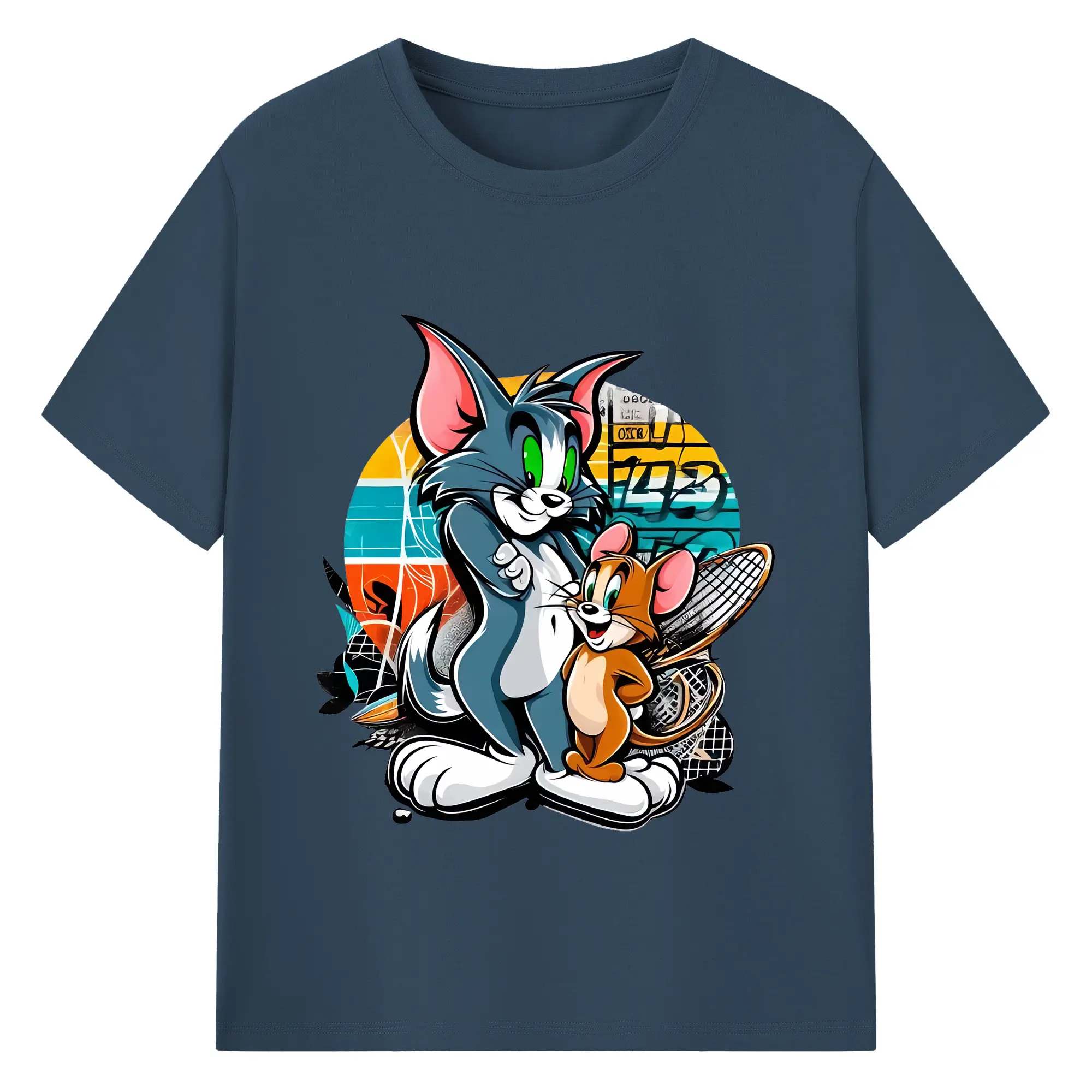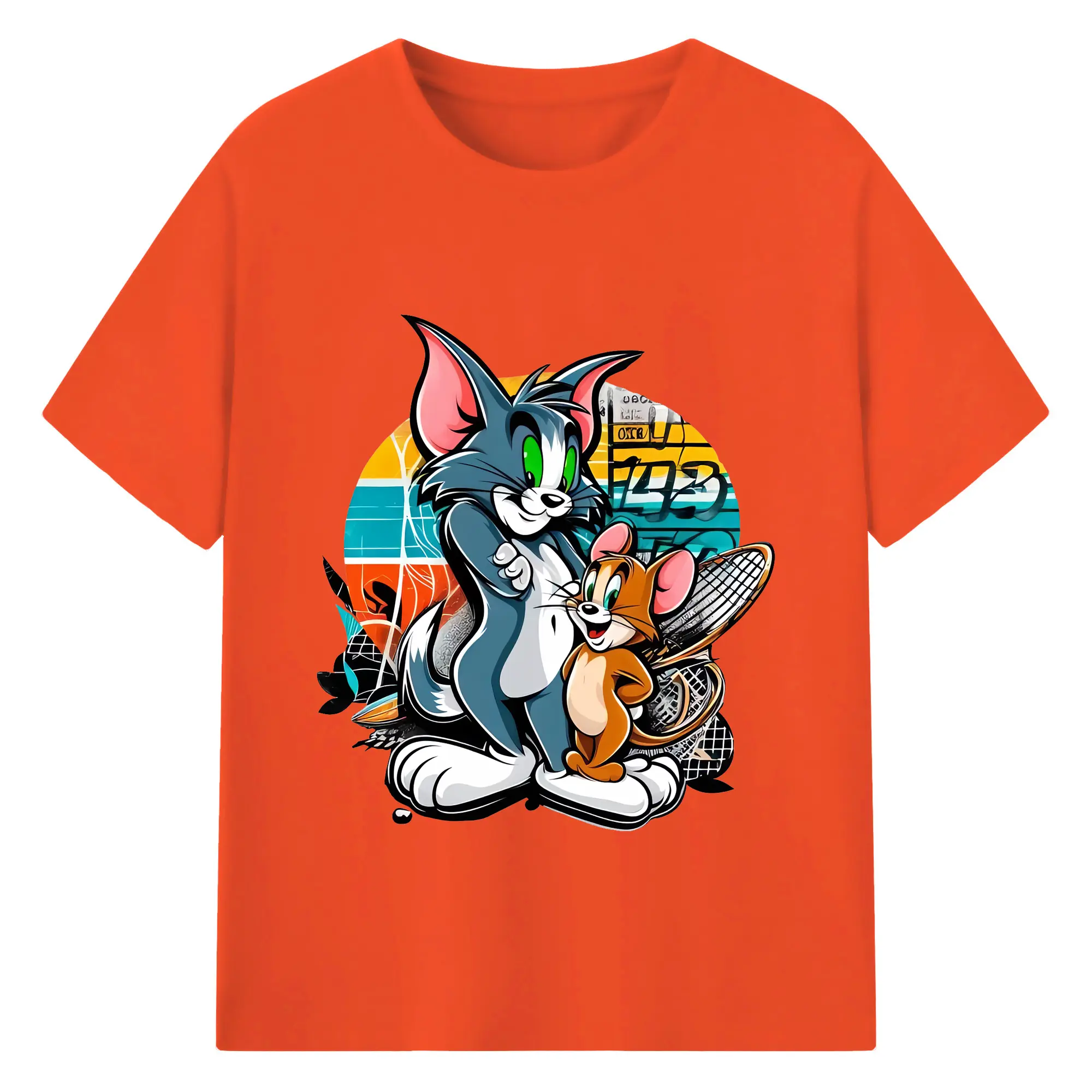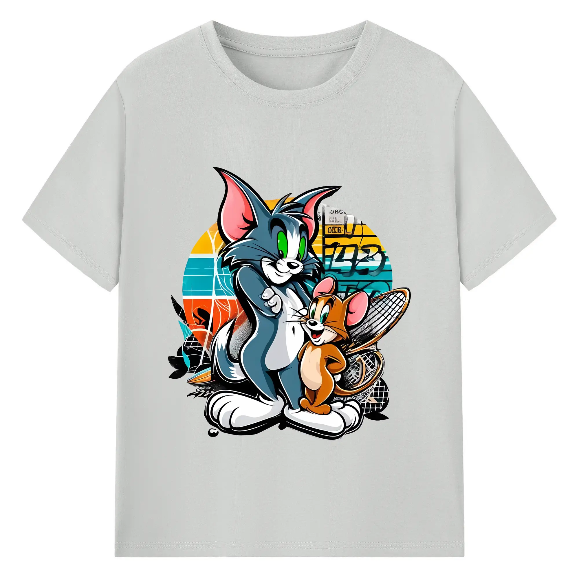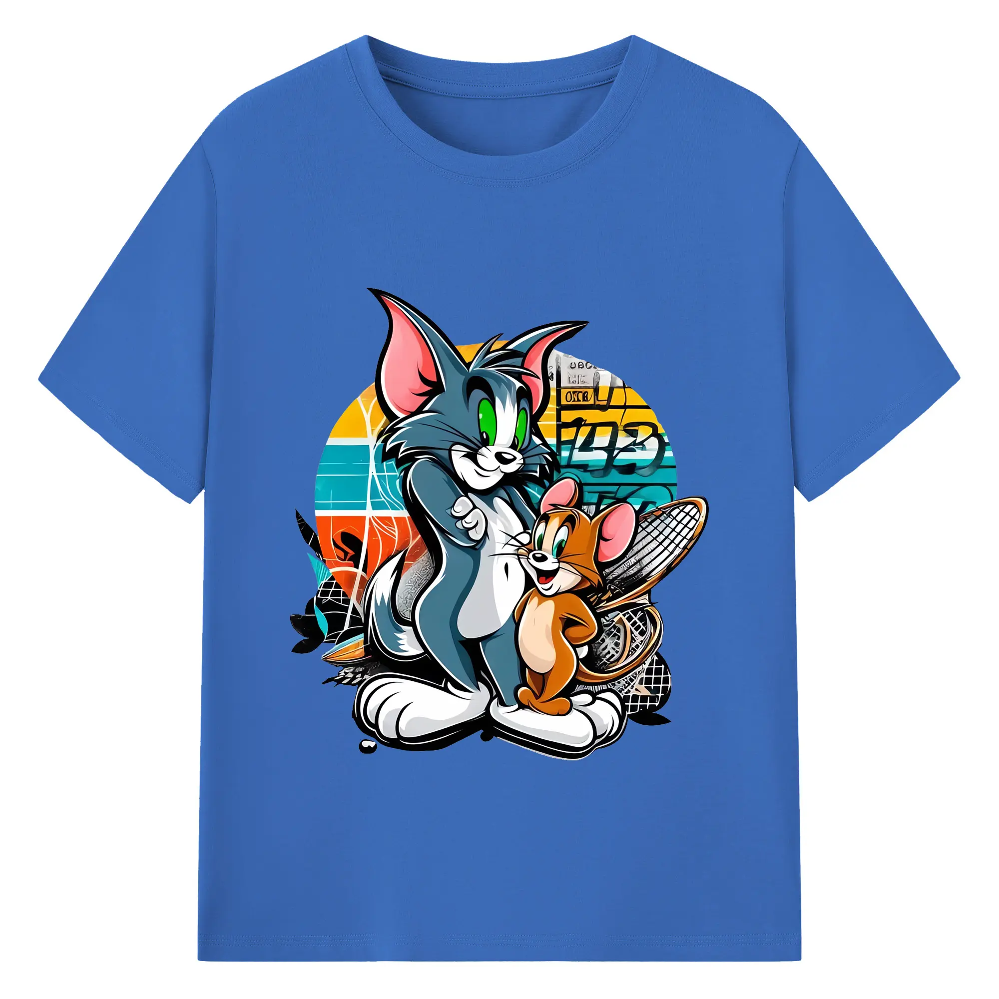 トムとジェリー グッズ トム - 綿100% 半袖Tシャツ ・ バックプリント ・ 快適 通気性 ・ 日常使い 散歩 スポーツ用