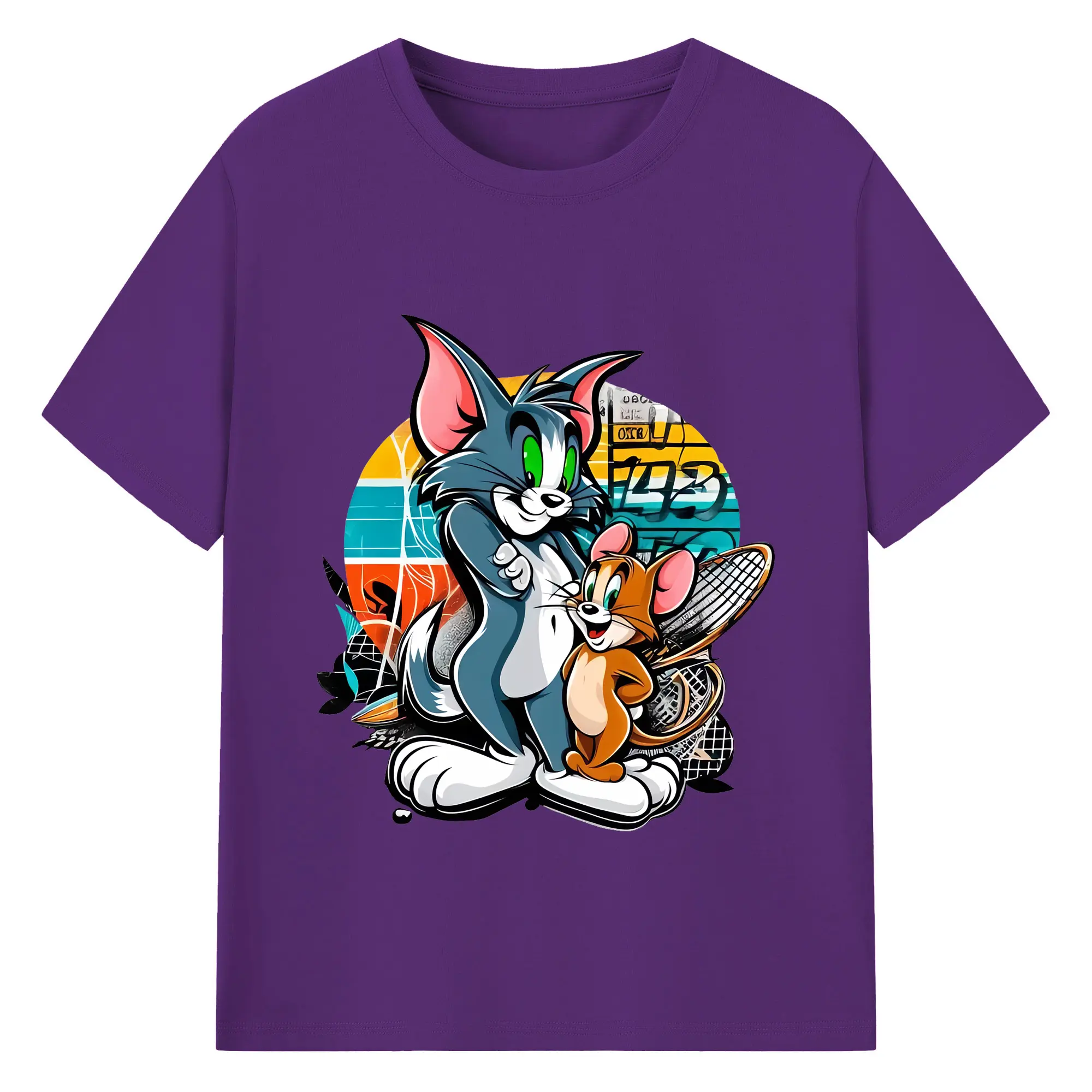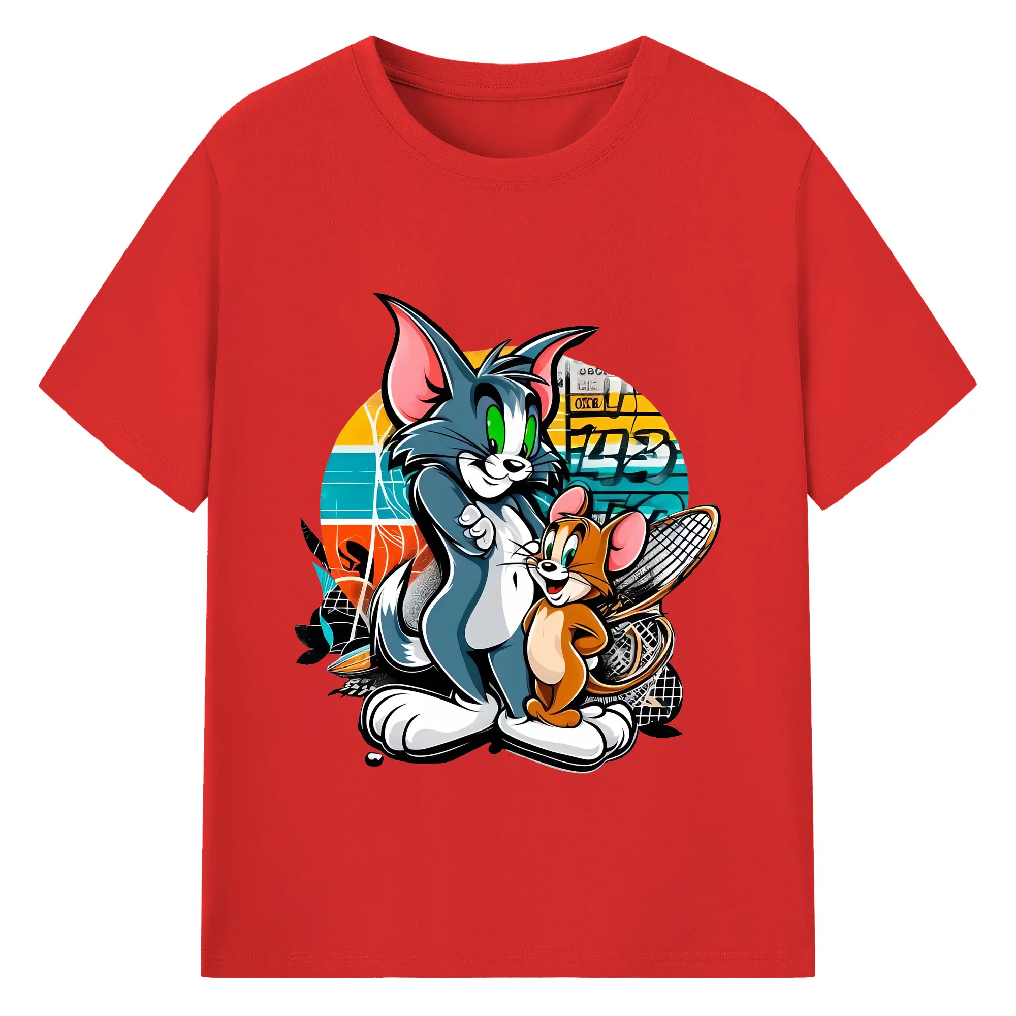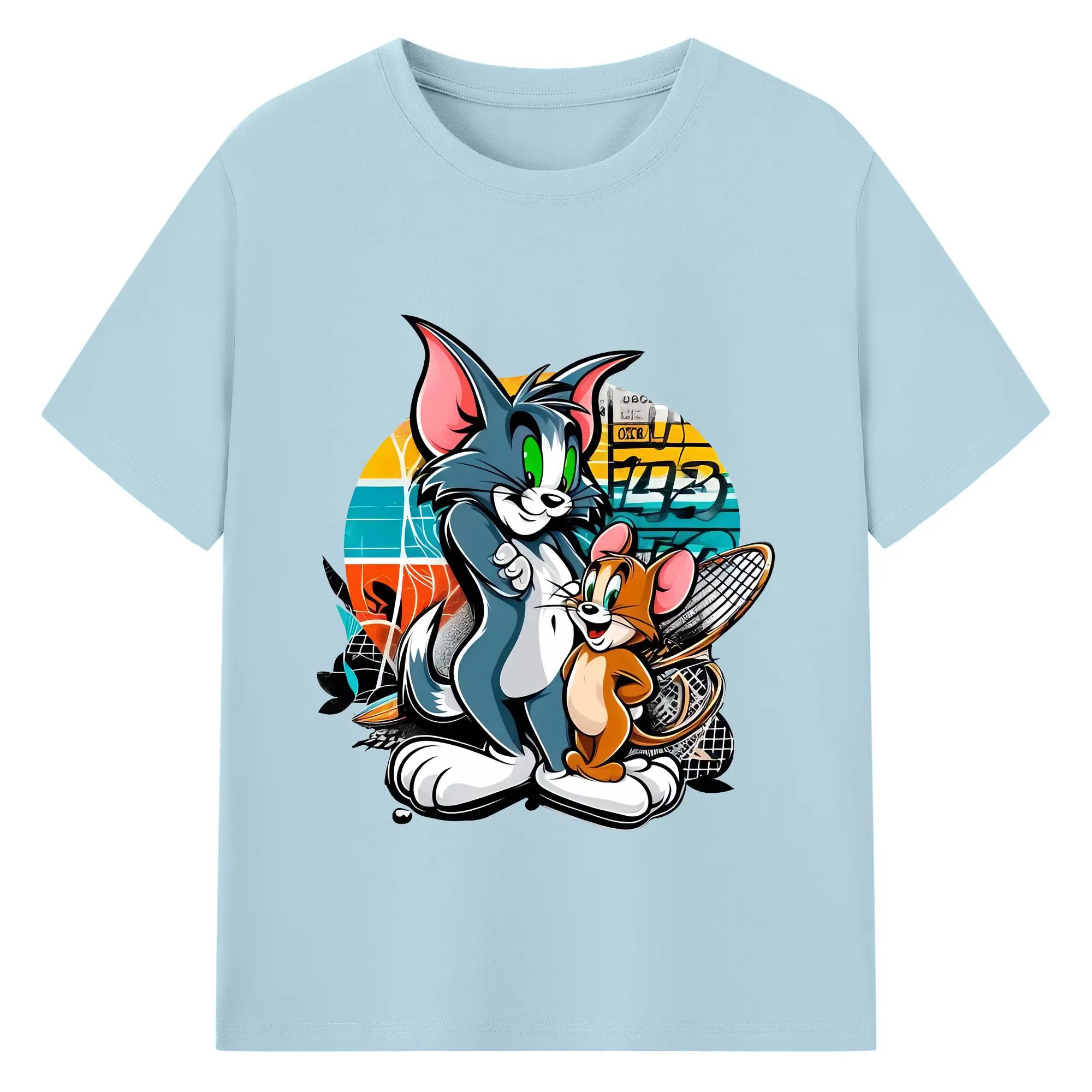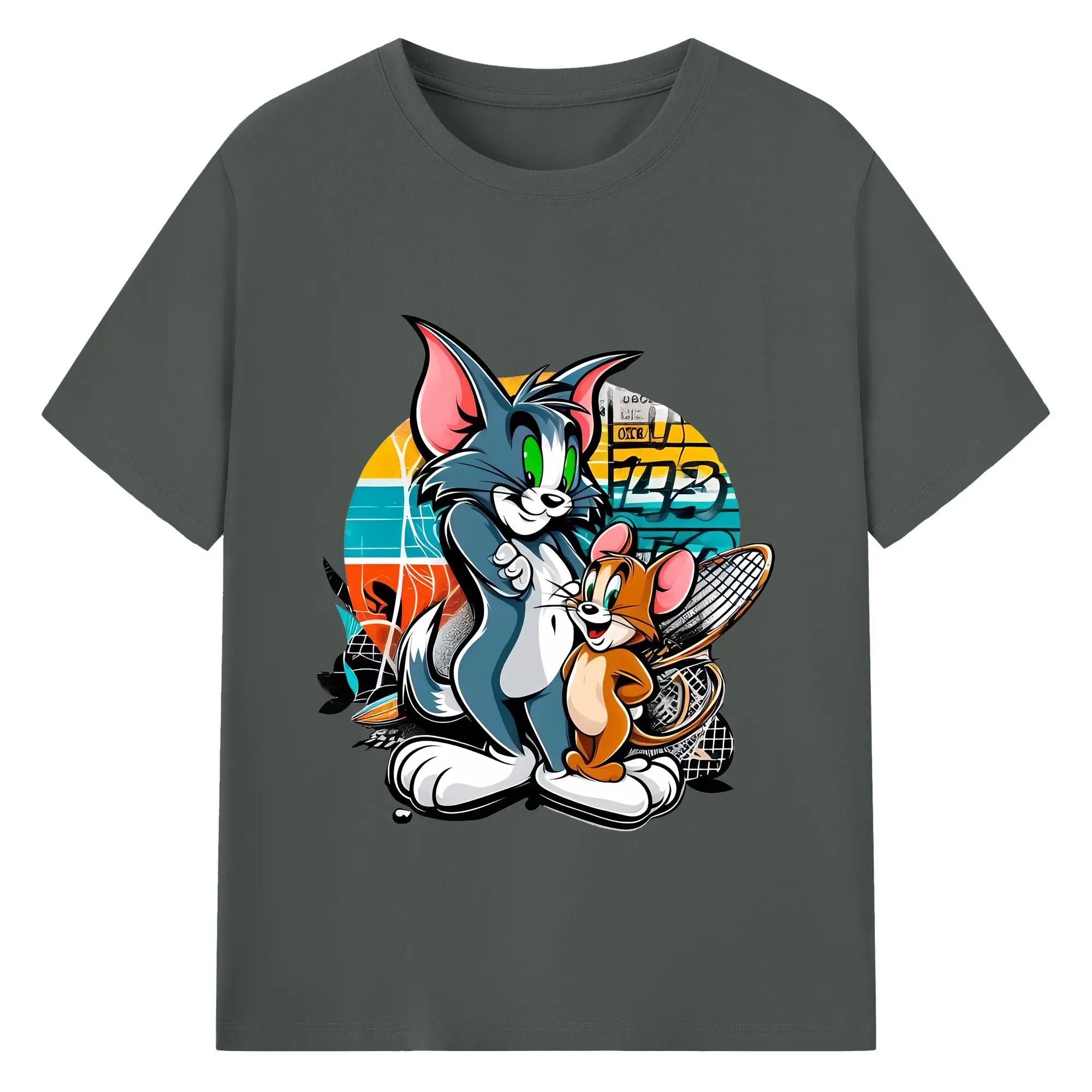 トムとジェリー グッズ トム - 綿100% 半袖Tシャツ ・ バックプリント ・ 快適 通気性 ・ 日常使い 散歩 スポーツ用