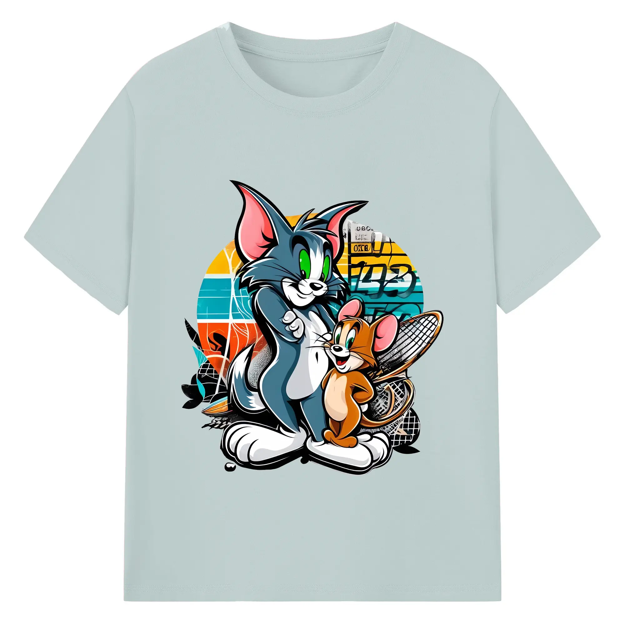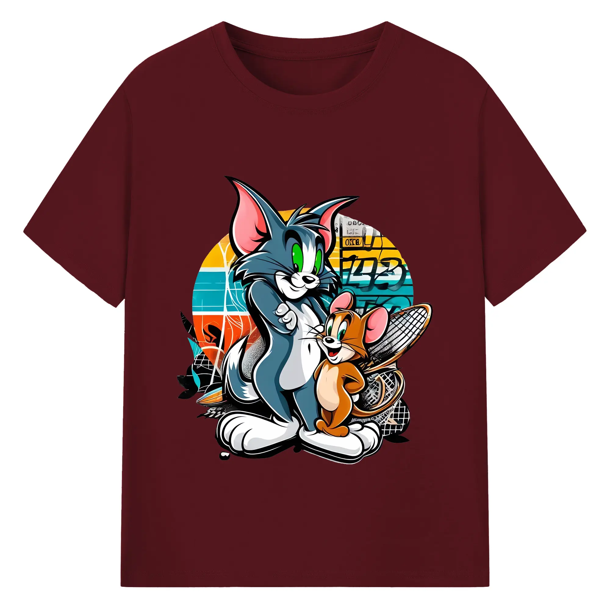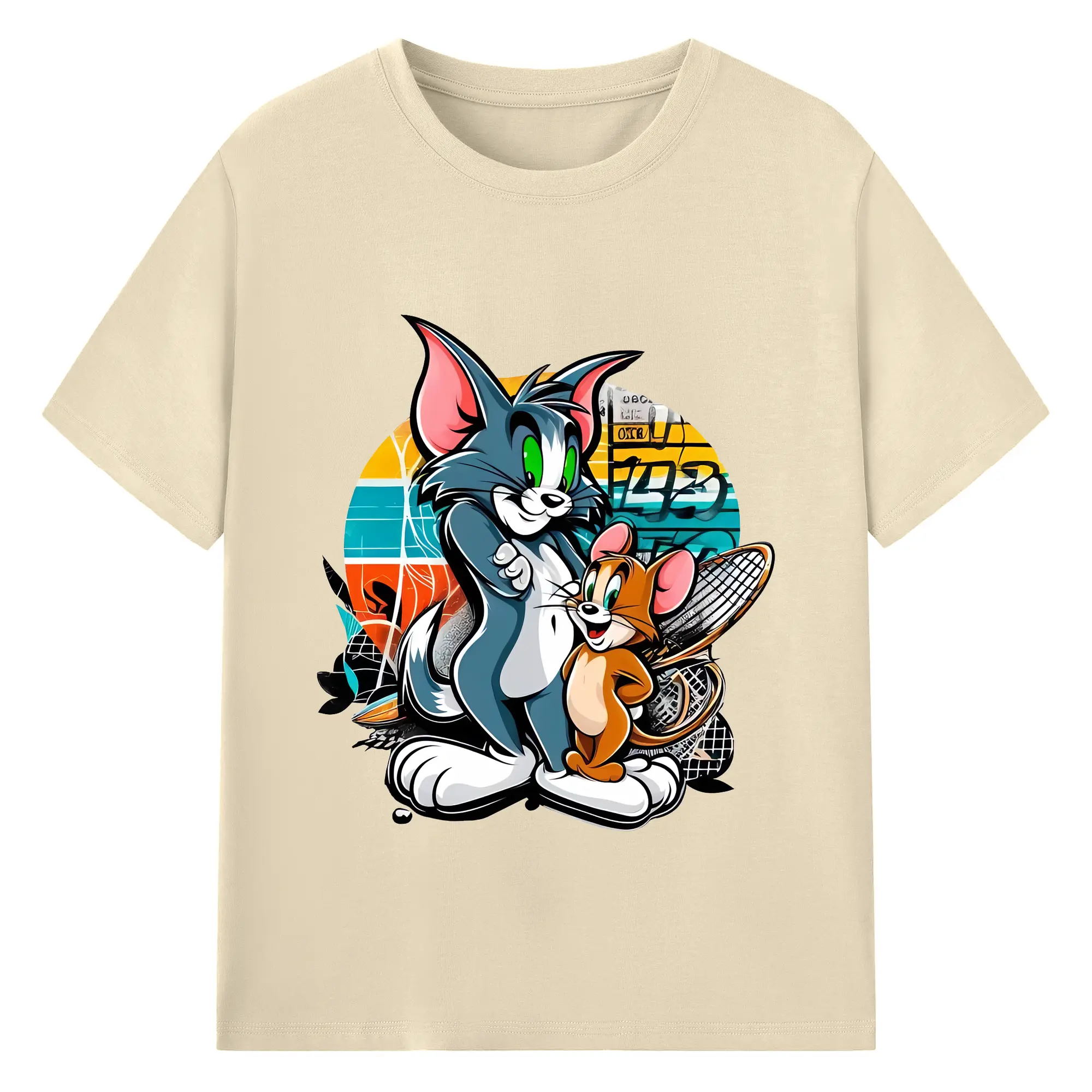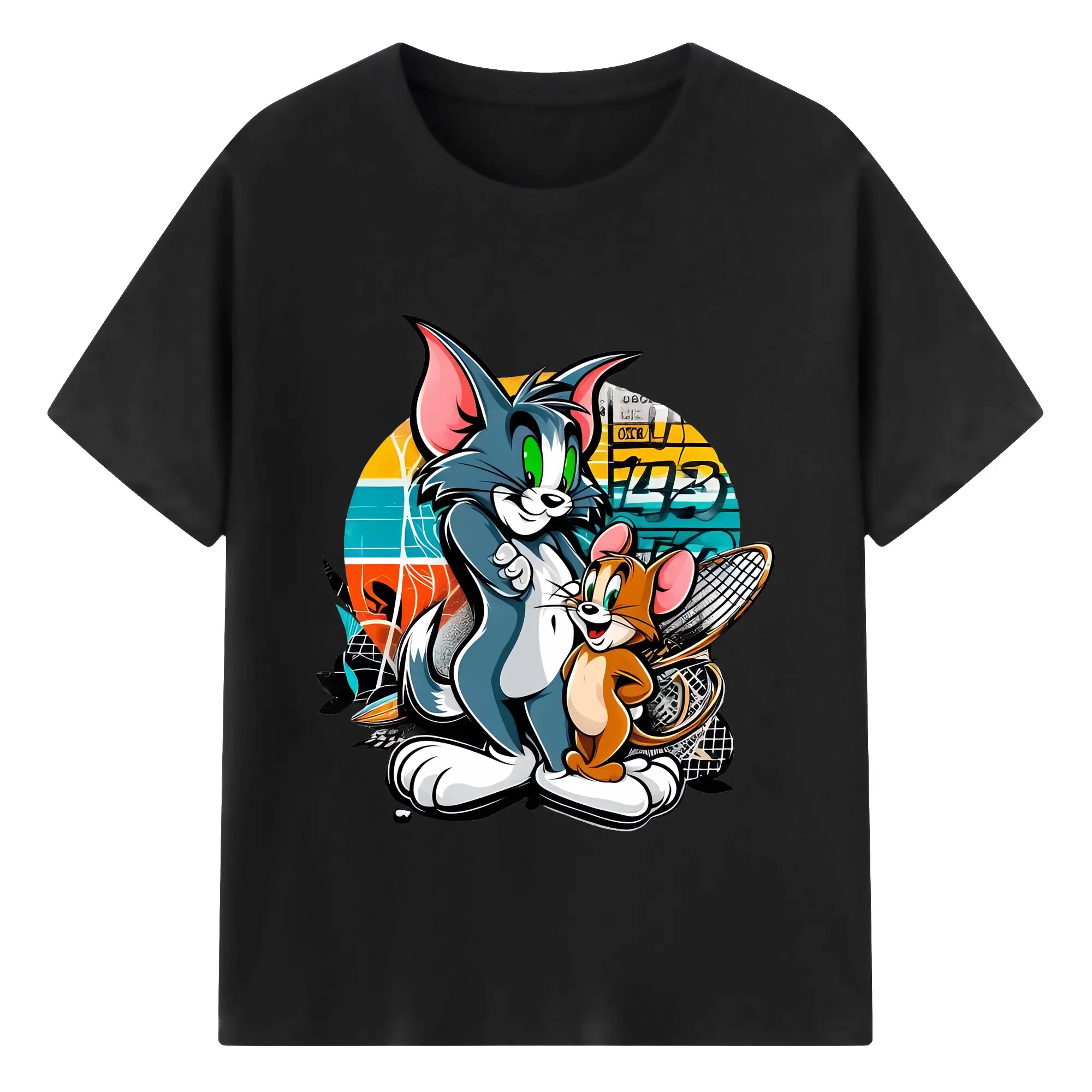 トムとジェリー グッズ トム - 綿100% 半袖Tシャツ ・ バックプリント ・ 快適 通気性 ・ 日常使い 散歩 スポーツ用