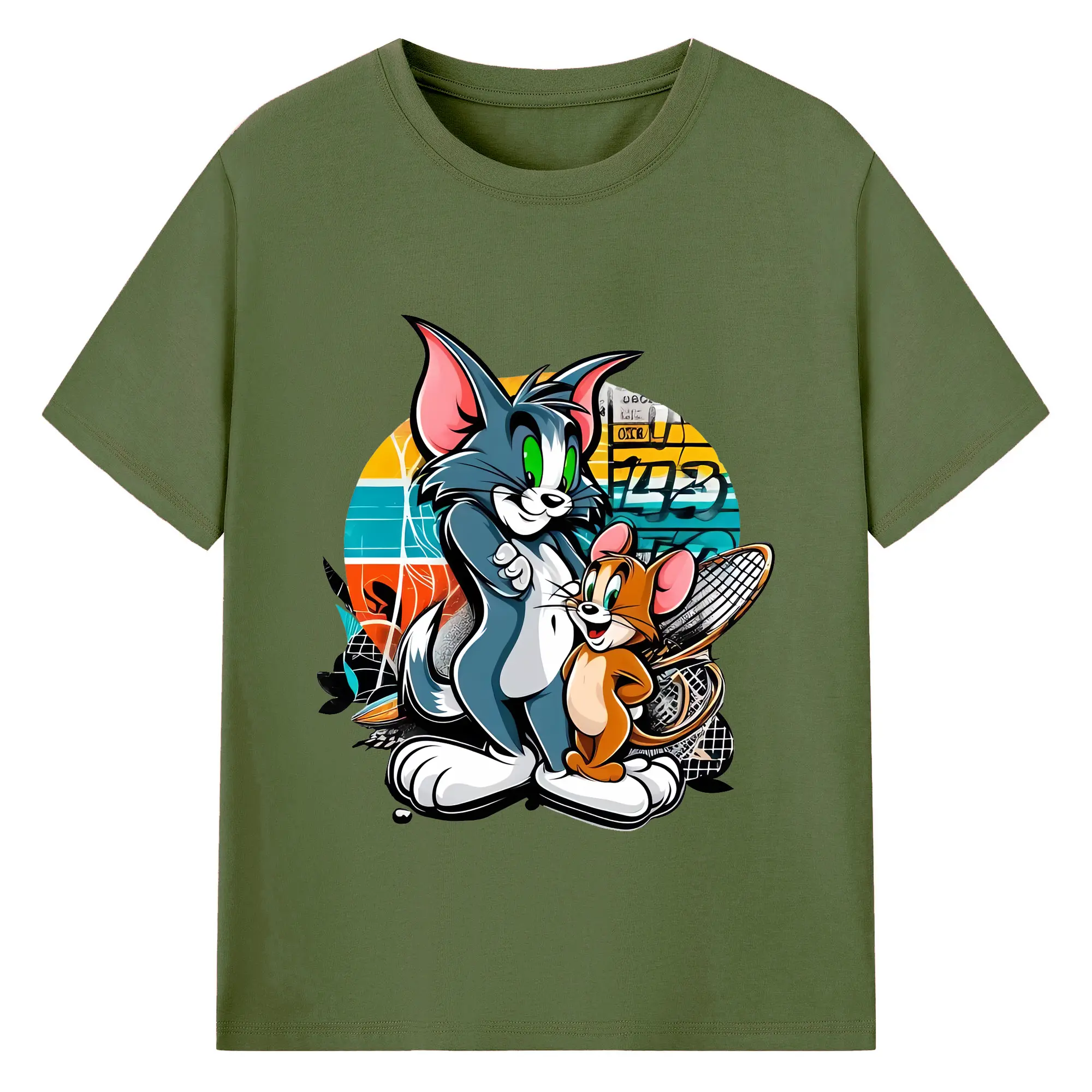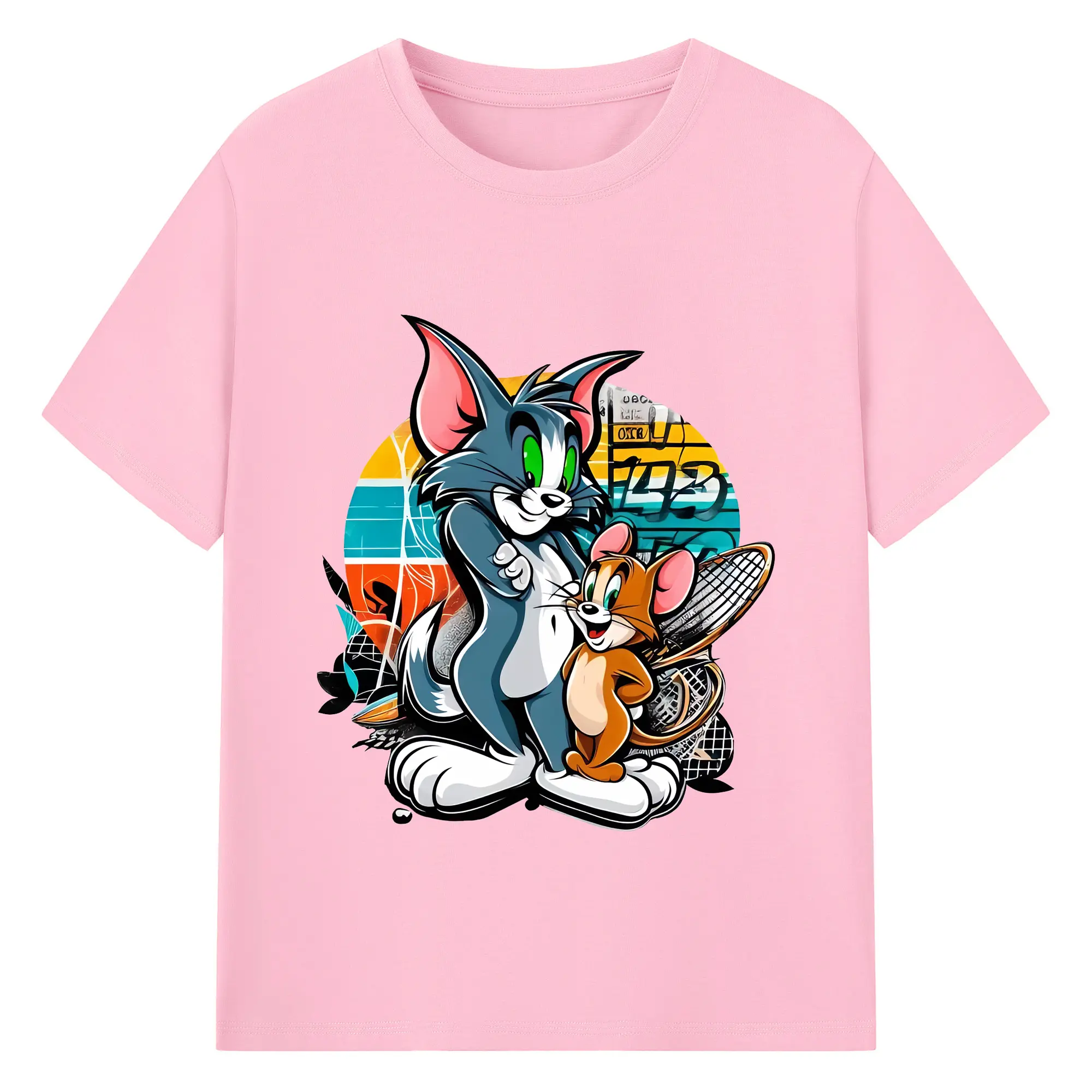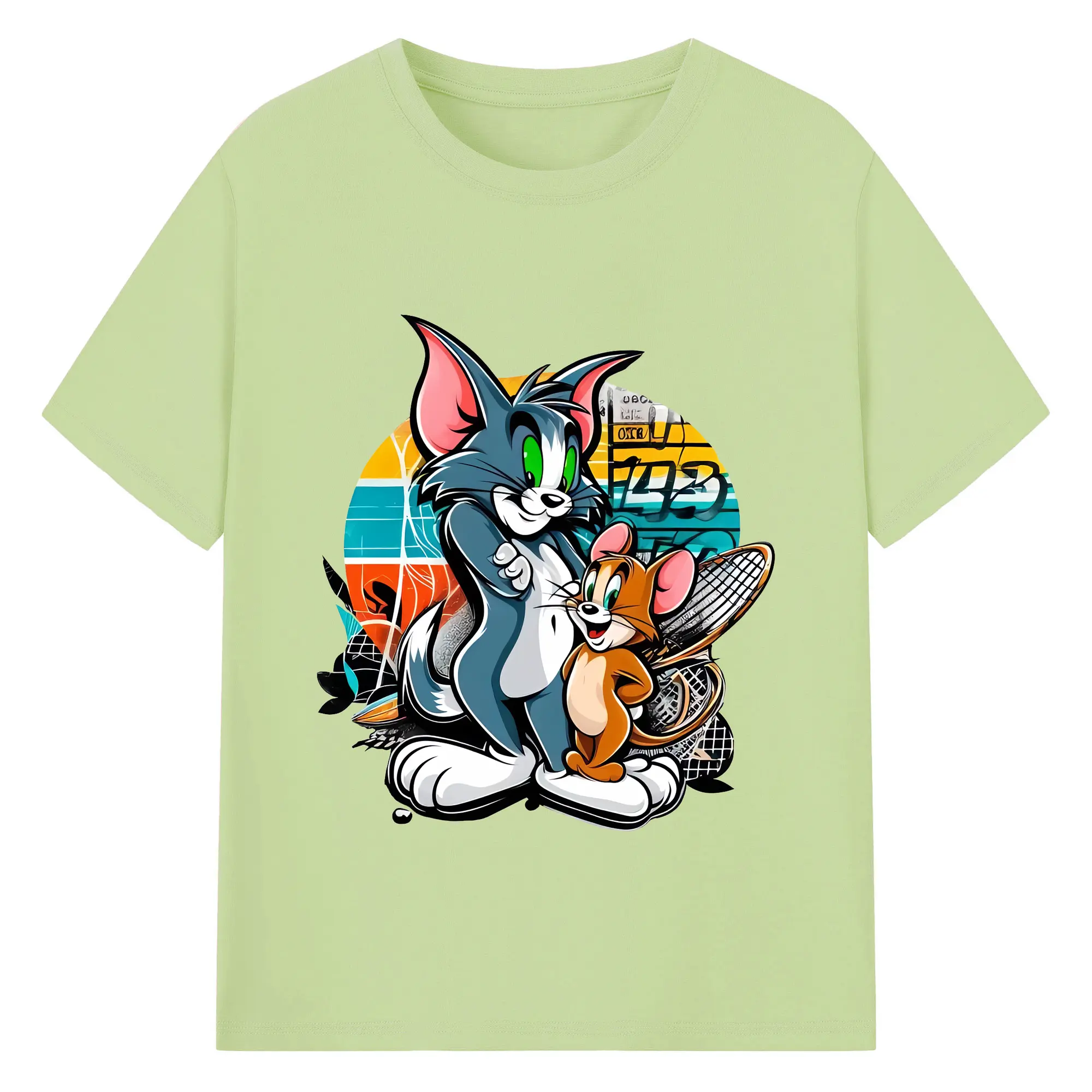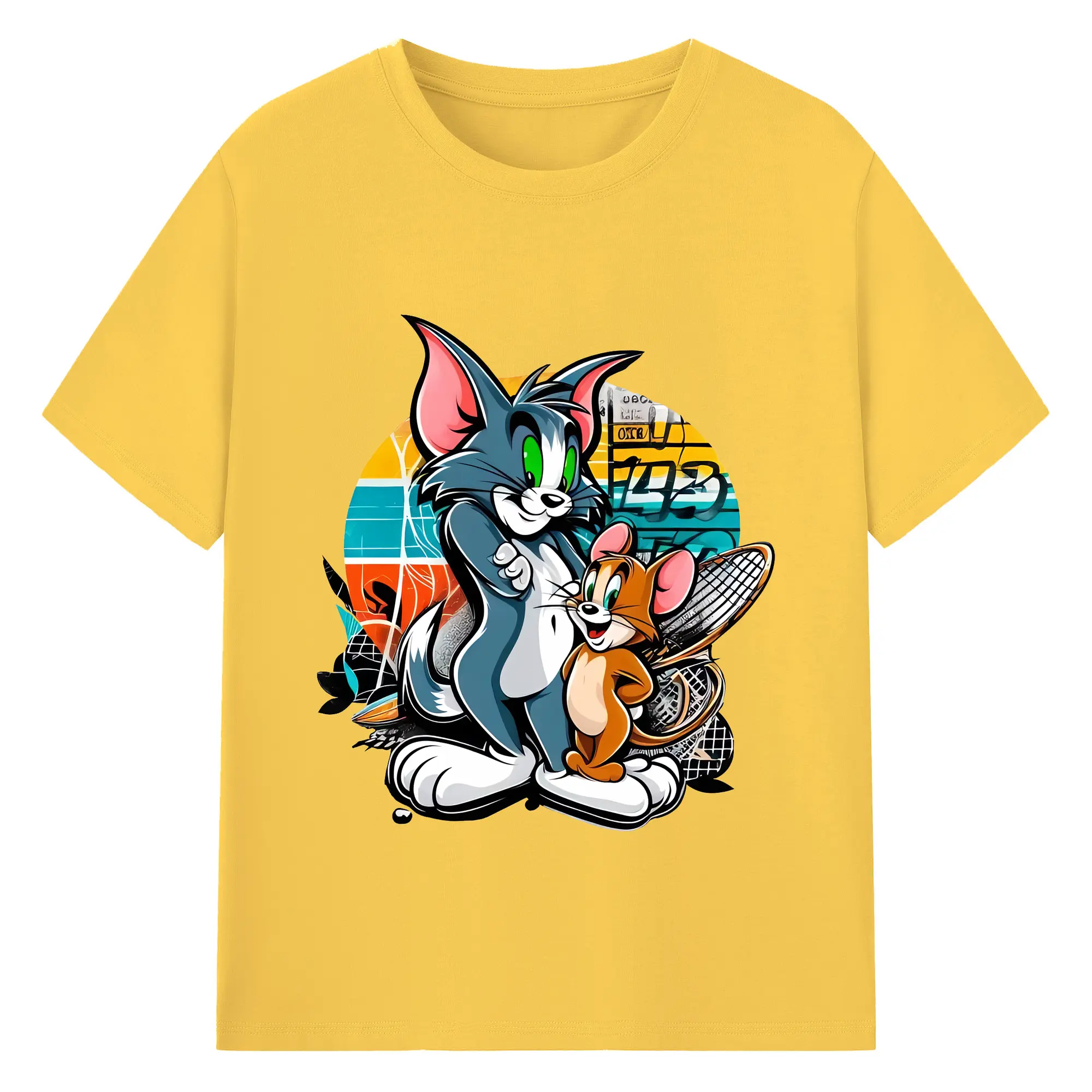 トムとジェリー グッズ トム - 綿100% 半袖Tシャツ ・ バックプリント ・ 快適 通気性 ・ 日常使い 散歩 スポーツ用