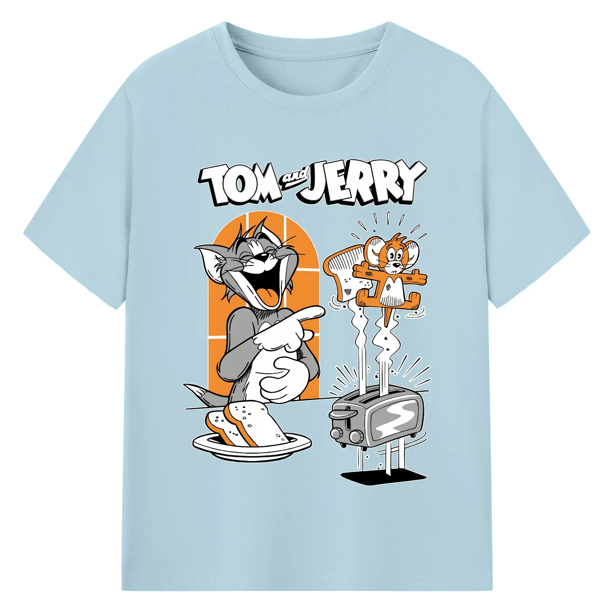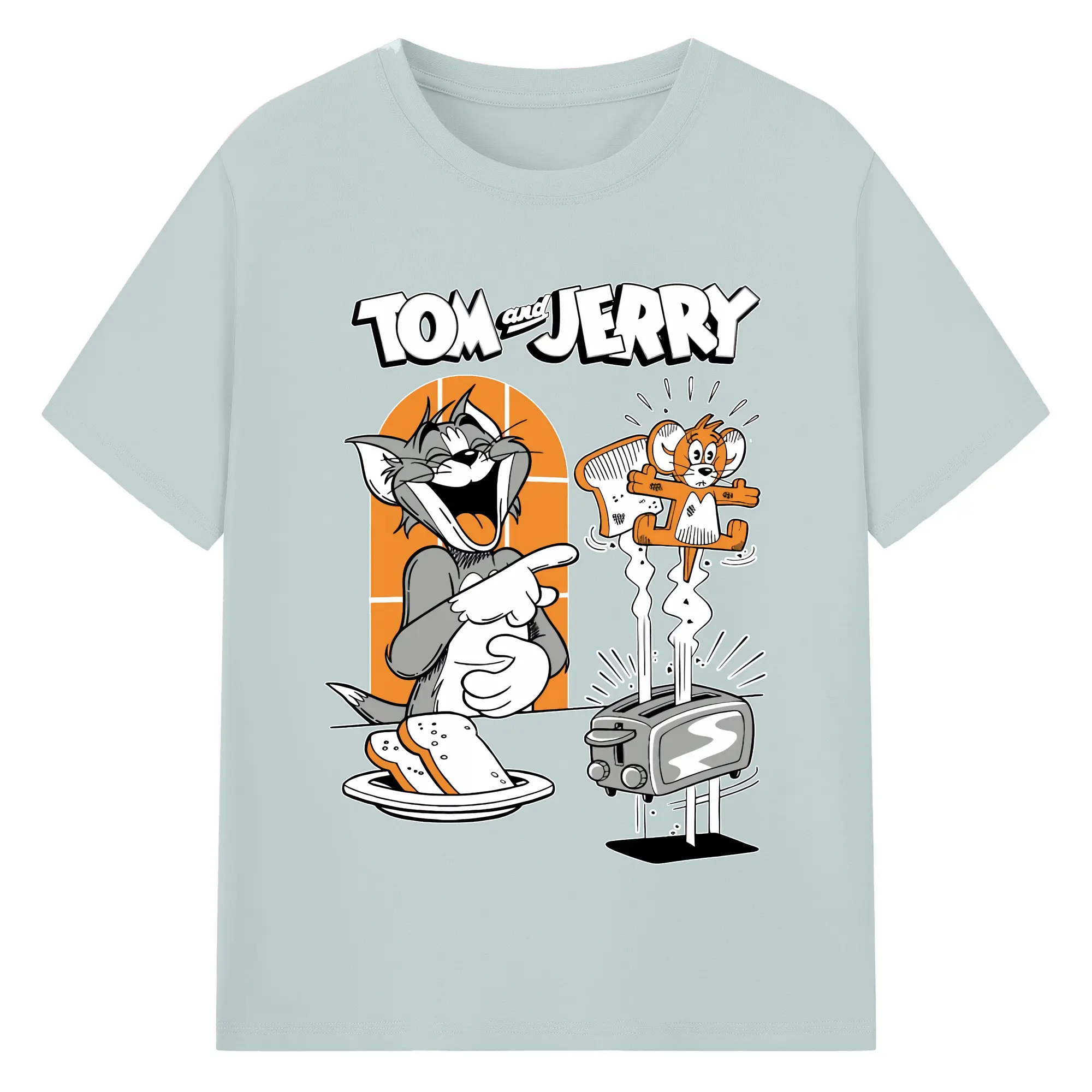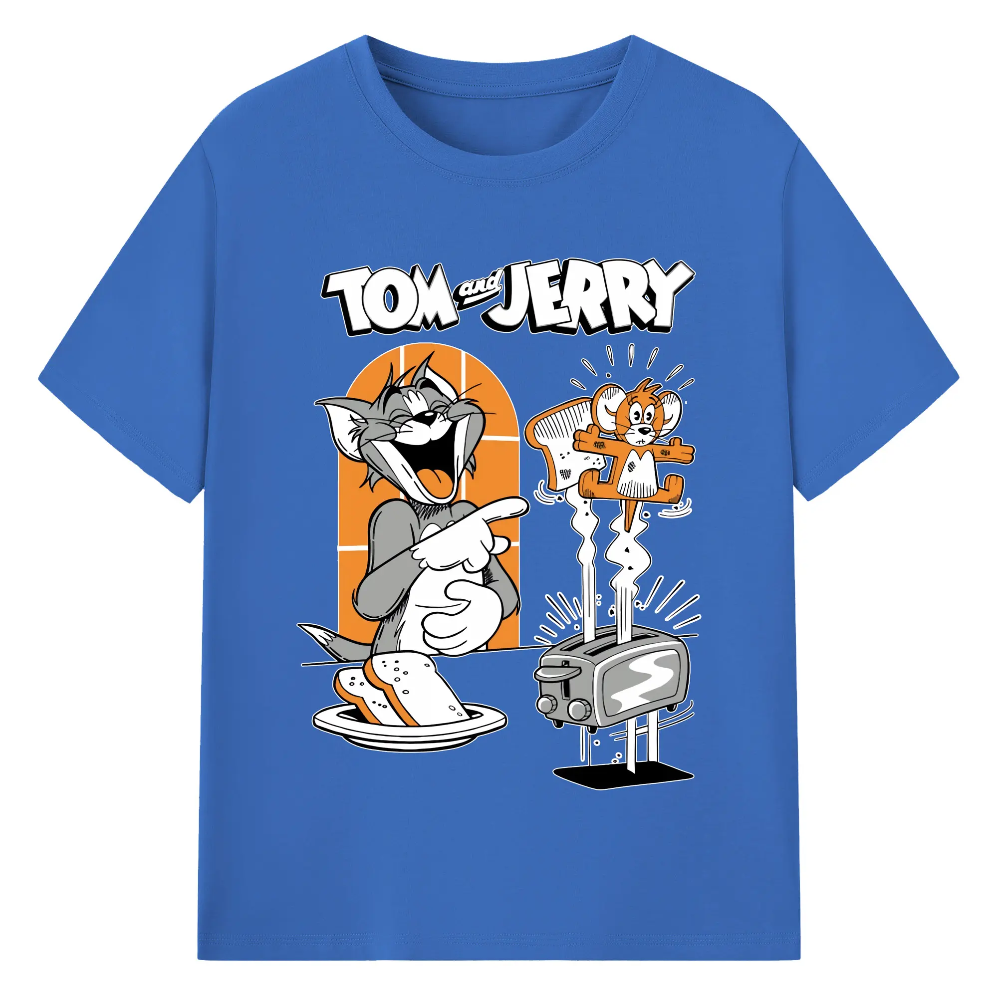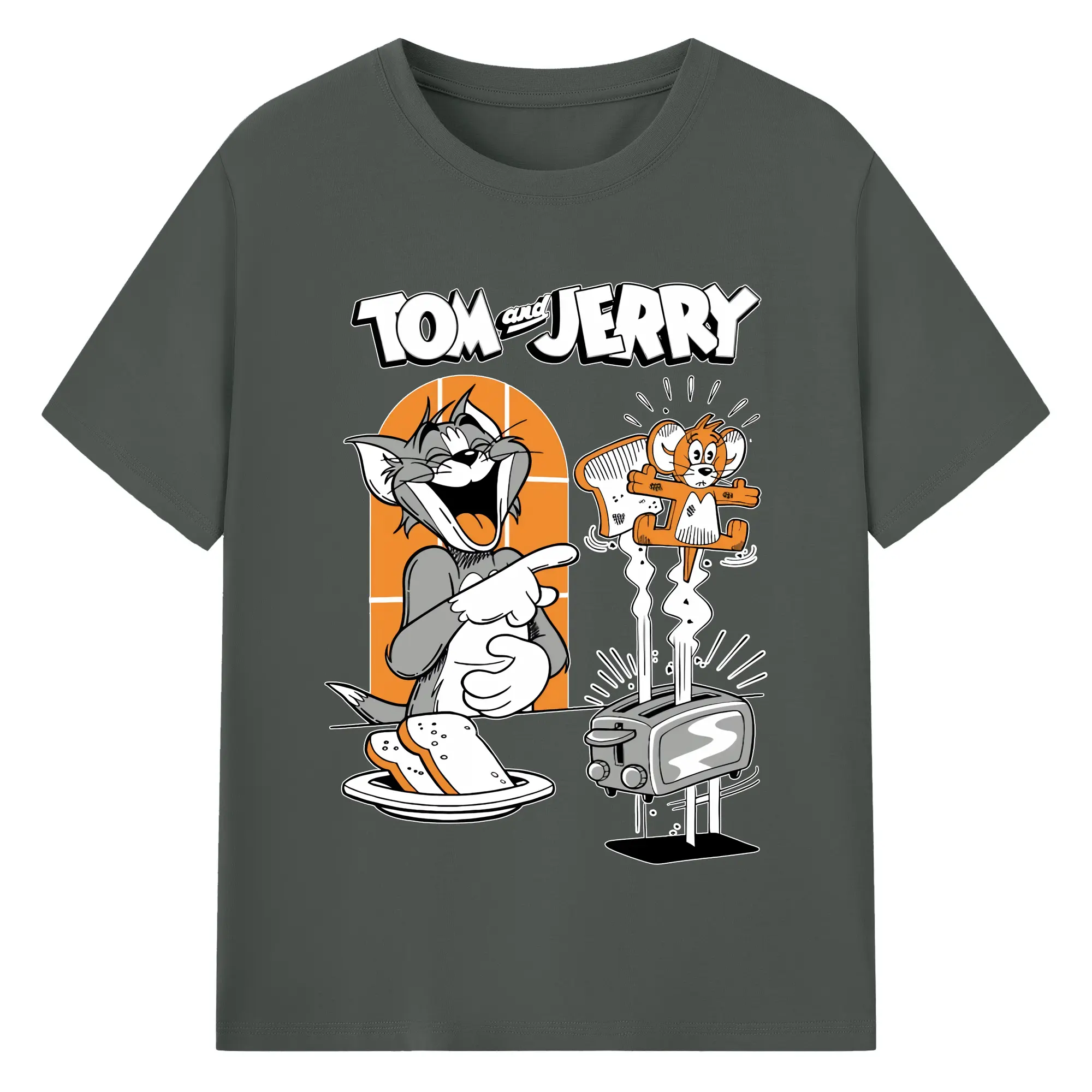 トムとジェリー グッズ トム - 綿100% 半袖Tシャツ ・ バックプリント ・ 快適 通気性 ・ 日常使い 散歩 スポーツ用