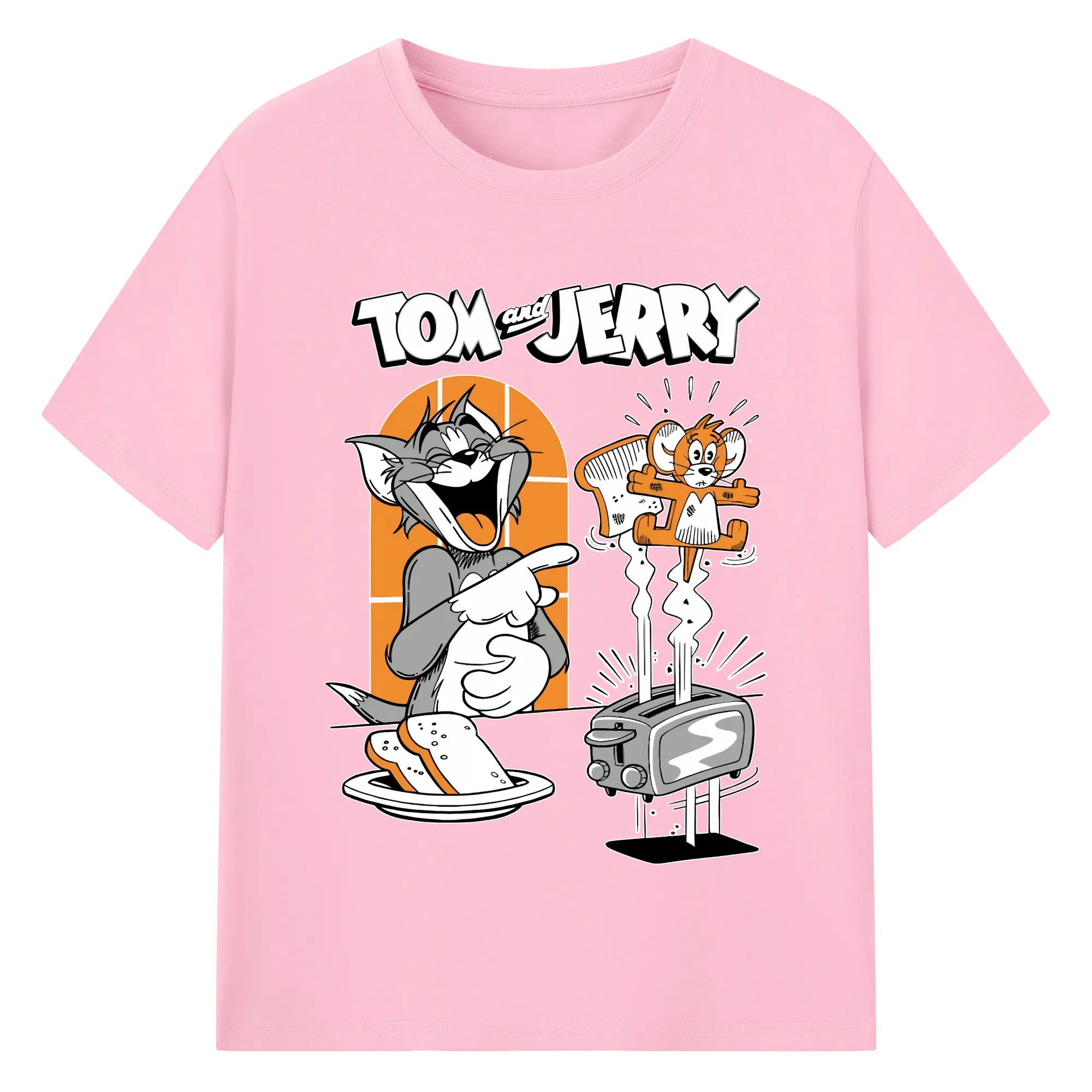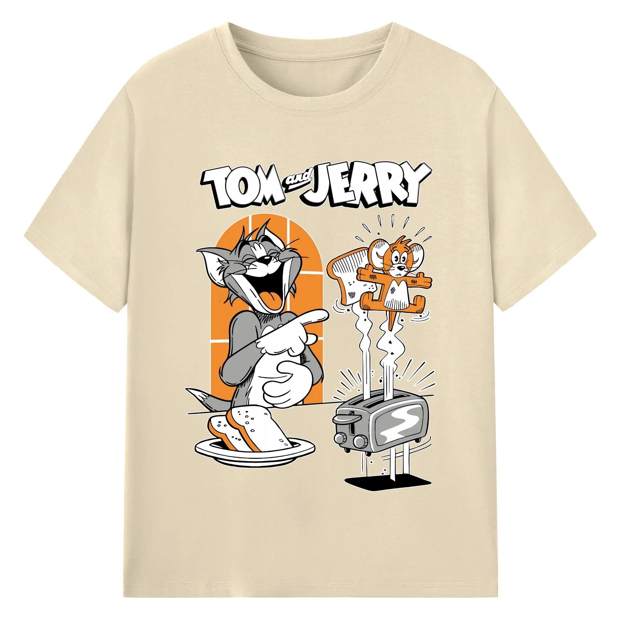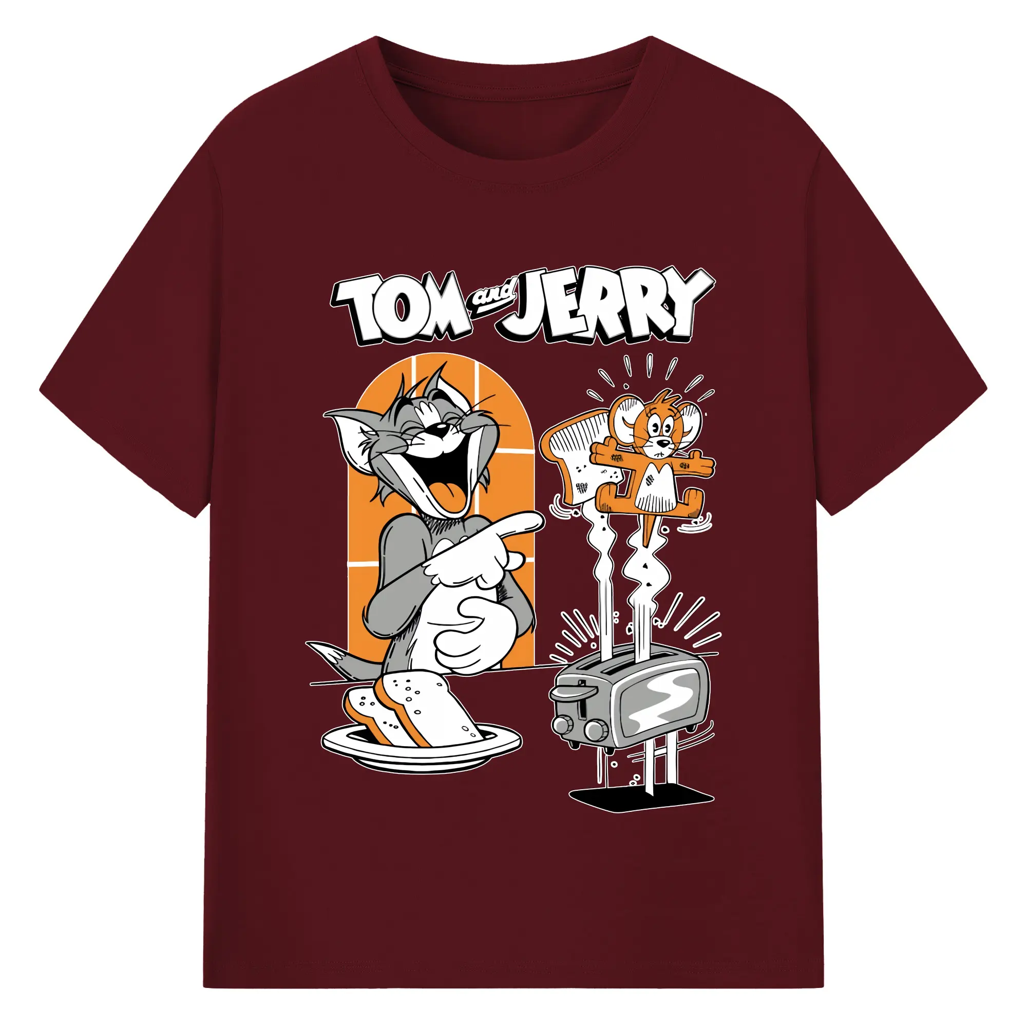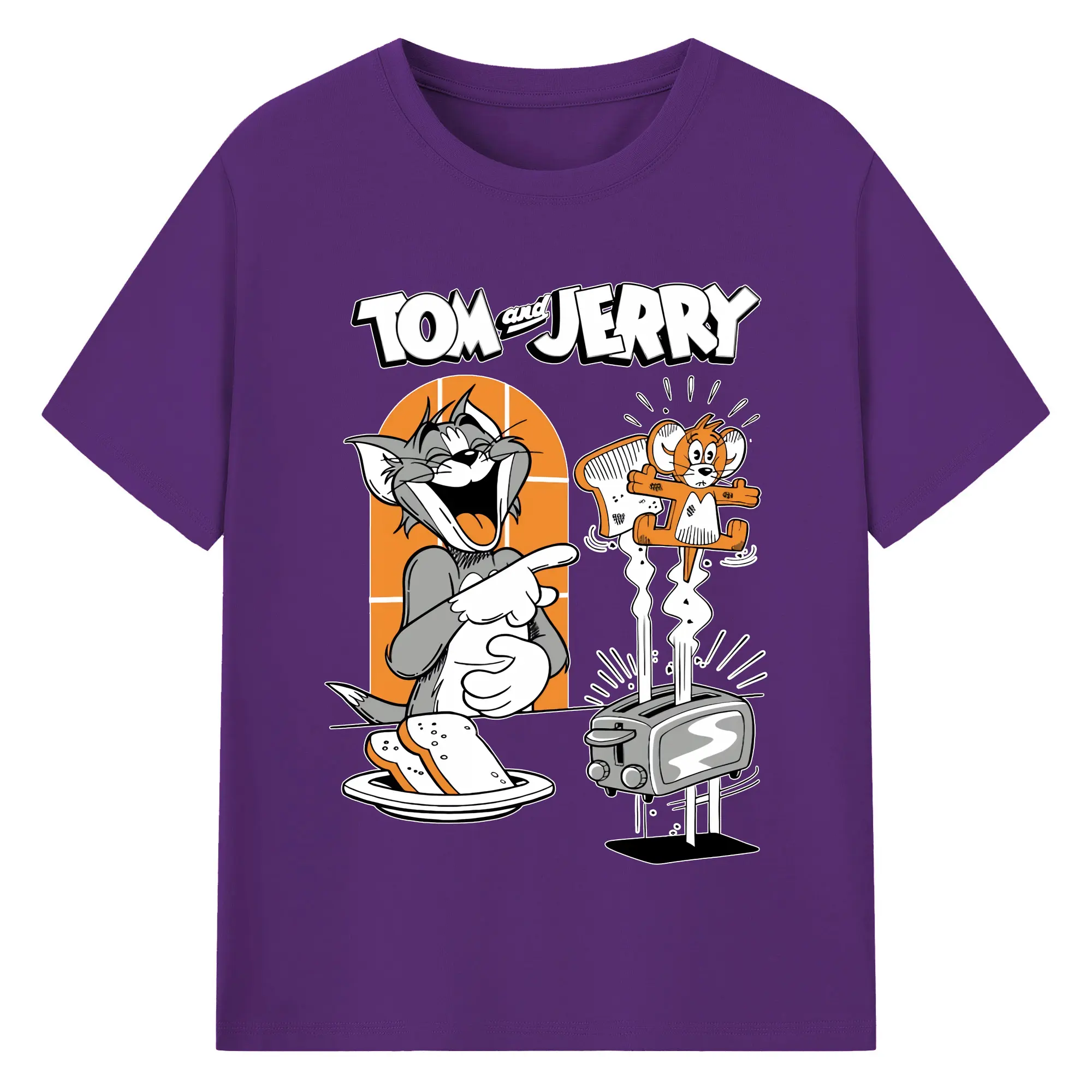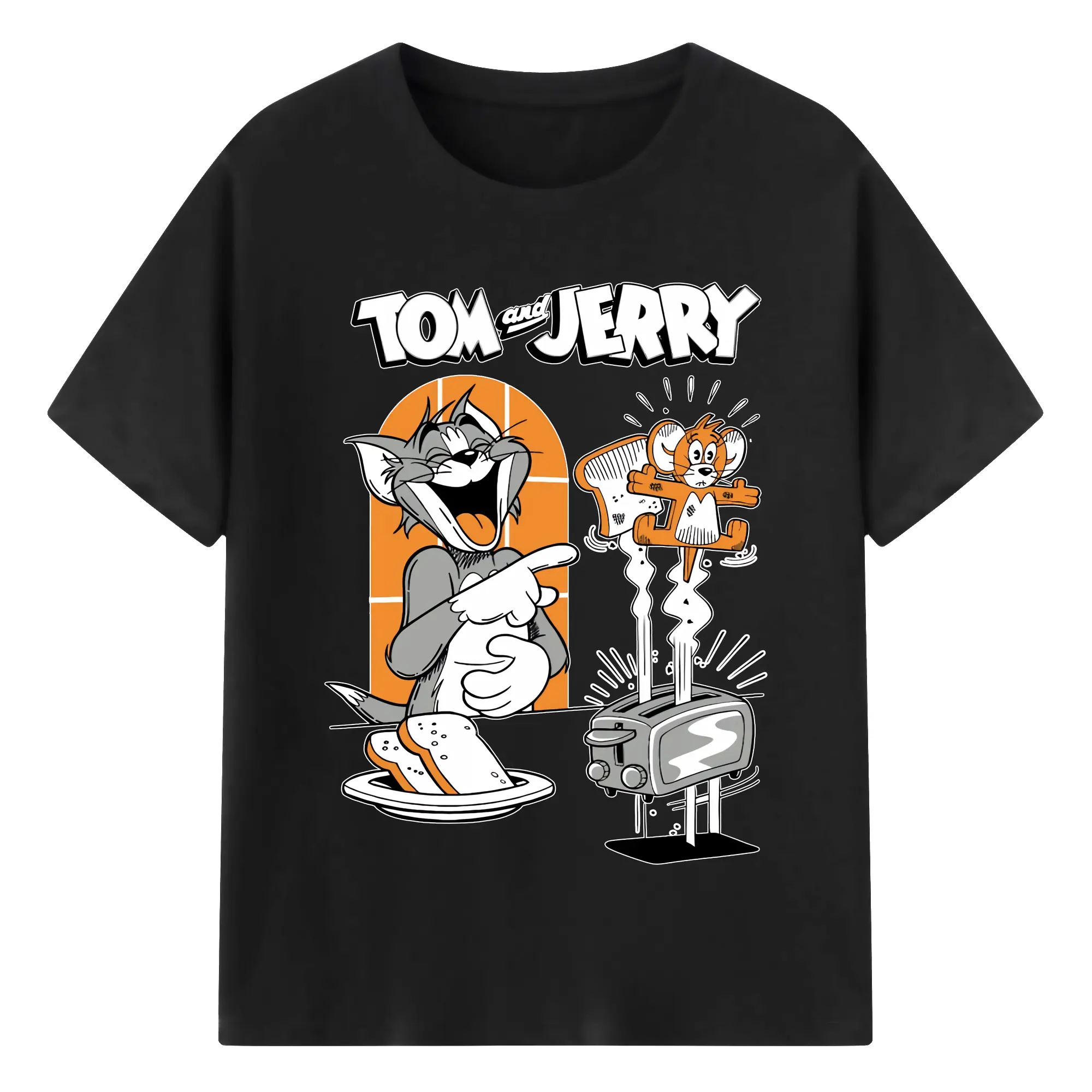トムとジェリー グッズ トム - 綿100% 半袖Tシャツ ・ バックプリント ・ 快適 通気性 ・ 日常使い 散歩 スポーツ用