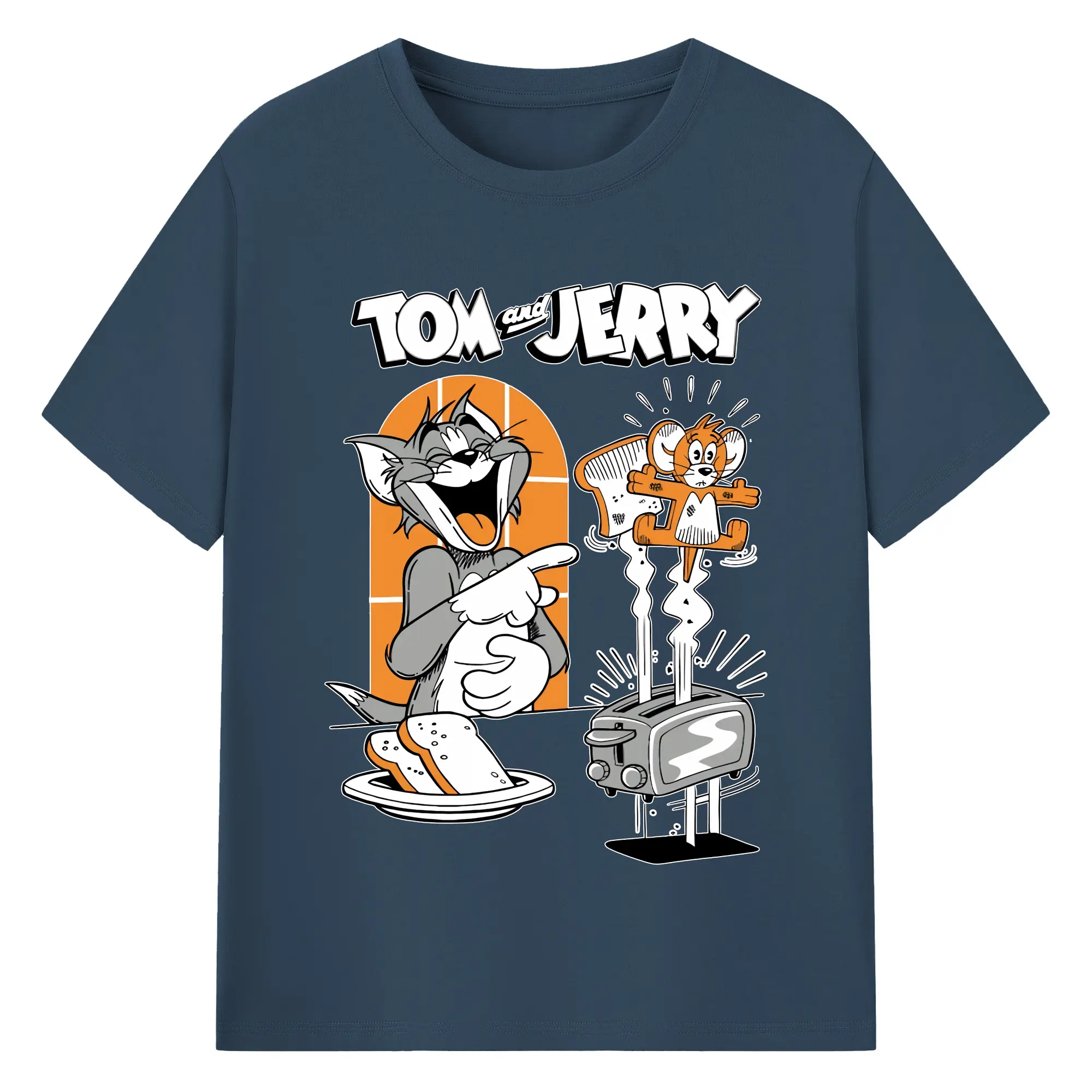 トムとジェリー グッズ トム - 綿100% ヴィンテージ風 半袖Tシャツ ・ フロントプリント ・ 柔らか肌触り ・ 通気性 快適 ・ スポーツ カジュアル 外出用