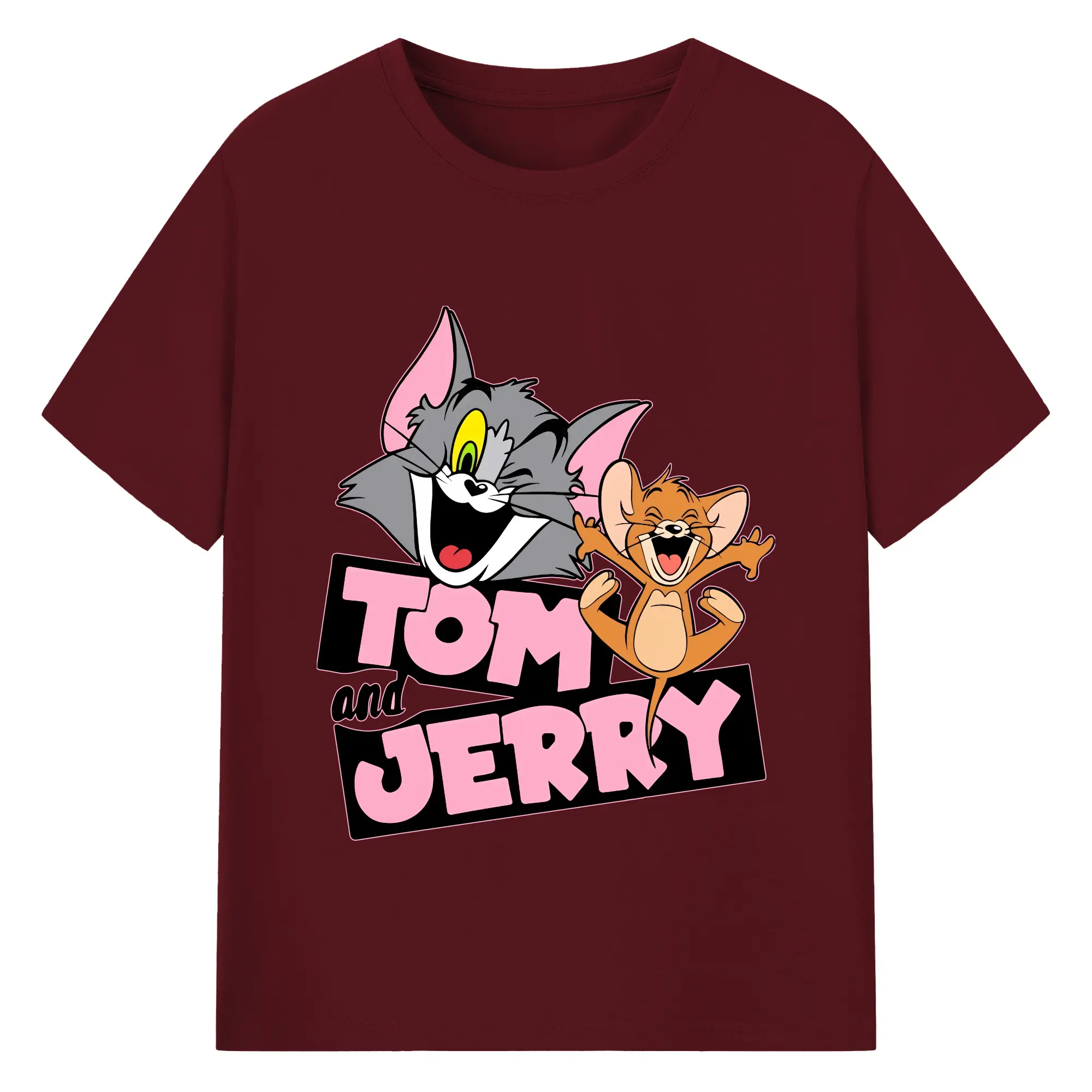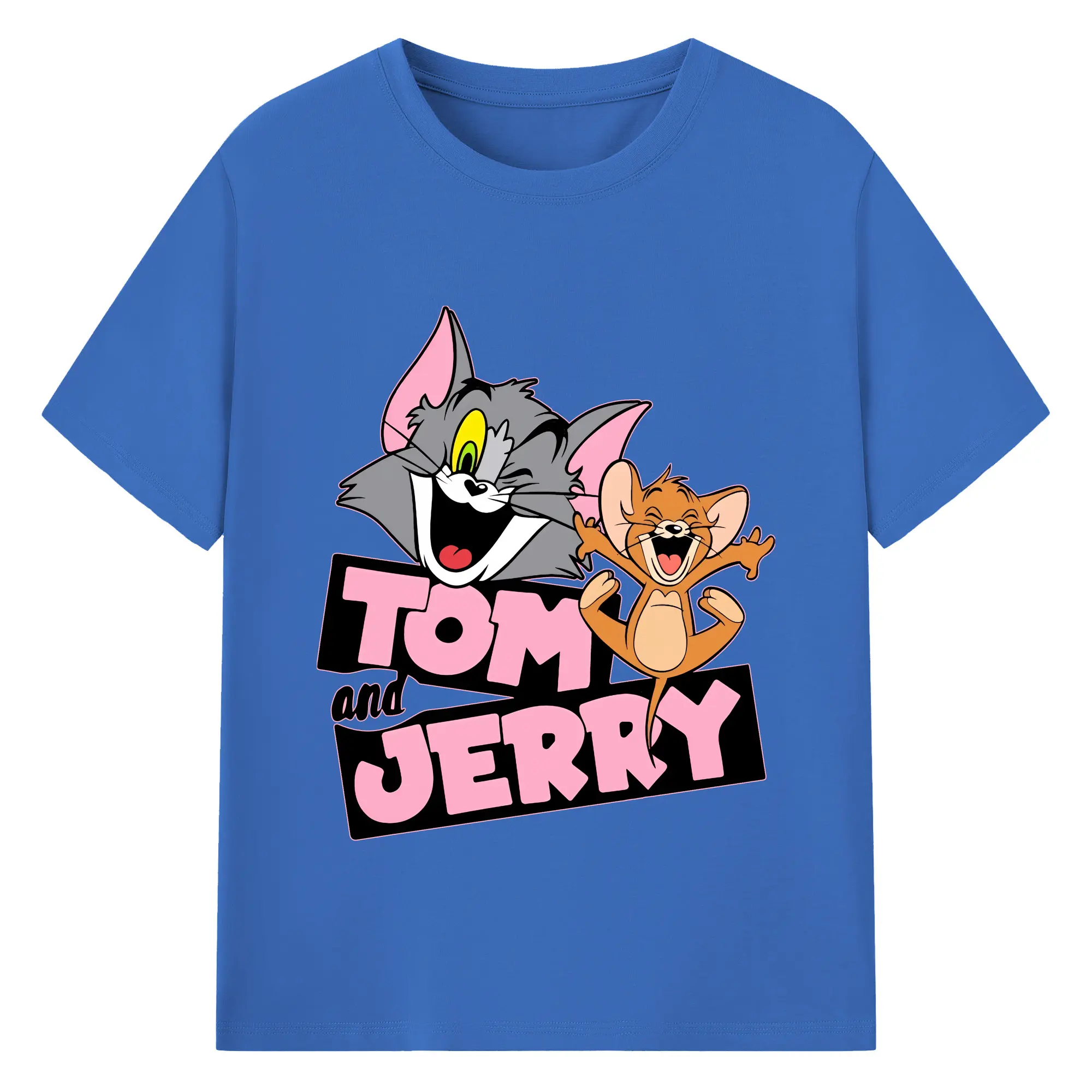 トムとジェリー グッズ トム - 綿100% 半袖Tシャツ ・ バックプリント ・ 快適 通気性 ・ 日常使い 散歩 スポーツ用