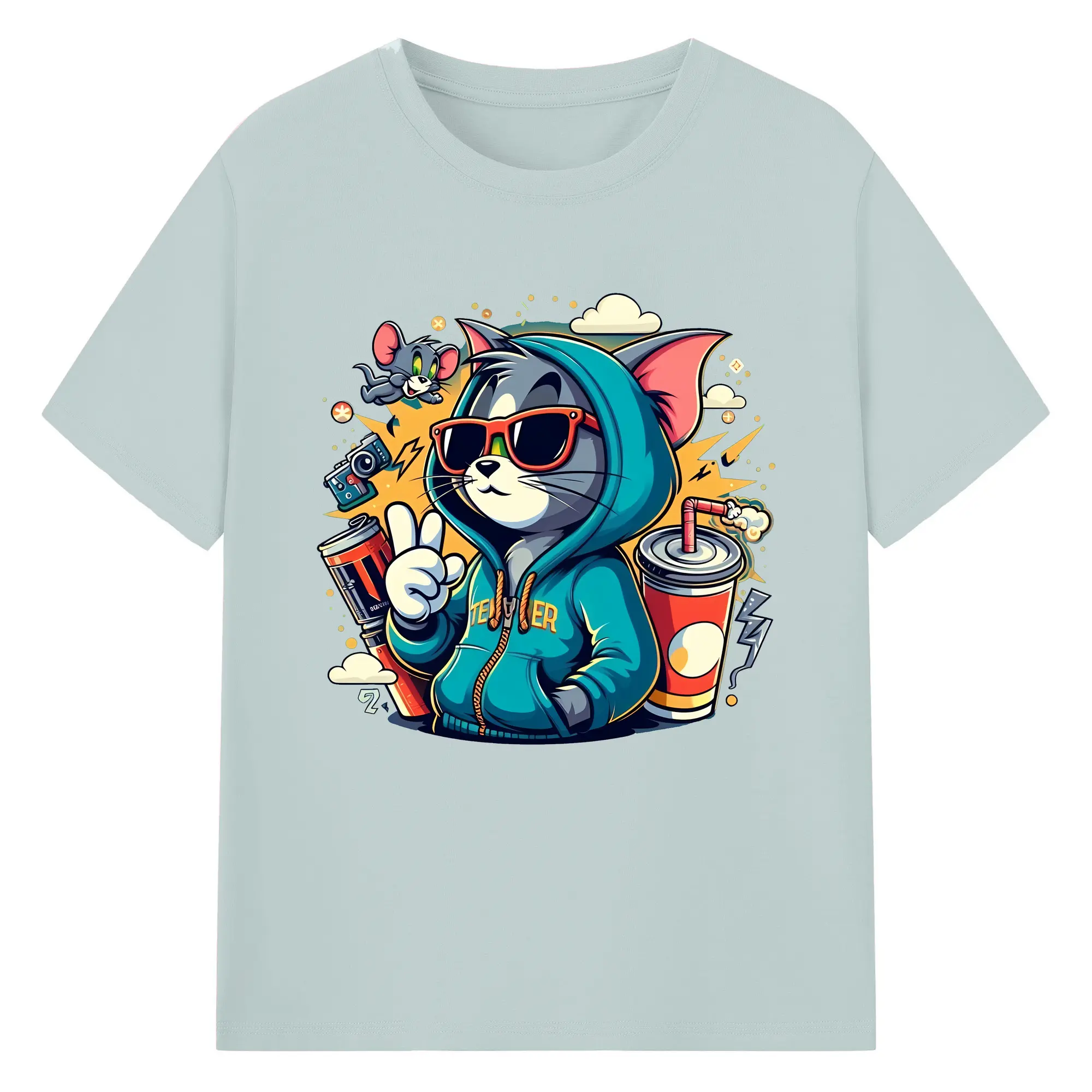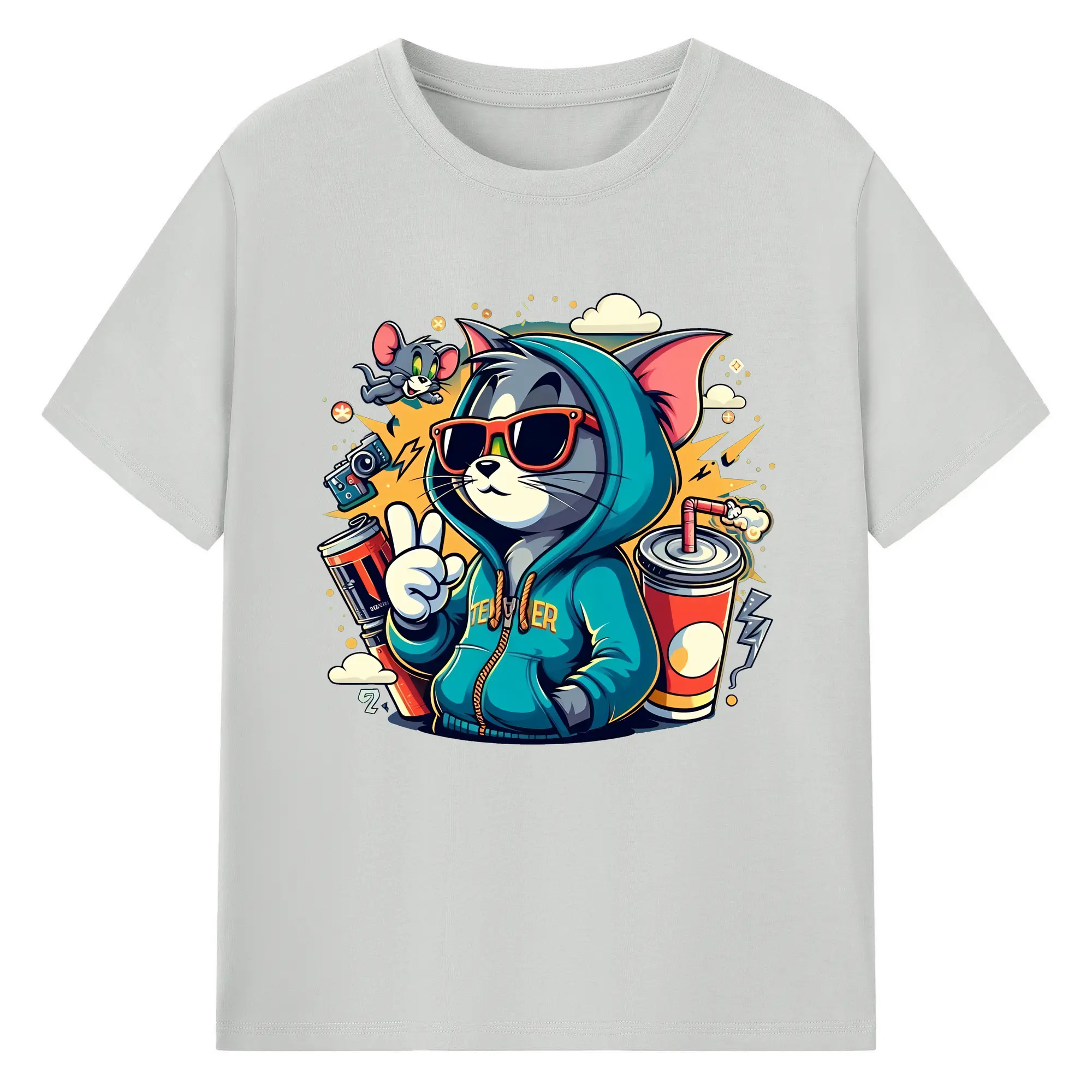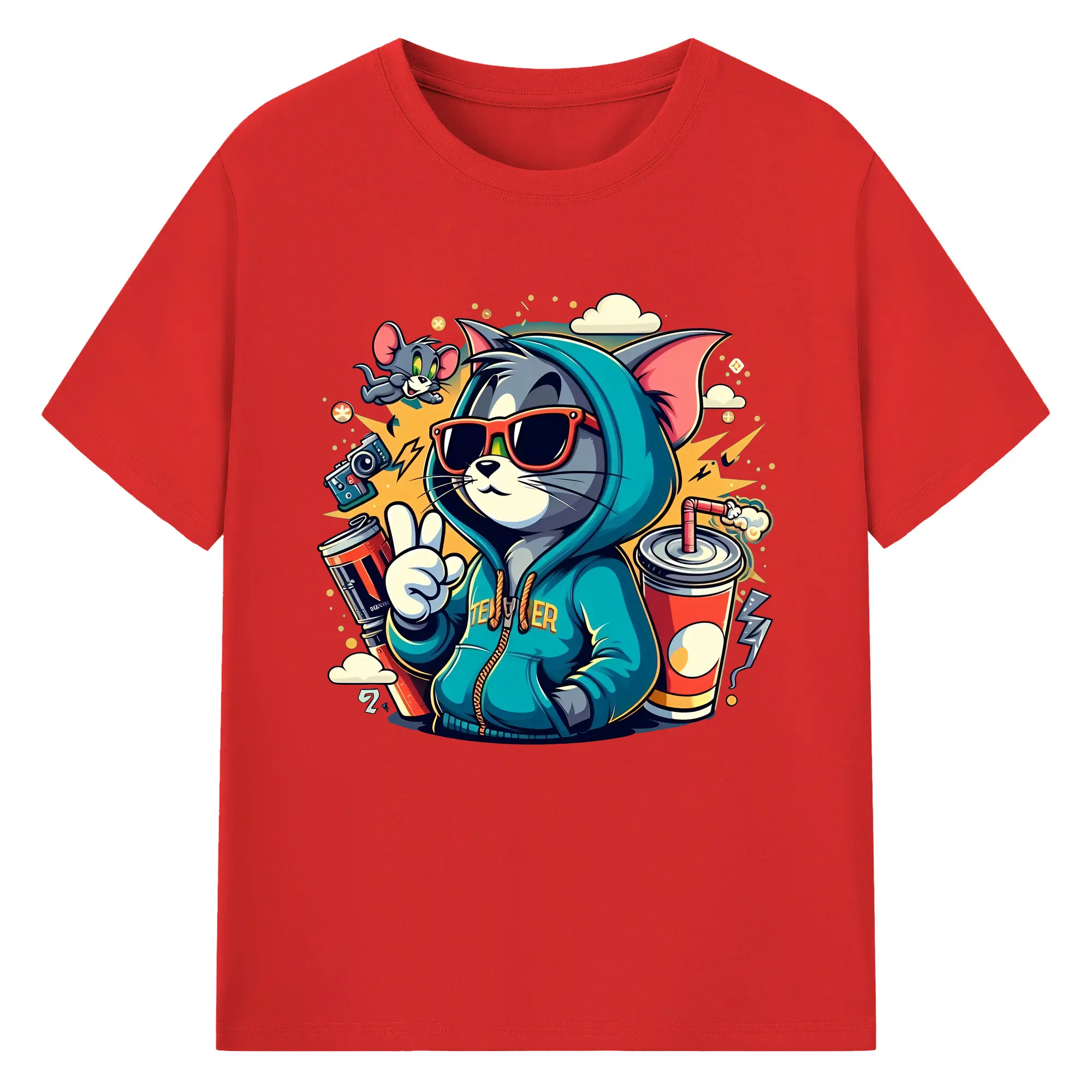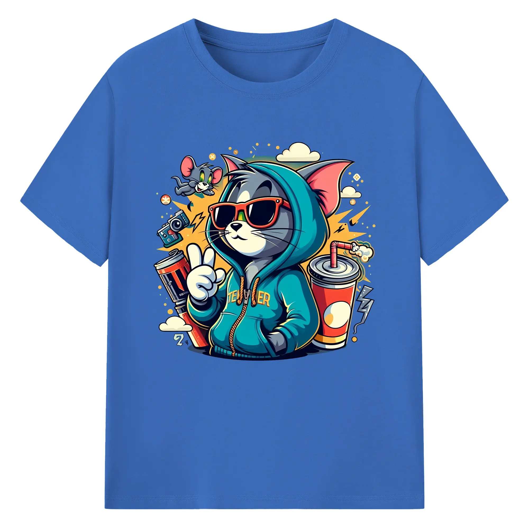 トムとジェリー グッズ トム - 綿100% 半袖Tシャツ ・ バックプリント ・ 快適 通気性 ・ 日常使い 散歩 スポーツ用