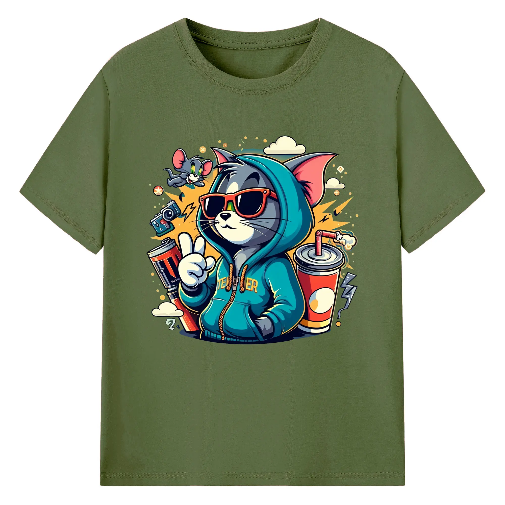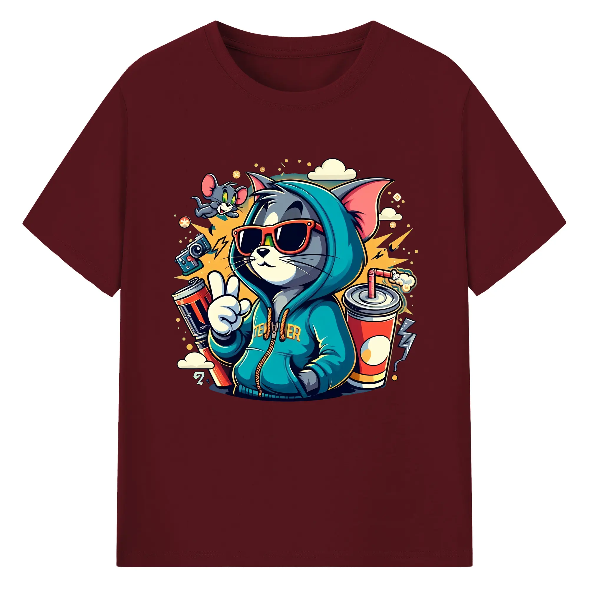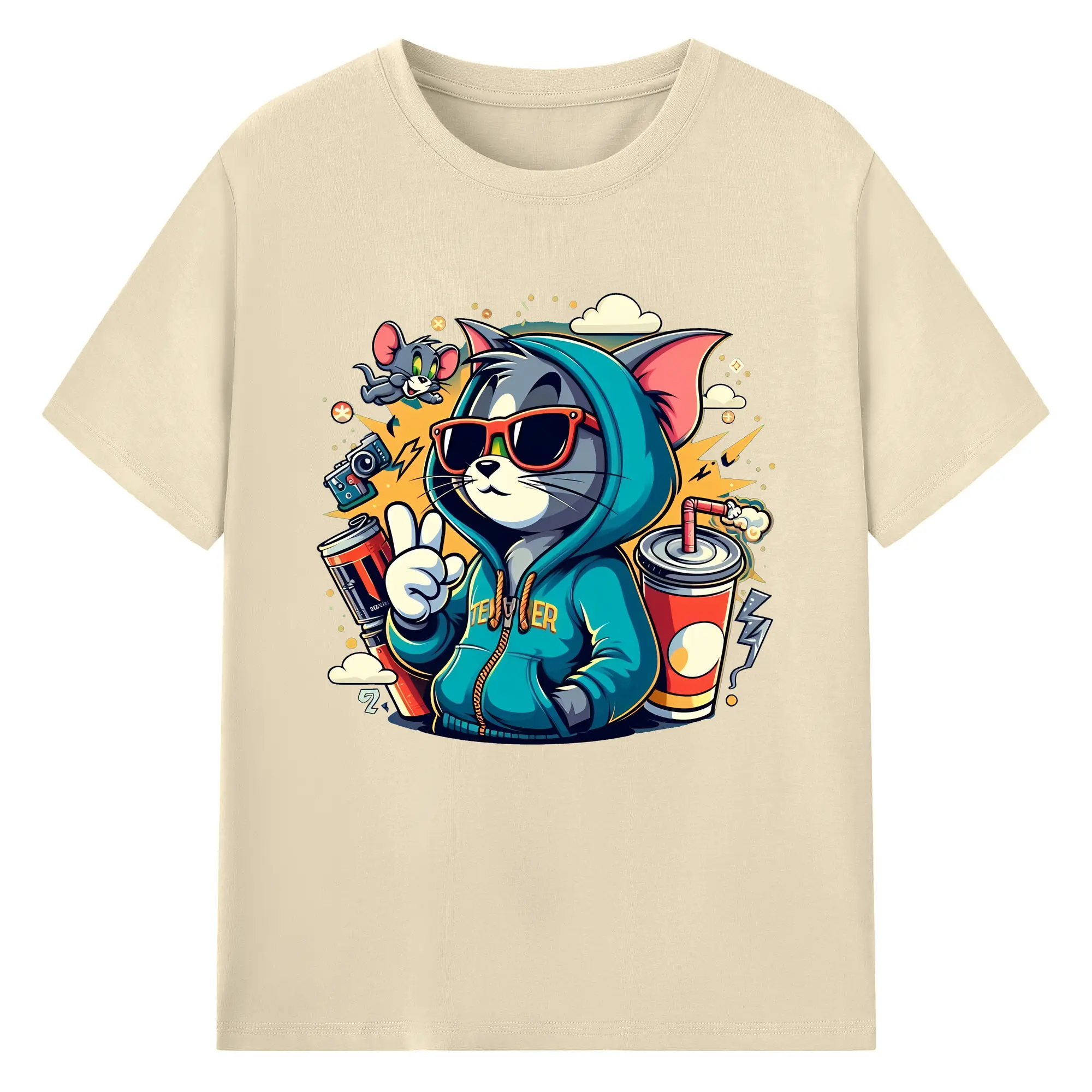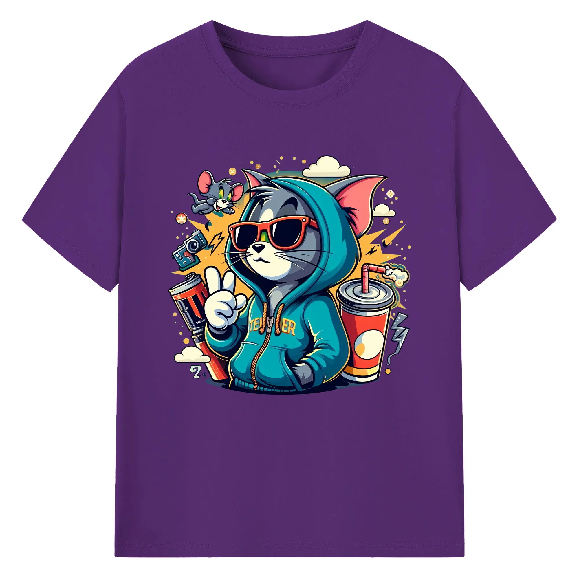 トムとジェリー グッズ トム - 綿100% 半袖Tシャツ ・ バックプリント ・ 快適 通気性 ・ 日常使い 散歩 スポーツ用