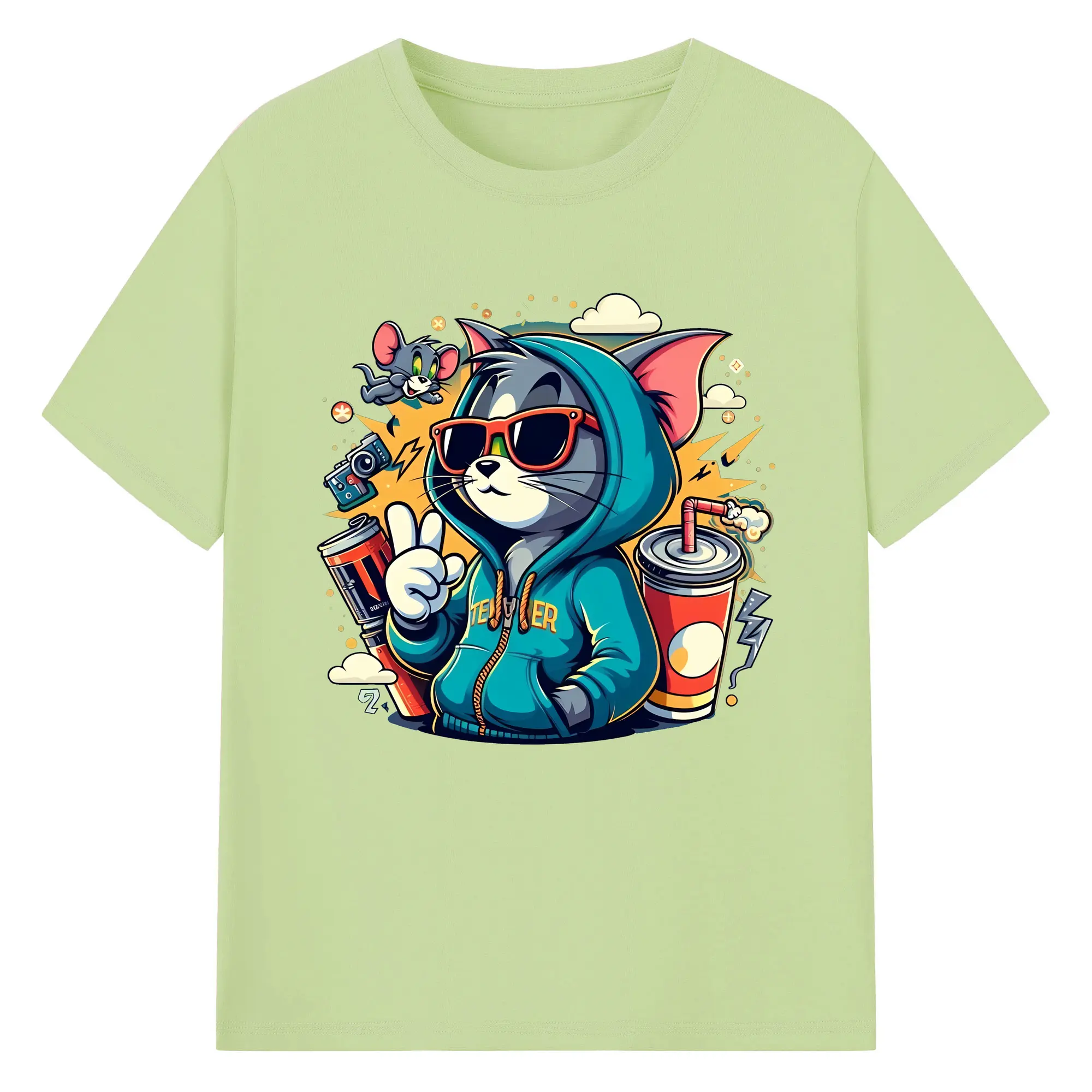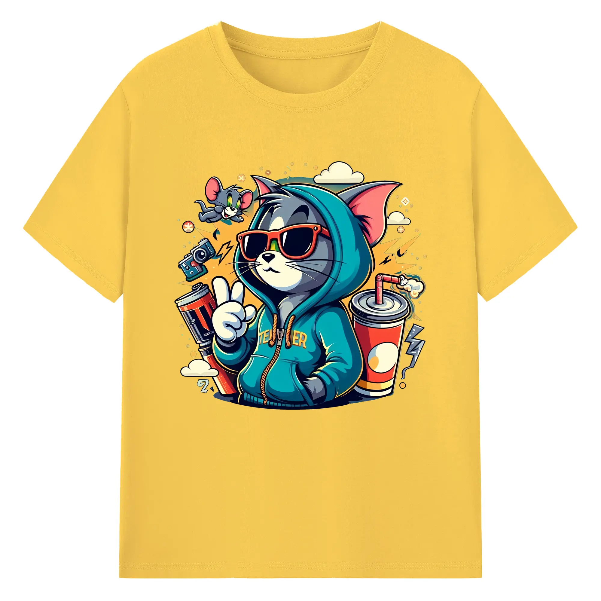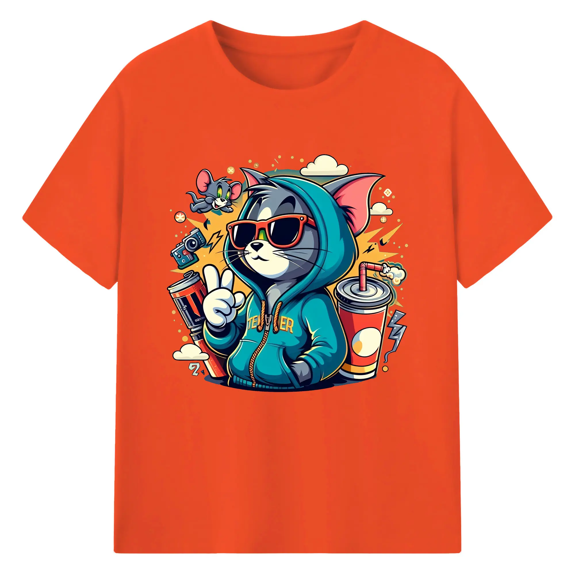 トムとジェリー グッズ トム - 綿100% キッズTシャツ ・ フロントプリント ・ 快適 通気性 ・ スポーツ カジュアル 散歩用