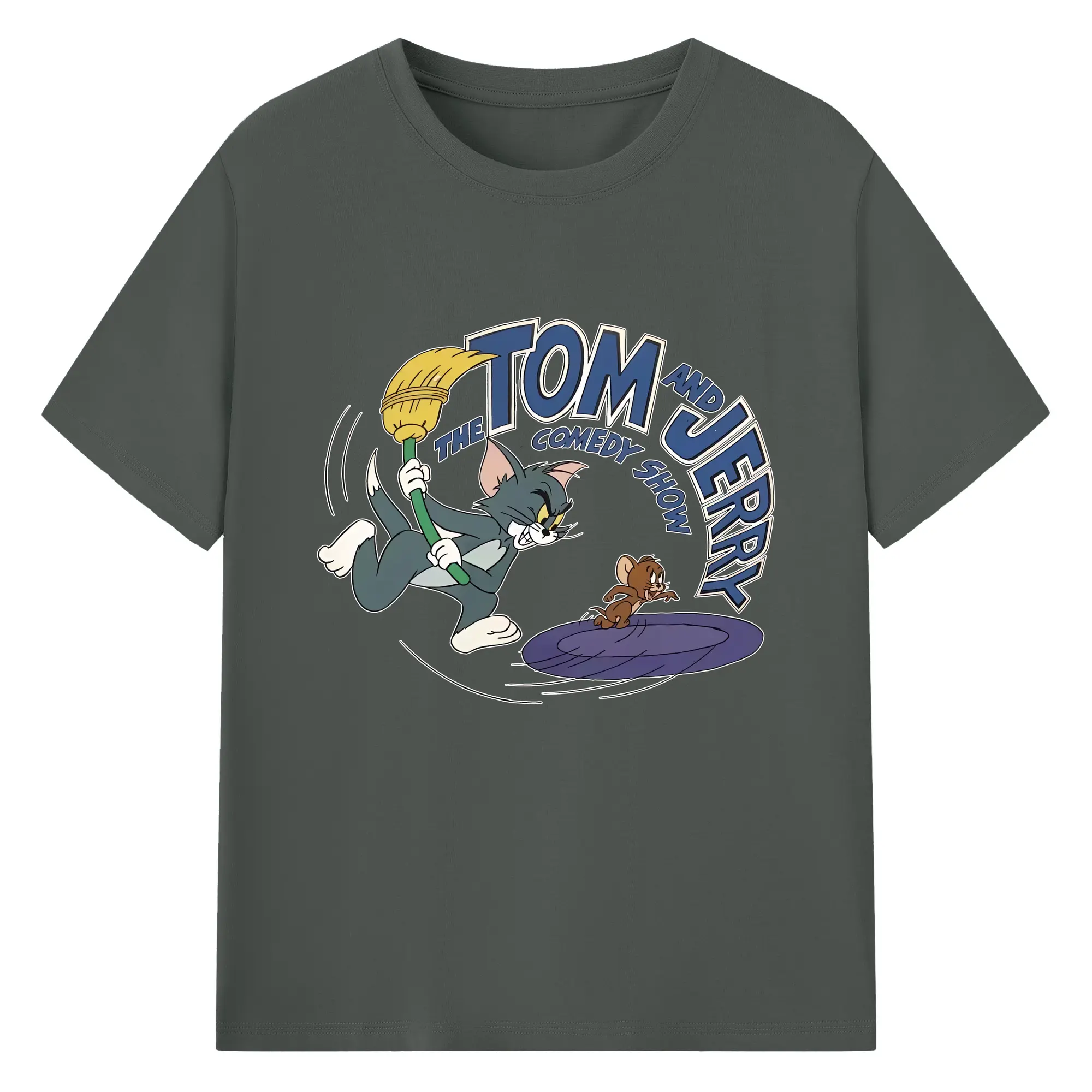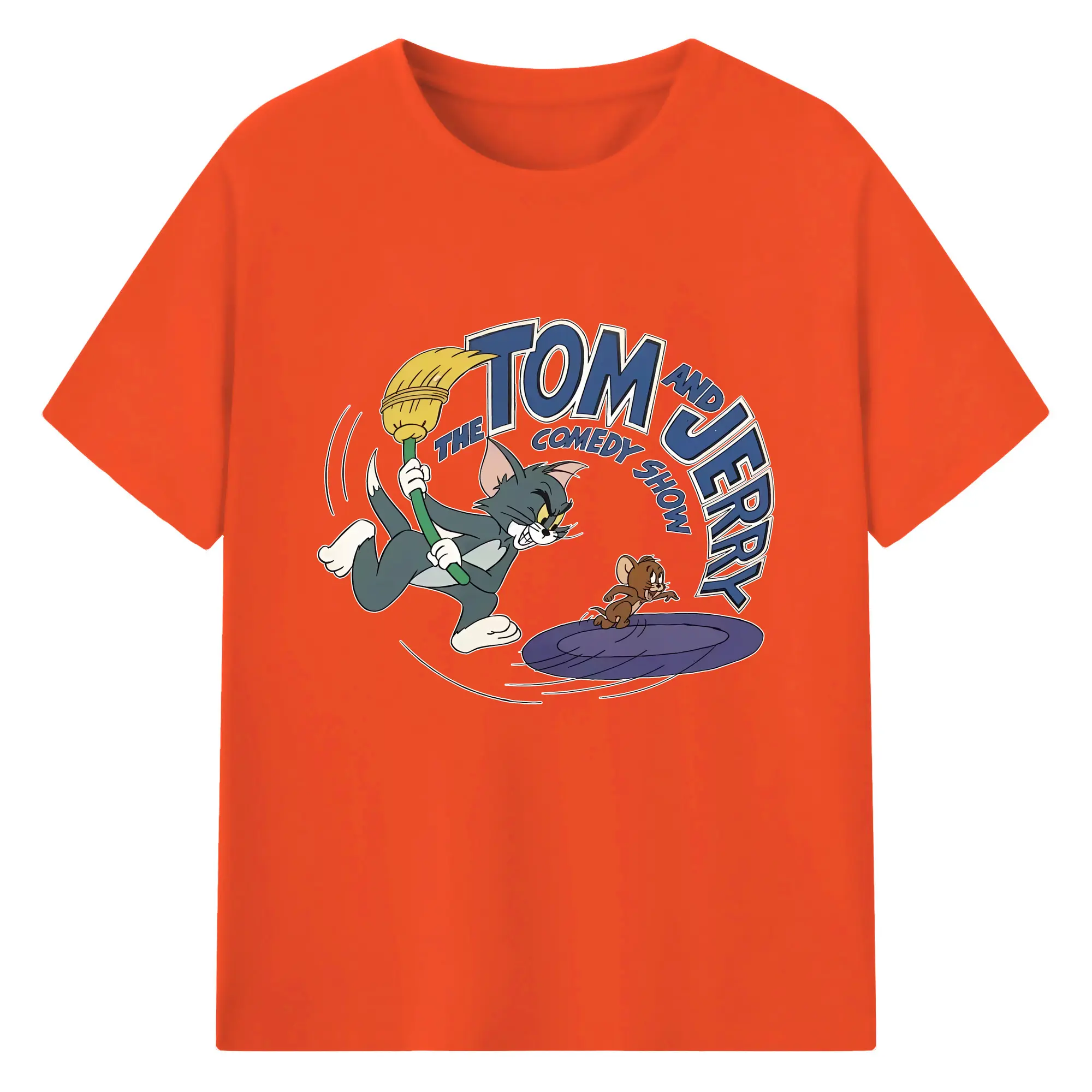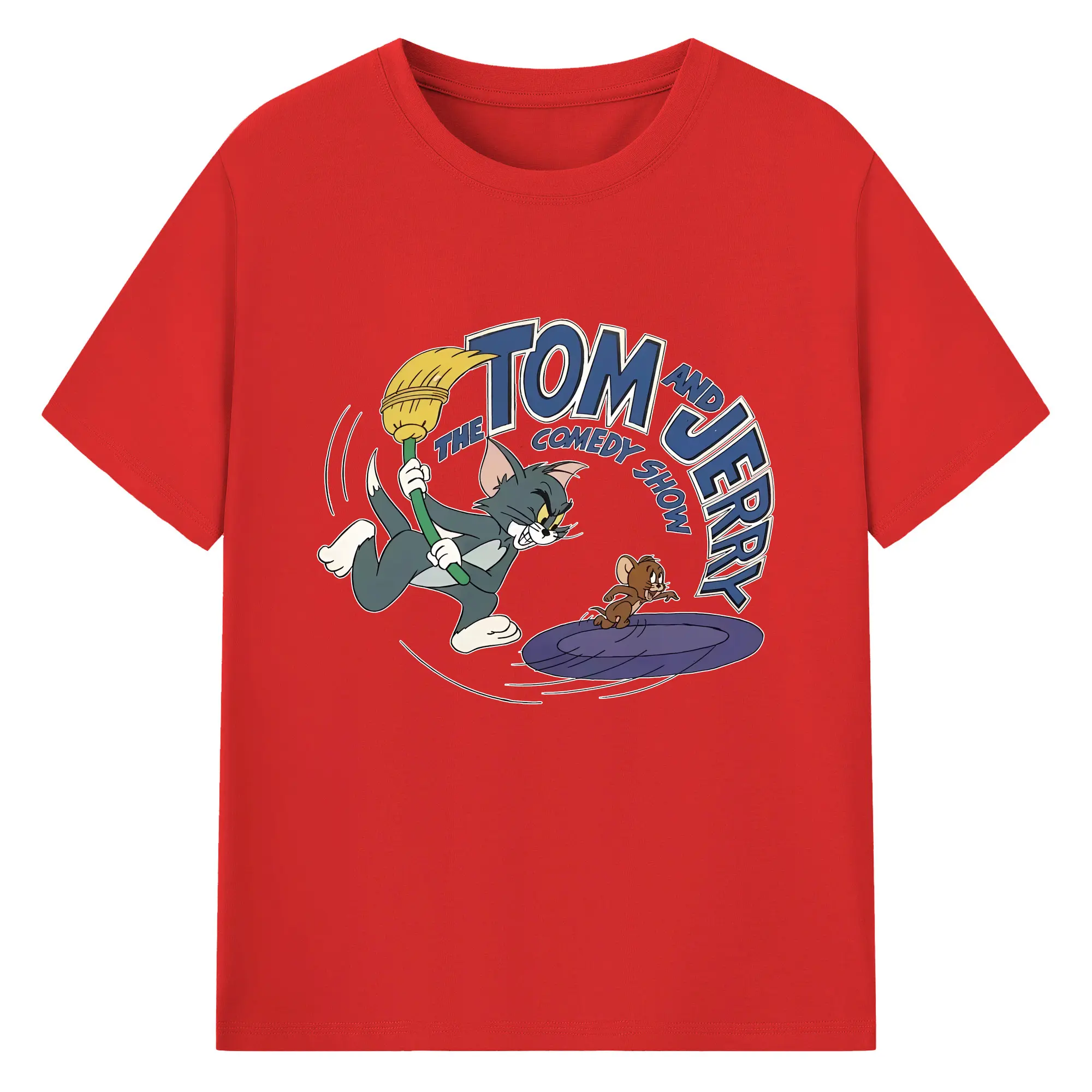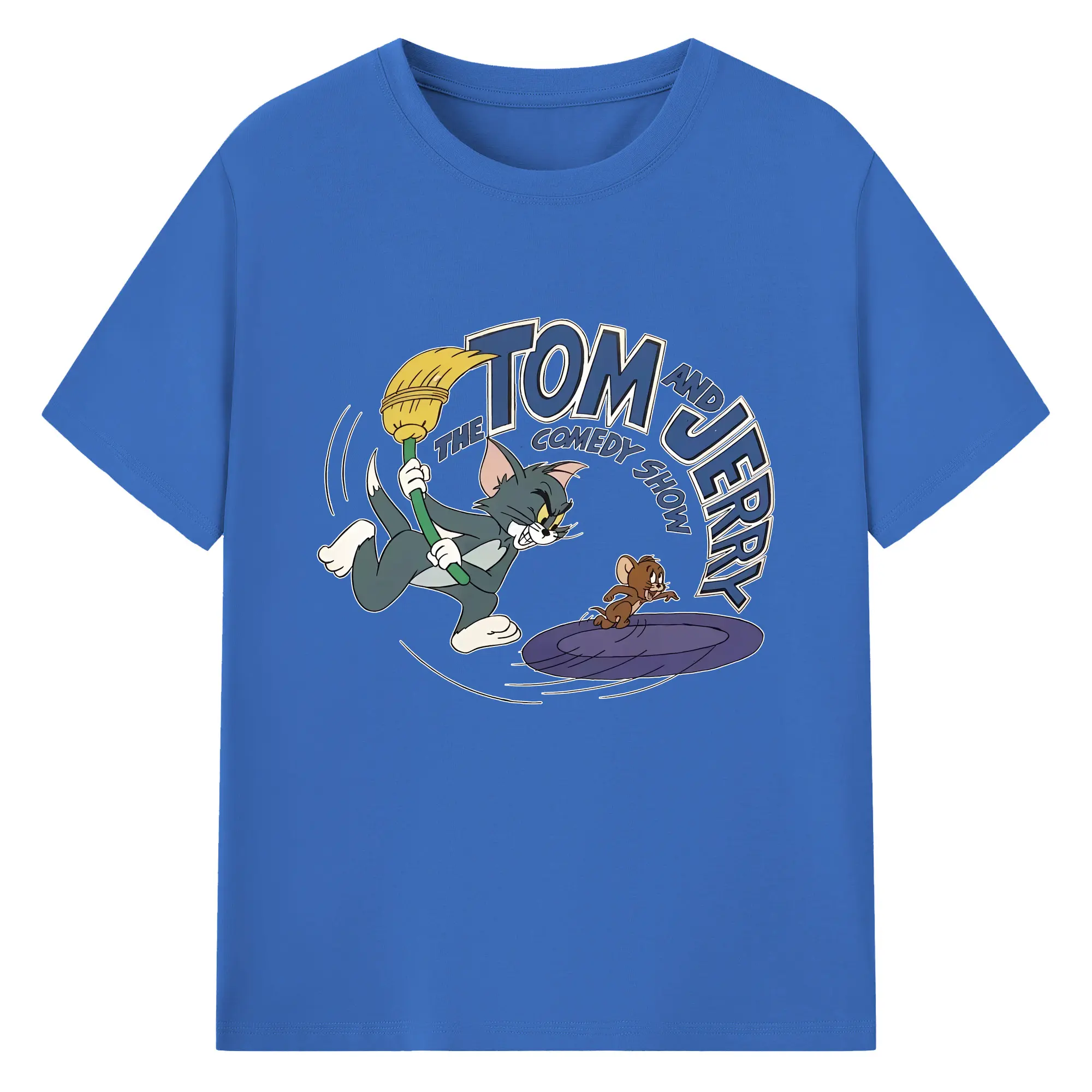 トムとジェリー グッズ トム - 綿100% 半袖Tシャツ ・ バックプリント ・ 快適 通気性 ・ 日常使い 散歩 スポーツ用