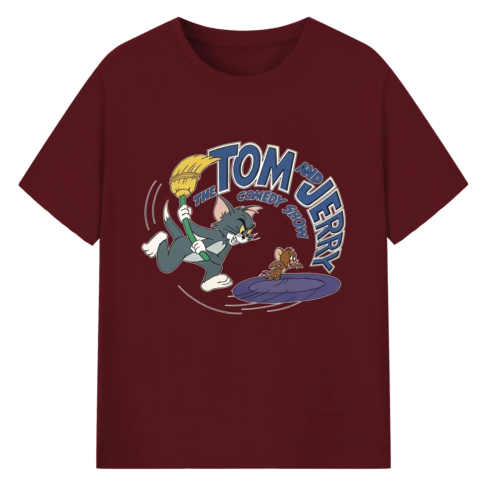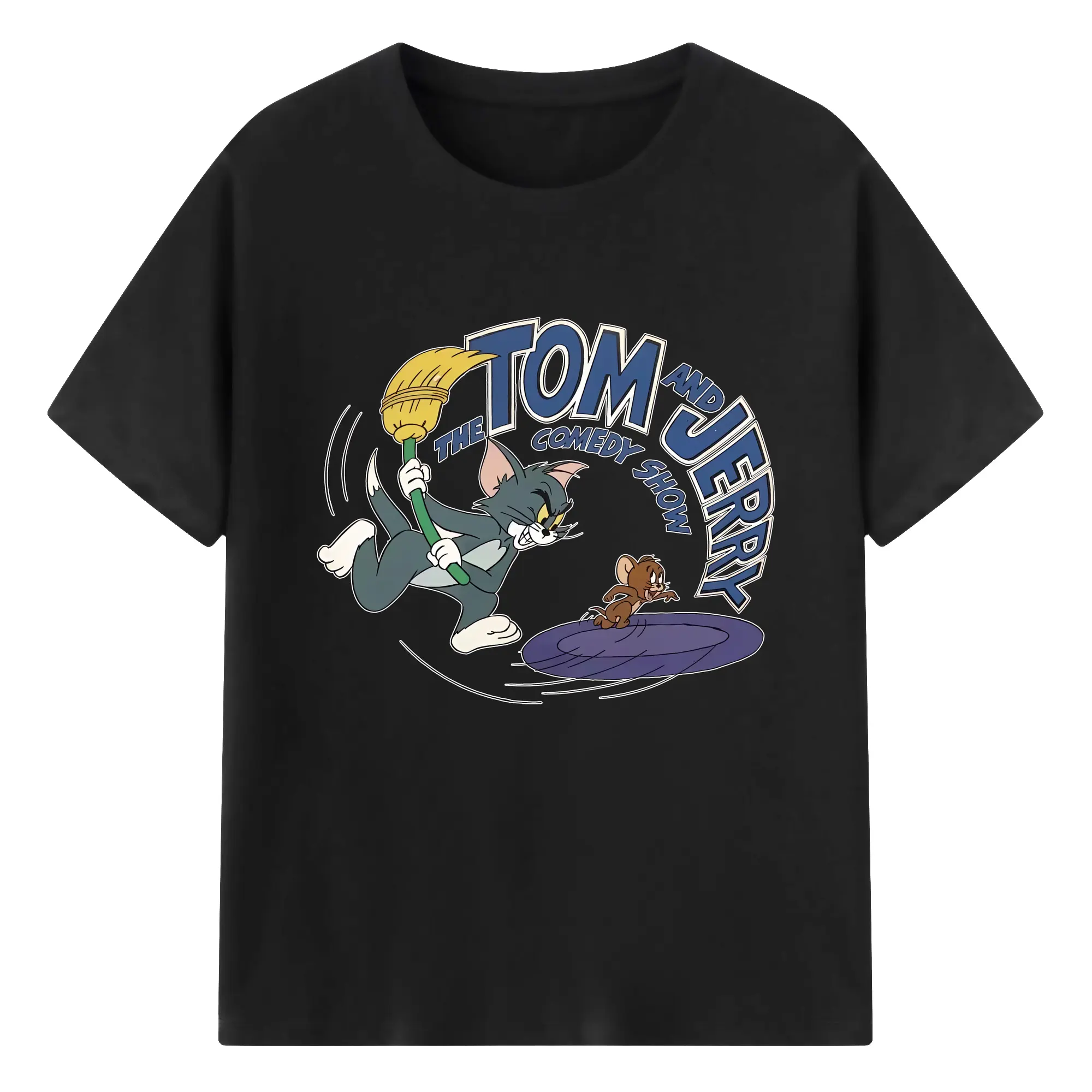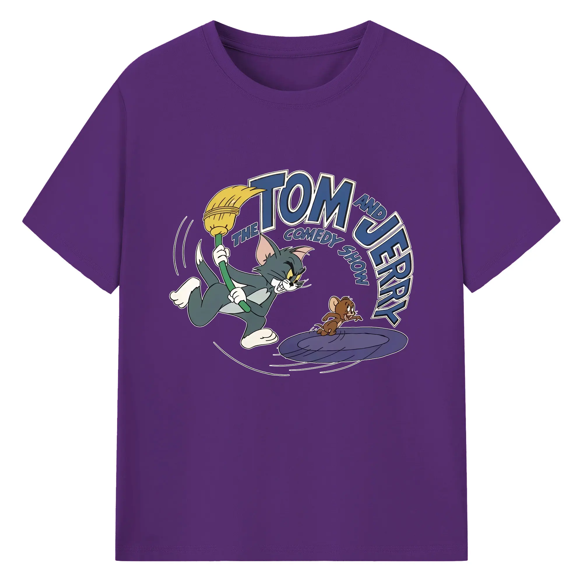 トムとジェリー グッズ トム - 綿100% 半袖Tシャツ ・ バックプリント ・ 快適 通気性 ・ 日常使い 散歩 スポーツ用