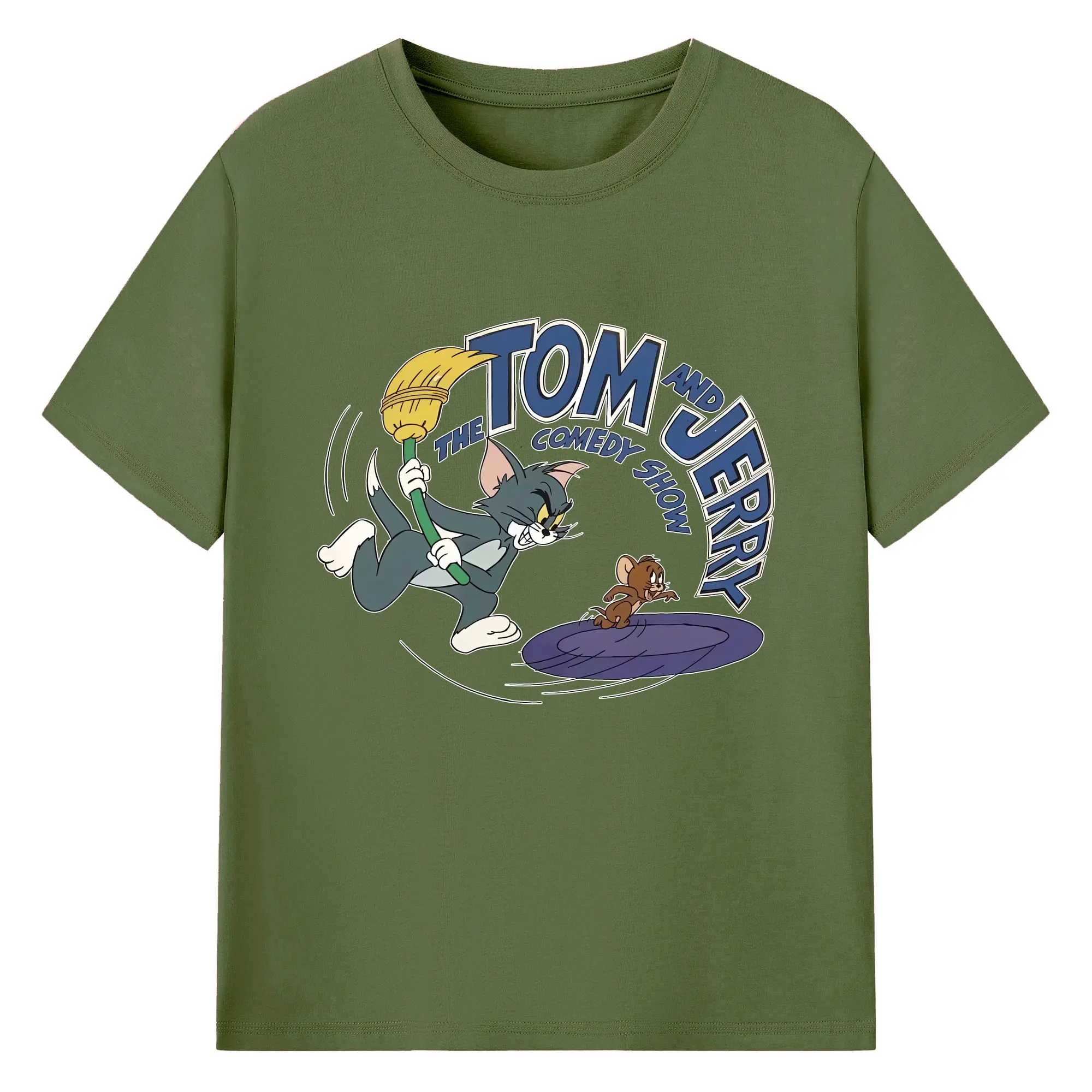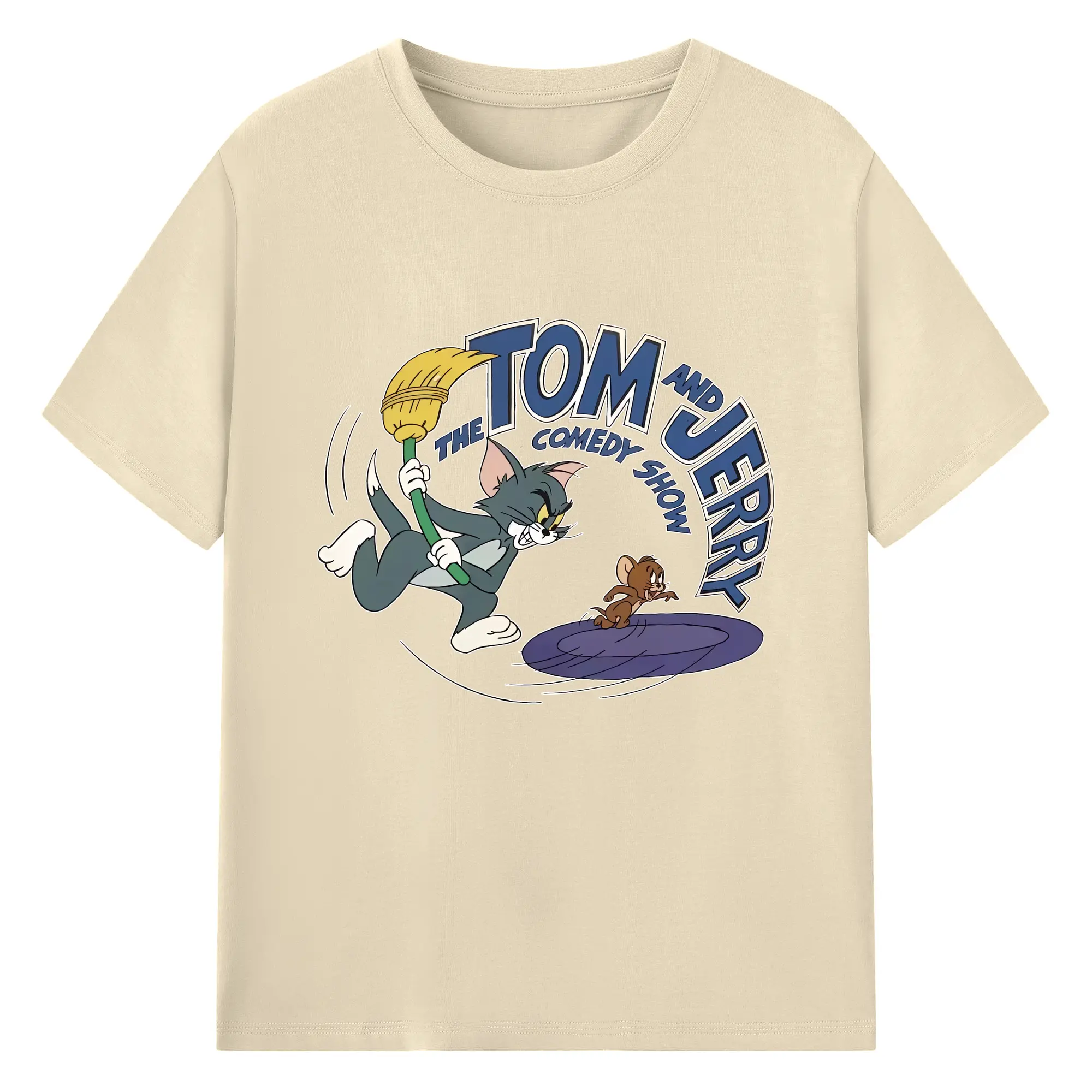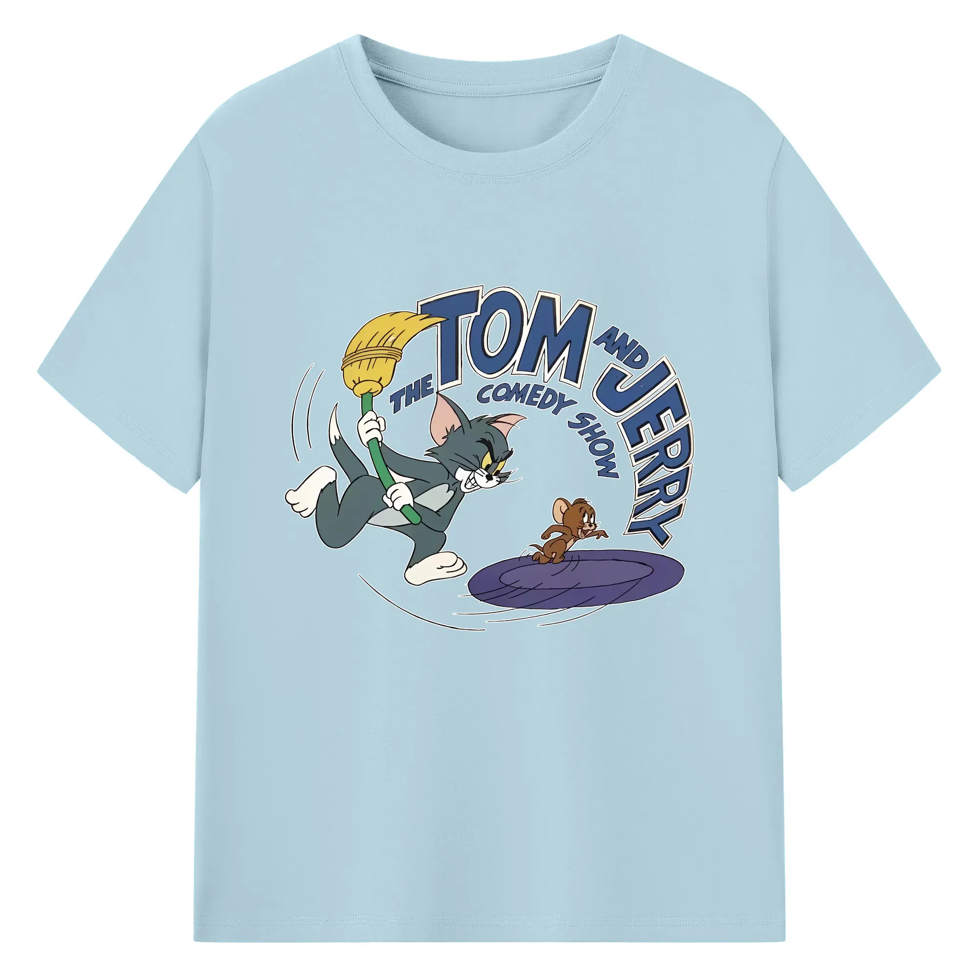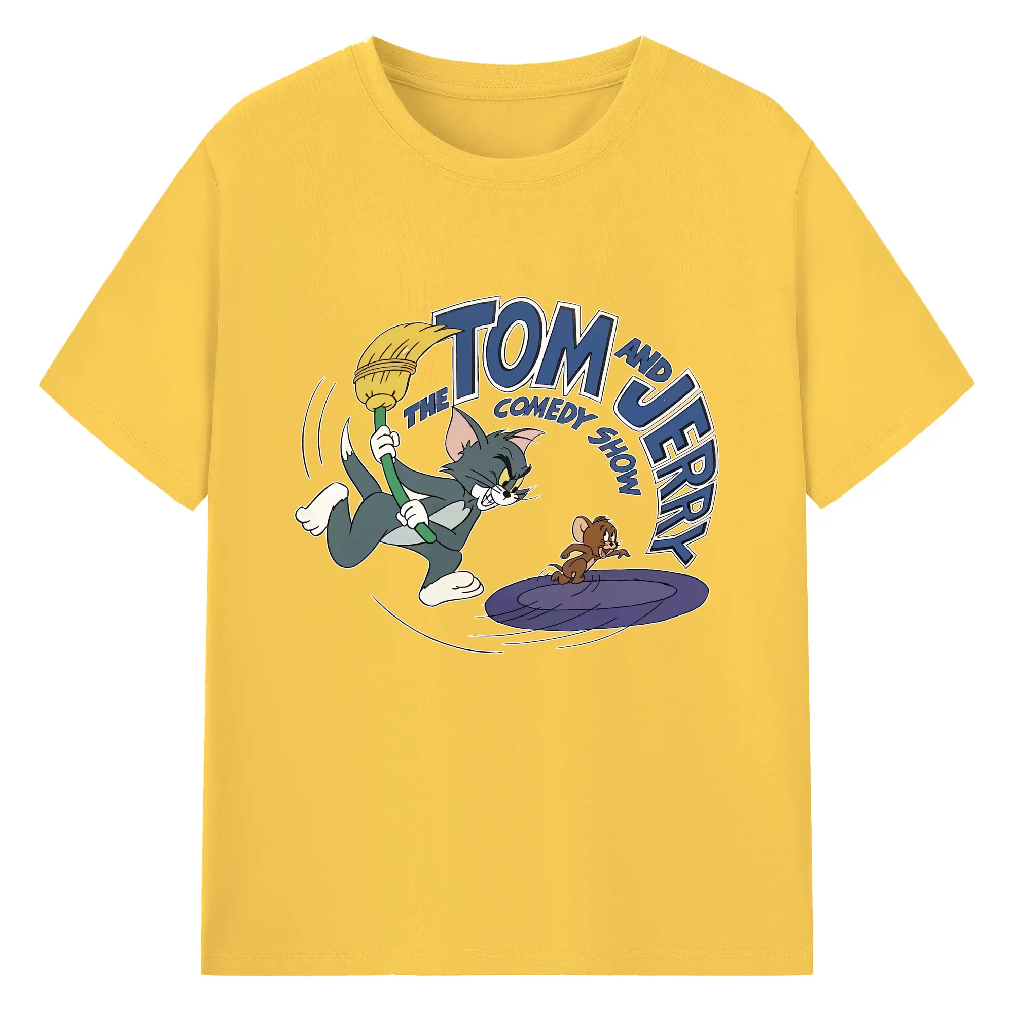 トムとジェリー グッズ トム - 綿100% 半袖Tシャツ ・ バックプリント ・ 快適 通気性 ・ 日常使い 散歩 スポーツ用