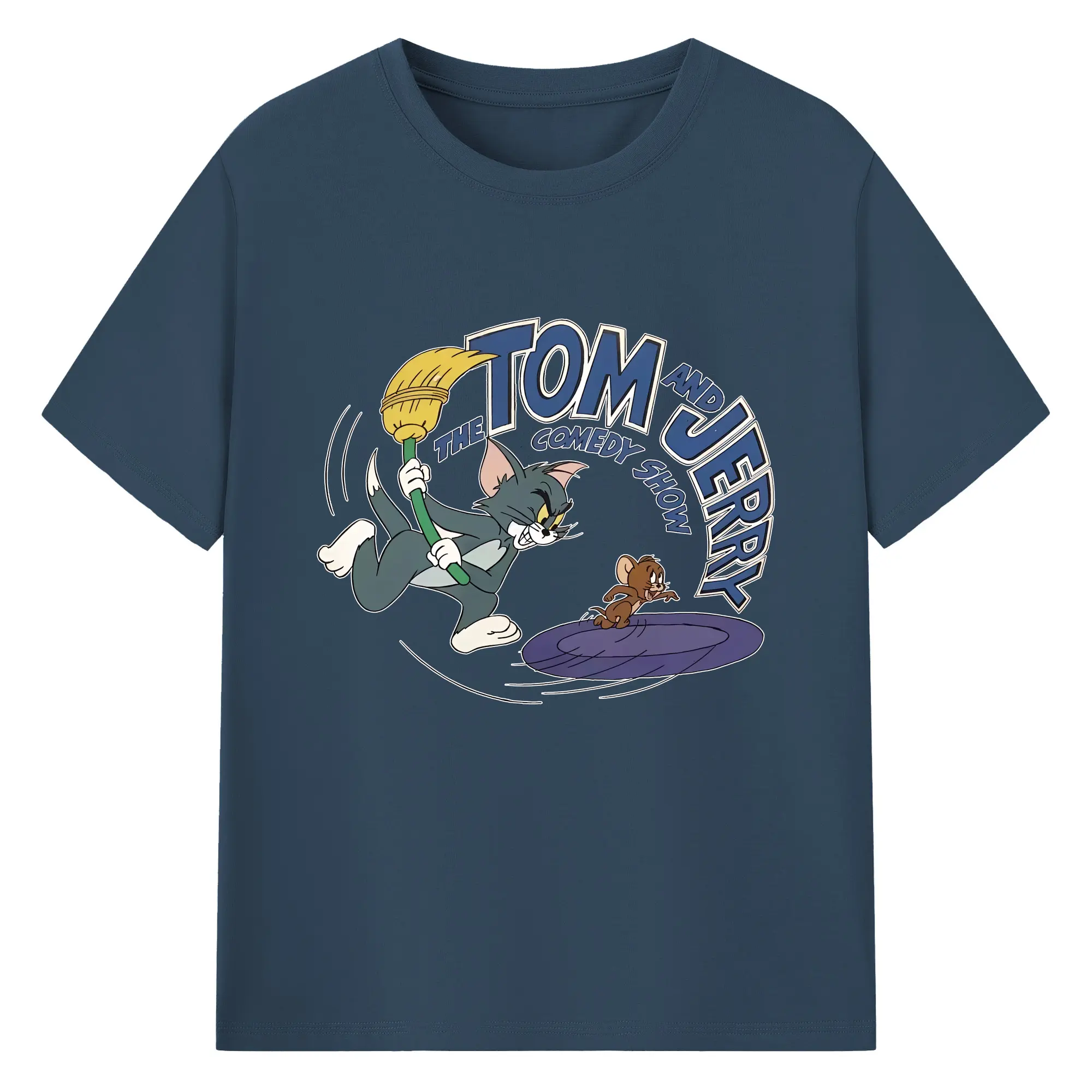 トムとジェリー グッズ トム - 綿100% ヴィンテージ風 半袖Tシャツ ・ フロントプリント ・ 柔らか肌触り ・ 通気性 快適 ・ スポーツ カジュアル 外出用