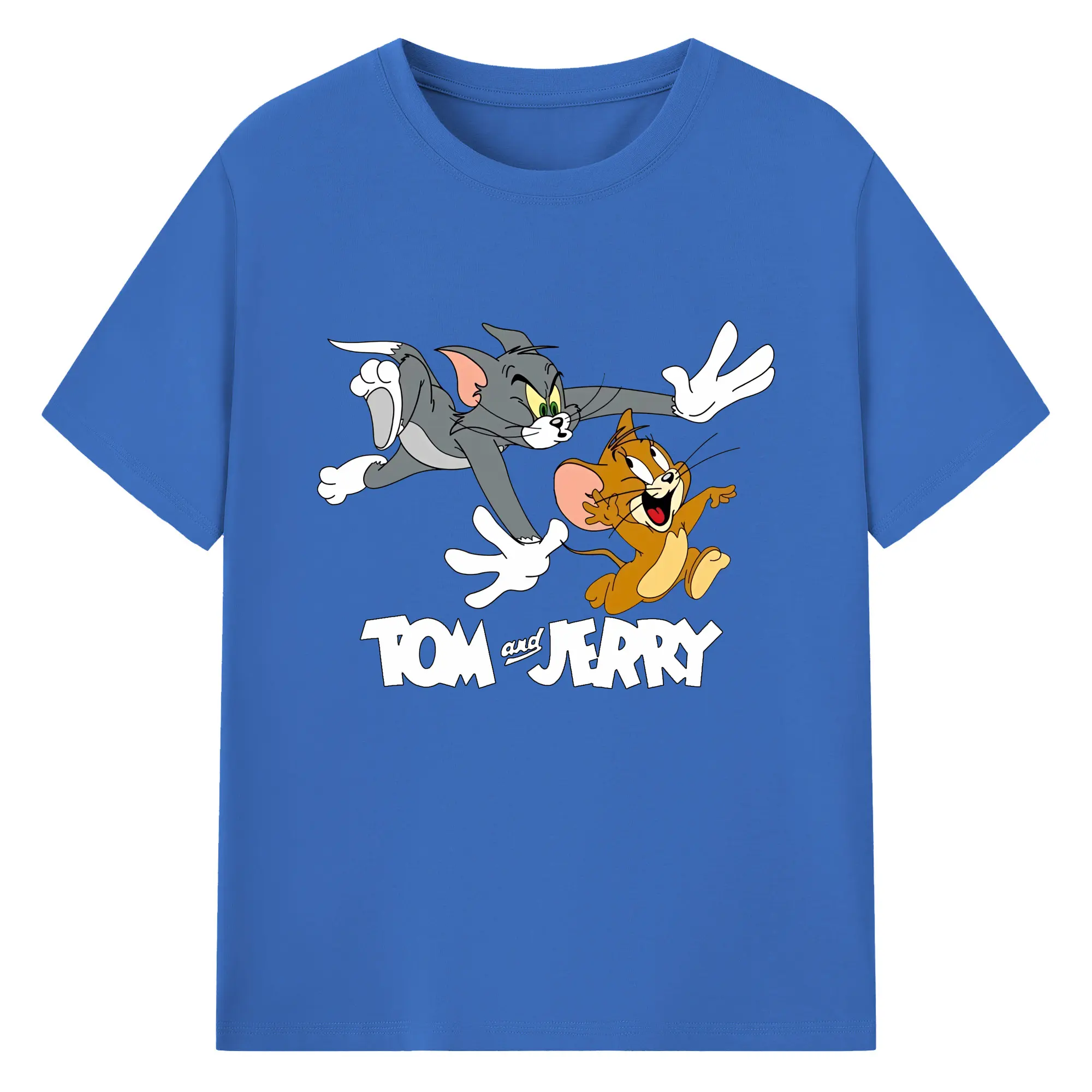 トムとジェリー グッズ トム - 綿100% 半袖Tシャツ ・ バックプリント ・ 快適 通気性 ・ 日常使い 散歩 スポーツ用