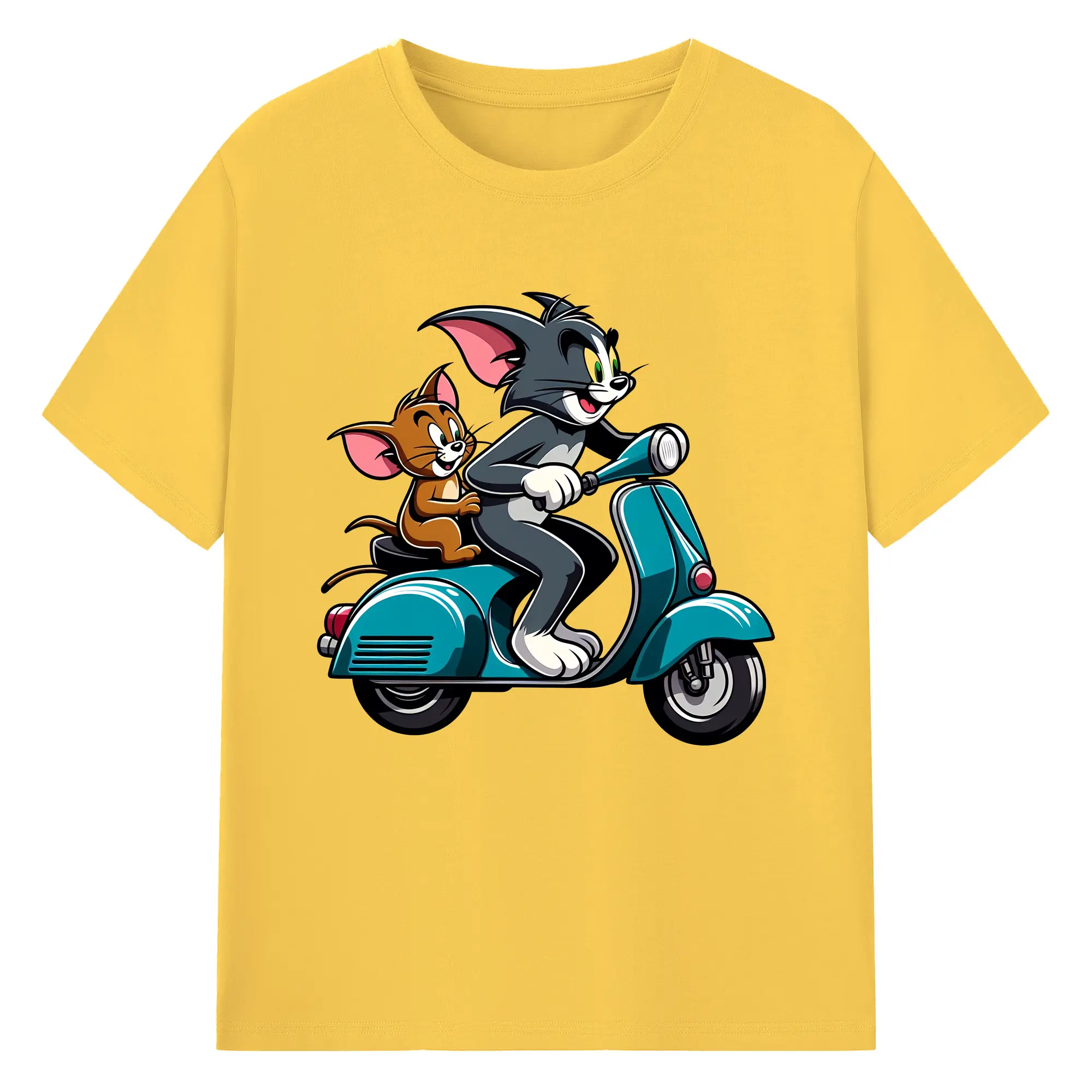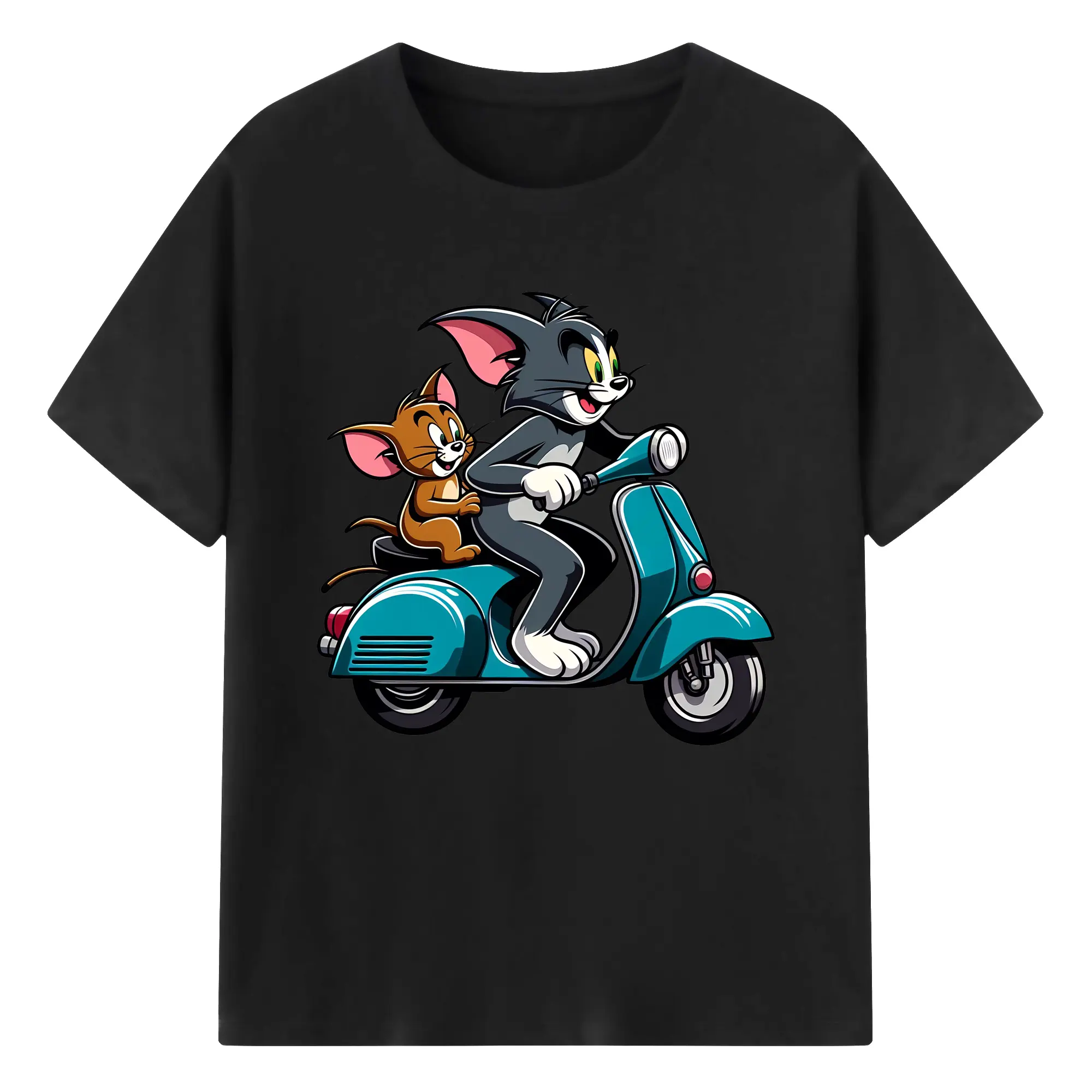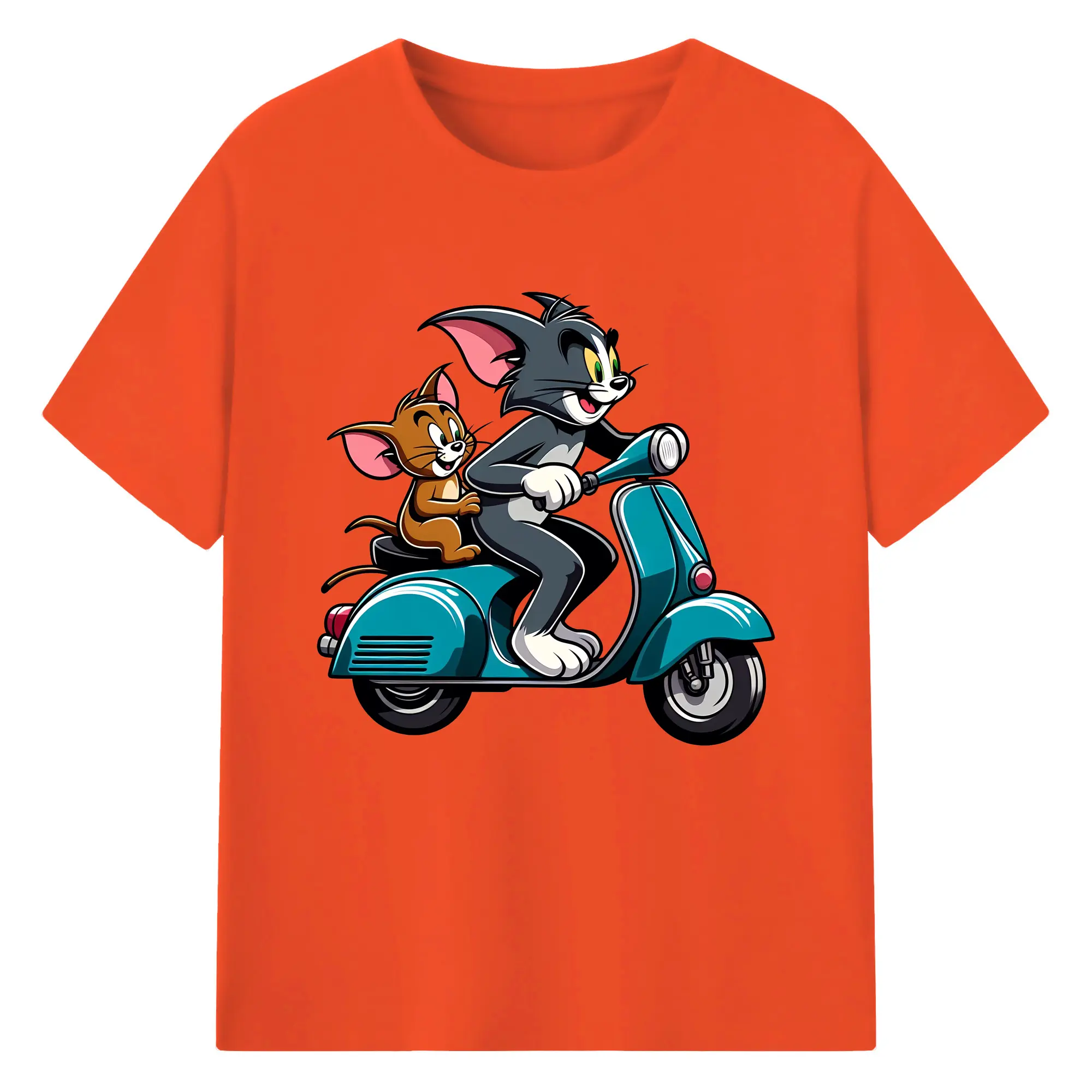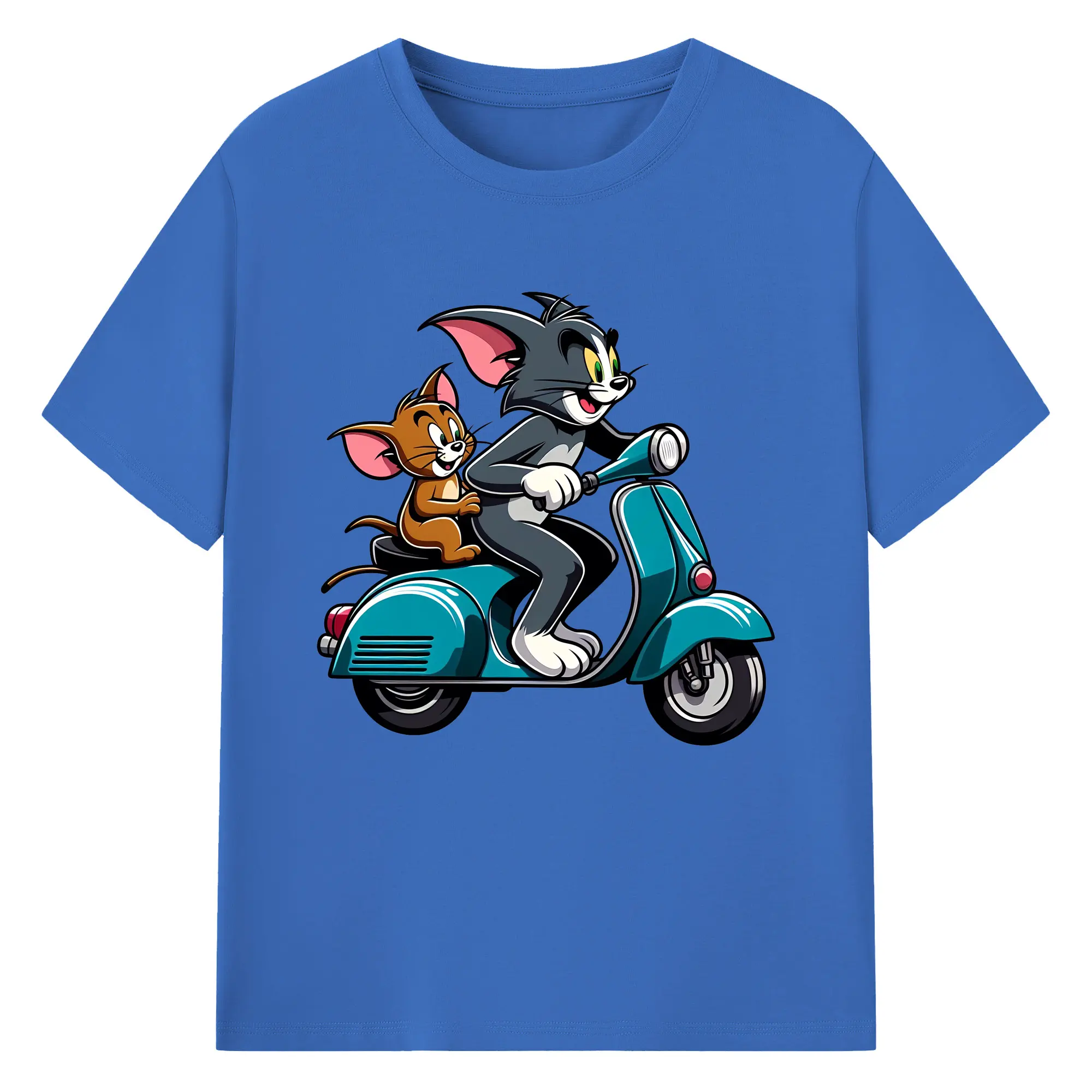 トムとジェリー グッズ トム - 綿100% 半袖Tシャツ ・ バックプリント ・ 快適 通気性 ・ 日常使い 散歩 スポーツ用