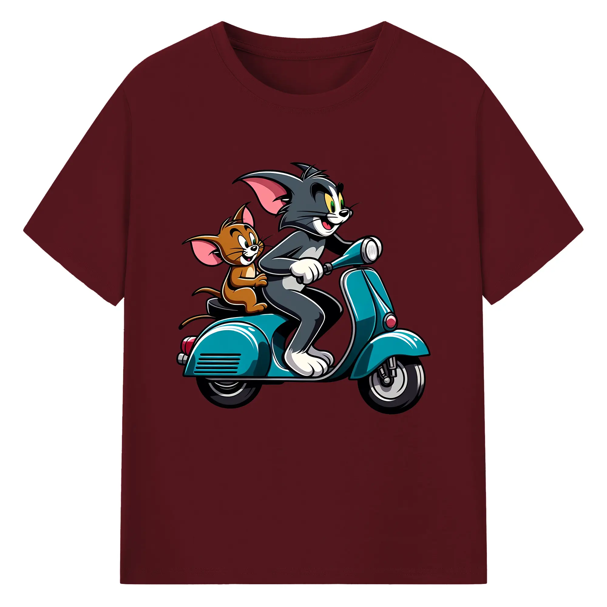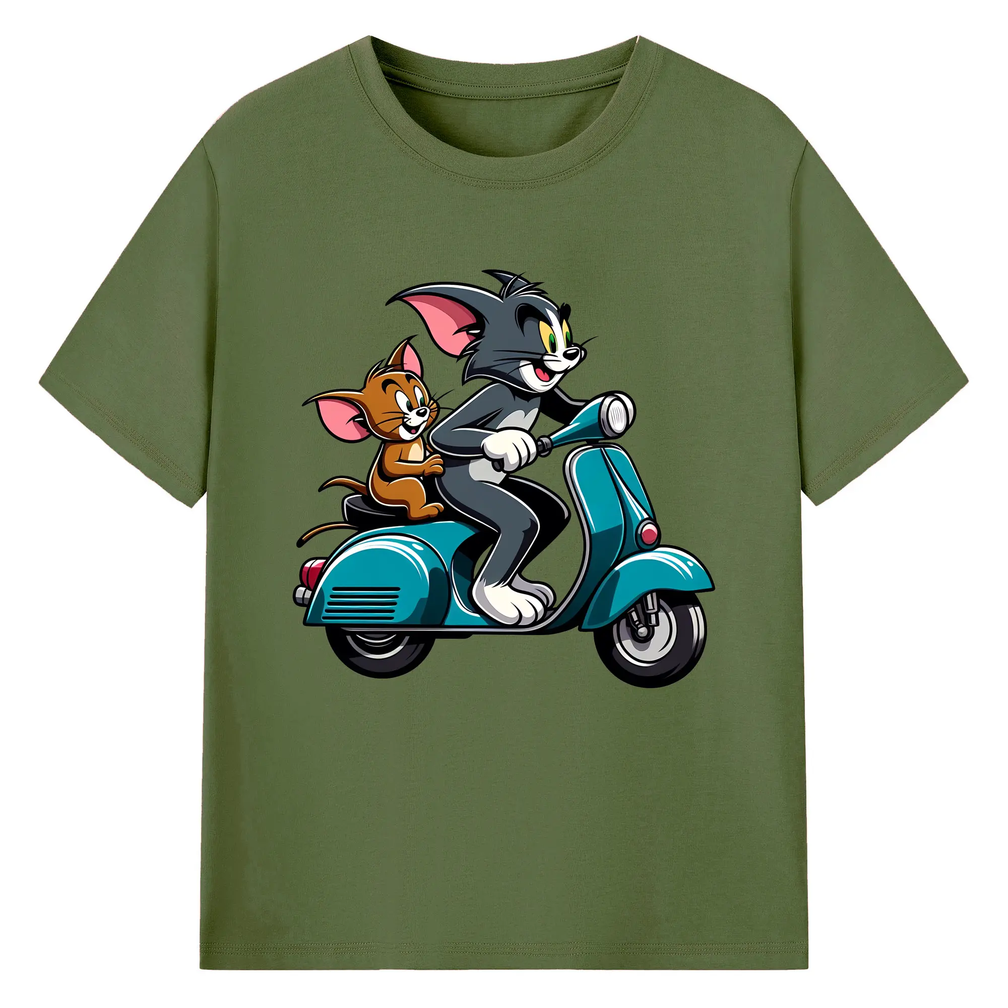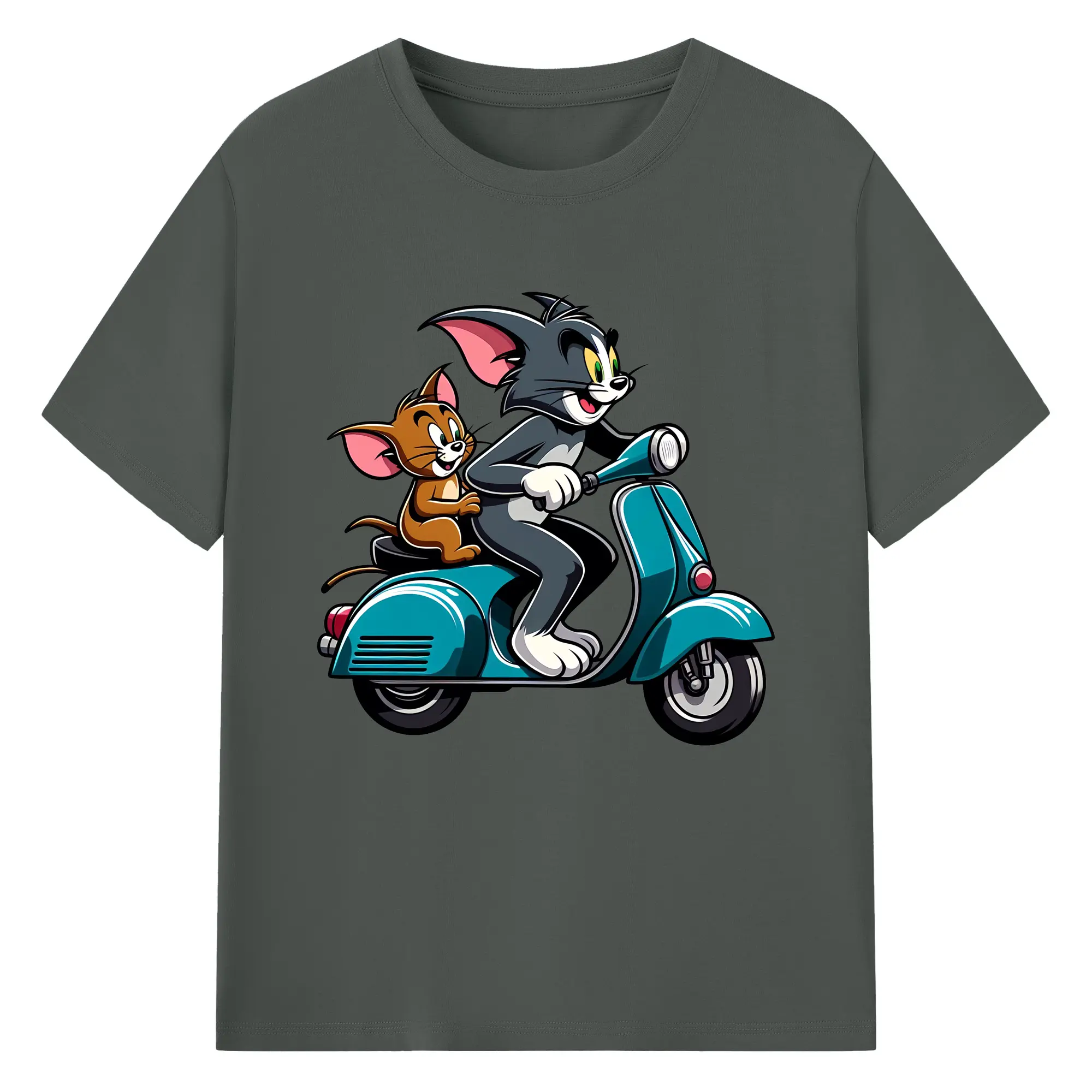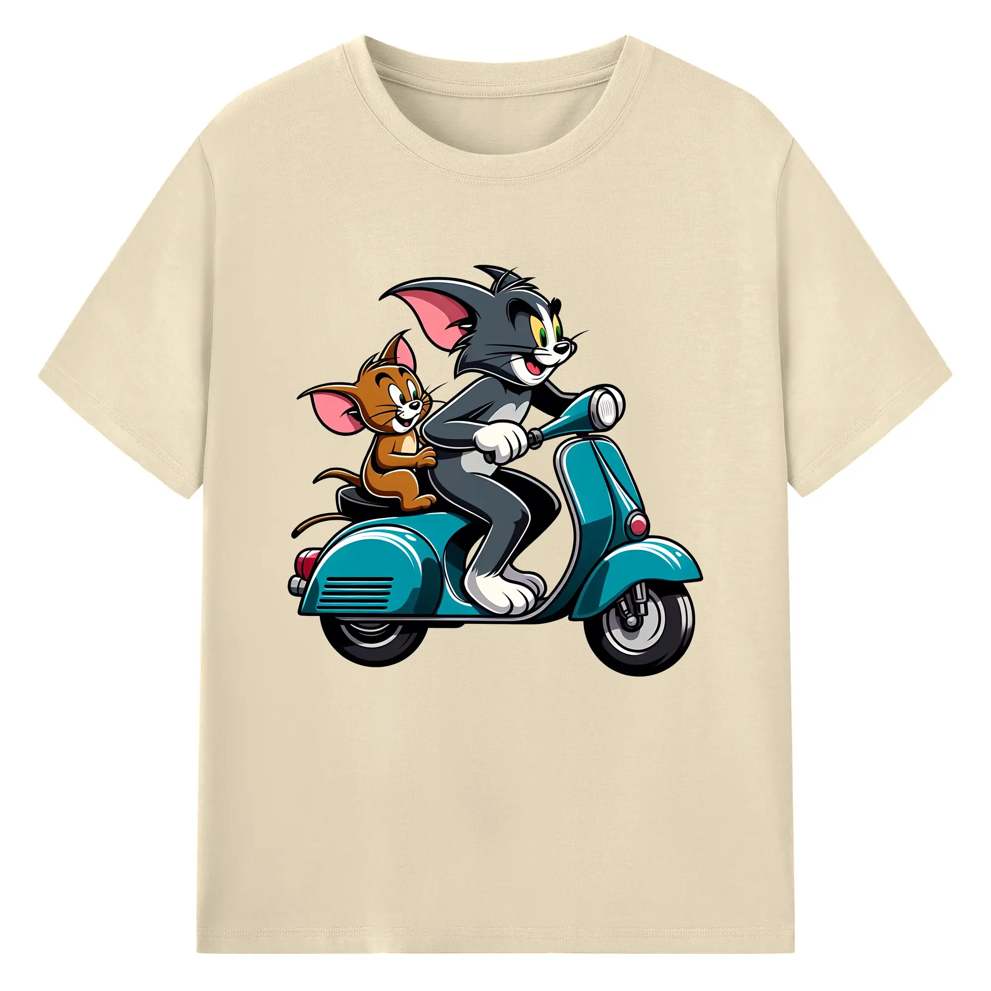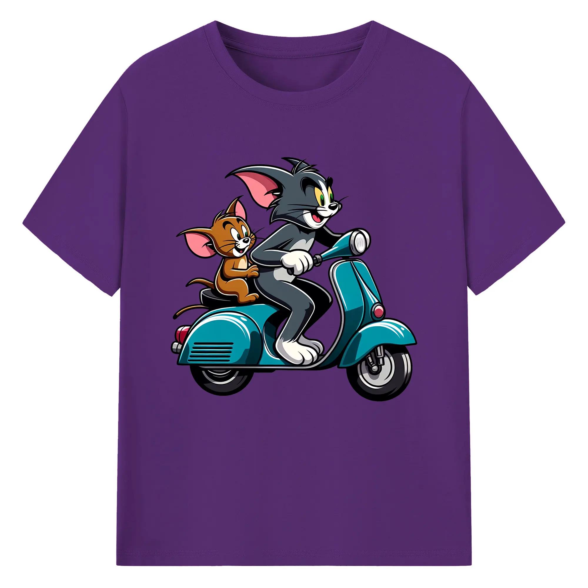 トムとジェリー グッズ トム - 綿100% 半袖Tシャツ ・ バックプリント ・ 快適 通気性 ・ 日常使い 散歩 スポーツ用
