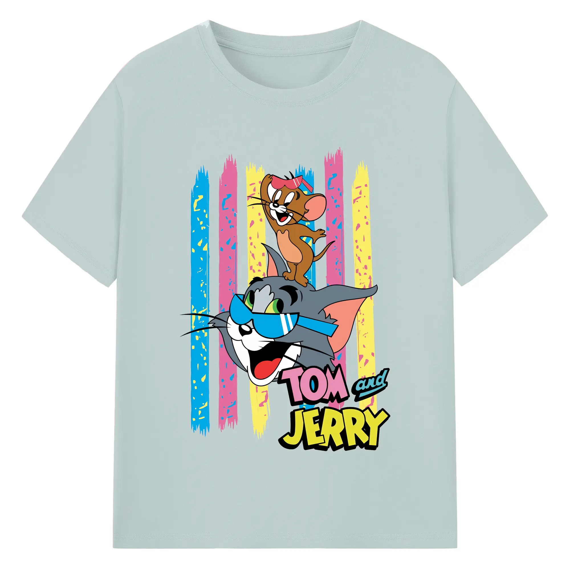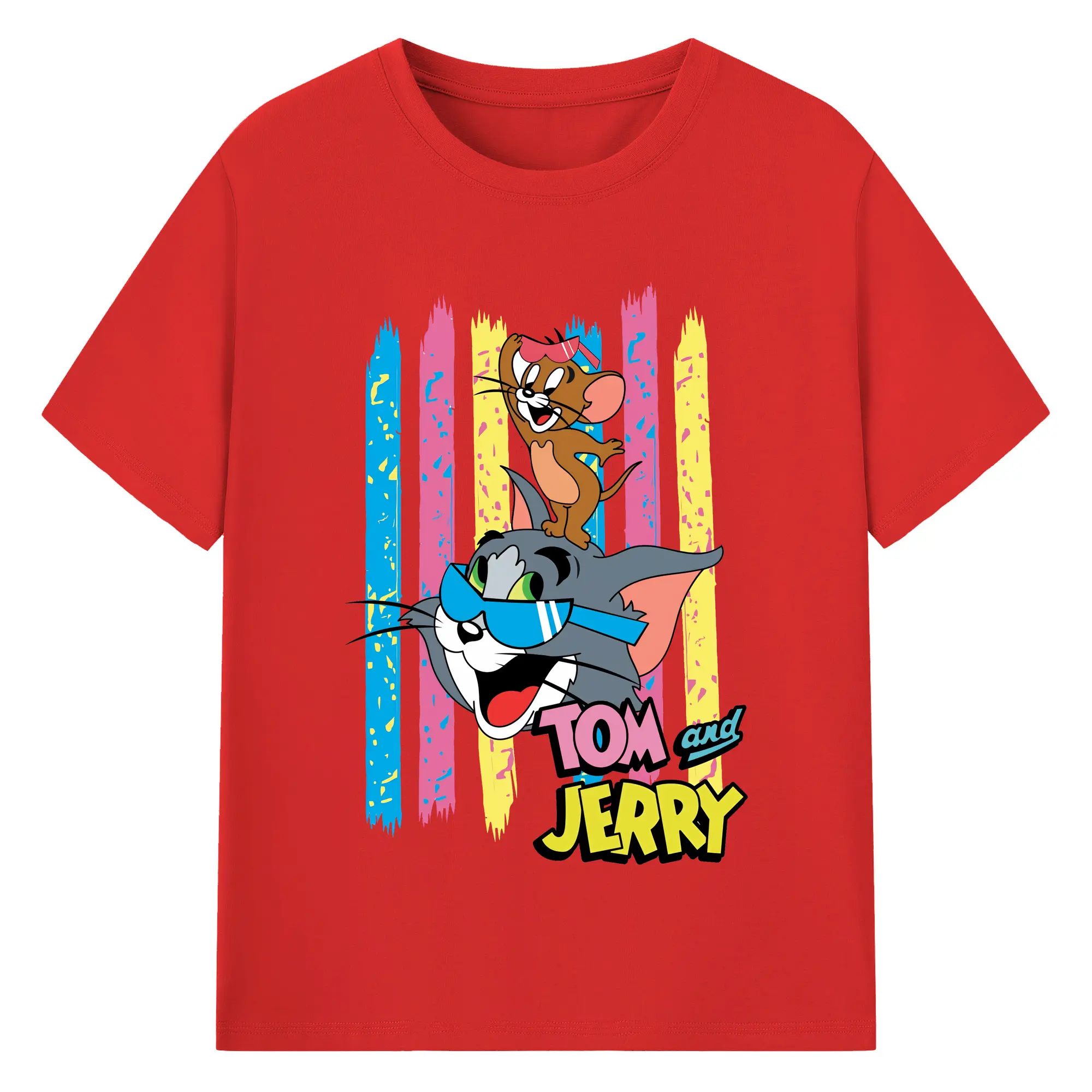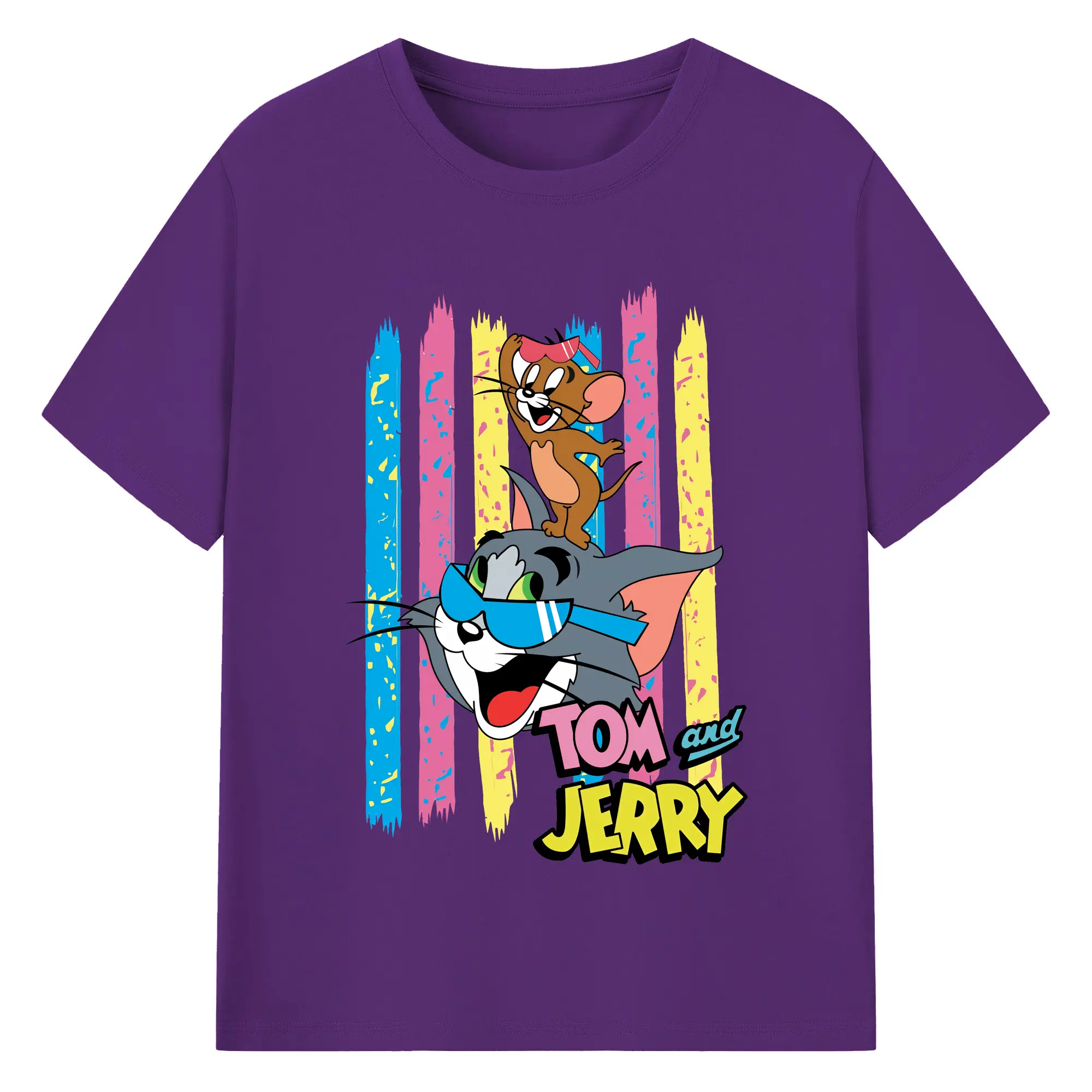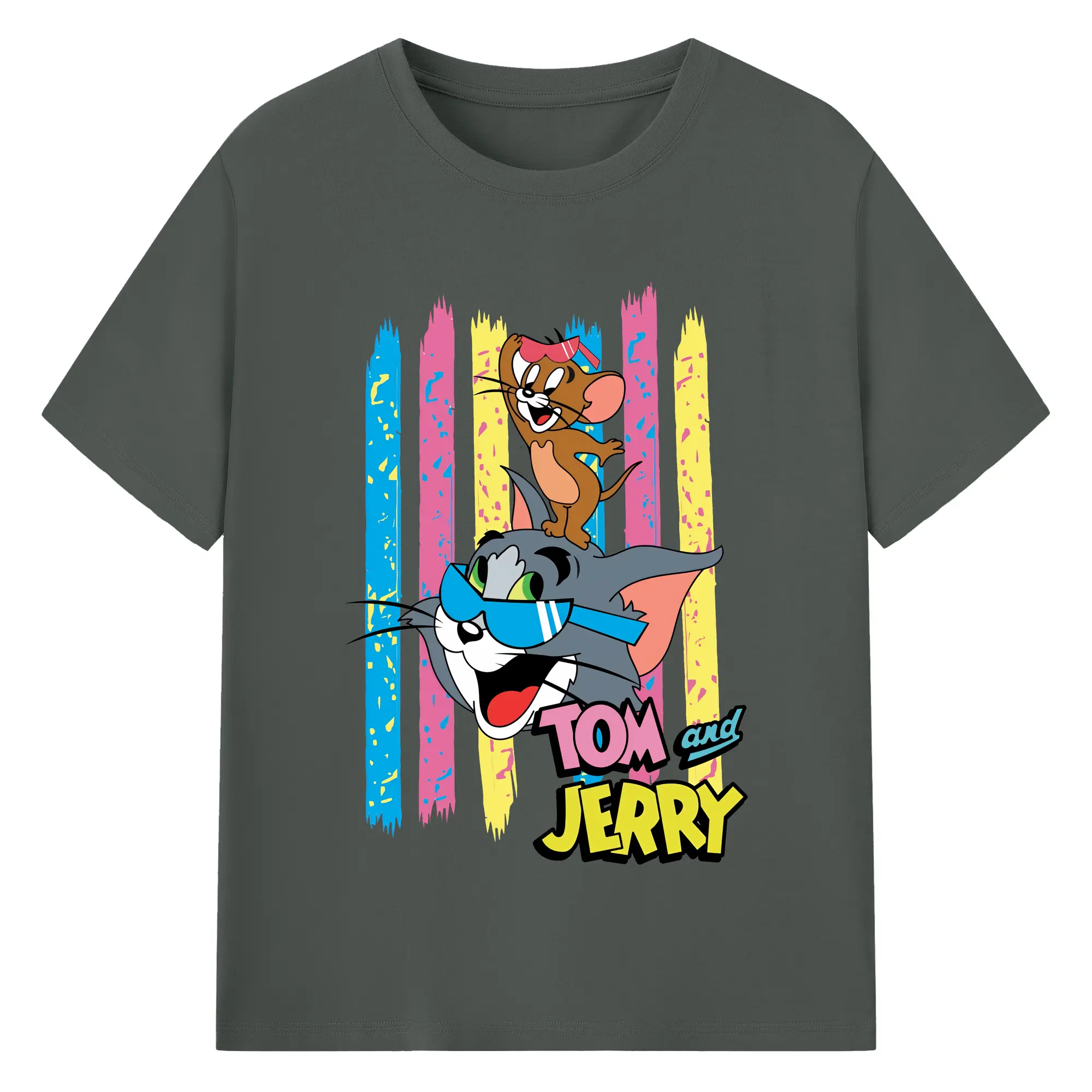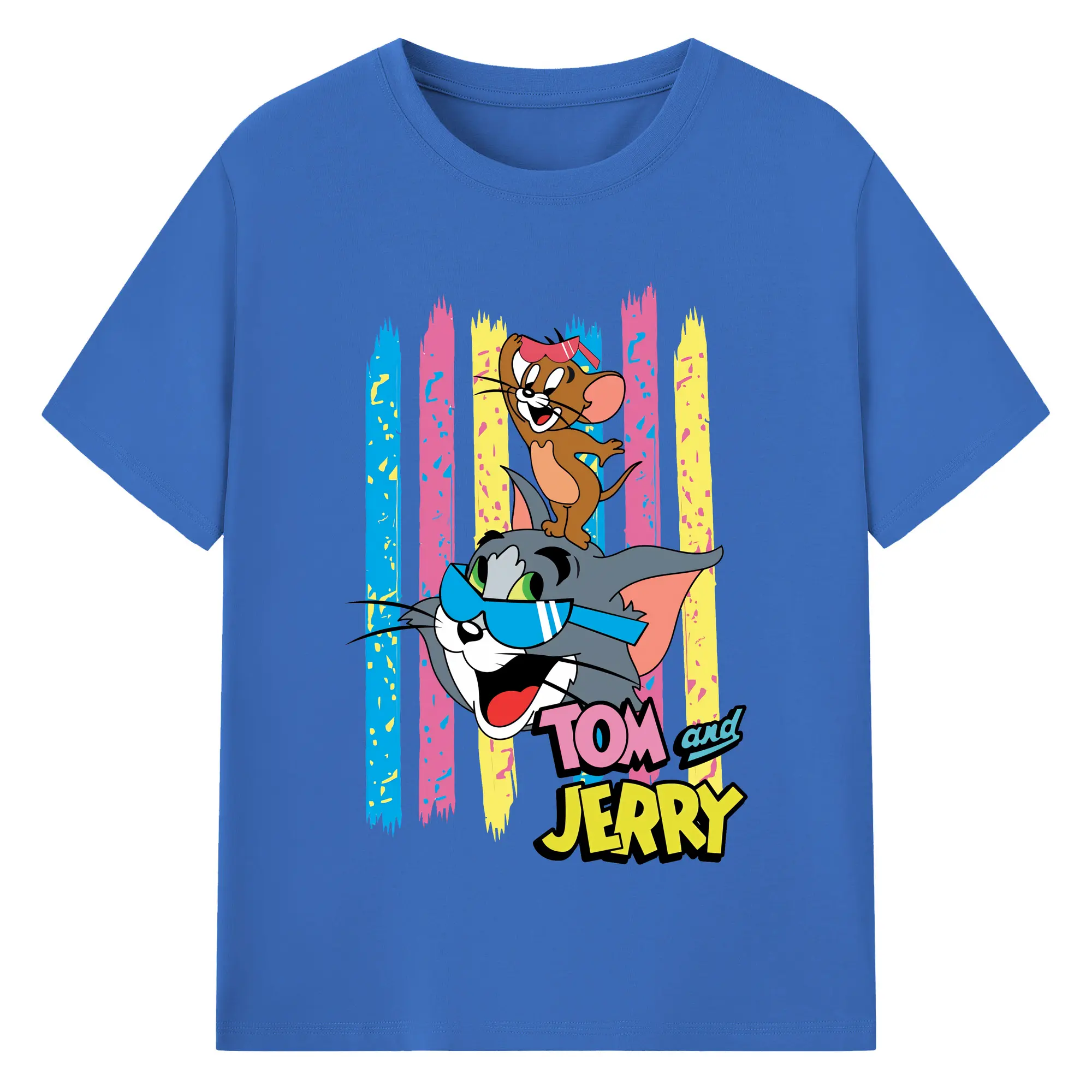 トムとジェリー グッズ トム - 綿100% 半袖Tシャツ ・ フロントプリント ・ 快適 通気性 ・ 日常使い 散歩 スポーツ用