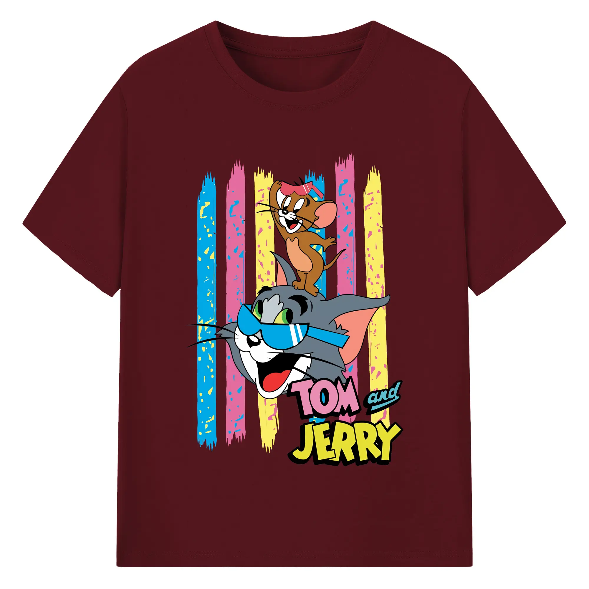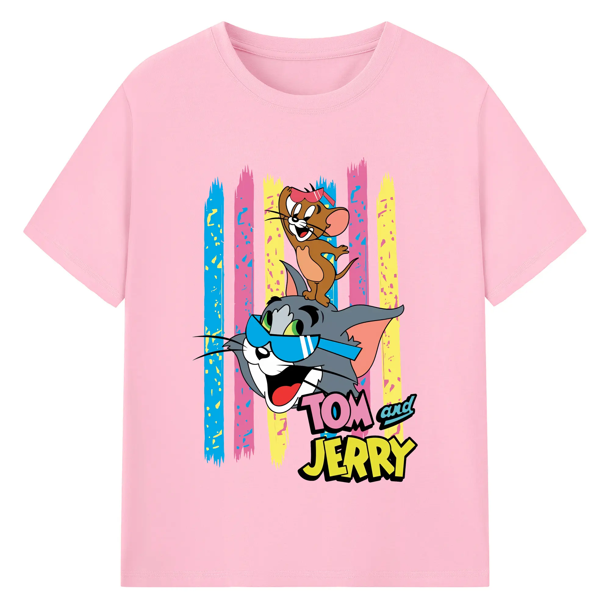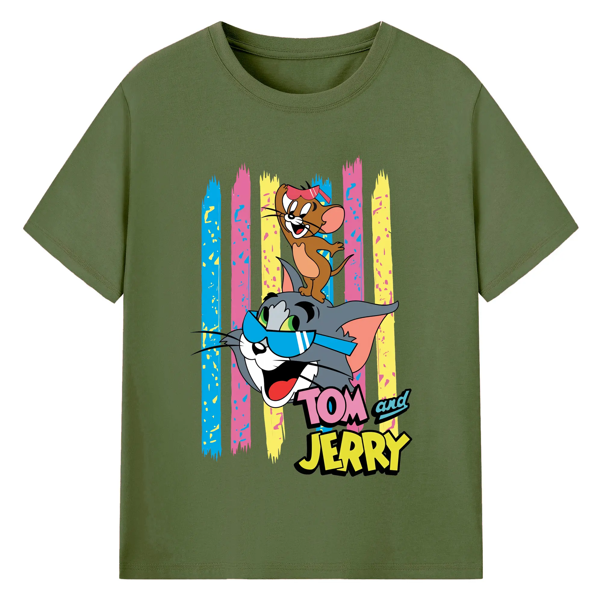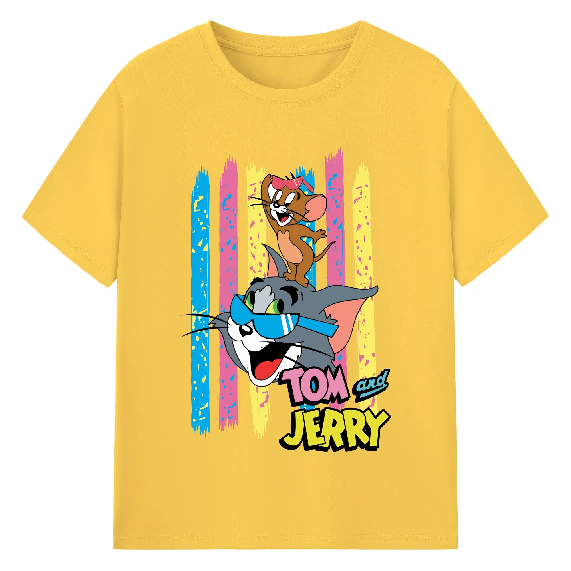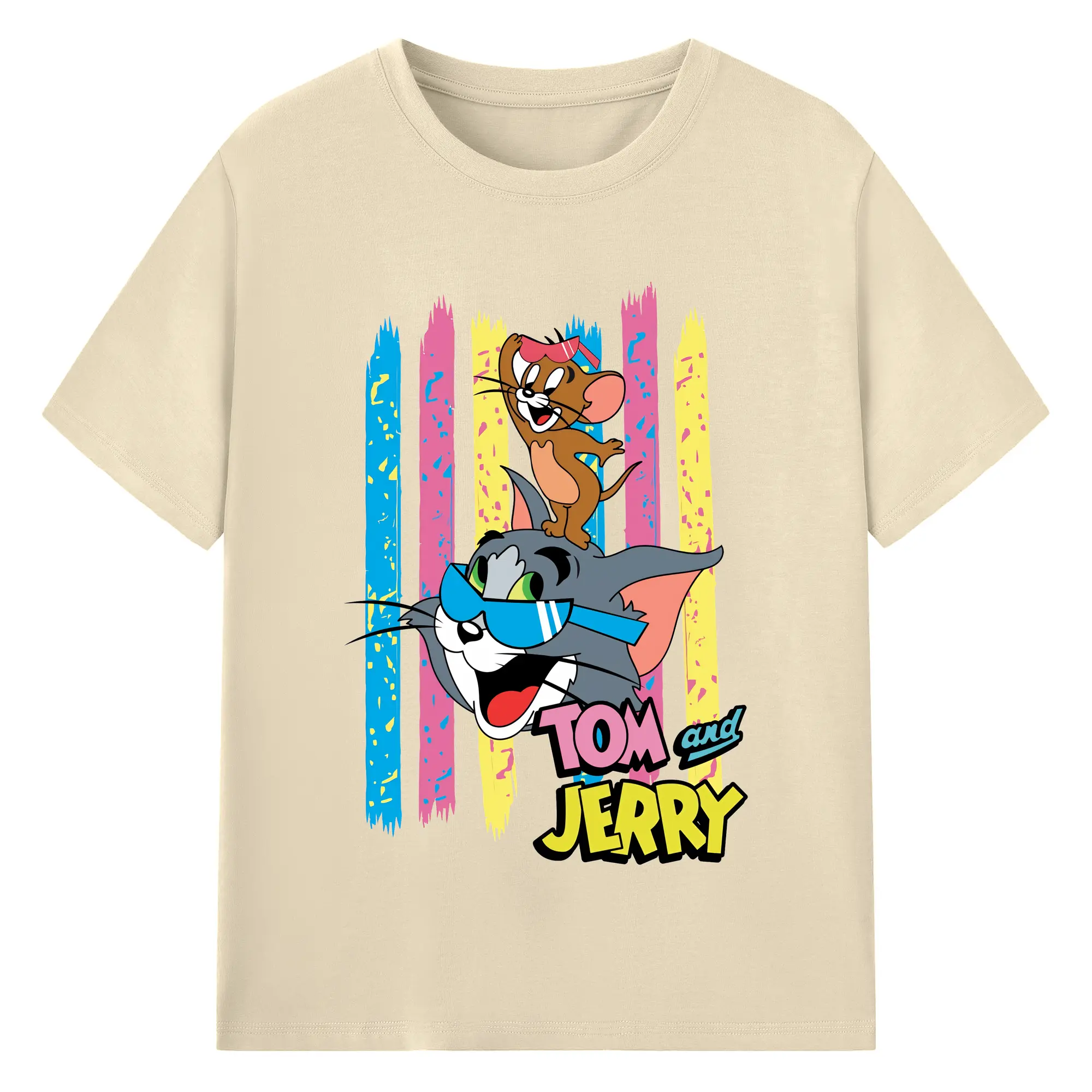 トムとジェリー グッズ トム - 綿100% 半袖Tシャツ ・ フロントプリント ・ 快適 通気性 ・ 日常使い 散歩 スポーツ用