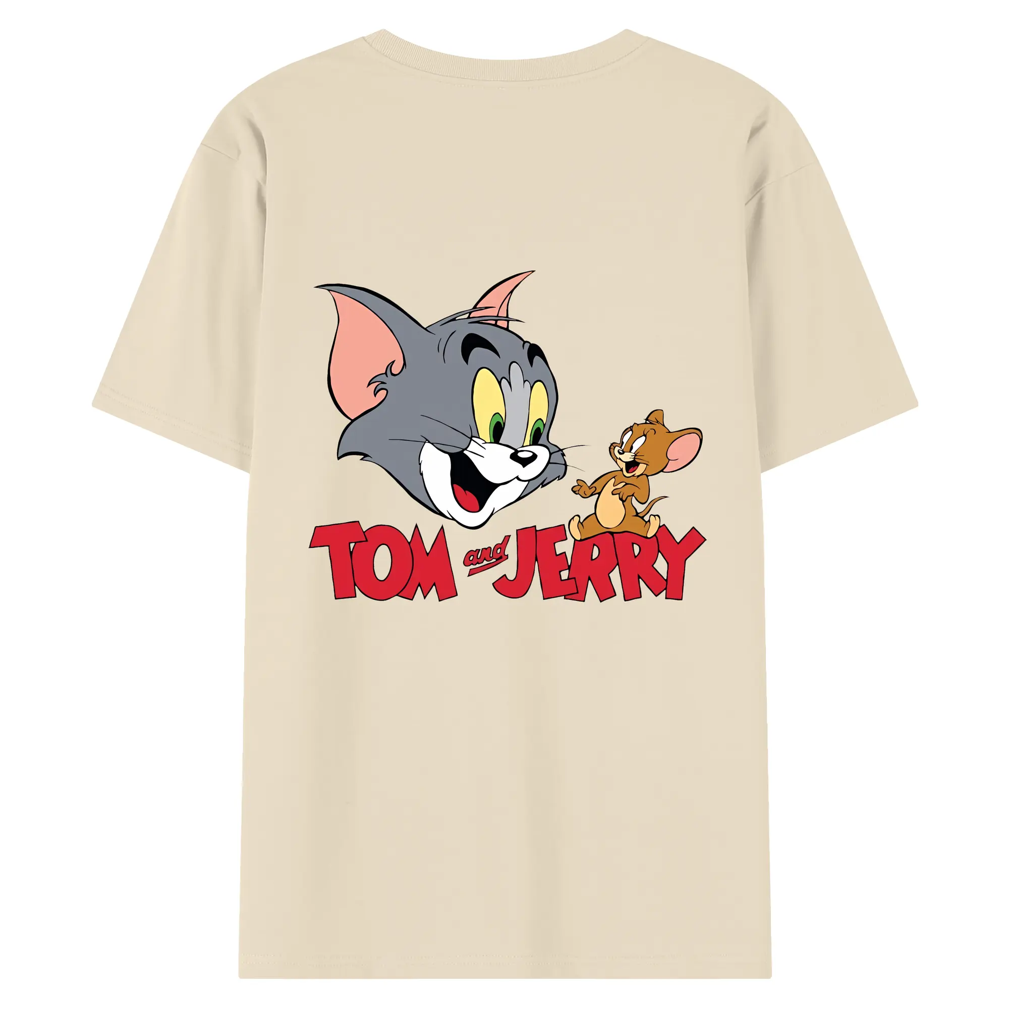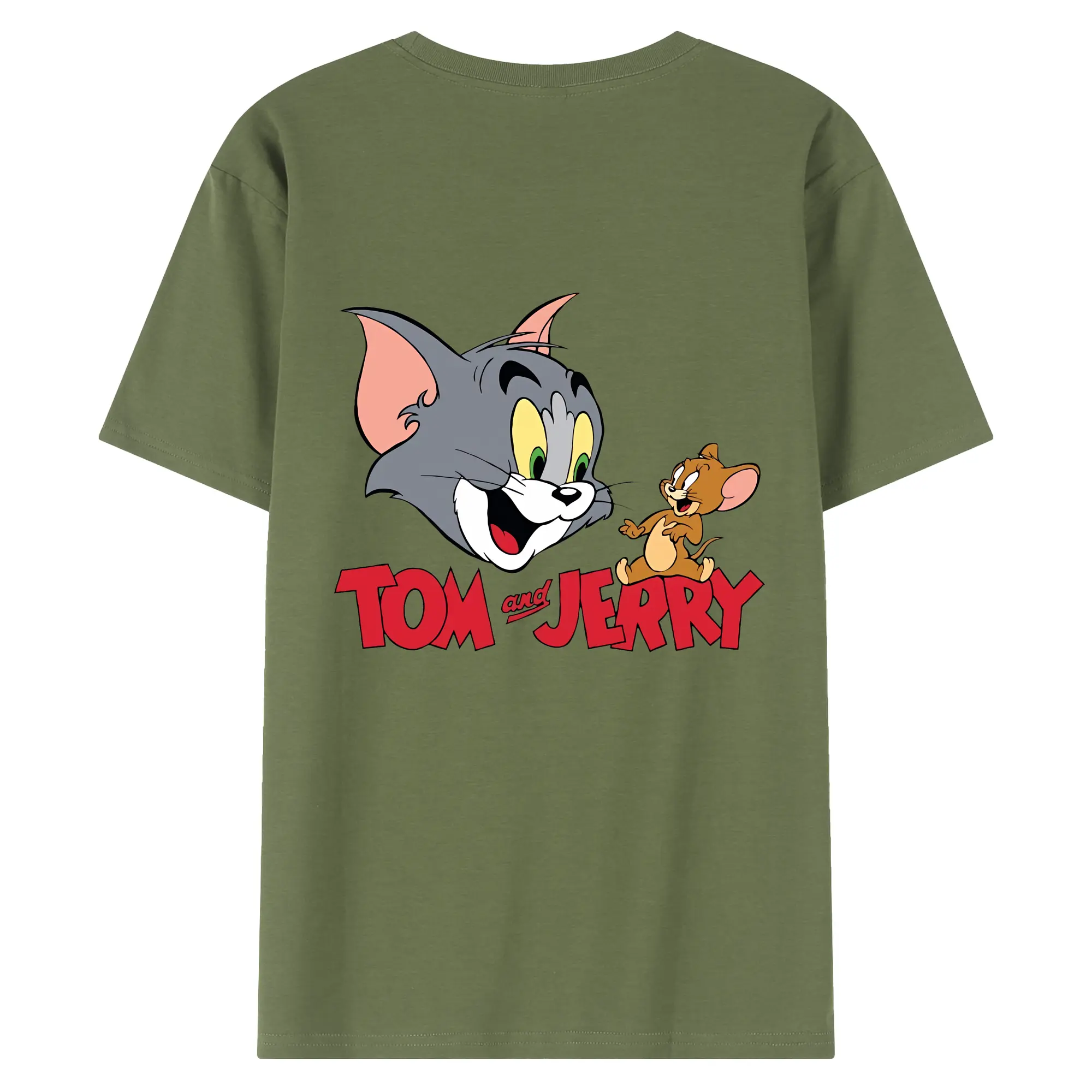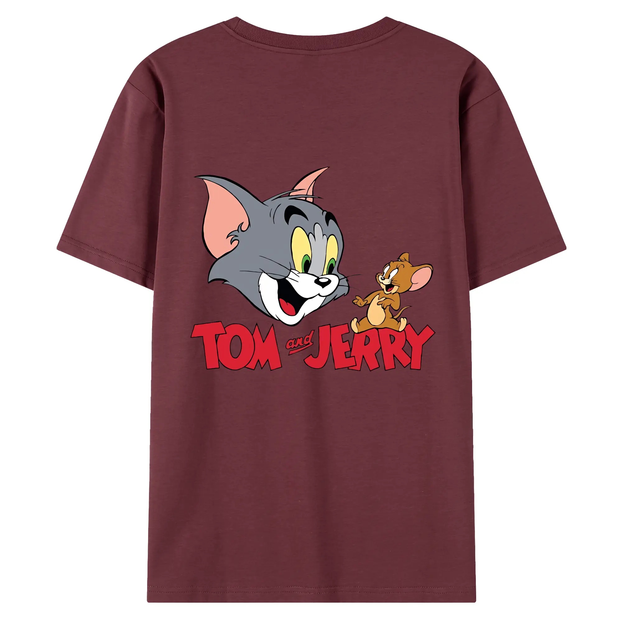 トムとジェリー グッズ トム - 綿100% ヴィンテージ風 半袖Tシャツ ・ 背面プリント ・ 柔らか肌触り ・ 通気性 快適 ・ スポーツ カジュアル 外出用