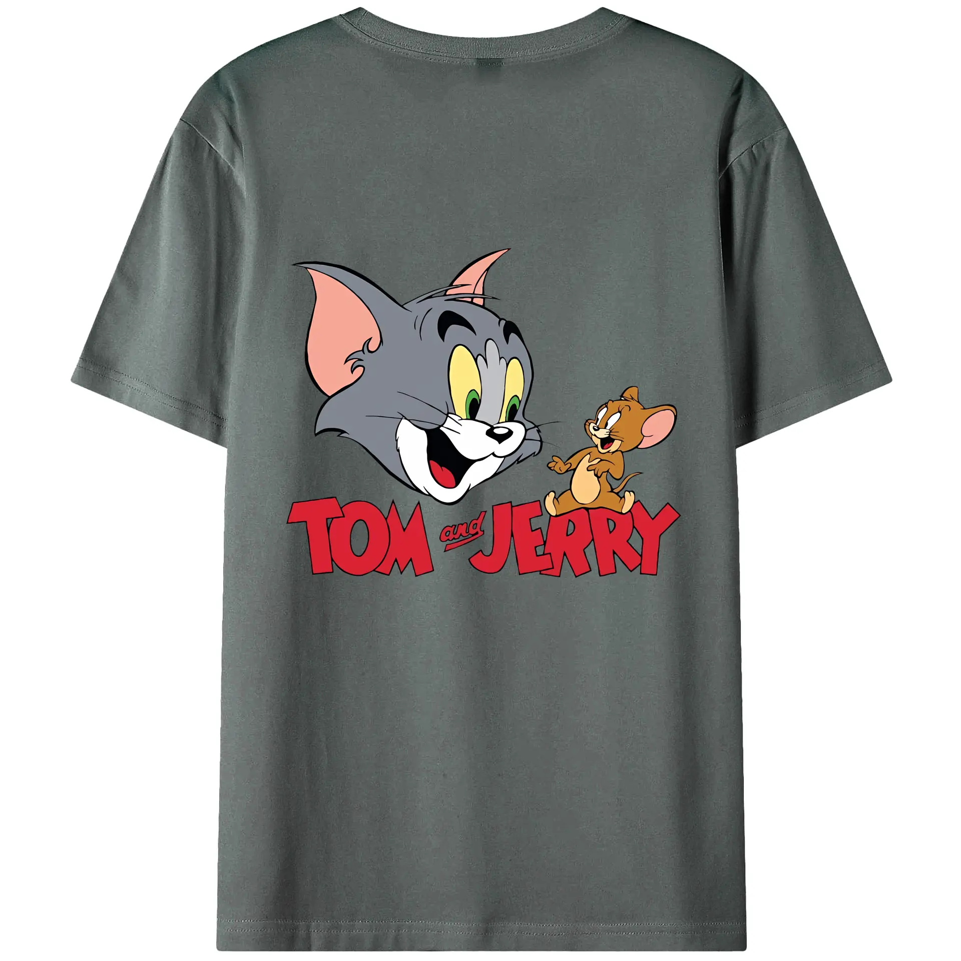 トムとジェリー グッズ トム - 綿100% 半袖Tシャツ ・ フロントプリント ・ 快適 通気性 ・ 日常使い 散歩 スポーツ用