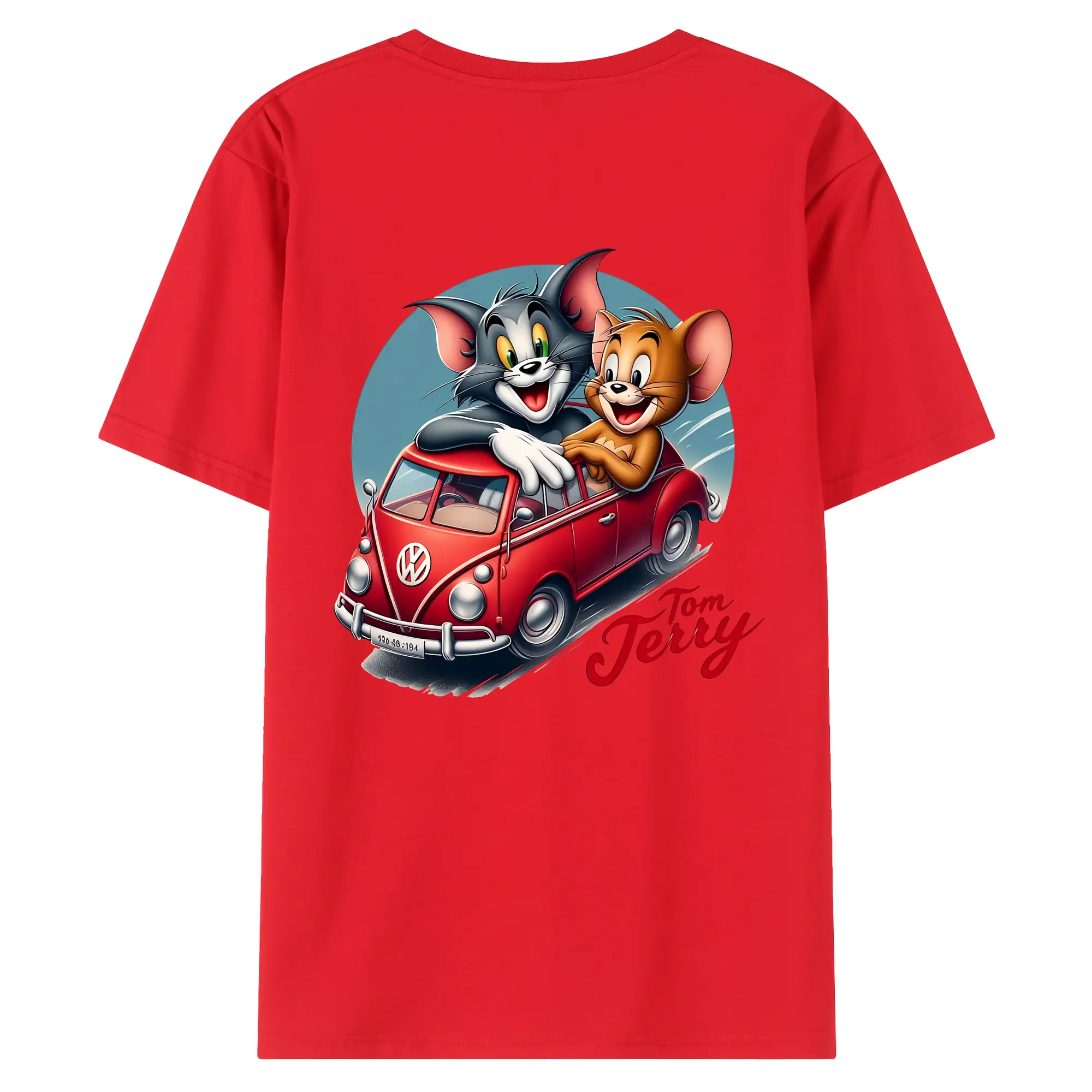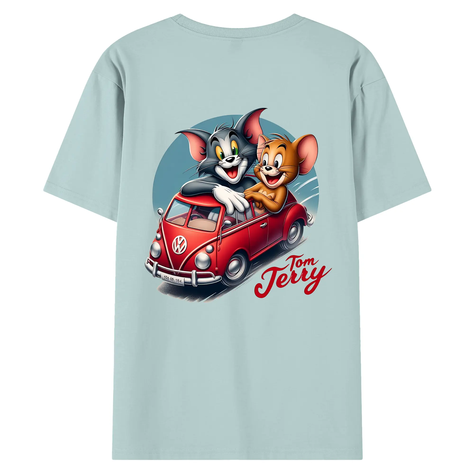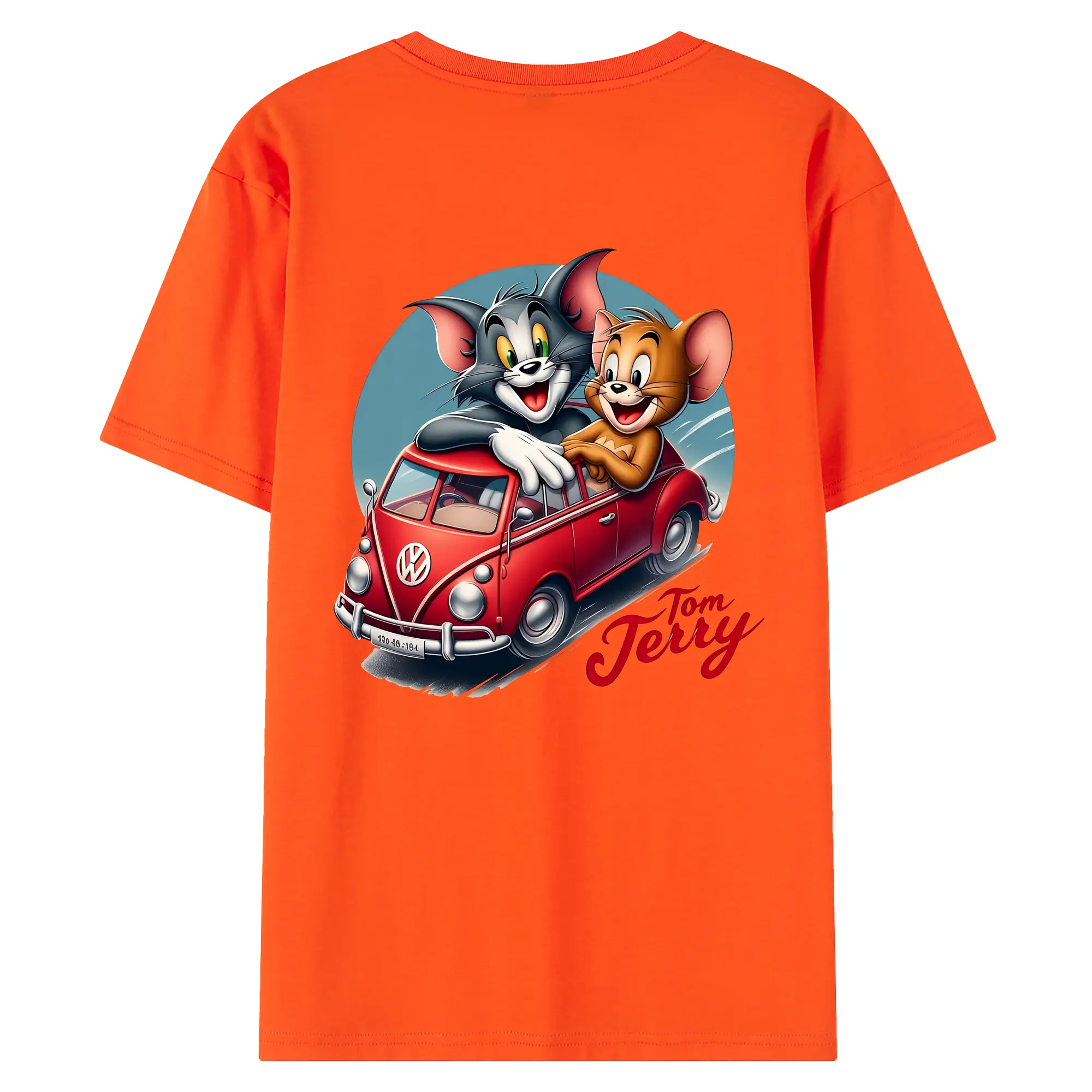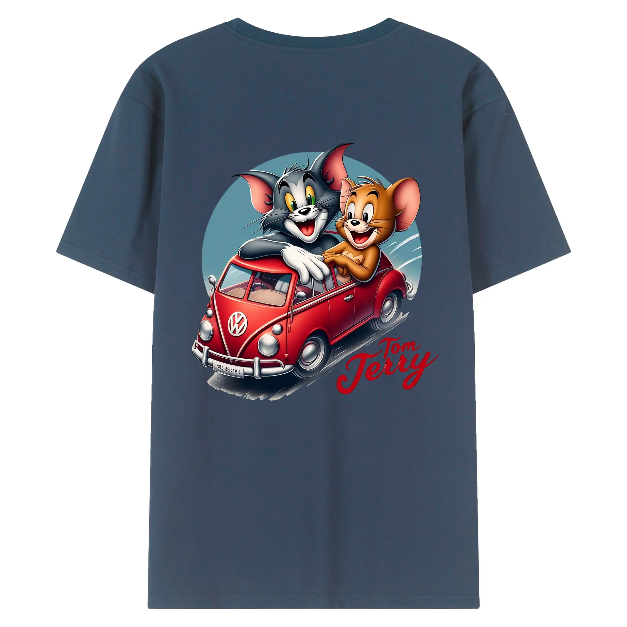 トムとジェリー グッズ トム - 綿100% ヴィンテージ風 半袖Tシャツ ・ 背面プリント ・ 柔らか肌触り ・ 通気性 快適 ・ スポーツ カジュアル 外出用