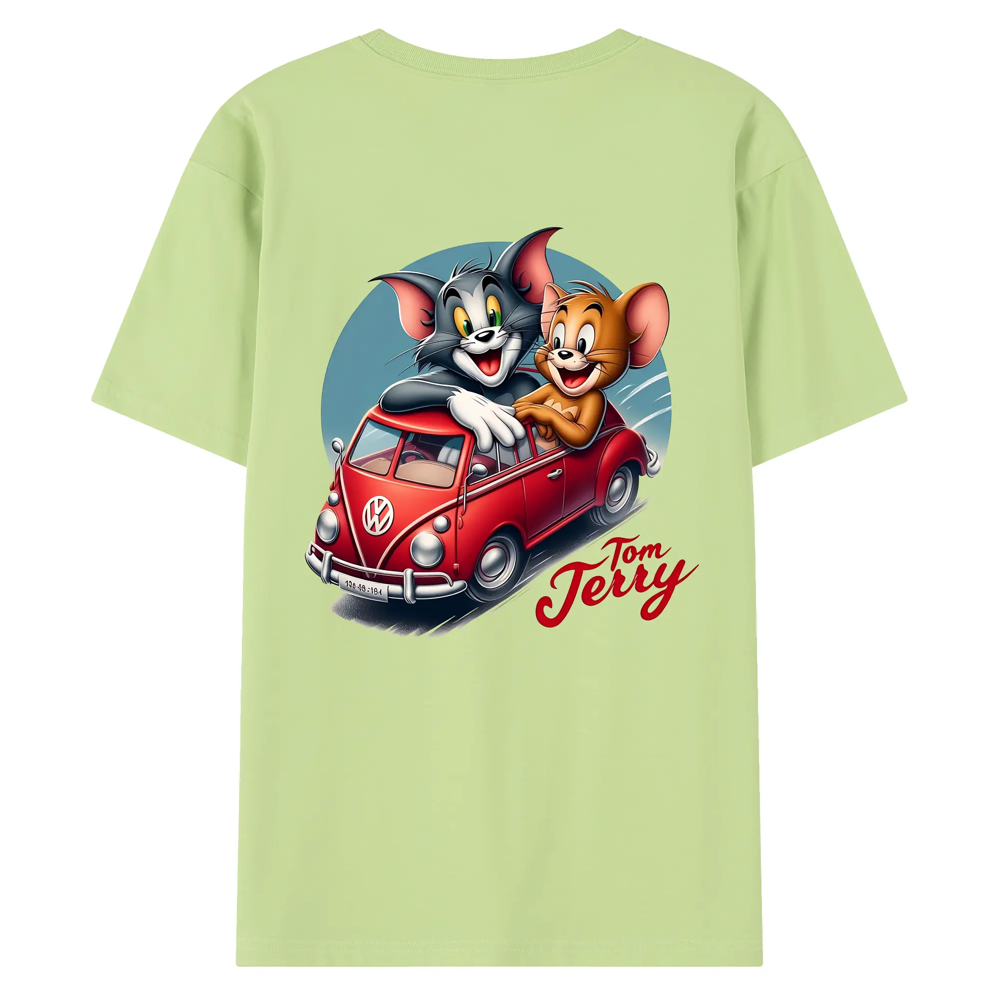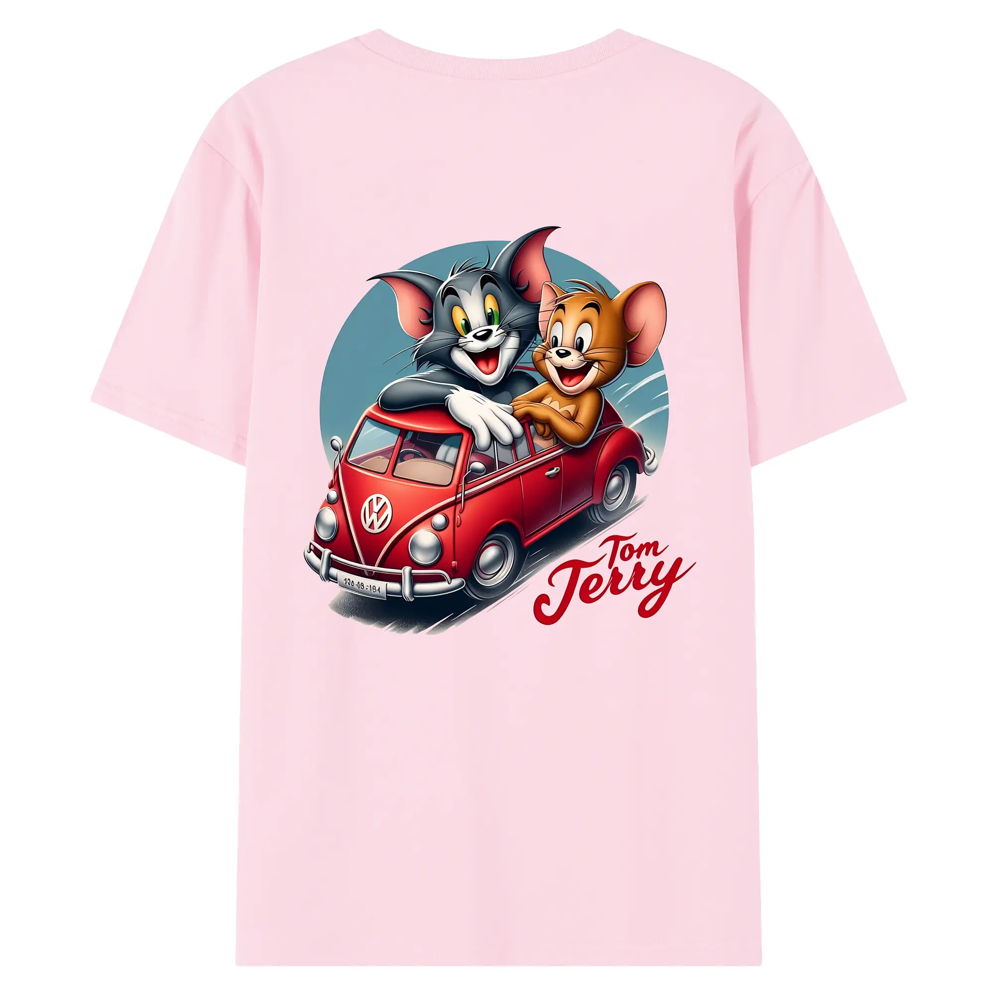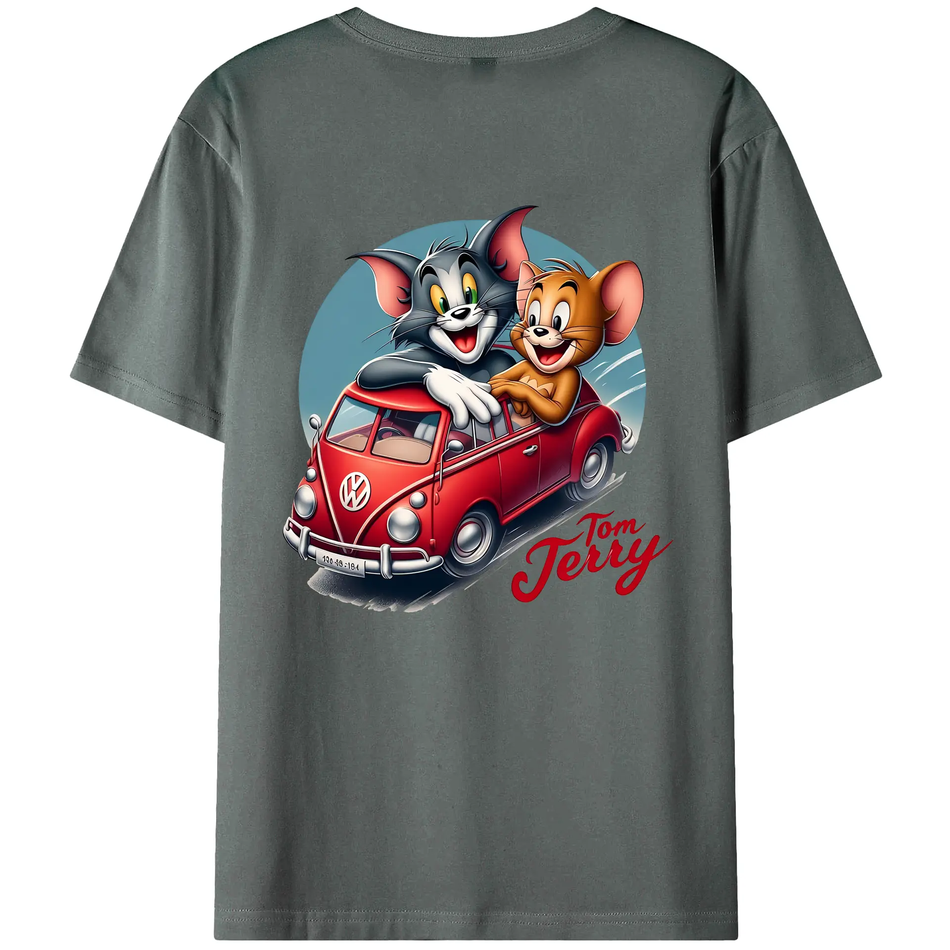 トムとジェリー グッズ トム - 綿100% ヴィンテージ風 半袖Tシャツ ・ 背面プリント ・ 柔らか肌触り ・ 通気性 快適 ・ スポーツ カジュアル 外出用