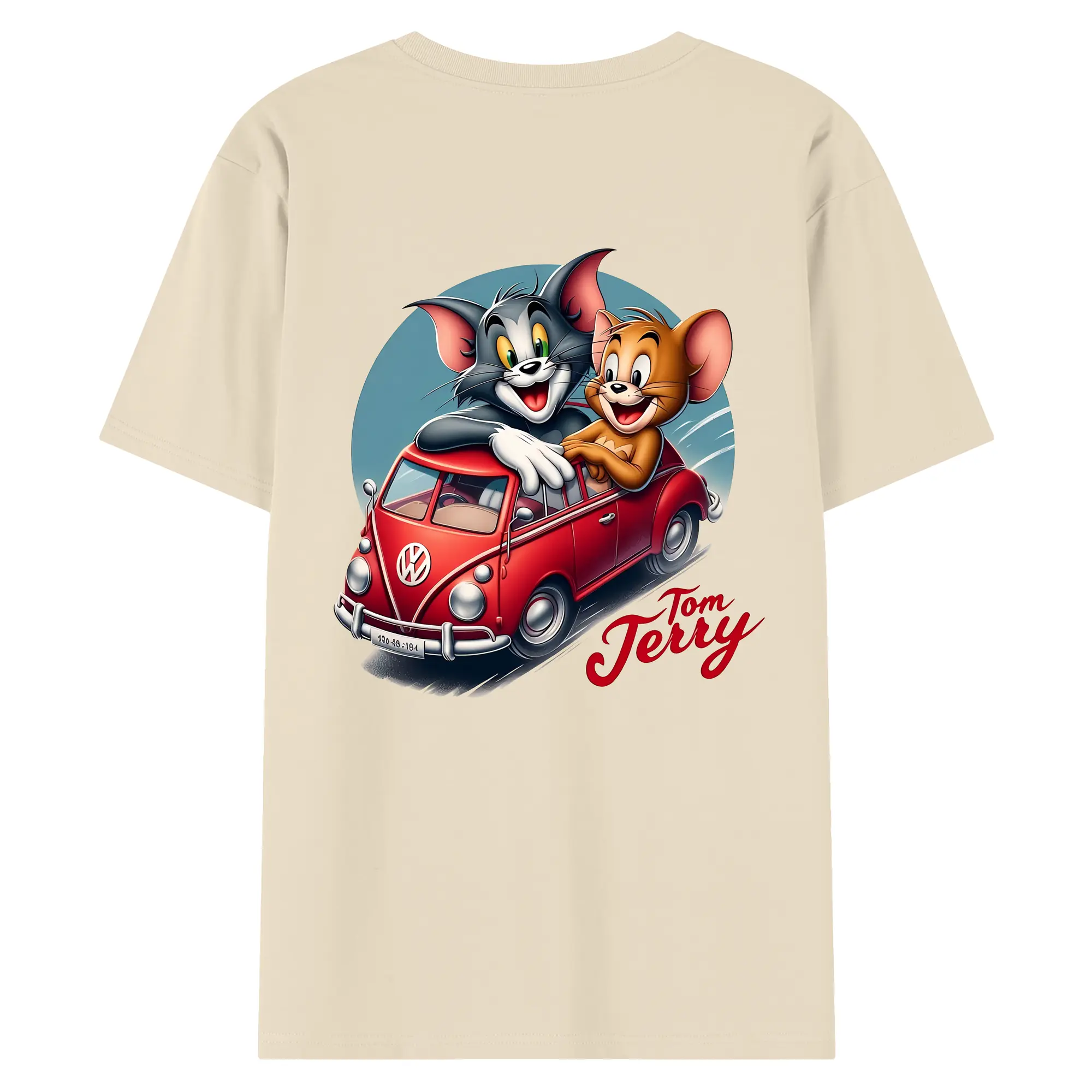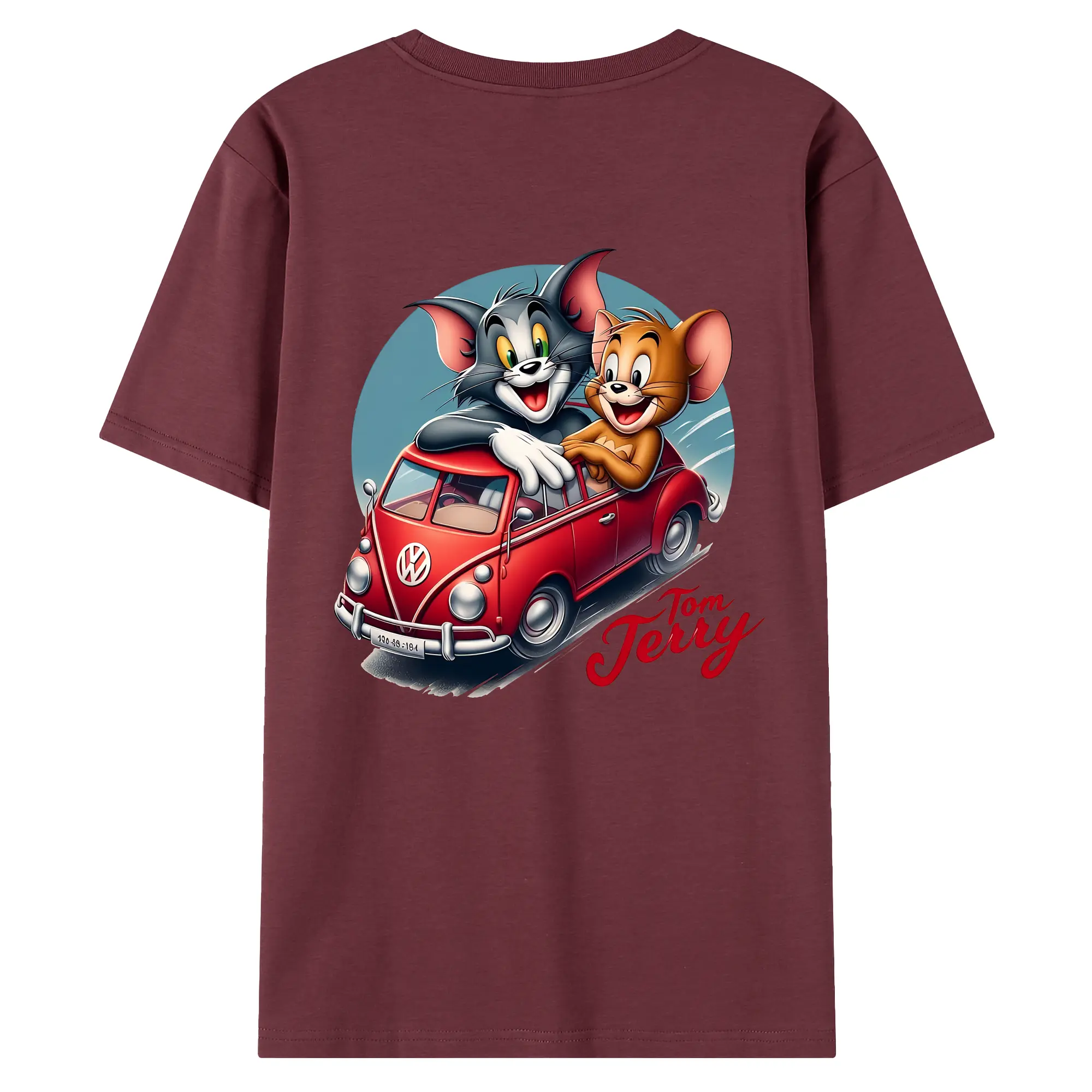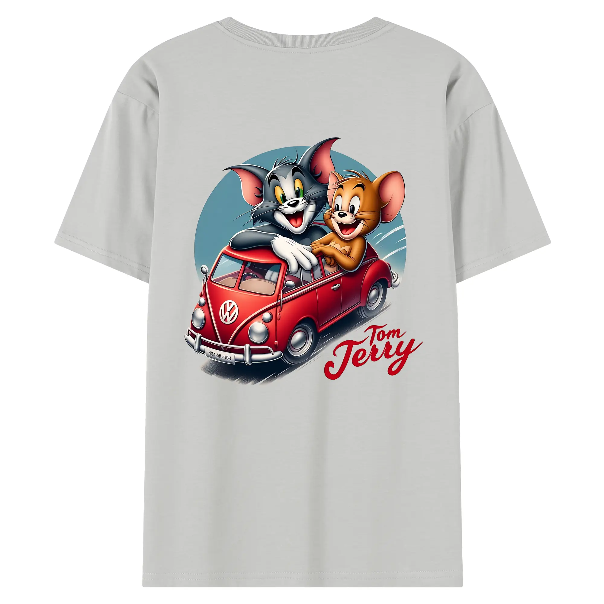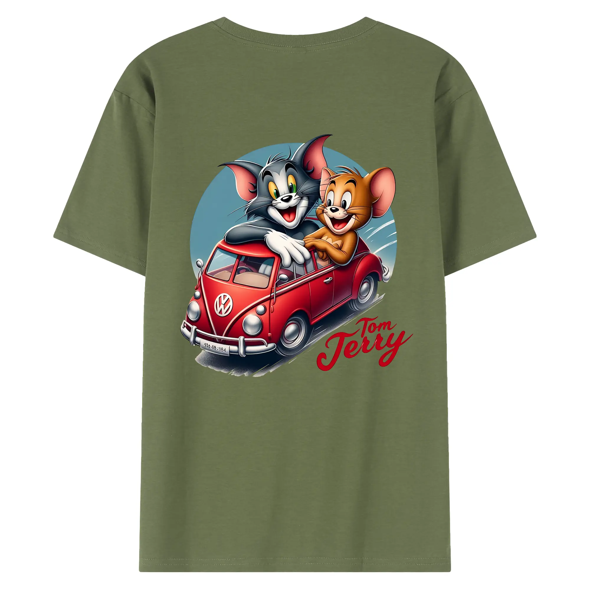 トムとジェリー グッズ トム - 綿100% ヴィンテージ風 半袖Tシャツ ・ 背面プリント ・ 柔らか肌触り ・ 通気性 快適 ・ スポーツ カジュアル 外出用