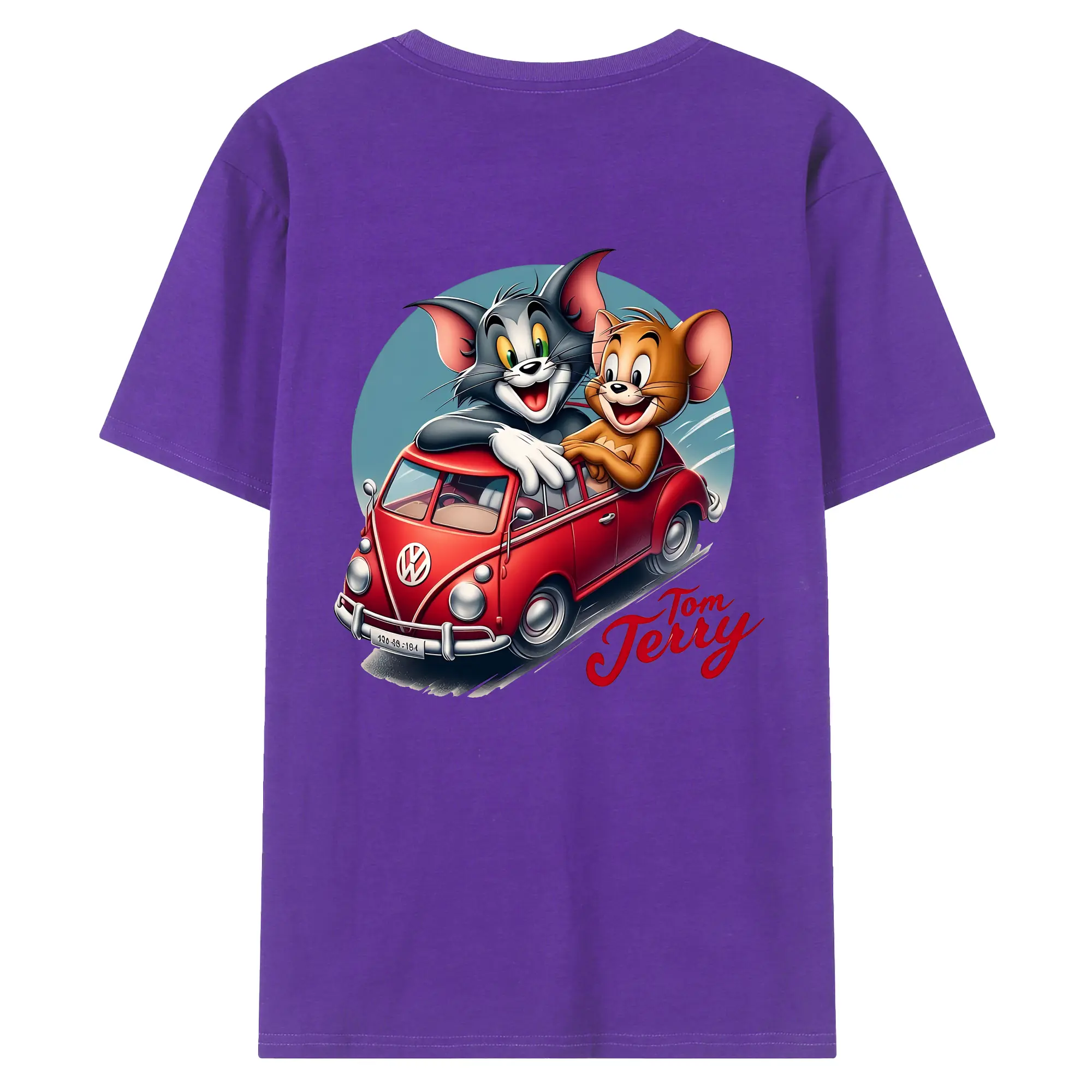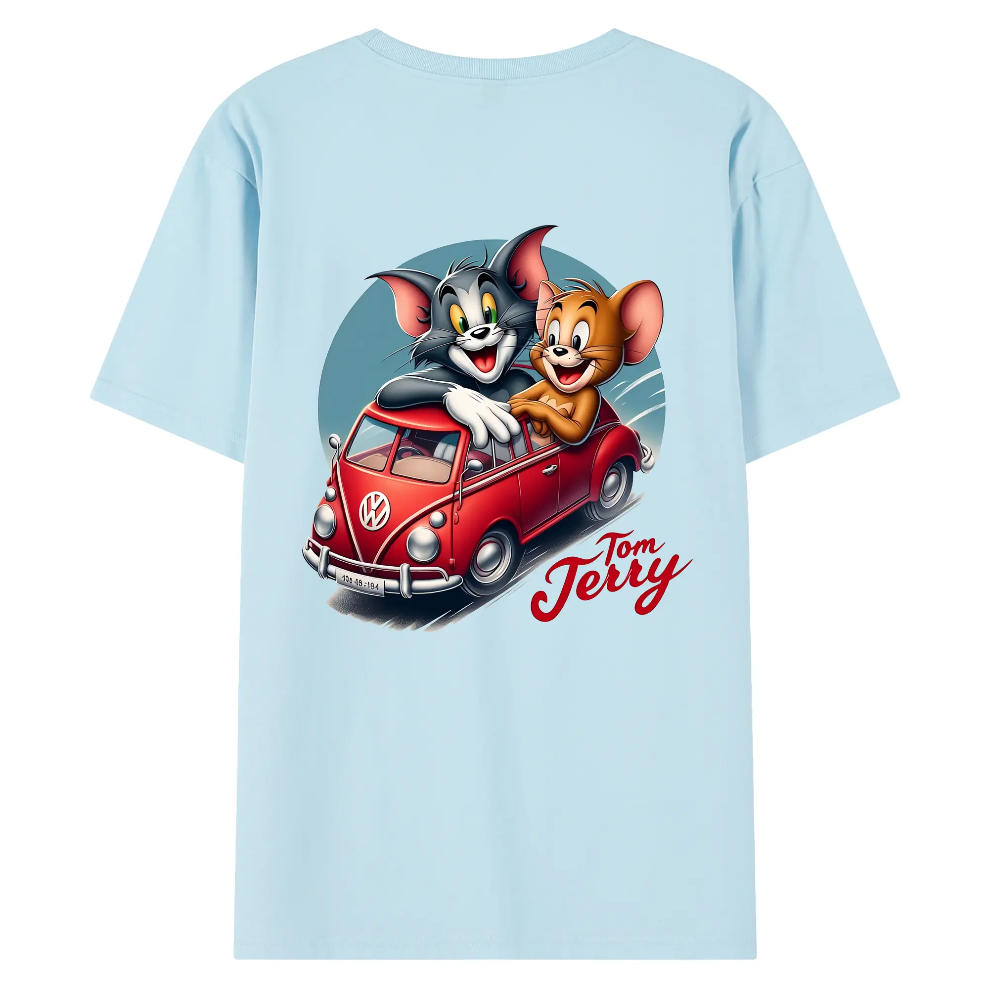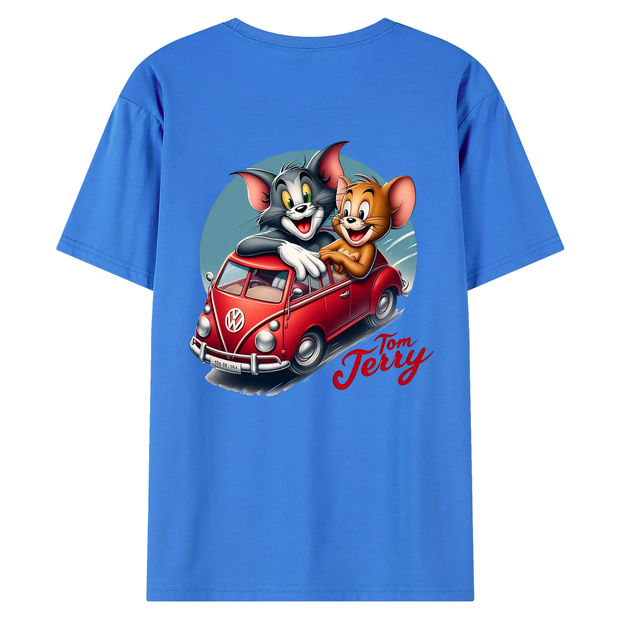 トムとジェリー グッズ トム - 綿100% 半袖Tシャツ ・ フロントプリント ・ 快適 通気性 ・ 日常使い 散歩 スポーツ用