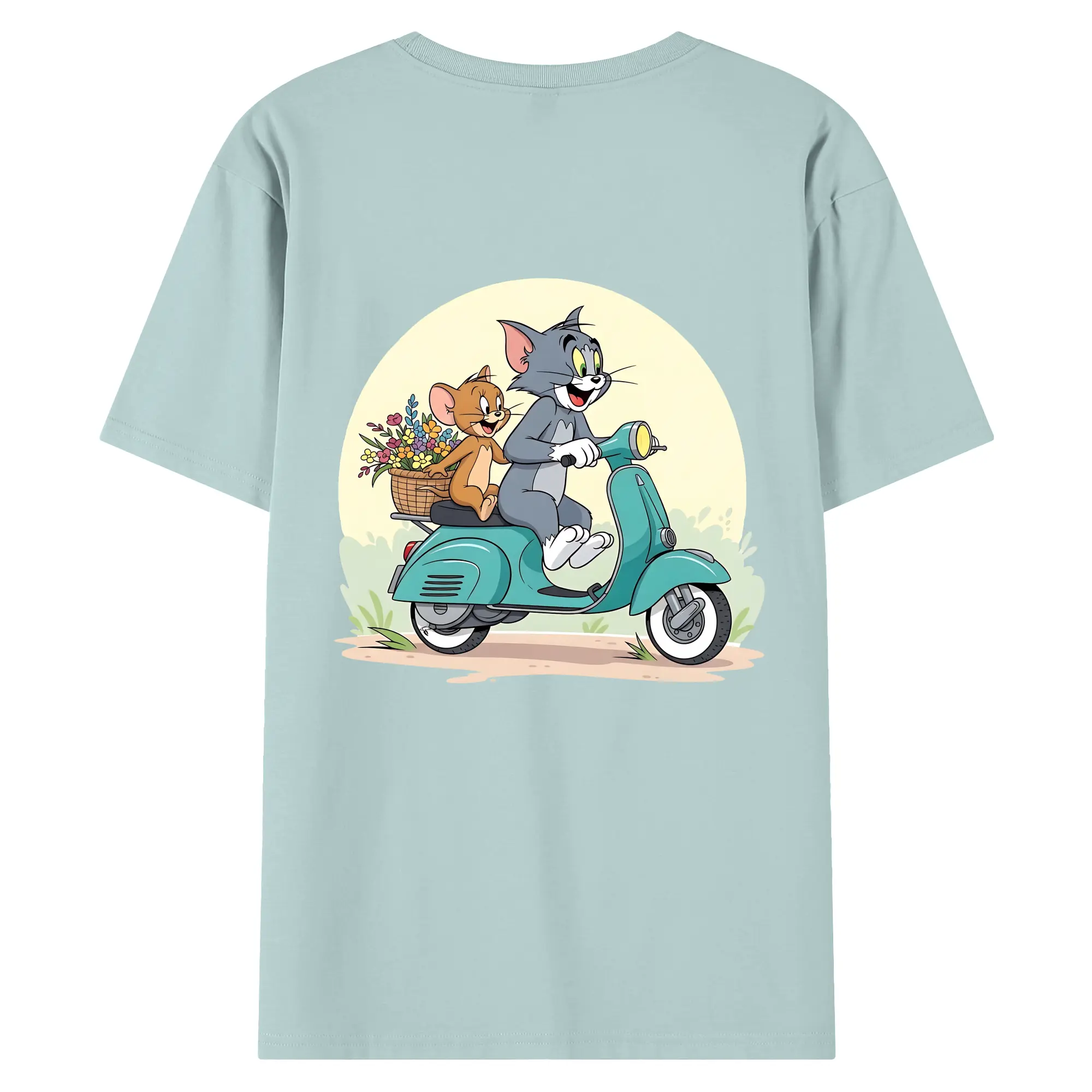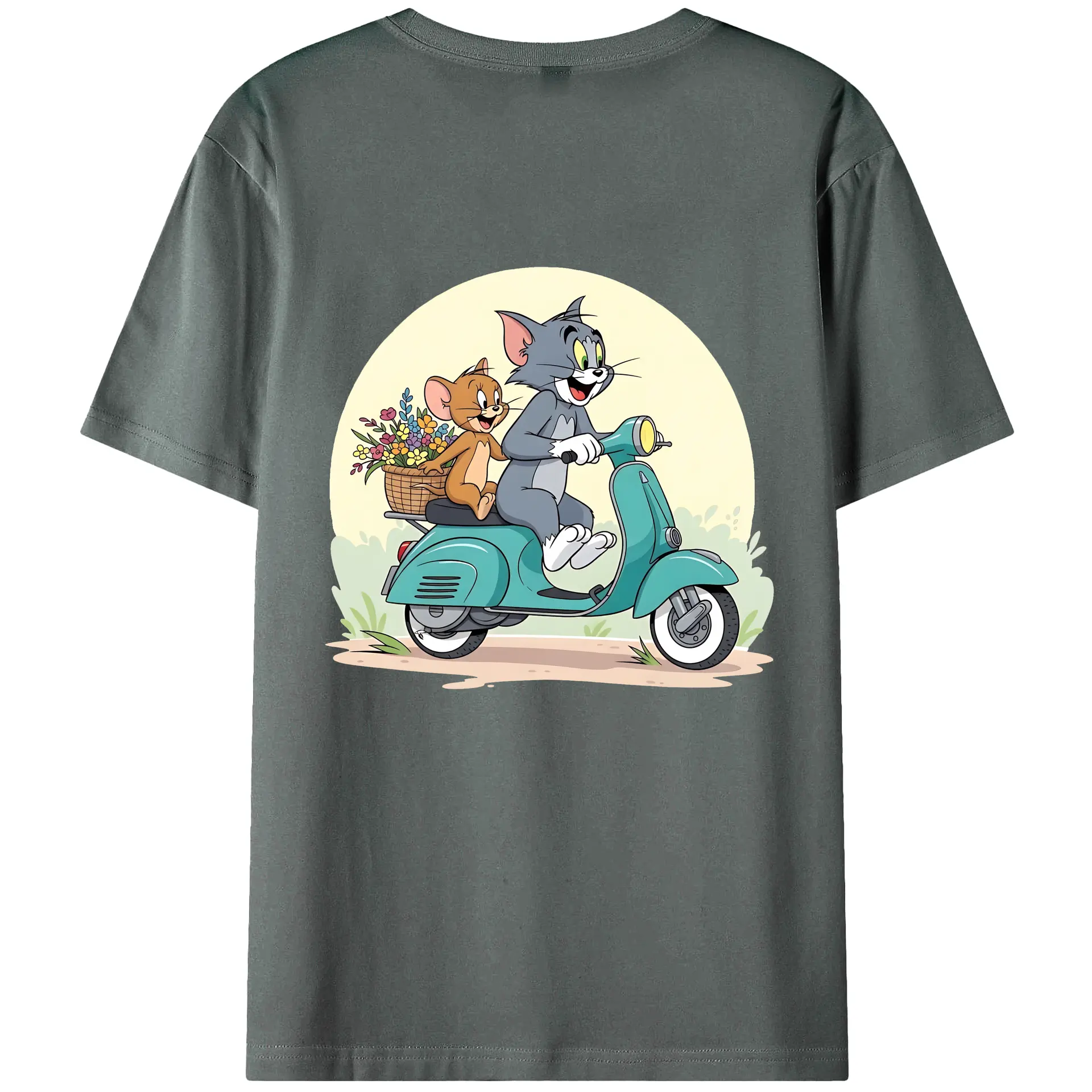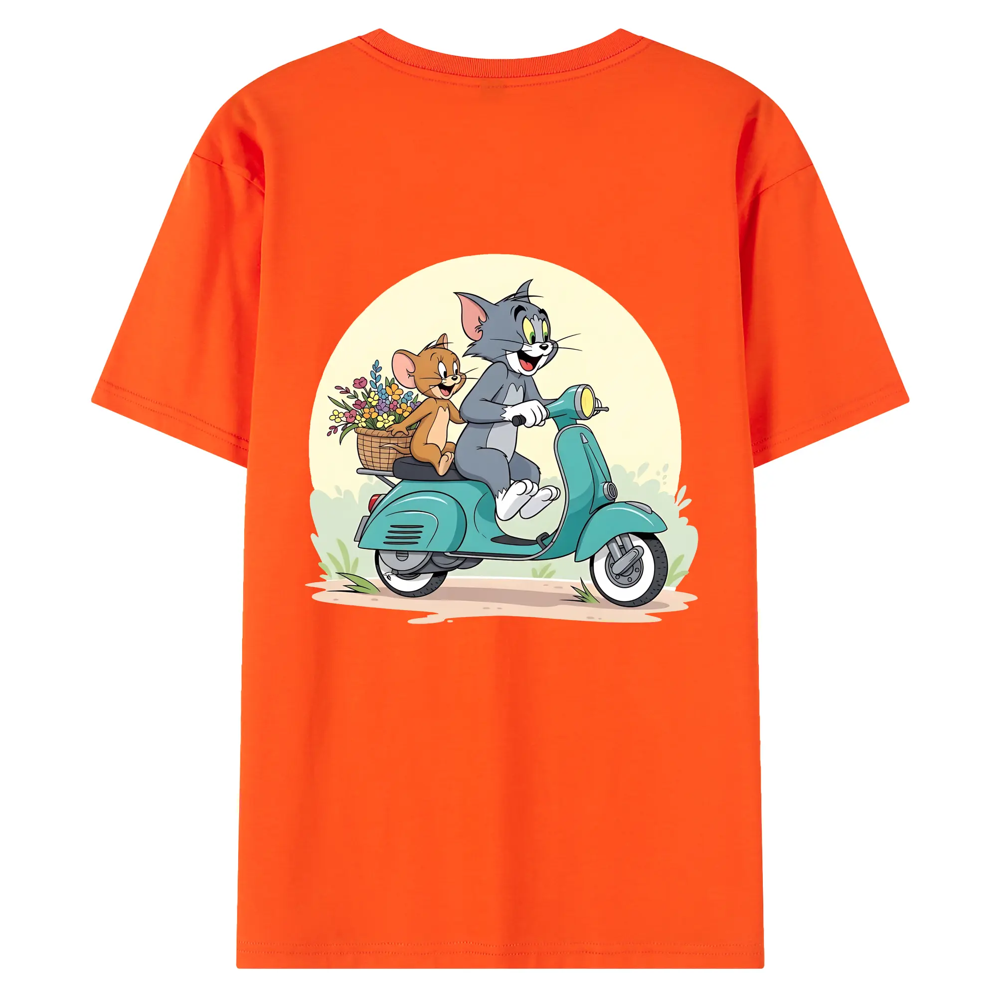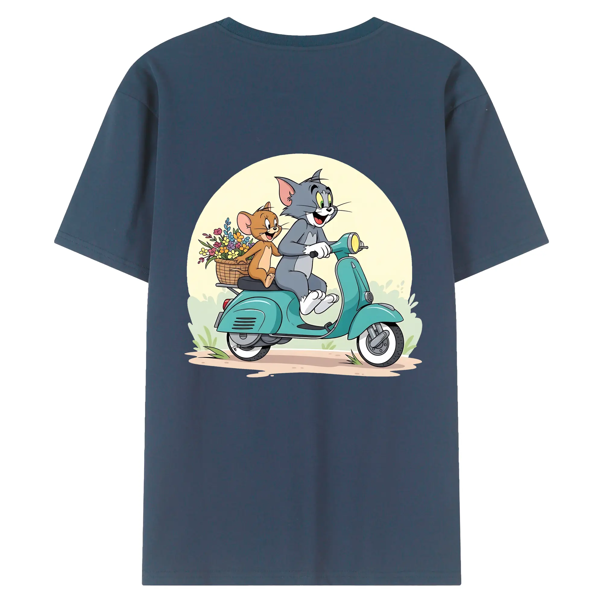 トムとジェリー グッズ トム - 綿100% ヴィンテージ風 半袖Tシャツ ・ 背面プリント ・ 柔らか肌触り ・ 通気性 快適 ・ スポーツ カジュアル 外出用