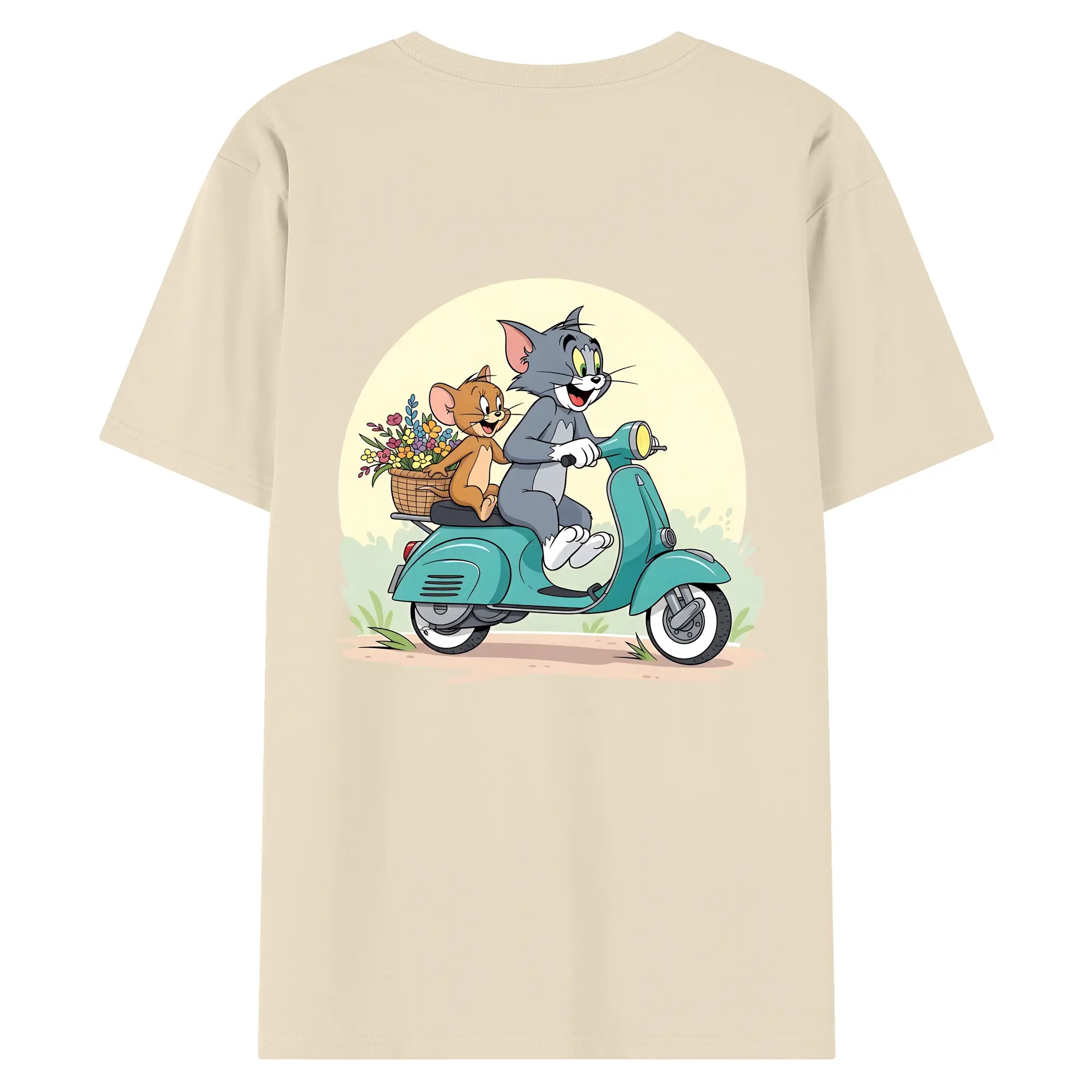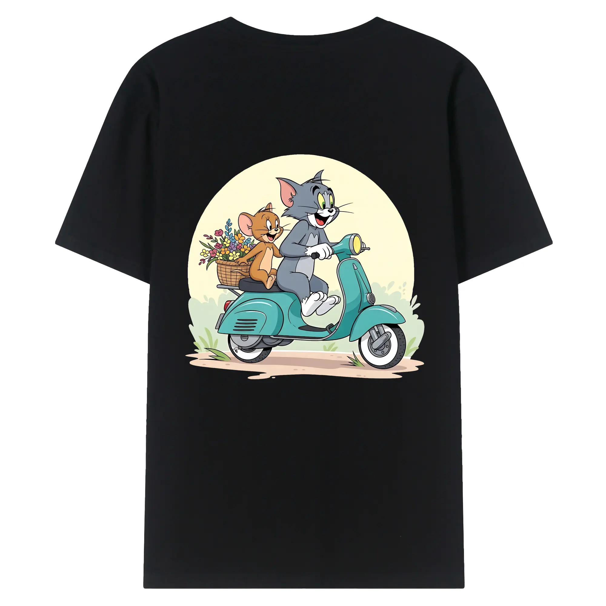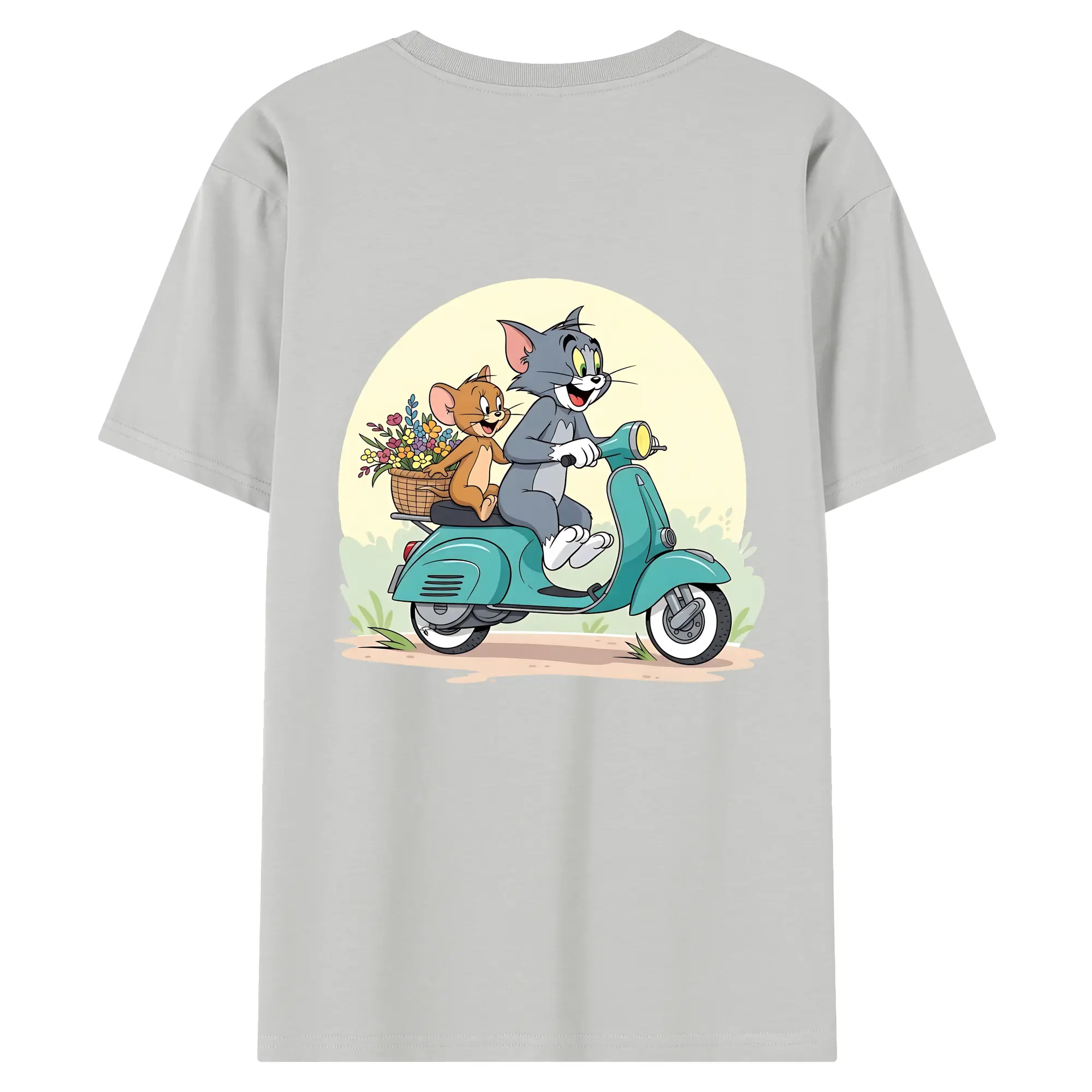 トムとジェリー グッズ トム - 綿100% ヴィンテージ風 半袖Tシャツ ・ 背面プリント ・ 柔らか肌触り ・ 通気性 快適 ・ スポーツ カジュアル 外出用