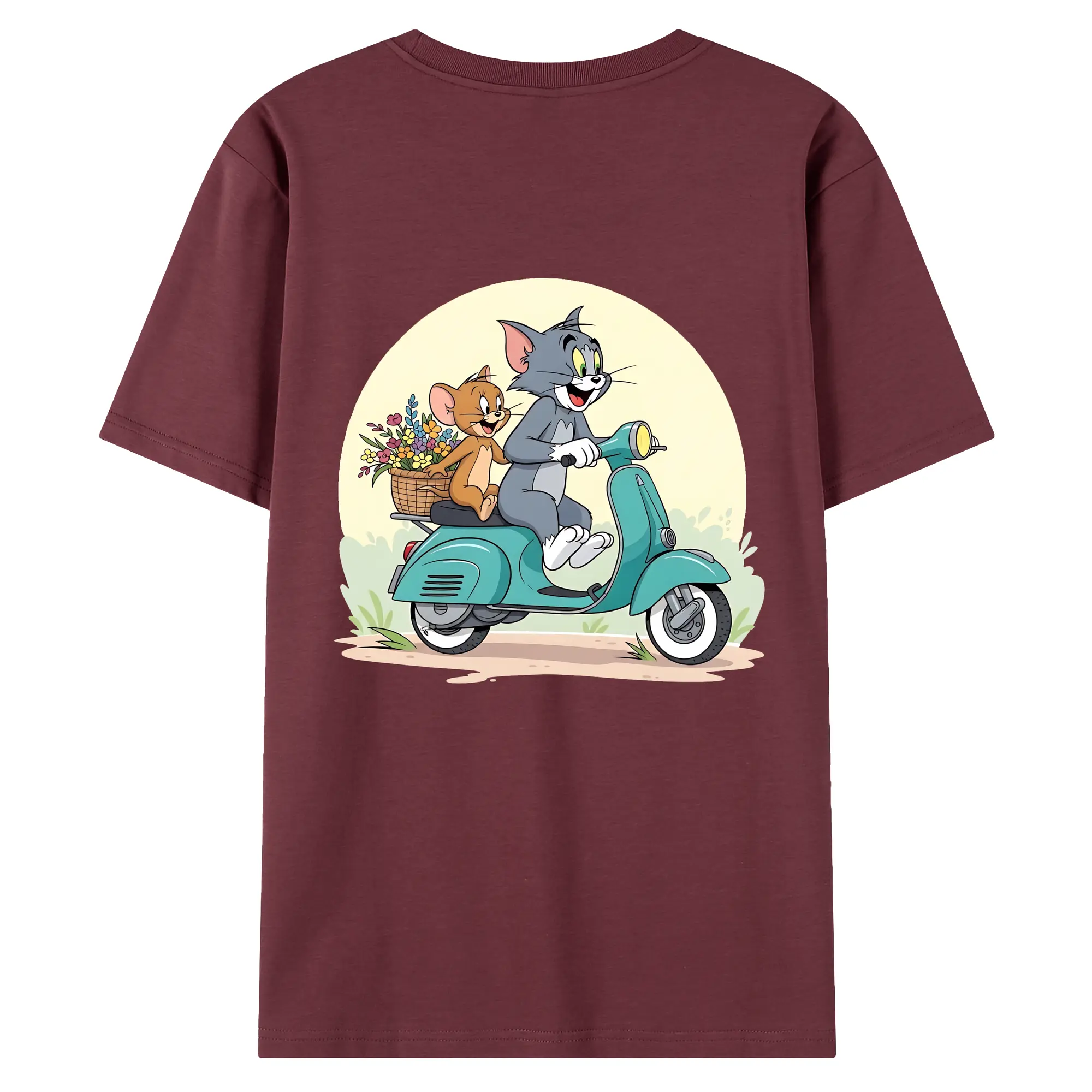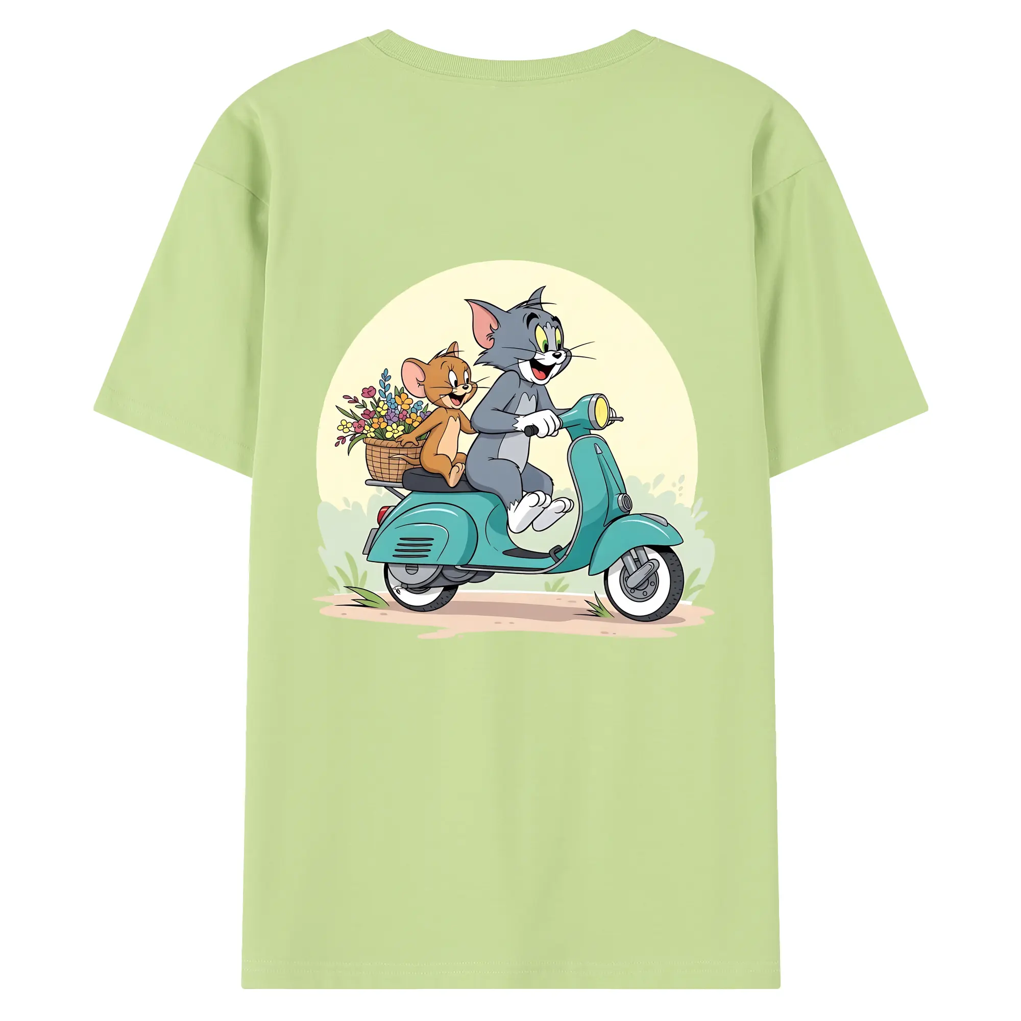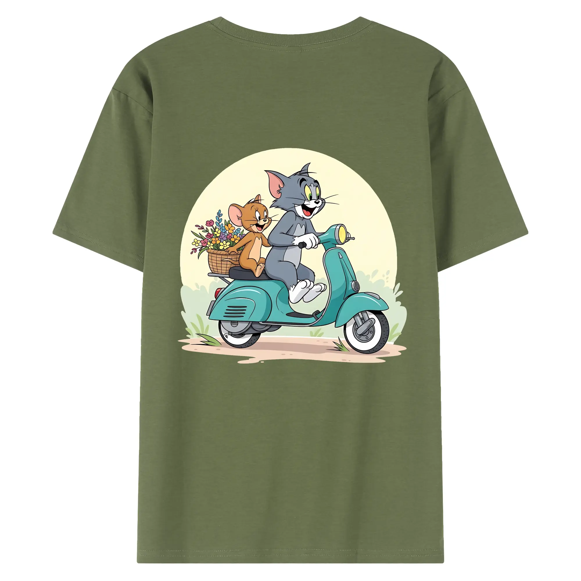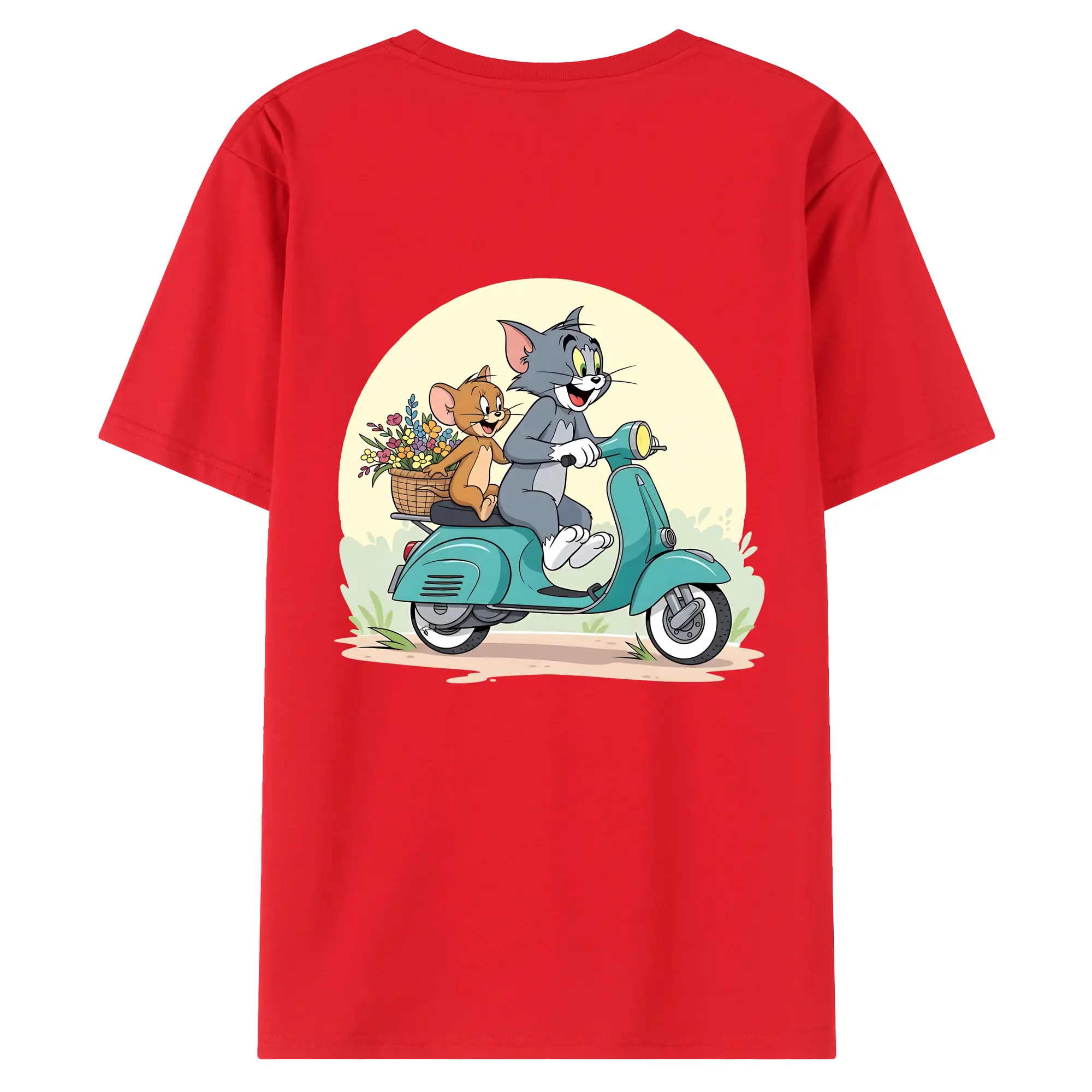 トムとジェリー グッズ トム - 綿100% ヴィンテージ風 半袖Tシャツ ・ 背面プリント ・ 柔らか肌触り ・ 通気性 快適 ・ スポーツ カジュアル 外出用